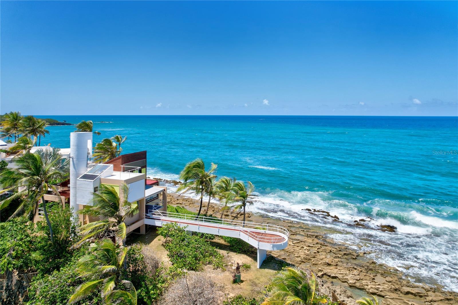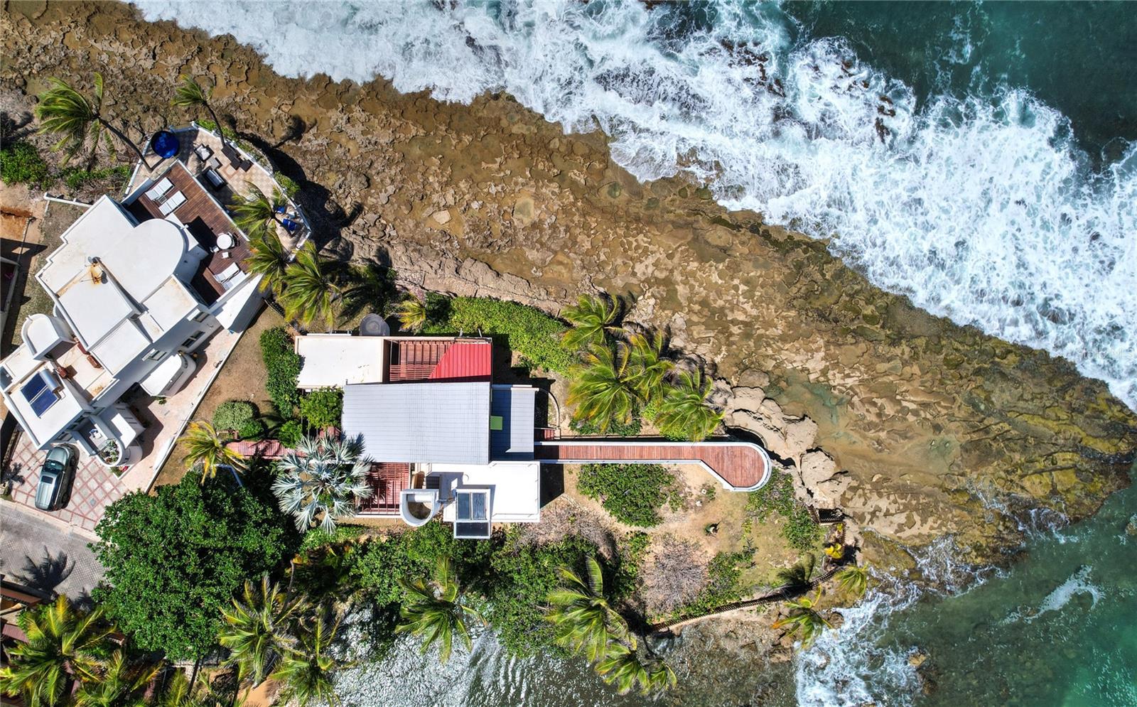 Enjoy unmatched panoramic views and direct beach access from this one of a kind home. Originally designed and conceived in 1978, by renowned architect Segundo Cardona. In 2006, the home received the American Institute of Architects' Test of Time Award. The structure is also known as the House at Brenas Point, the two-level property provides a clean open space with a wonderfully serene aesthetic that serves as the perfect setting to create your ideal home with all of the modern amenities it calls for. The current structure is enriched by wooden accents throughout and a tranquil ambience surrounded by the sea on all sides. Currently two bedrooms and two bathrooms, as well as a spacious kitchen, double-height great room, north-facing sunroom, balcony and multiple decks overlooking the water from different vantage points. 70 Brenas Estate is truly a rare and treasured find that offers potential owners the unique opportunity to create a 21st Century residence with grand cultural and historic significance. Vega Alta, is a coastal beach town located on the northern coast of Puerto Rico. The area is known for its stunning white sand beaches and forest filled with diverse flora. The region is also home to numerous well known restaurants. Only 10 minutes away from Dorado Beach and all of the amenities it has to offer such as top golf courses, spa sanctuary, fitness center, biking trails and water sport facilities. A 45-minute drive away from San Juan.