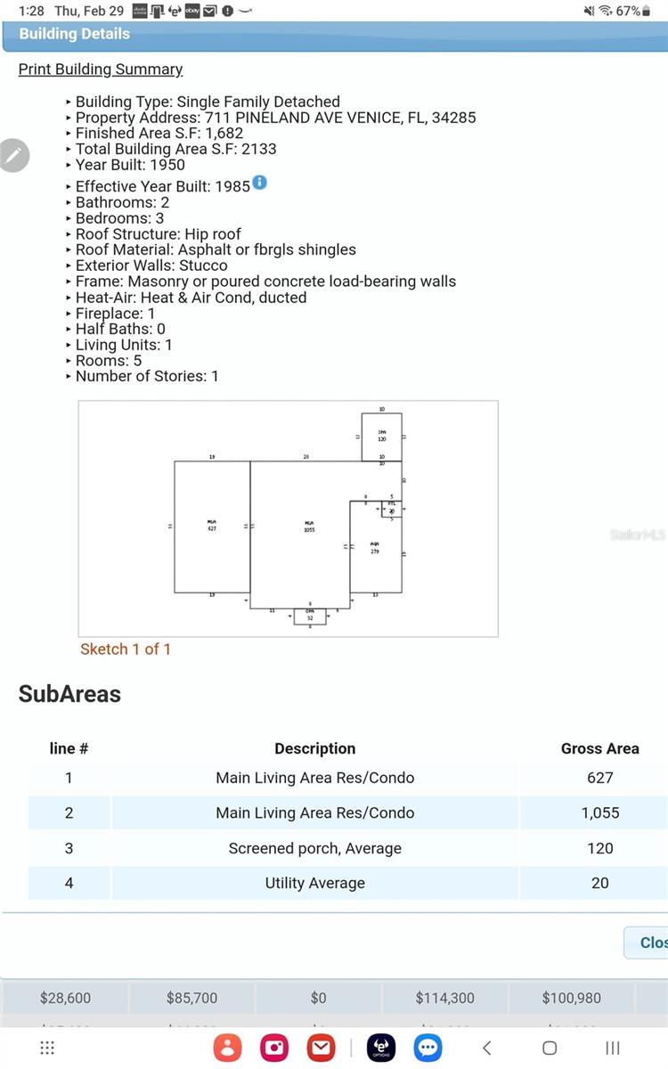 UNIT A IS A 3 BEDROOM APARTMENT WITH 3 BEDROOMS, DEN AND 1 BATH. THE SPACIOUS LIVING ROOM HAS A STONE FIREPLACE, FORMAL DINING ROOM OFF THE KITCHEN , WITH SLIDERS TO THE TREED BACKYARD. 2 BEDROOMS OFF THE HALLWAY AND ANOTHER OFF THE DEN.SCREENED LANAI, 1 CAR GARAGE WITH WASHER & DRYER hook up. UNIT B - LET YOUR TENANT SUPPLEMENT YOUR MORTGAGE WITH A STUDIO APARTMENT WITH ITS OWN ENTRANCE.AND REMODLED KITCHEN. TENANT IS IN PLACE ON A MONTH TO MONTH LEASE. POSSIBLY USE THE STUDIO AS A SEPARATE OFFICE OR BUSINESS. WINDOWS, A/C AND GARAGE DOOR REPLACED. VENICE PUBLIC BEACH IS ONLY 2 MILES AWAY. WIND MIT AND 4 POINT IN 2022, NEW ROOF IN 2020,