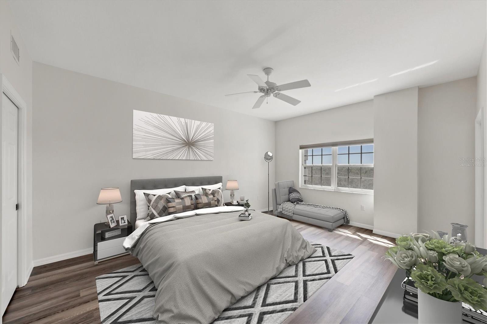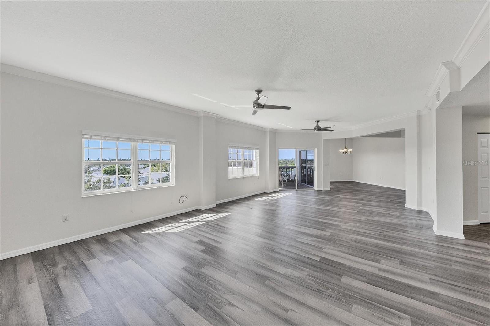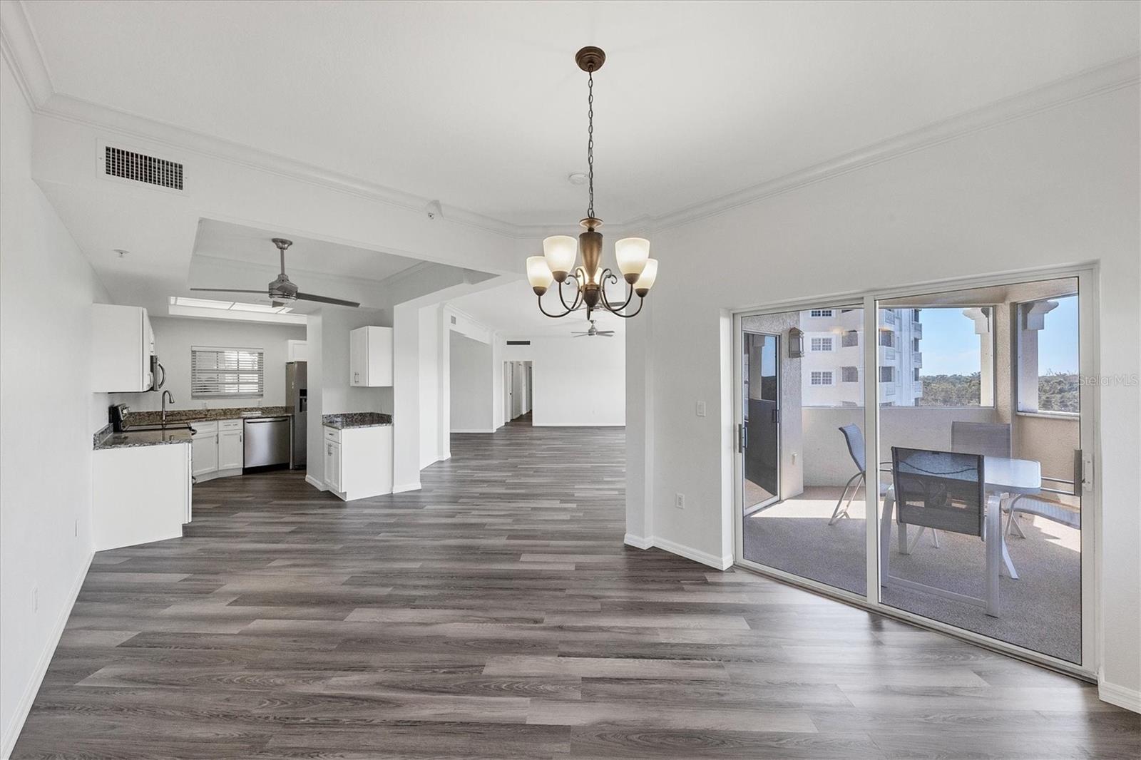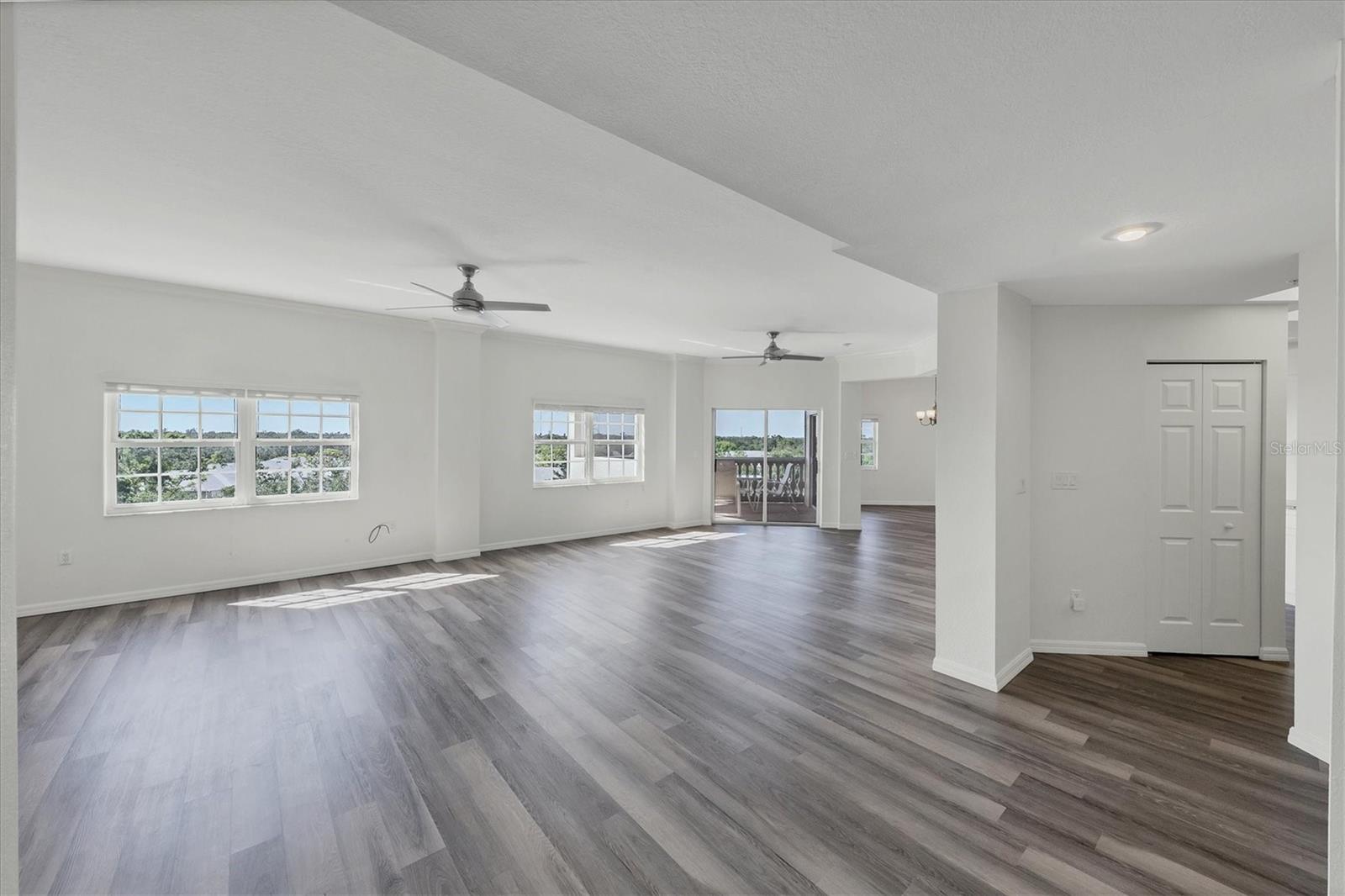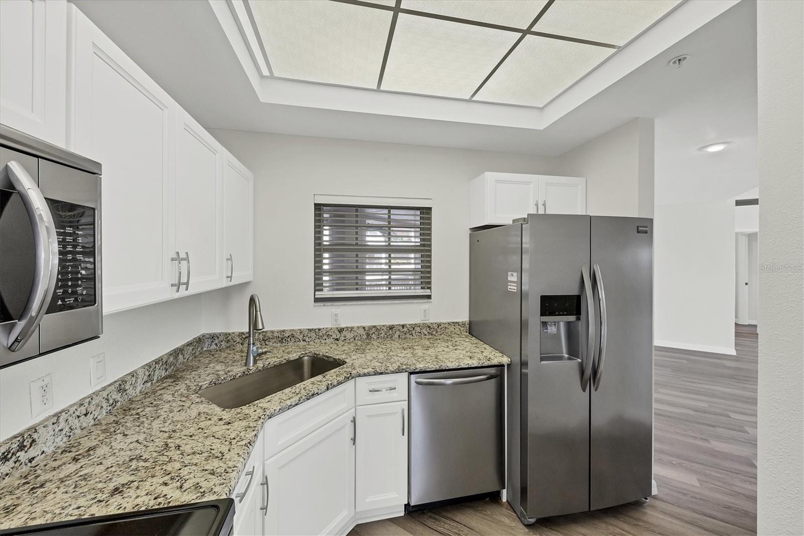 One or more photo(s) has been virtually staged. Price Improvement! Newly renovated! New kitchen with granite counters, new flooring, new paint, new ceiling fans. Spectacular sunsets are abundant at this lovely, spacious condominium at Whittier Manor at Jacaranda Trace, a premier 55-plus gated community in Venice. This unusually large 2,212-square-foot, three-bedroom, two-full-bath unit offers a spacious, open floor plan with amazing views and an abundance of natural light. As you enter the unit, you are wowed by the open space living room/dining room which not only offers breathtaking and unobstructed views of the surrounding area but also a multitude of possibilities for entertaining family and friends. Large sliders off the dining area lead to a screened outdoor balcony, perfect for enjoying the outdoors and those spectacular Florida sunsets. To the right of the entrance, you will find the kitchen with a large pantry for storage which leads to the dining area. A corridor separates the living area from the bedroom area and leads to the rest of the unit. Living areas are vinyl plank and tile flooring. Did we mention the fabulous laundry room with plenty of room to hang and fold laundry, or the ample storage room for the storage of your extra belongings and luggage? At the end of the corridor, you will find the spacious master bedroom with two immensely large walk-in closets; the en-suite bath has both a shower stall as well as a bathtub. An adjoining bedroom is bordered by six foot sliders which lead to a large, screened-in balcony. Imagine enjoying your morning coffee as you read the paper and do the crossword puzzle in total privacy. An additional guest bedroom – perfect for visiting family or out of town guests – completes the unit. Jacaranda Trace is a premier 55-plus senior community with plenty of amenities and activities. The monthly condominium fee covers basic cable, water and sewer, hot water, annual window washing, building maintenance and repairs, routine dryer vent cleaning, and a semi-annual AC check and filter replacement. Great location in Venice near restaurants, shopping, services, parks, the renowned Audubon Rookery, the Jacaranda Library, golf courses, marinas and the spectacular Gulf beaches of Venice, Manasota and Englewood. Live your best life, starting today!
