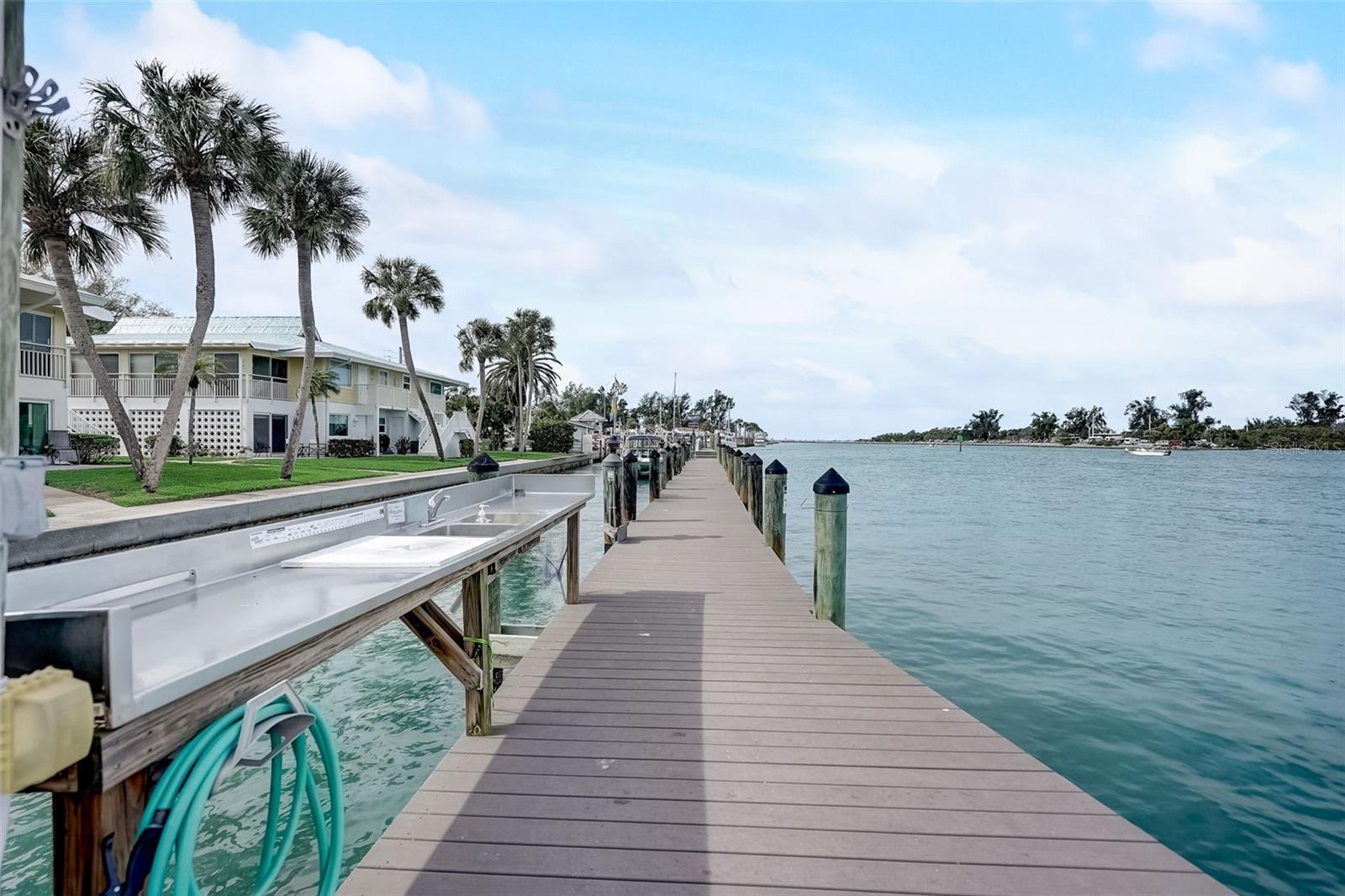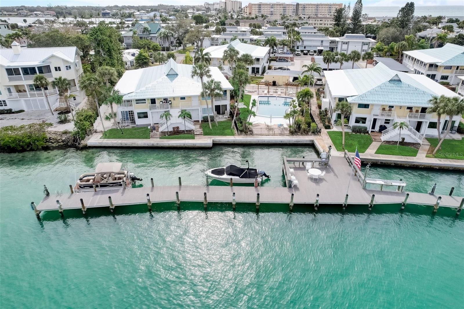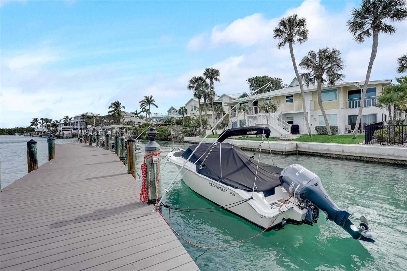 Don't miss out on this rare opportunity to own a condo that's perfect for both you and your boat! Discover the epitome of island living in this charming two-bedroom, two-bathroom condo, perfectly situated on the first floor as an end unit. This coastal retreat seamlessly combines comfort with seaside elegance, offering an ideal blend of convenience and luxury. Embrace the perfect trifecta of water, dock, and pool access, bringing every aspect of island living right to your fingertips. Whether you're a water enthusiast, sun seeker, or simply in search of tranquility, this unit caters to your every desire. The unit welcomes an abundance of natural light through four sliders, creating a bright and airy atmosphere. Neutral tile flooring extends gracefully throughout, providing the perfect canvas for the interior. The result is a serene and inviting home that feels both cozy and spacious. The kitchen becomes the heart of your home, where functionality meets elegance. Whether you're preparing a casual breakfast or hosting a gourmet dinner, this space is a central hub designed to enhance your culinary experiences. Both bathrooms in this coastal retreat have undergone meticulous updates, showcasing a thoughtful blend of style and functionality. This condo comes turnkey furnished, ensuring a hassle-free move-in experience. Simply bring your suitcase and begin enjoying the island lifestyle from day one. Your coastal retreat awaits—schedule a showing and make the Island of Venice your new home!