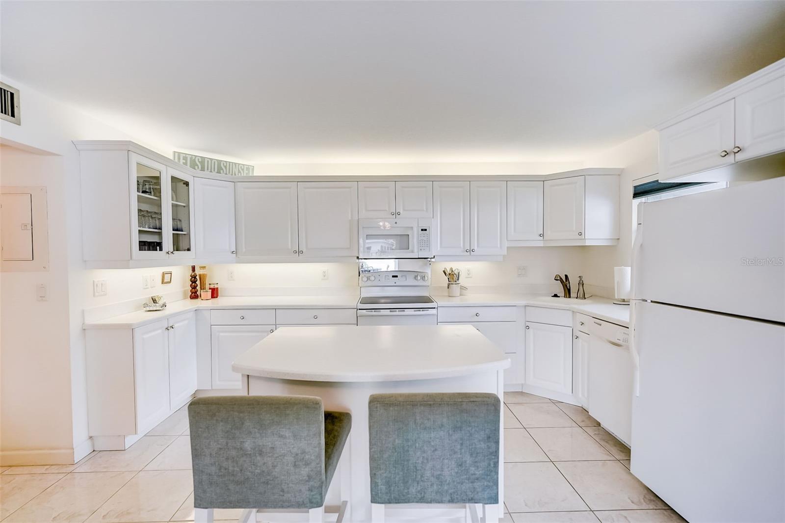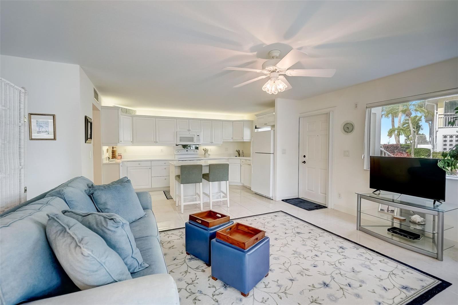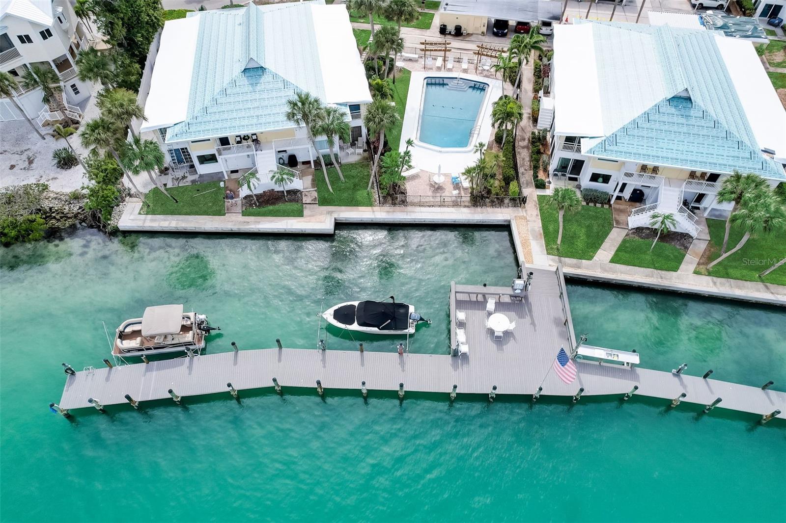 Don't miss out on this rare opportunity to own a condo that's perfect for both you and your boat! Discover the epitome of island living in this charming two-bedroom, two-bathroom condo, perfectly situated on the first floor as an end unit. This coastal retreat seamlessly combines comfort with seaside elegance, offering an ideal blend of convenience and luxury. Embrace the perfect trifecta of water, dock, and pool access, bringing every aspect of island living right to your fingertips. Whether you're a water enthusiast, sun seeker, or simply in search of tranquility, this unit caters to your every desire. The unit welcomes an abundance of natural light through four sliders, creating a bright and airy atmosphere. Neutral tile flooring extends gracefully throughout, providing the perfect canvas for the interior. The result is a serene and inviting home that feels both cozy and spacious. The kitchen becomes the heart of your home, where functionality meets elegance. Whether you're preparing a casual breakfast or hosting a gourmet dinner, this space is a central hub designed to enhance your culinary experiences. Both bathrooms in this coastal retreat have undergone meticulous updates, showcasing a thoughtful blend of style and functionality. This condo comes turnkey furnished, ensuring a hassle-free move-in experience. Simply bring your suitcase and begin enjoying the island lifestyle from day one. Your coastal retreat awaits—schedule a showing and make the Island of Venice your new home!