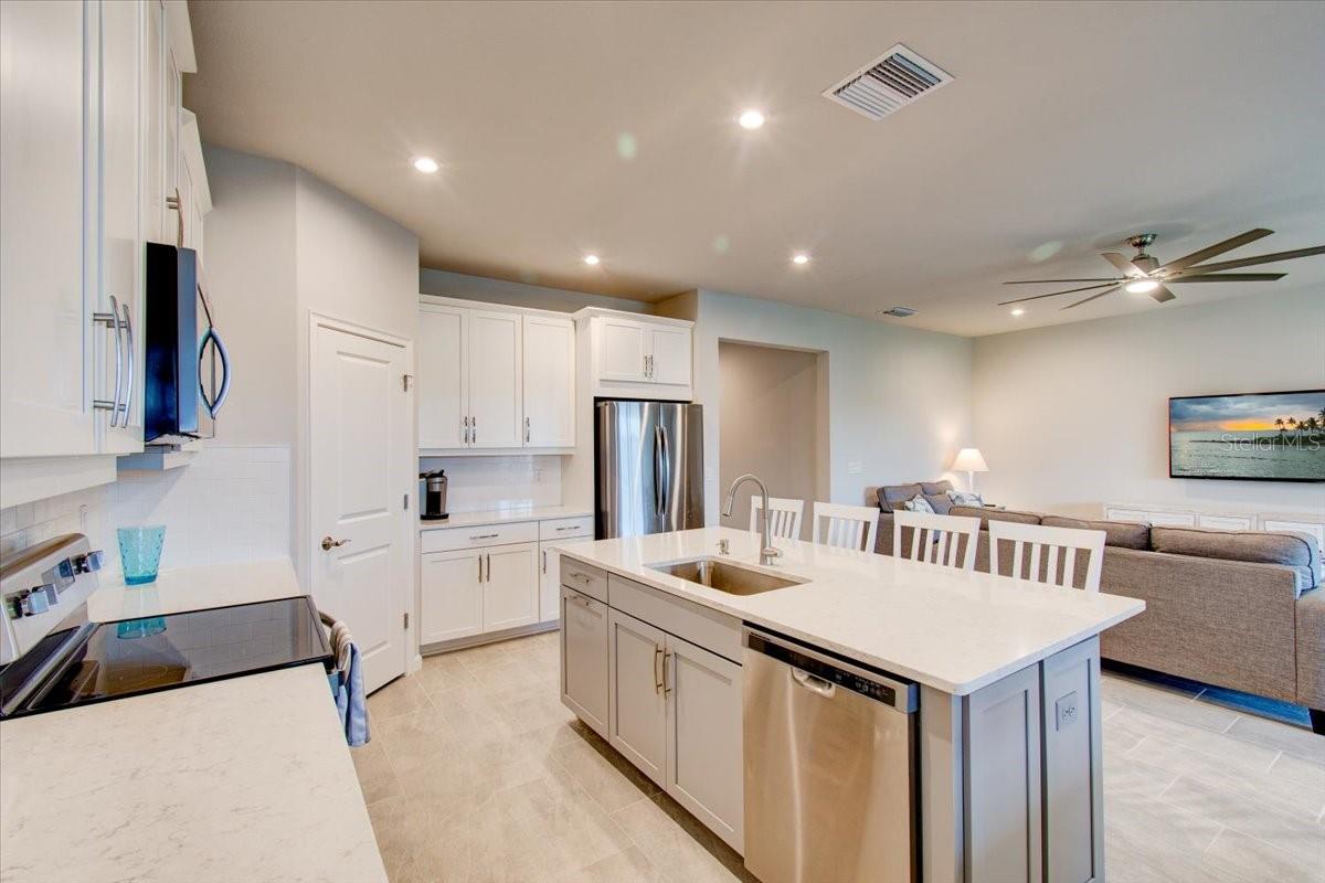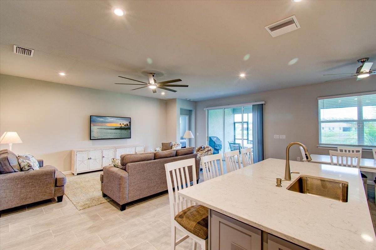 Discover this beautiful Florida oasis! This lovely decorated waterfront home is perfect for enjoying the Florida lifestyle. Located on the outskirts of the charming city of Venice in Renaissance at West Villages, it's just 9 miles to the nearest beach. This exceptional resort style home comes "turnkey" and features 3 spacious bedrooms, 2 baths and a flex room and has a split floor plan. The master suite is a private haven, featuring a large master bath with an upgraded walk in shower and an oversize walk-in closet. The kitchen, the heart of the home, features quartz countertops, stainless steel appliances, a walk in pantry and a spacious island. The versatile bonus room/den is the ideal space to use as you choose. From the serene pond just outside the upgraded lanai to the meticulously maintained interior, every detail has been carefully considered to create a space that you'll cherish. A two-car garage provides ample space for your vehicles & storage. But to truly understand its allure, you have to experience it in person. Come and see for yourself. The beauty of this home in paradise is an experience that words alone cannot convey. Furniture is negotiable!