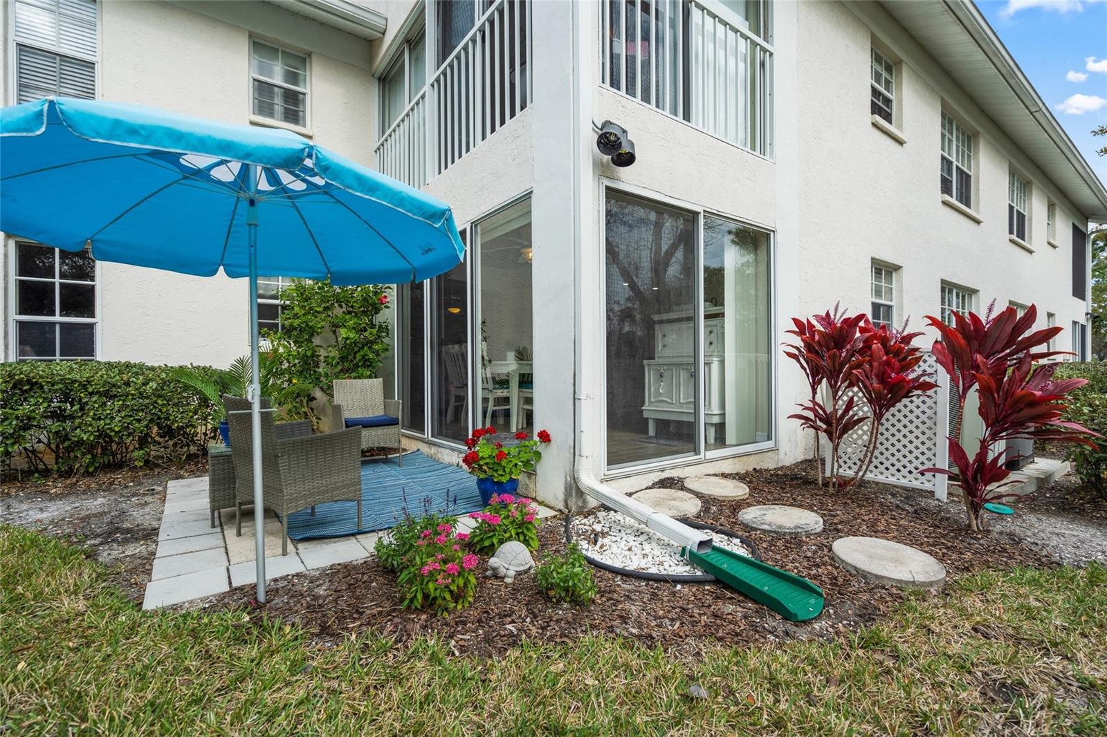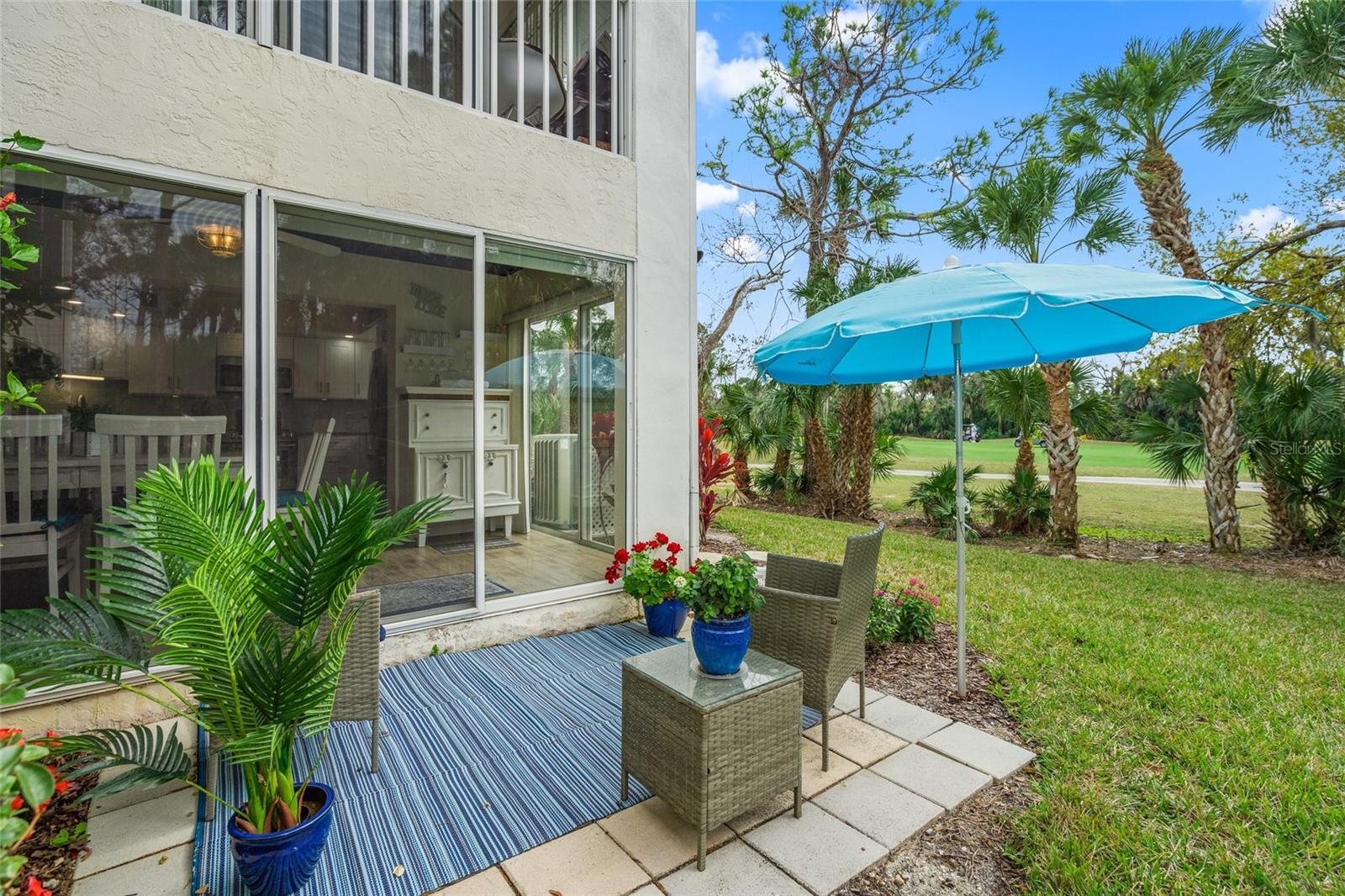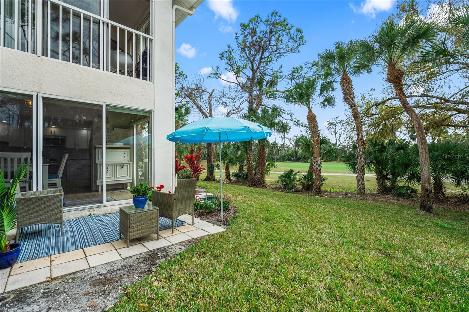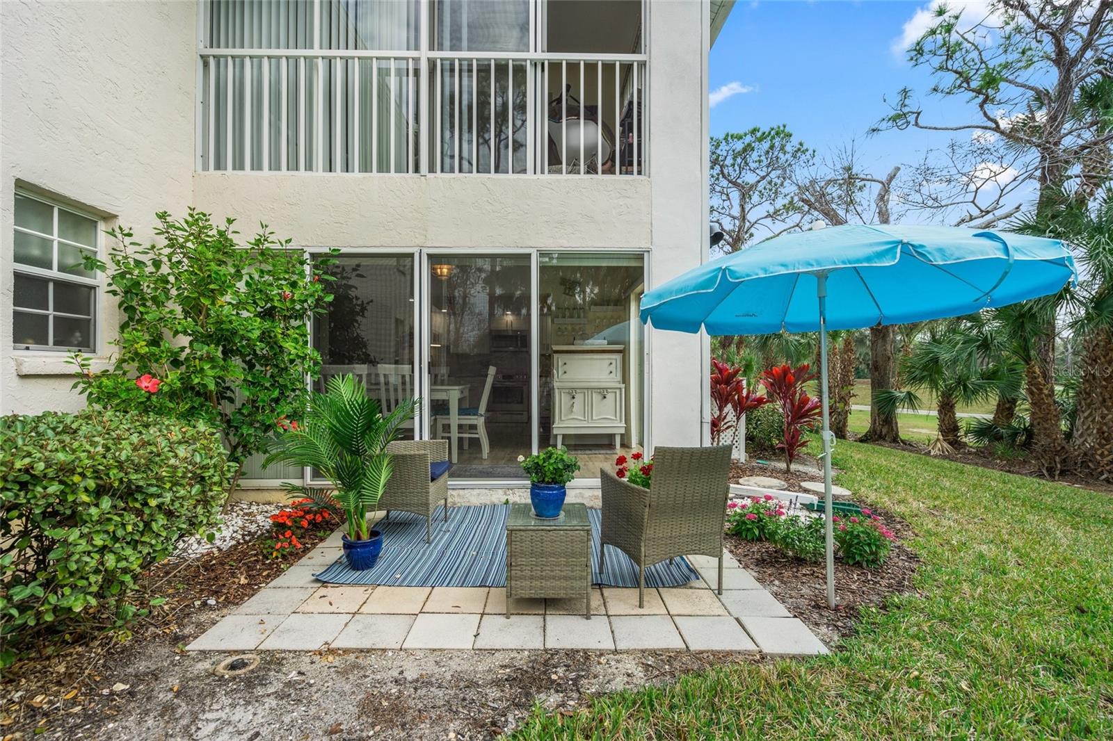 Many upgrades were made in this first floor level Venice area condo with a golf course view in the Gardens of St Andrews Park and within the Plantation Club community. HOA replaced building roof. Over $40,000 in improvements were made including a beautifully remodeled kitchen with all new stainless appliances, new kitchen cabinetry with pull outs and soft close doors and drawers, granite countertops with breakfast bar, and backsplash. Also a new A/C with a "smart" thermostat, and newer water heater. This light and bright 2 bedroom 2 bathroom home features plank tile flooring, an expansive great room, a dining area with large sliding glass doors to enhance the view of the Bobcat golf course at Plantation Golf and Country Club, spacious owner suite with dual sinks and walk-in closet, guest bedroom, interior laundry room, storage closet and covered car port. Exterior maintenance, 3 community pools, water and sewer and cable tv is included in the HOA fees. Nearby is the Plantation Golf and Country Club where optional membership offers two 18-hole golf courses, clubhouse, fitness, tennis courts and more. All this is in proximity to beautiful downtown Venice, area parks and beaches, retail, dining, and major highways. Some furniture and furnishings are included with the sale, and some items are available for sale separately. Seller has paid the $11,000 HOA Unit Assessment for building roof replacement. Please contact Agent for details.