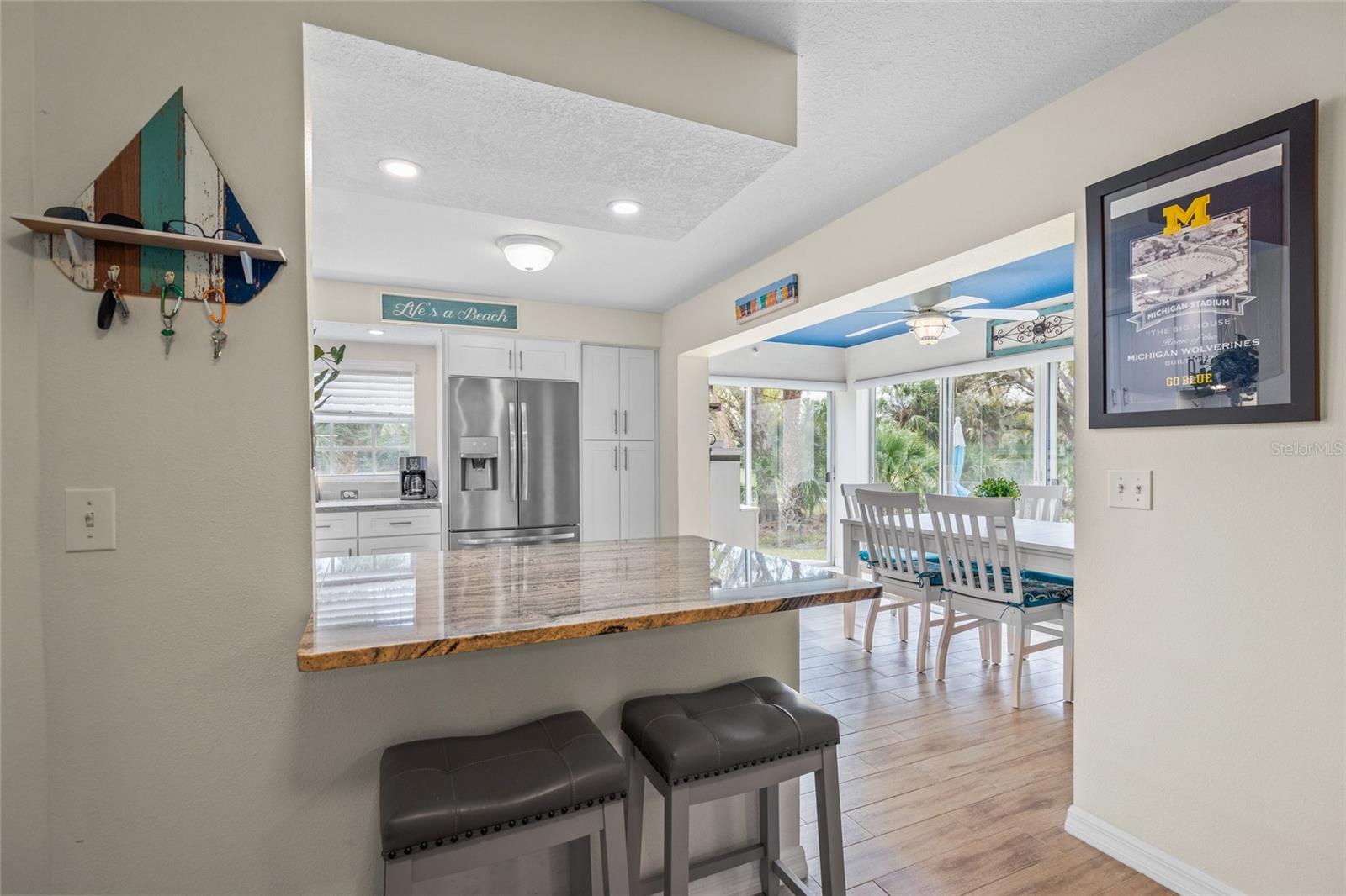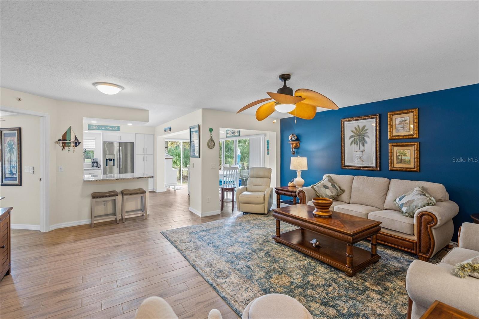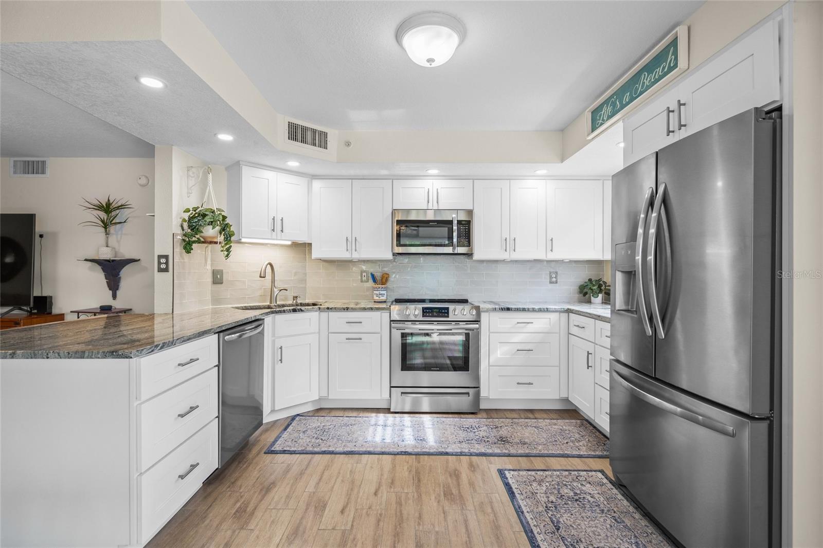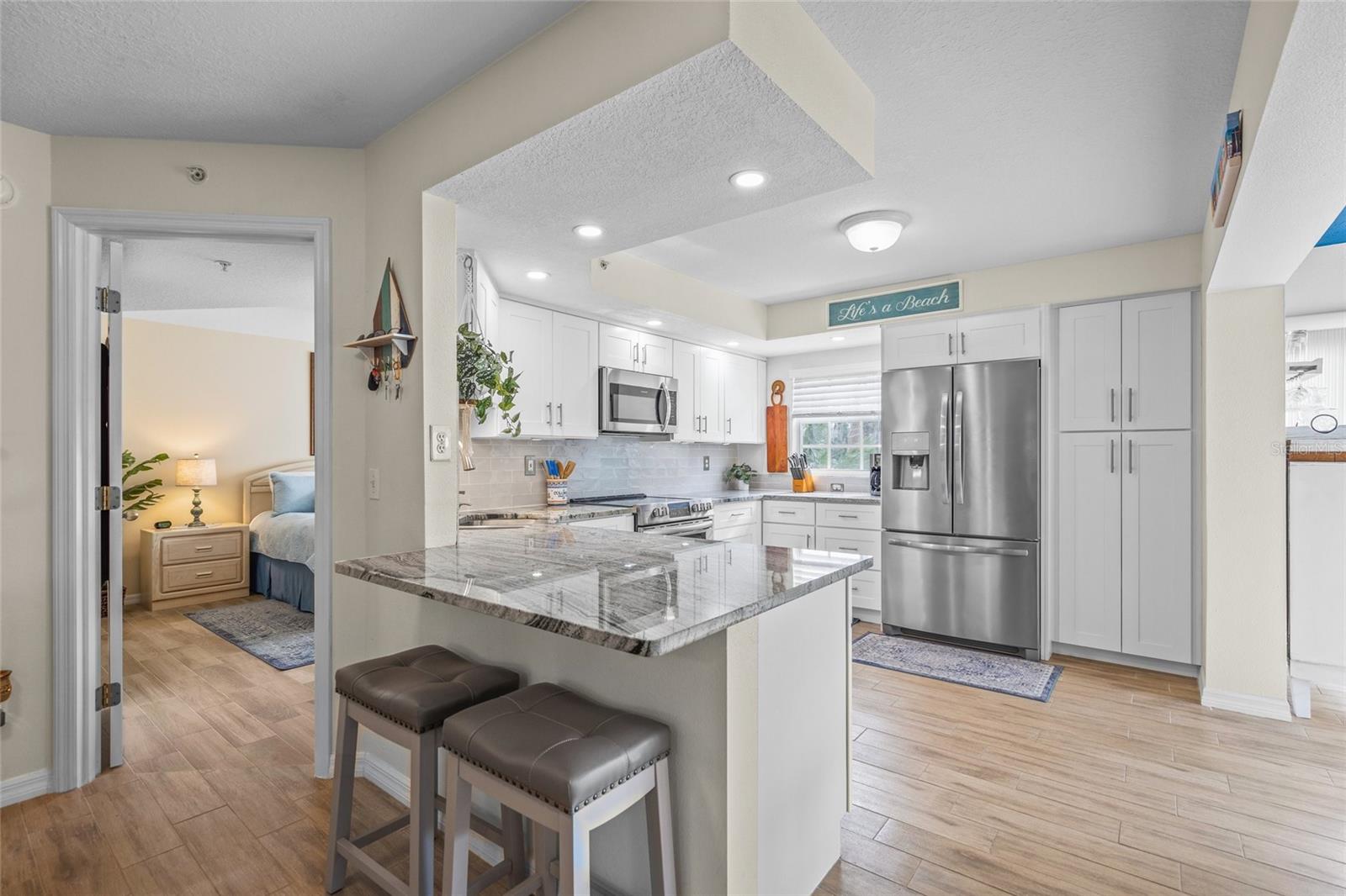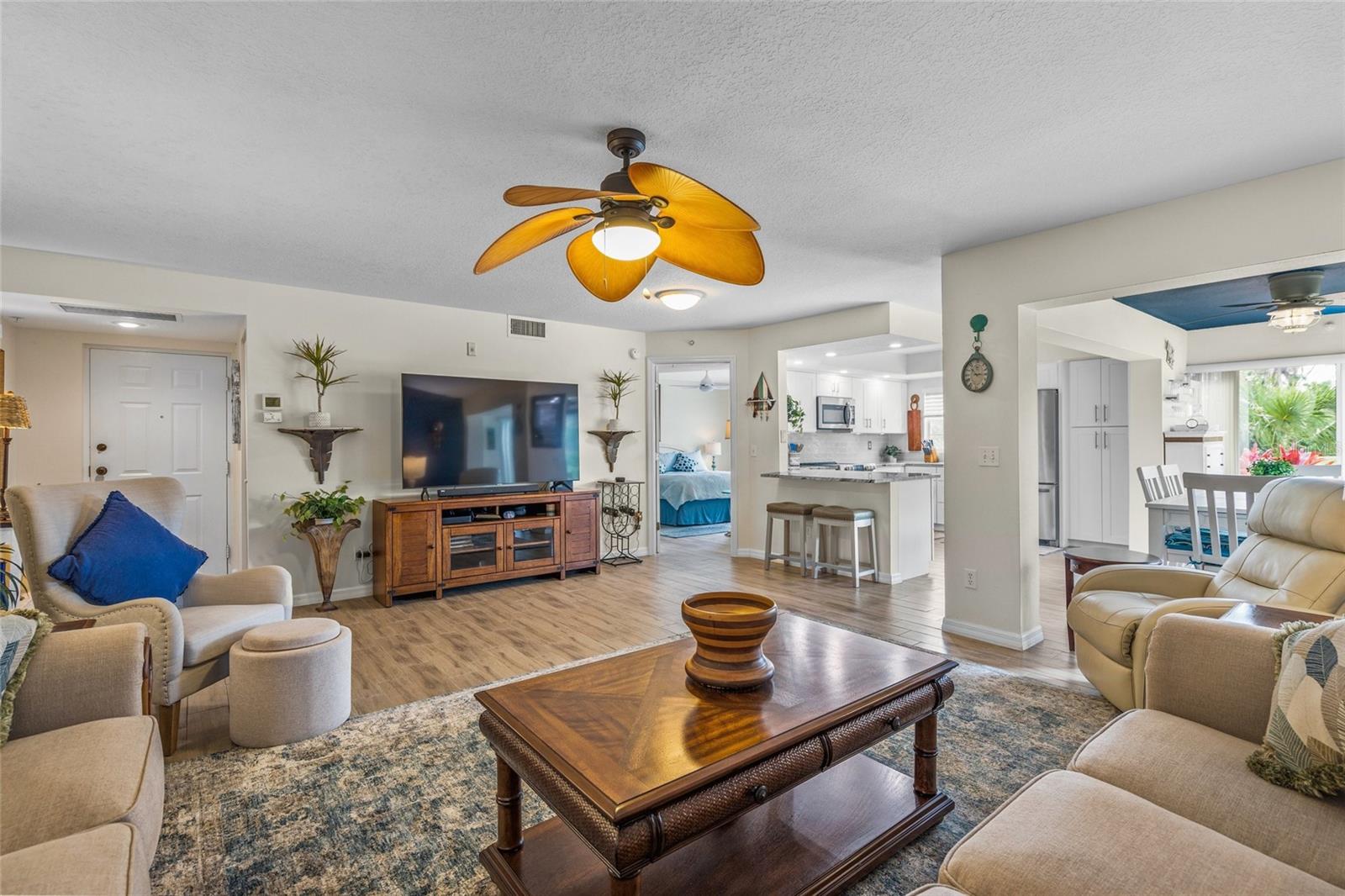 Many upgrades were made in this first floor level Venice area condo with a golf course view in the Gardens of St Andrews Park and within the Plantation Club community. HOA replaced building roof. Over $40,000 in improvements were made including a beautifully remodeled kitchen with all new stainless appliances, new kitchen cabinetry with pull outs and soft close doors and drawers, granite countertops with breakfast bar, and backsplash. Also a new A/C with a "smart" thermostat, and newer water heater. This light and bright 2 bedroom 2 bathroom home features plank tile flooring, an expansive great room, a dining area with large sliding glass doors to enhance the view of the Bobcat golf course at Plantation Golf and Country Club, spacious owner suite with dual sinks and walk-in closet, guest bedroom, interior laundry room, storage closet and covered car port. Exterior maintenance, 3 community pools, water and sewer and cable tv is included in the HOA fees. Nearby is the Plantation Golf and Country Club where optional membership offers two 18-hole golf courses, clubhouse, fitness, tennis courts and more. All this is in proximity to beautiful downtown Venice, area parks and beaches, retail, dining, and major highways. Some furniture and furnishings are included with the sale, and some items are available for sale separately. Seller has paid the $11,000 HOA Unit Assessment for building roof replacement. Please contact Agent for details.