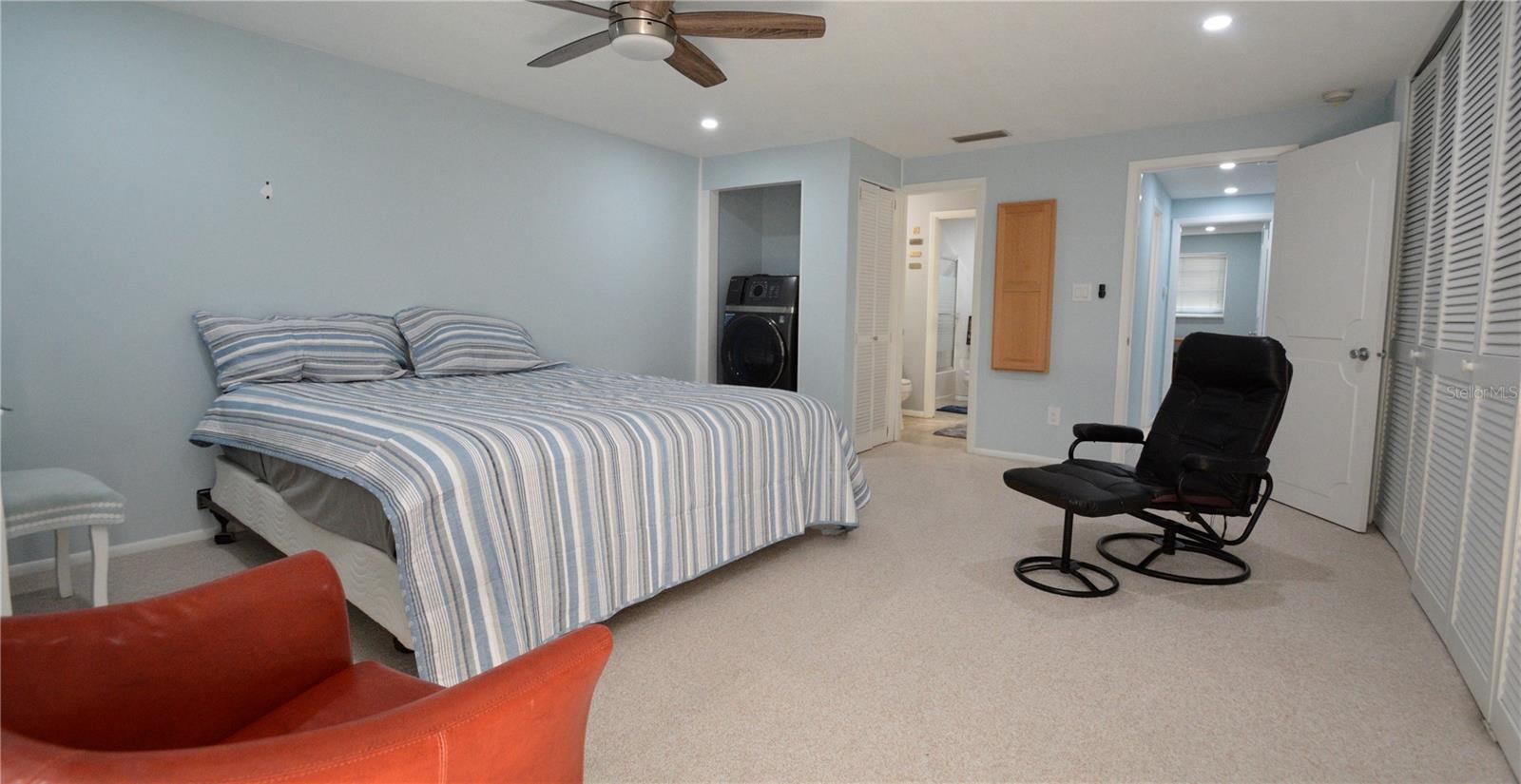 BEACH LIVING BY VENICE BEACH: This Townhouse is one building away from Venice Beach and 3 blocks from downtown Venice. The 2 bedrooms and 2.5 bath townhouse is being offered turn-key, ready to move in. The master bedroom suite has 15 feet of closets, a laundry closet with a new all in one washer & dryer in 2024 an a balcony overlooking the back yard. The guest room is roomy enough for two full size beds. New in 2024 Recessed LED lights in the ceiling throughout the home. Celling fans in all rooms. Interior freshly painted in 2024. New pavers by entrance area in 2024. The lanai offers a nice sitting area over looking the backyard. One parking spot in front of unit and extra public parking on Street. Roof was replaced by HOA in 2021, copy of Wind Mitigation available.