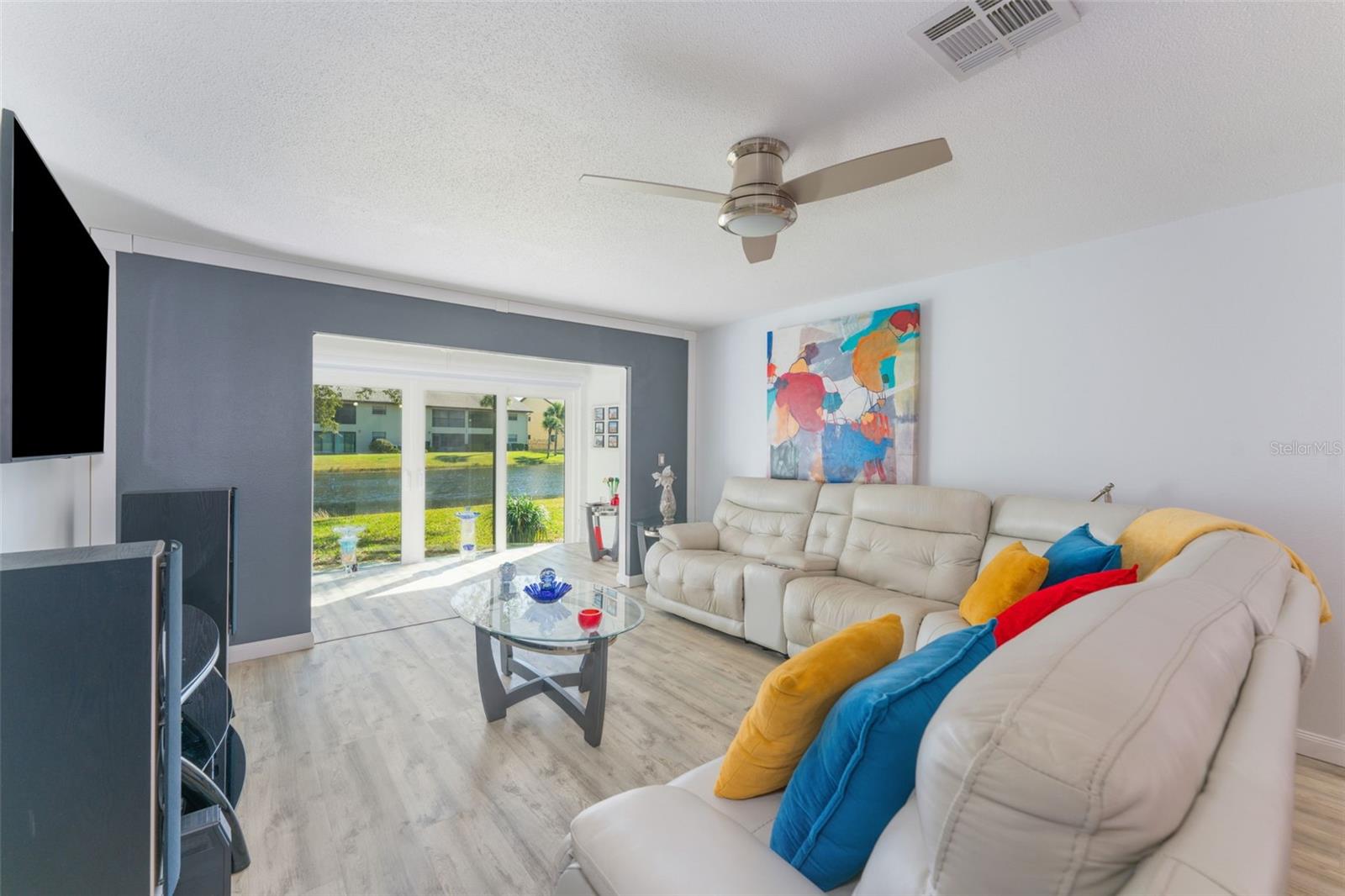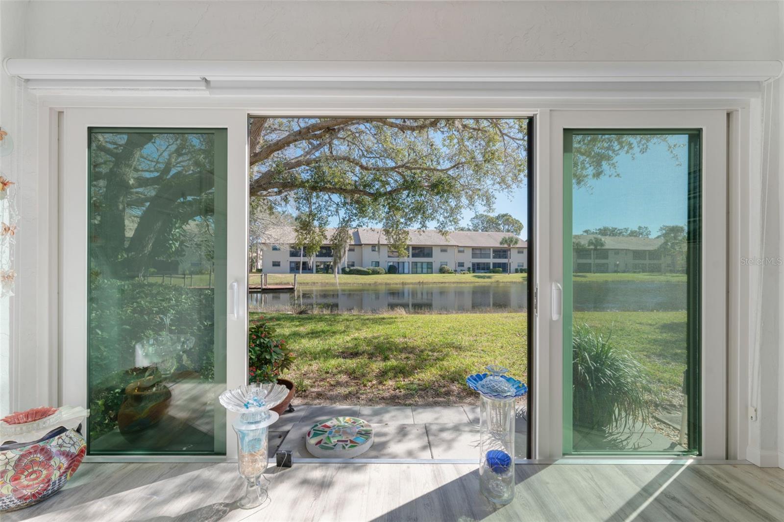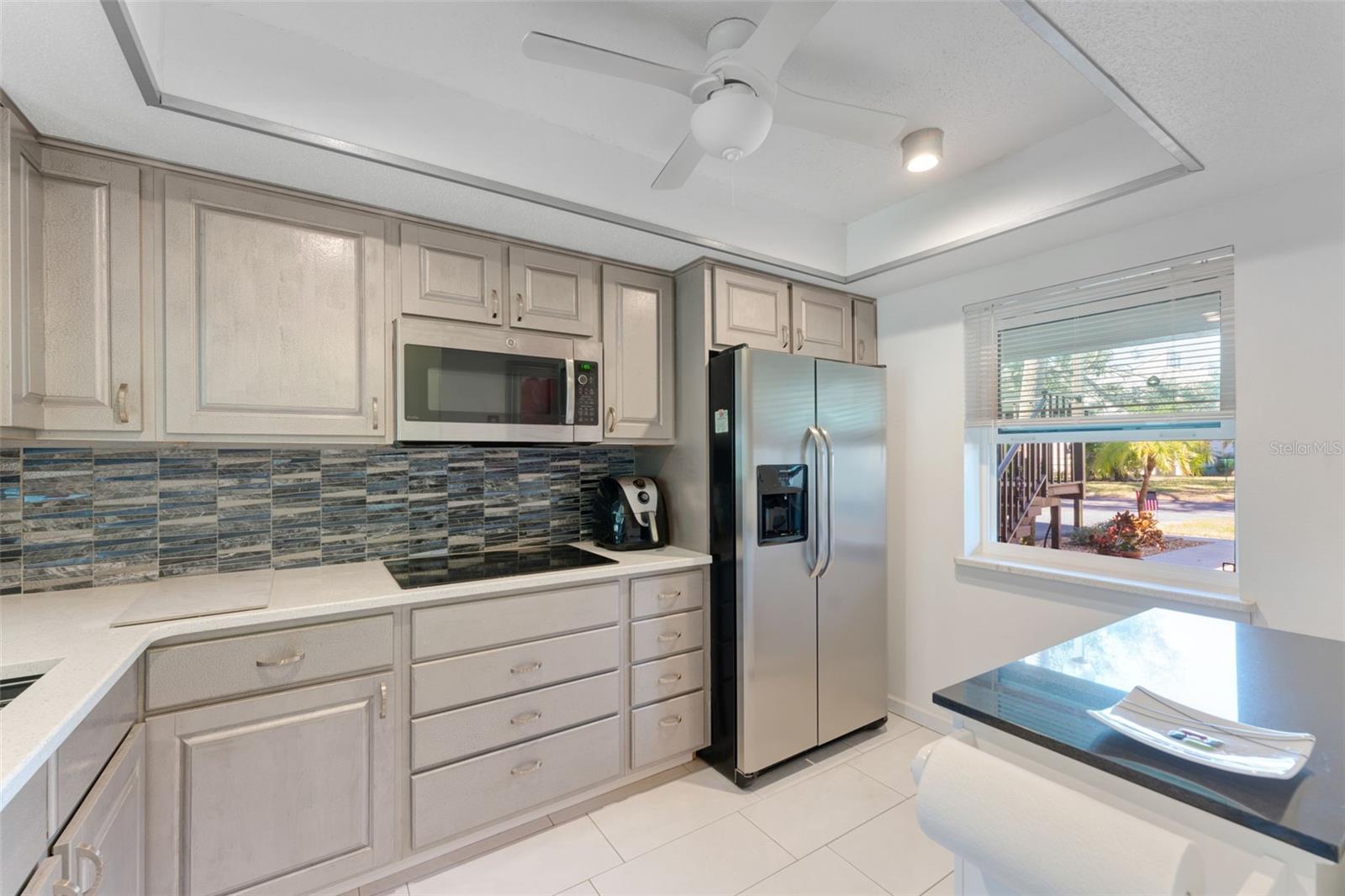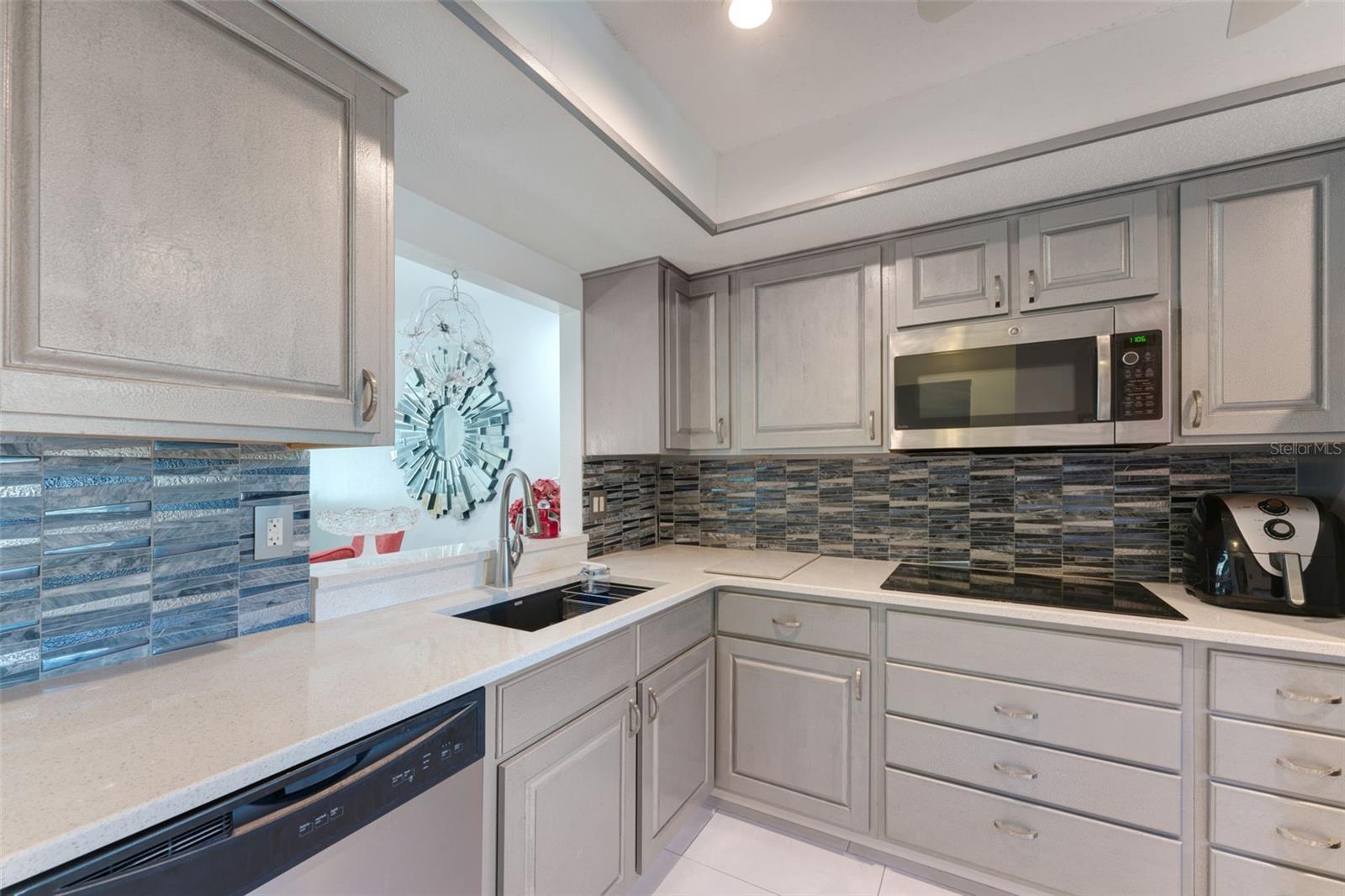 NO HURRICANE DAMAGE OR FLOODING! Welcome to the exquisite charm of Mission Lakes! Discover the allure of a beautifully renovated ground-floor unit nestled within a peaceful community. Revel in the captivating views of the serene pond and relish the convenience of three heated pools at your doorstep. Experience unparalleled peace of mind with HURRICANE-IMPACT WINDOWS and SLIDERS, fortifying your sanctuary against the elements while maintaining a tranquil atmosphere. Step into the culinary realm of the renovated kitchen, a true chef's paradise. It features custom-built cabinetry that seamlessly blends style and functionality, elegant quartz countertops, a chic backsplash, and stainless steel appliances. This includes a state-of-the-art convection microwave oven and an electric cooktop, setting the stage for culinary excellence. Embrace the harmony of new ceramic tiles in the kitchen and laminate flooring throughout, creating an aesthetic of seamless elegance. The primary bedroom is a haven of tranquility, offering direct lanai access, a capacious walk-in closet, and an en-suite bath adorned with a modern vanity and a recently updated walk-in shower. This home doesn’t just promise comfort but also practicality, featuring an in-unit washer and dryer and covered parking for 1 vehicle plus a second parking spot. Its prime location near the Island of Venice means you are just moments away from exquisite local shopping, diverse dining options, and pristine beaches. Engage with the vibrant community through local festivals and activities. The quarterly fees ensure hassle-free living, covering essentials such as cable TV, water, trash, and recycling services. This condo in Mission Lakes is more than a home; it’s a lifestyle choice, offering an impeccable blend of elegance, convenience, and community spirit.