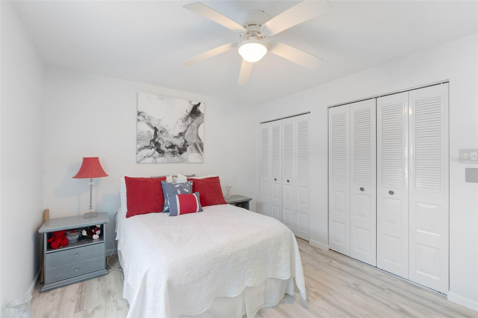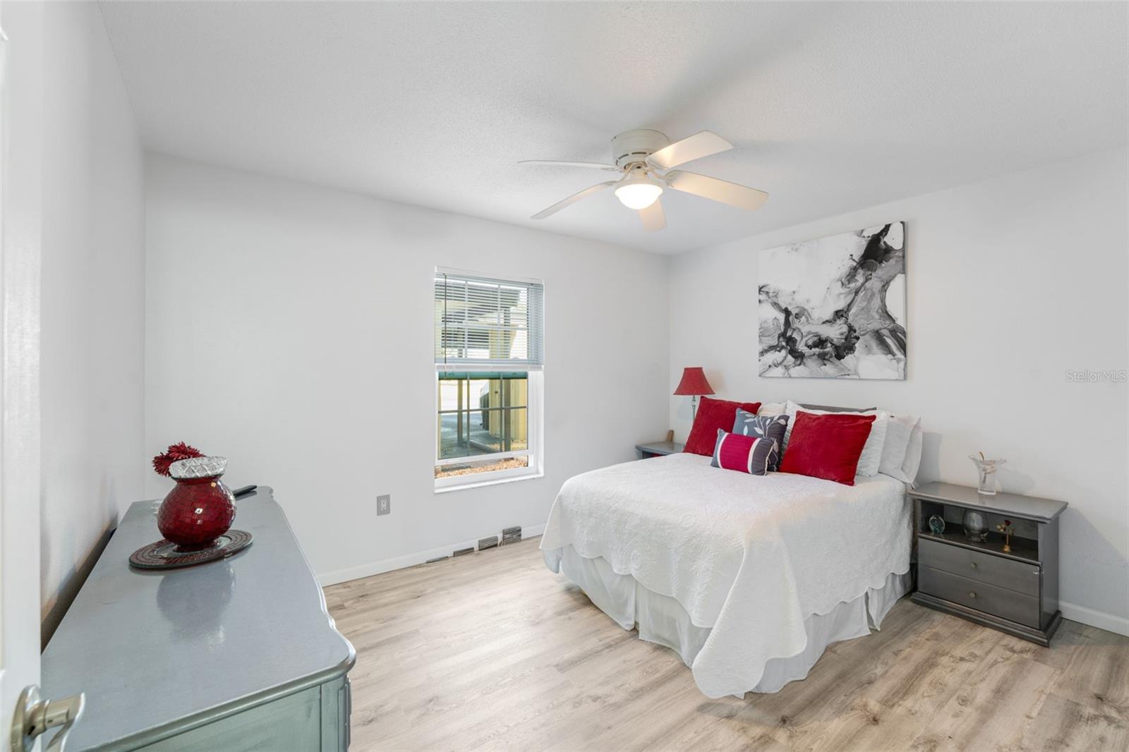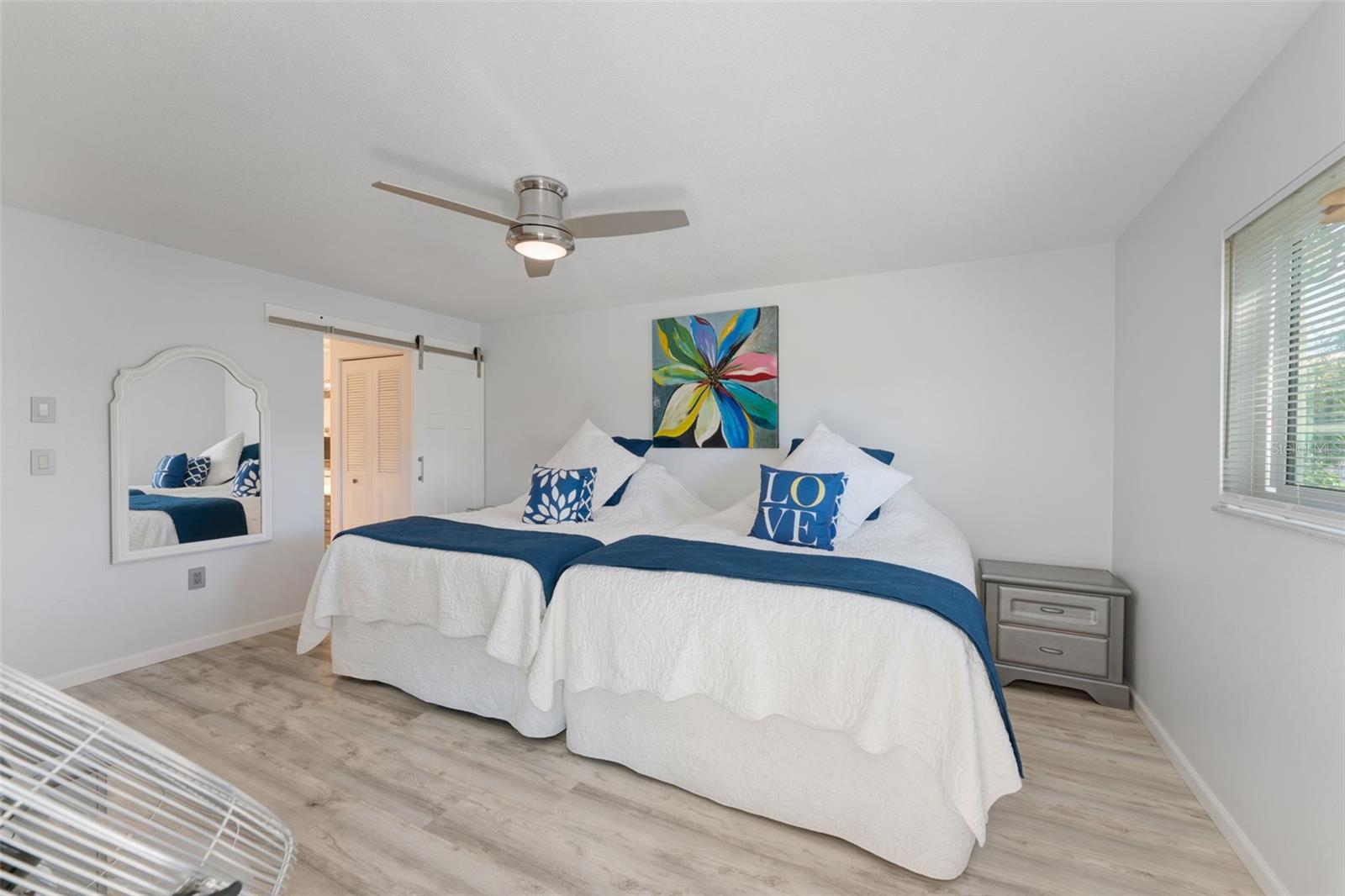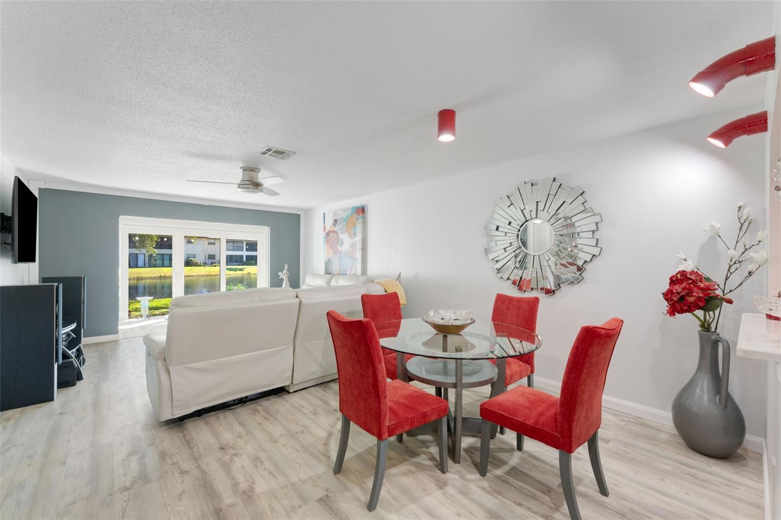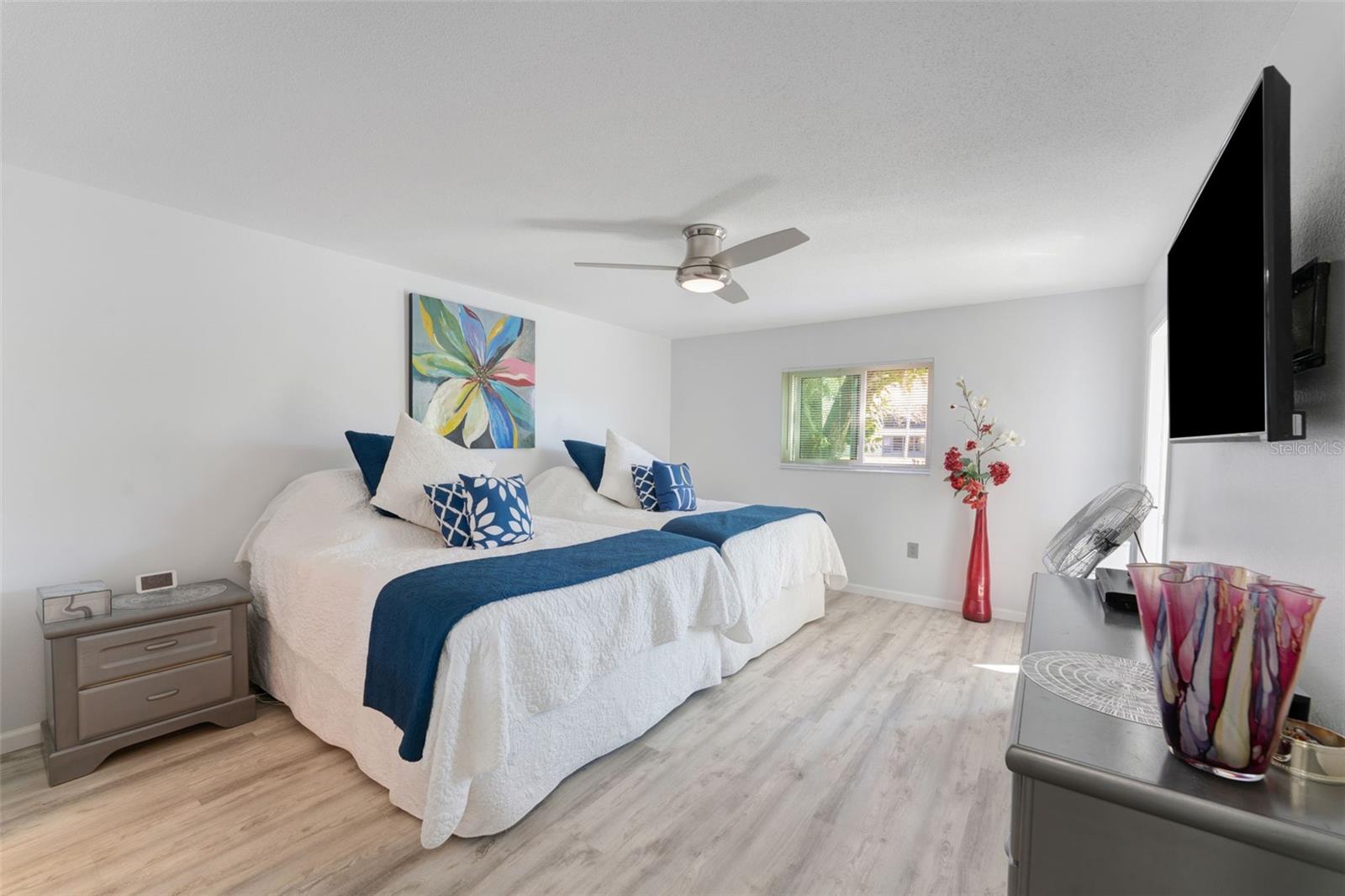 NO HURRICANE DAMAGE OR FLOODING! Welcome to the exquisite charm of Mission Lakes! Discover the allure of a beautifully renovated ground-floor unit nestled within a peaceful community. Revel in the captivating views of the serene pond and relish the convenience of three heated pools at your doorstep. Experience unparalleled peace of mind with HURRICANE-IMPACT WINDOWS and SLIDERS, fortifying your sanctuary against the elements while maintaining a tranquil atmosphere. Step into the culinary realm of the renovated kitchen, a true chef's paradise. It features custom-built cabinetry that seamlessly blends style and functionality, elegant quartz countertops, a chic backsplash, and stainless steel appliances. This includes a state-of-the-art convection microwave oven and an electric cooktop, setting the stage for culinary excellence. Embrace the harmony of new ceramic tiles in the kitchen and laminate flooring throughout, creating an aesthetic of seamless elegance. The primary bedroom is a haven of tranquility, offering direct lanai access, a capacious walk-in closet, and an en-suite bath adorned with a modern vanity and a recently updated walk-in shower. This home doesn’t just promise comfort but also practicality, featuring an in-unit washer and dryer and covered parking for 1 vehicle plus a second parking spot. Its prime location near the Island of Venice means you are just moments away from exquisite local shopping, diverse dining options, and pristine beaches. Engage with the vibrant community through local festivals and activities. The quarterly fees ensure hassle-free living, covering essentials such as cable TV, water, trash, and recycling services. This condo in Mission Lakes is more than a home; it’s a lifestyle choice, offering an impeccable blend of elegance, convenience, and community spirit.