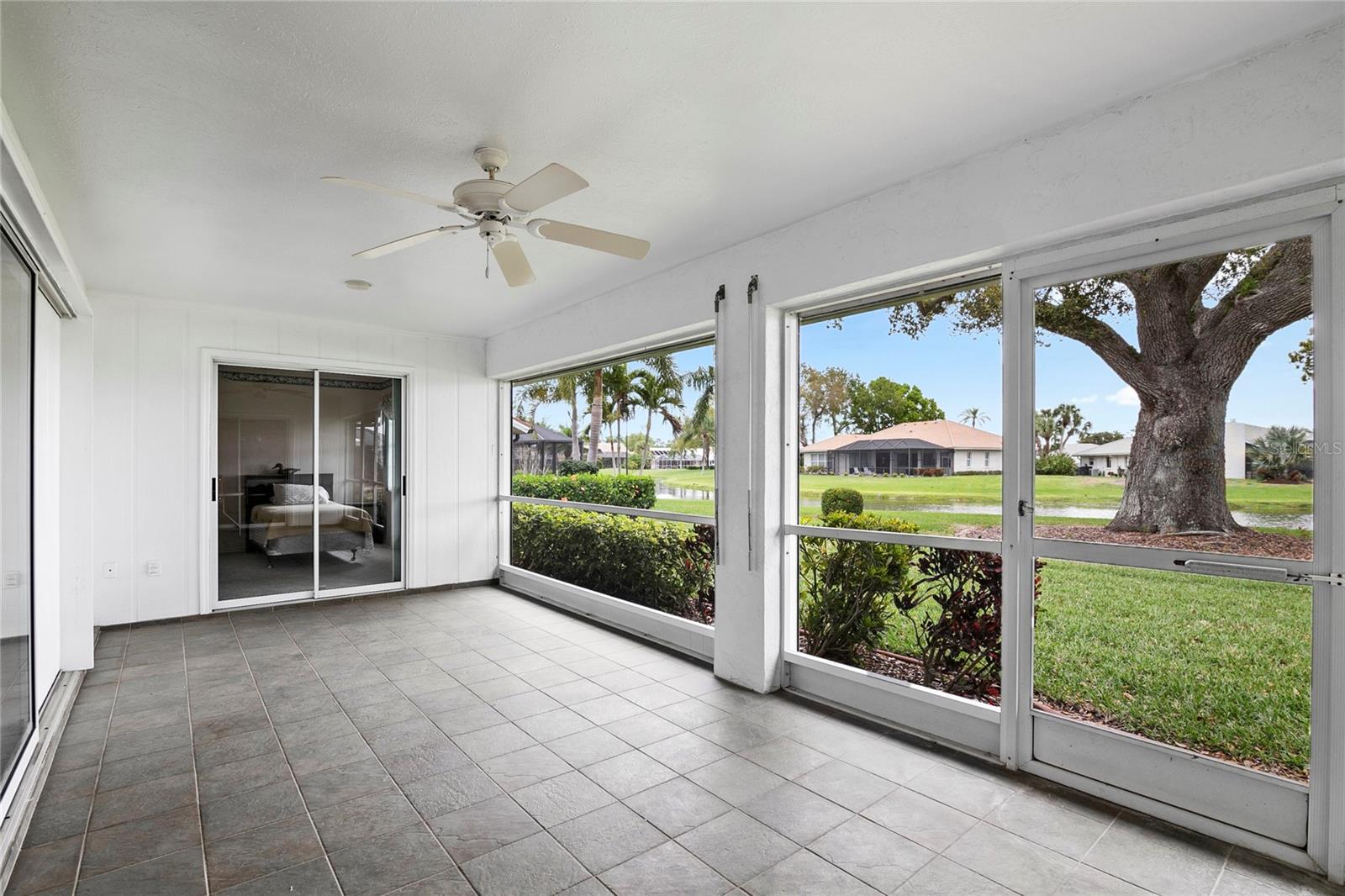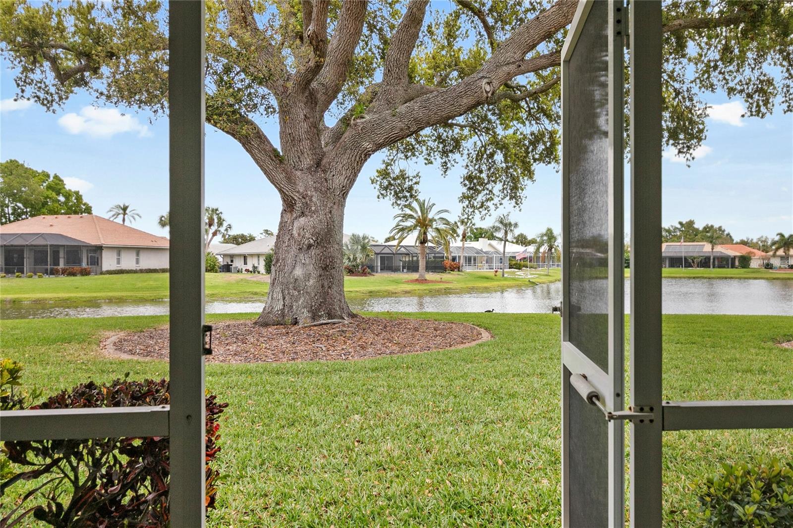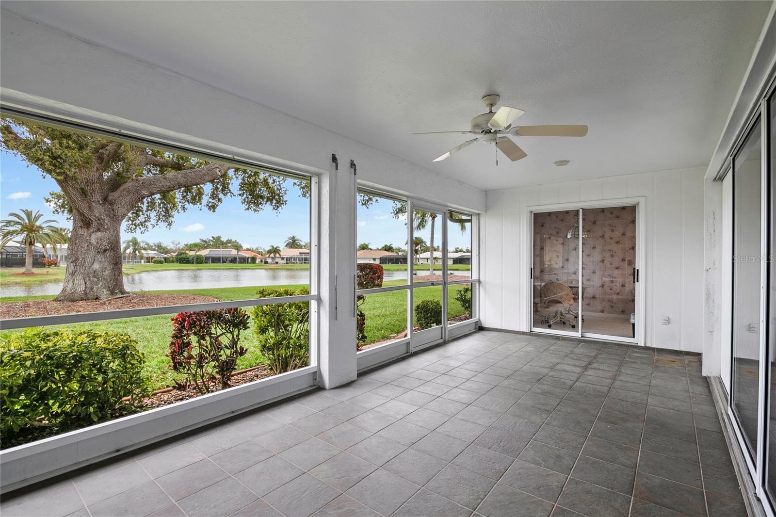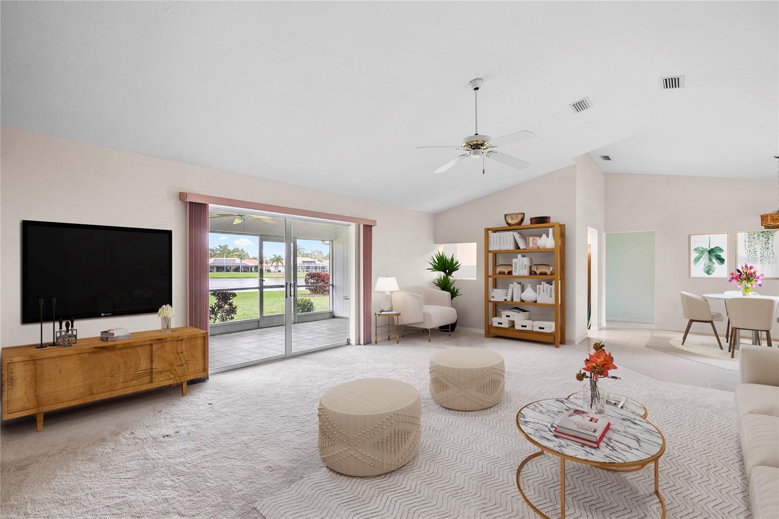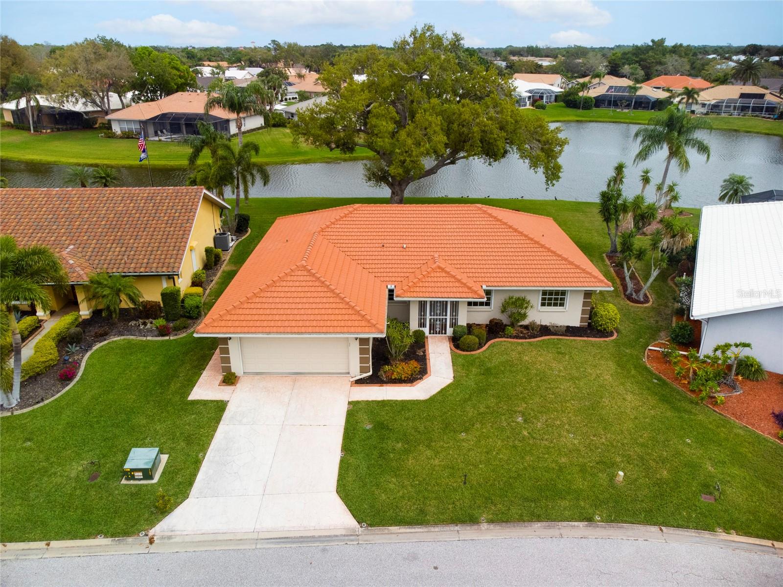 One or more photo(s) has been virtually staged. CONSIDERING ALL OFFERS!!! Nestled in a serene community boasting stunning lake views, this spacious home offers privacy and comfort on an oversized lot in a peaceful cul-de-sac. As you step inside, be greeted by abundant natural light streaming through large sliding glass doors, and the high ceilings creating an airy ambiance. The split floor plan ensures privacy, with the primary suite tucked away from the guest bedrooms. Indulge in the primary bedroom's retreat, complete with a walk-in closet, ensuite bathroom, and a private entrance to the screened-in lanai. Perfect for enjoying the beautiful lake view while unwinding or entertaining guests in a serene, insect-free environment. Updates abound, including 2019 Water Heater, 2024 dishwasher, 2022 washer & dryer, 2022 heat/A/C pump, 2024 garage door opener with camera and a garage keypad, fresh cleaned carpet and fresh exterior paint, ensuring efficiency. Plus, with storm installed shutters including 2024 electric shutters in the back, and a tile roof boasting 15 years of remaining life, peace of mind comes standard. The location is truly unbeatable, offering convenient proximity to numerous beaches, golf courses, shopping outlets, and restaurants. Experience resort-style amenities with access to the East Village Master Association's Recreation Center, featuring a large heated pool, tennis courts, library, fitness room, pickleball and more. All this, coupled with LOW HOA fees and NO CDD, makes this property an exceptional find in the sought-after Quail Lake Community. Come check it out!