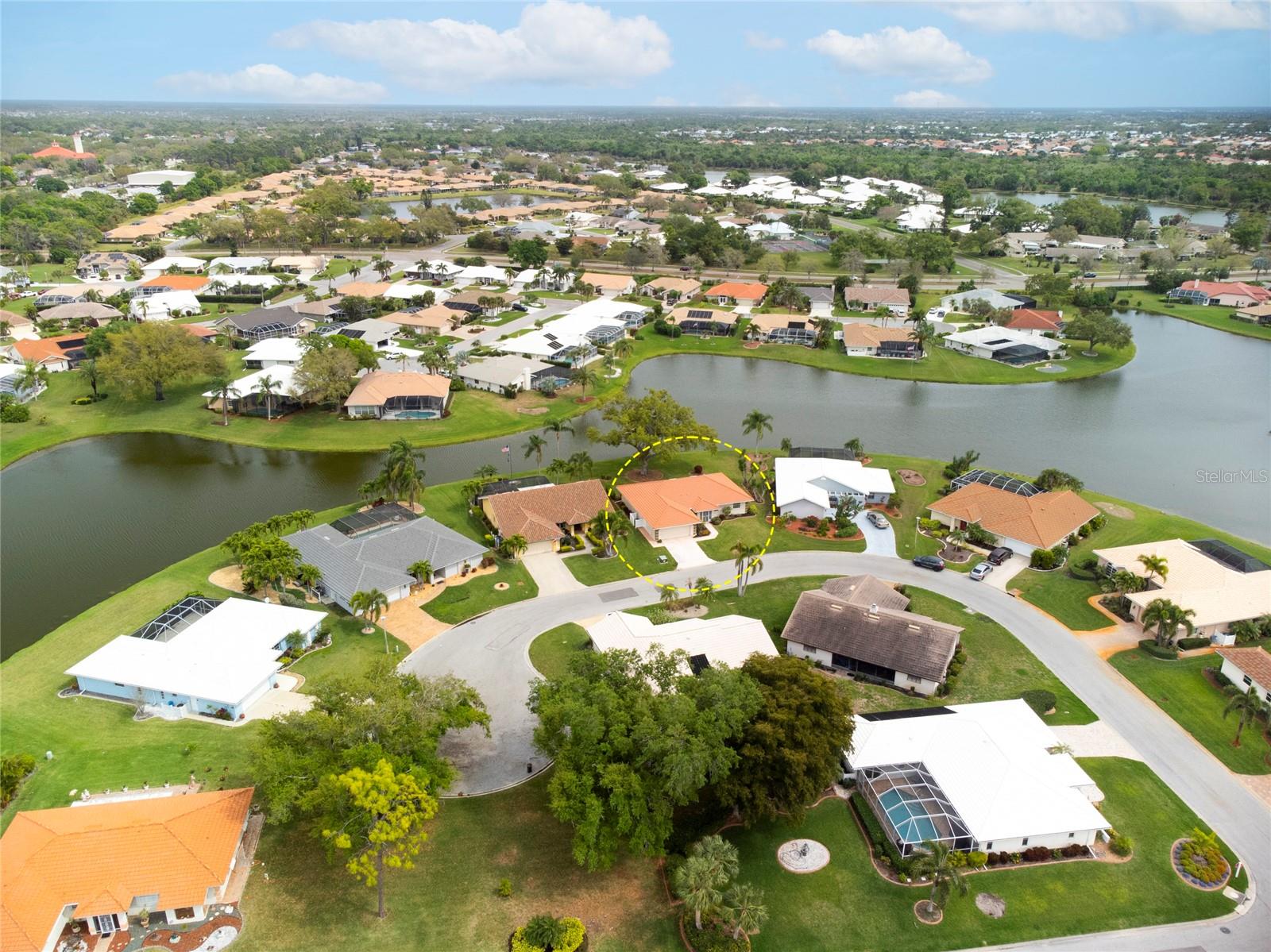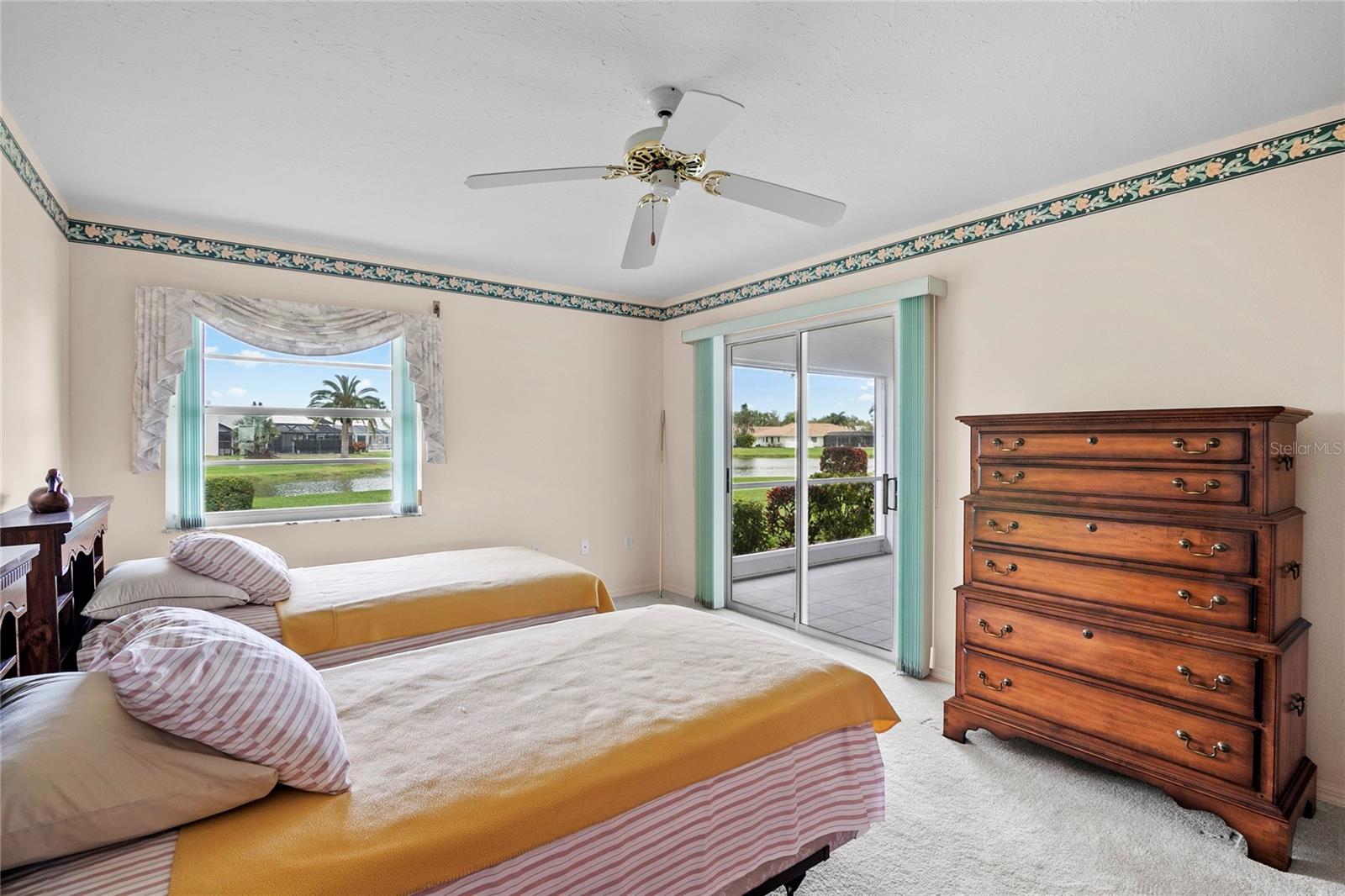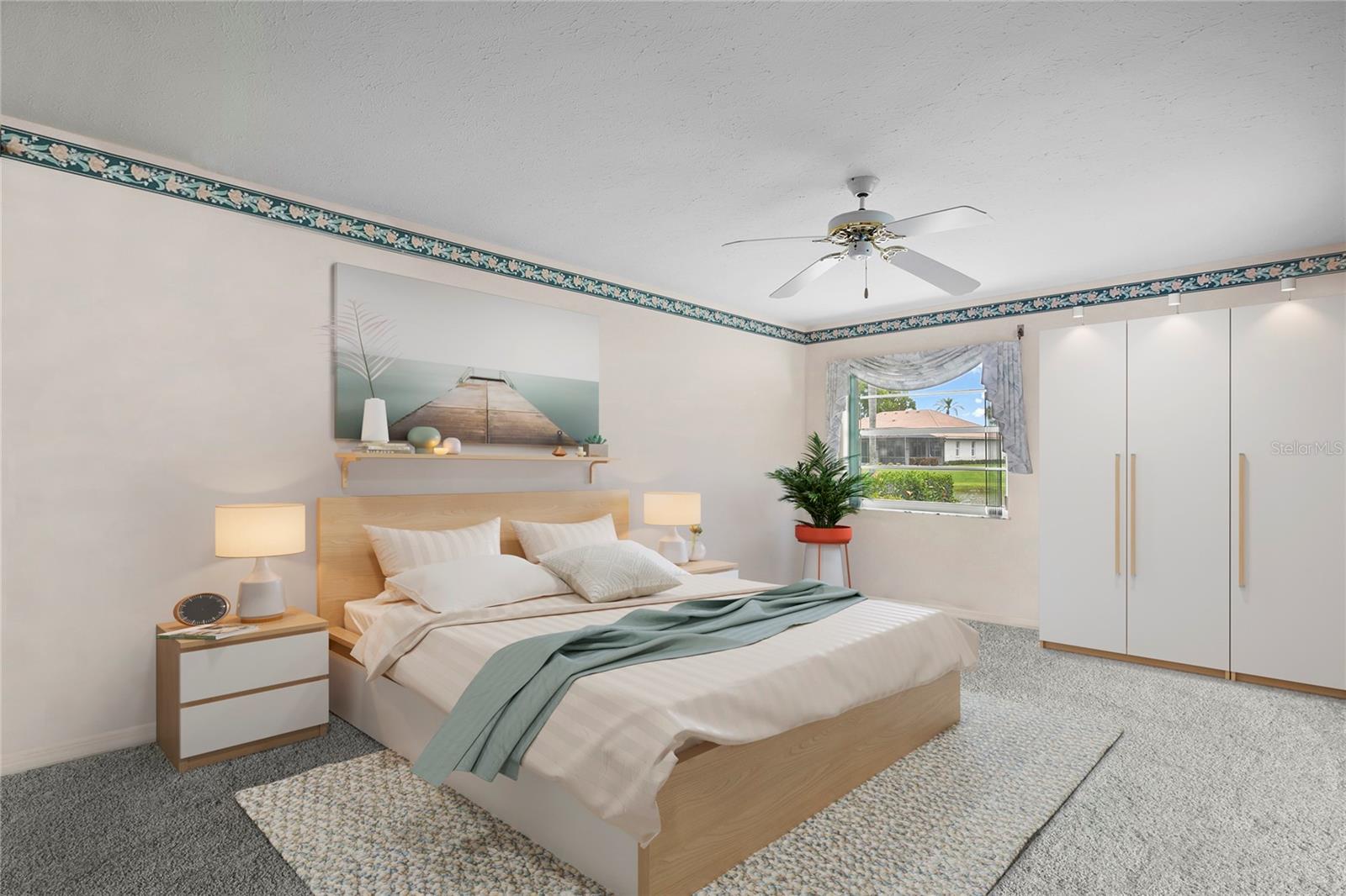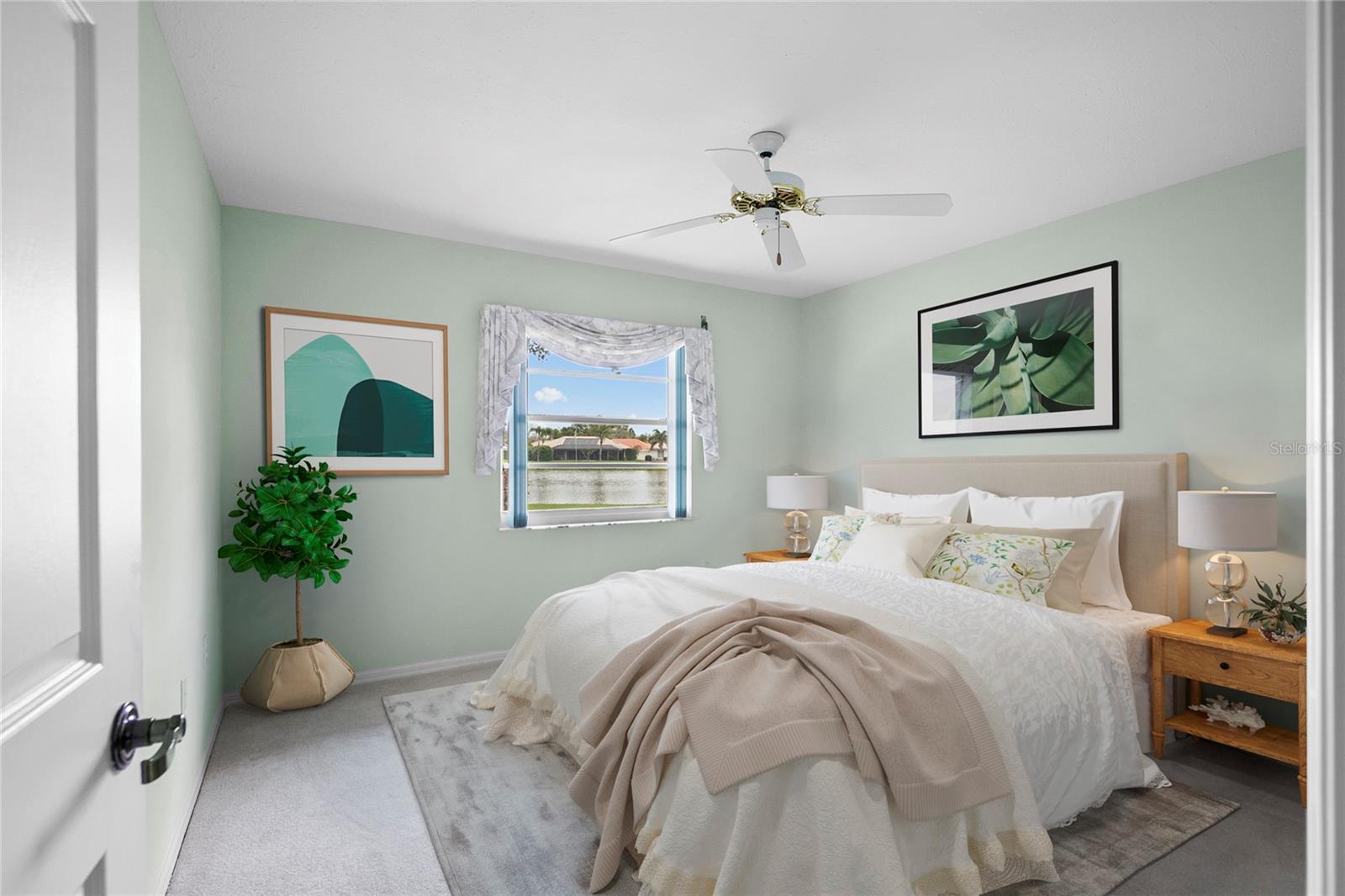 One or more photo(s) has been virtually staged. CONSIDERING ALL OFFERS!!! Nestled in a serene community boasting stunning lake views, this spacious home offers privacy and comfort on an oversized lot in a peaceful cul-de-sac. As you step inside, be greeted by abundant natural light streaming through large sliding glass doors, and the high ceilings creating an airy ambiance. The split floor plan ensures privacy, with the primary suite tucked away from the guest bedrooms. Indulge in the primary bedroom's retreat, complete with a walk-in closet, ensuite bathroom, and a private entrance to the screened-in lanai. Perfect for enjoying the beautiful lake view while unwinding or entertaining guests in a serene, insect-free environment. Updates abound, including 2019 Water Heater, 2024 dishwasher, 2022 washer & dryer, 2022 heat/A/C pump, 2024 garage door opener with camera and a garage keypad, fresh cleaned carpet and fresh exterior paint, ensuring efficiency. Plus, with storm installed shutters including 2024 electric shutters in the back, and a tile roof boasting 15 years of remaining life, peace of mind comes standard. The location is truly unbeatable, offering convenient proximity to numerous beaches, golf courses, shopping outlets, and restaurants. Experience resort-style amenities with access to the East Village Master Association's Recreation Center, featuring a large heated pool, tennis courts, library, fitness room, pickleball and more. All this, coupled with LOW HOA fees and NO CDD, makes this property an exceptional find in the sought-after Quail Lake Community. Come check it out!