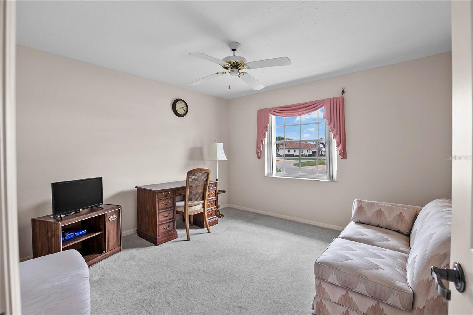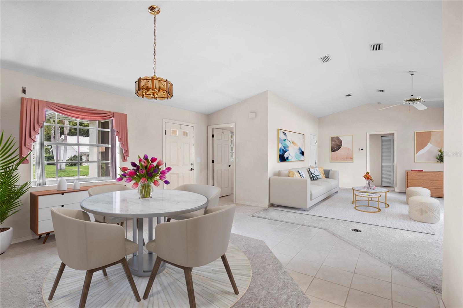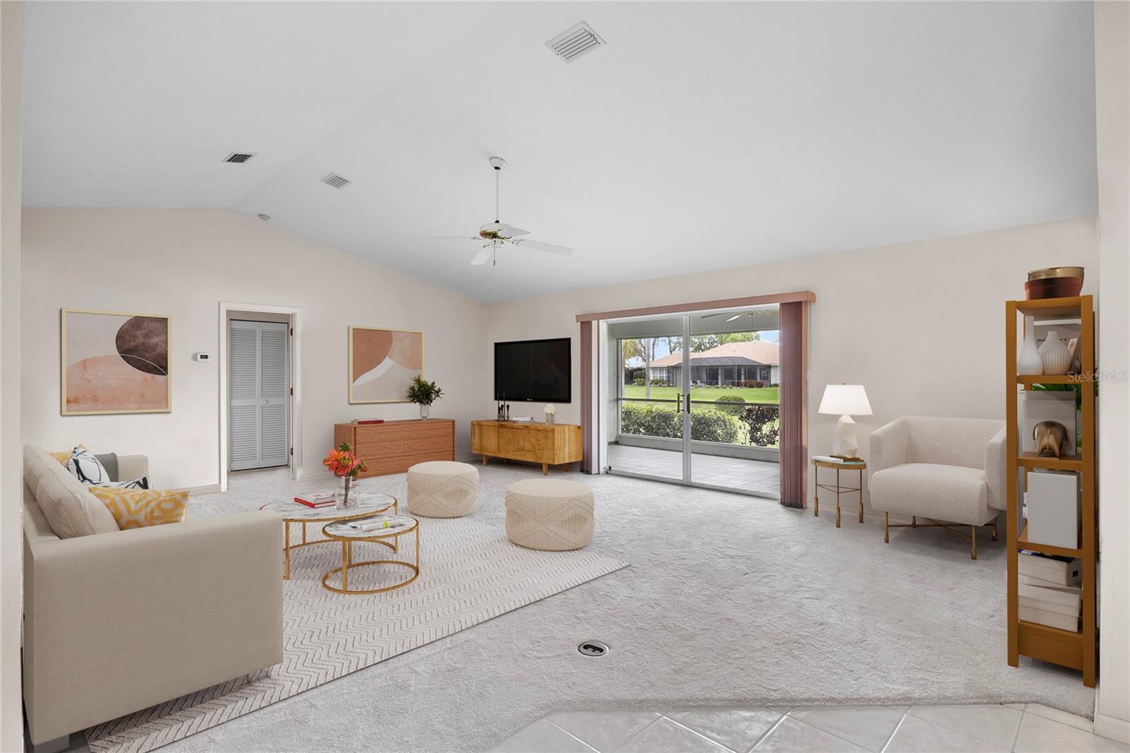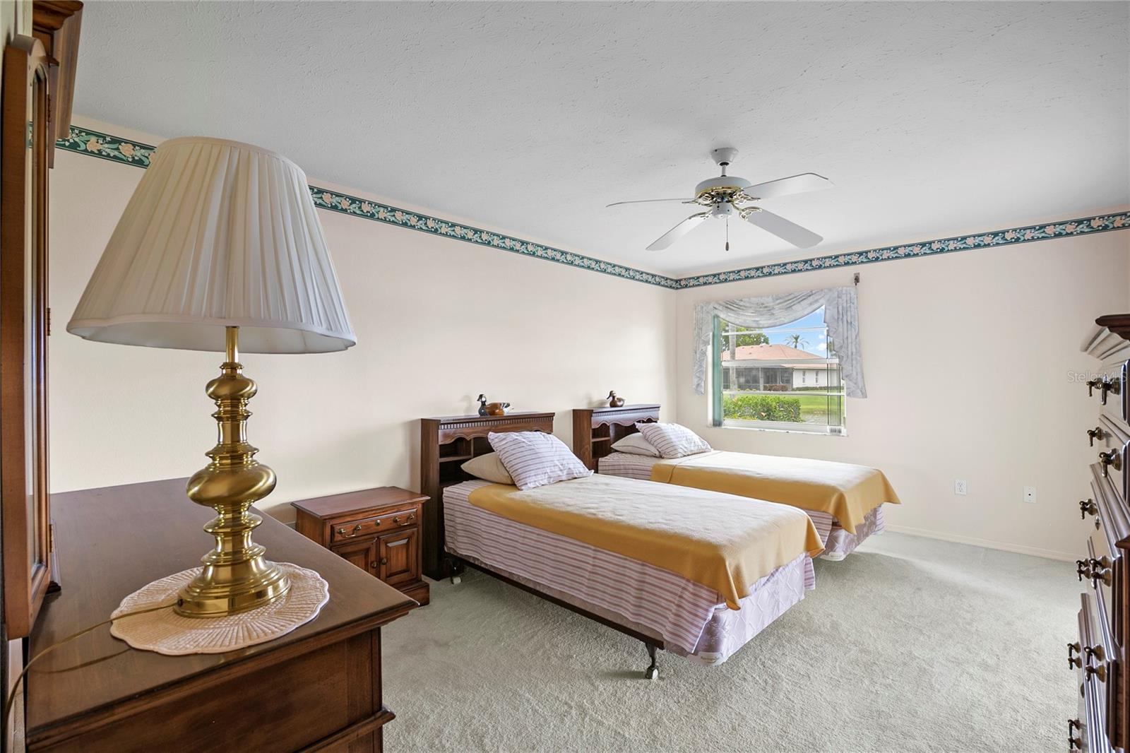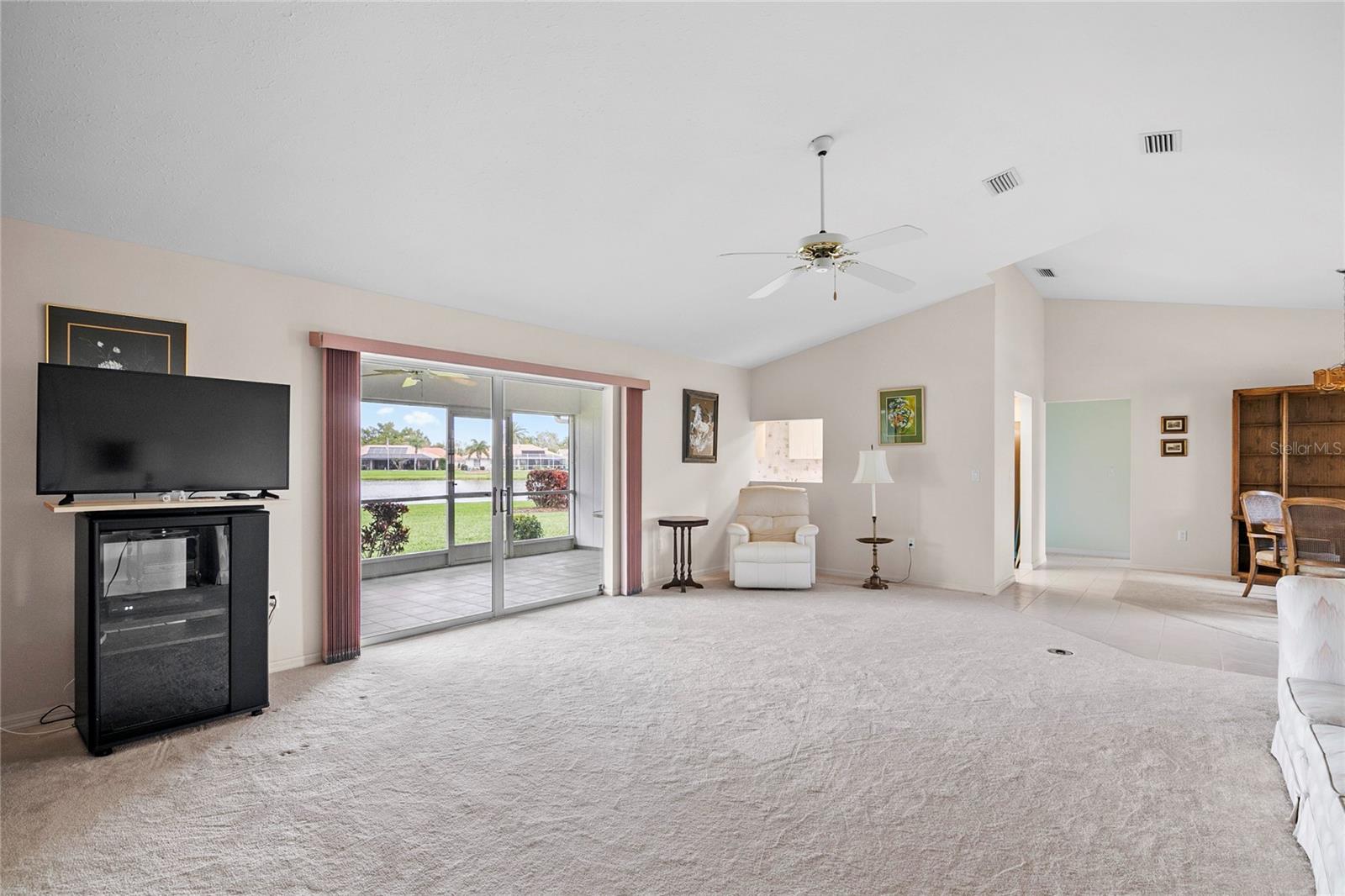 One or more photo(s) has been virtually staged. CONSIDERING ALL OFFERS!!! Nestled in a serene community boasting stunning lake views, this spacious home offers privacy and comfort on an oversized lot in a peaceful cul-de-sac. As you step inside, be greeted by abundant natural light streaming through large sliding glass doors, and the high ceilings creating an airy ambiance. The split floor plan ensures privacy, with the primary suite tucked away from the guest bedrooms. Indulge in the primary bedroom's retreat, complete with a walk-in closet, ensuite bathroom, and a private entrance to the screened-in lanai. Perfect for enjoying the beautiful lake view while unwinding or entertaining guests in a serene, insect-free environment. Updates abound, including 2019 Water Heater, 2024 dishwasher, 2022 washer & dryer, 2022 heat/A/C pump, 2024 garage door opener with camera and a garage keypad, fresh cleaned carpet and fresh exterior paint, ensuring efficiency. Plus, with storm installed shutters including 2024 electric shutters in the back, and a tile roof boasting 15 years of remaining life, peace of mind comes standard. The location is truly unbeatable, offering convenient proximity to numerous beaches, golf courses, shopping outlets, and restaurants. Experience resort-style amenities with access to the East Village Master Association's Recreation Center, featuring a large heated pool, tennis courts, library, fitness room, pickleball and more. All this, coupled with LOW HOA fees and NO CDD, makes this property an exceptional find in the sought-after Quail Lake Community. Come check it out!