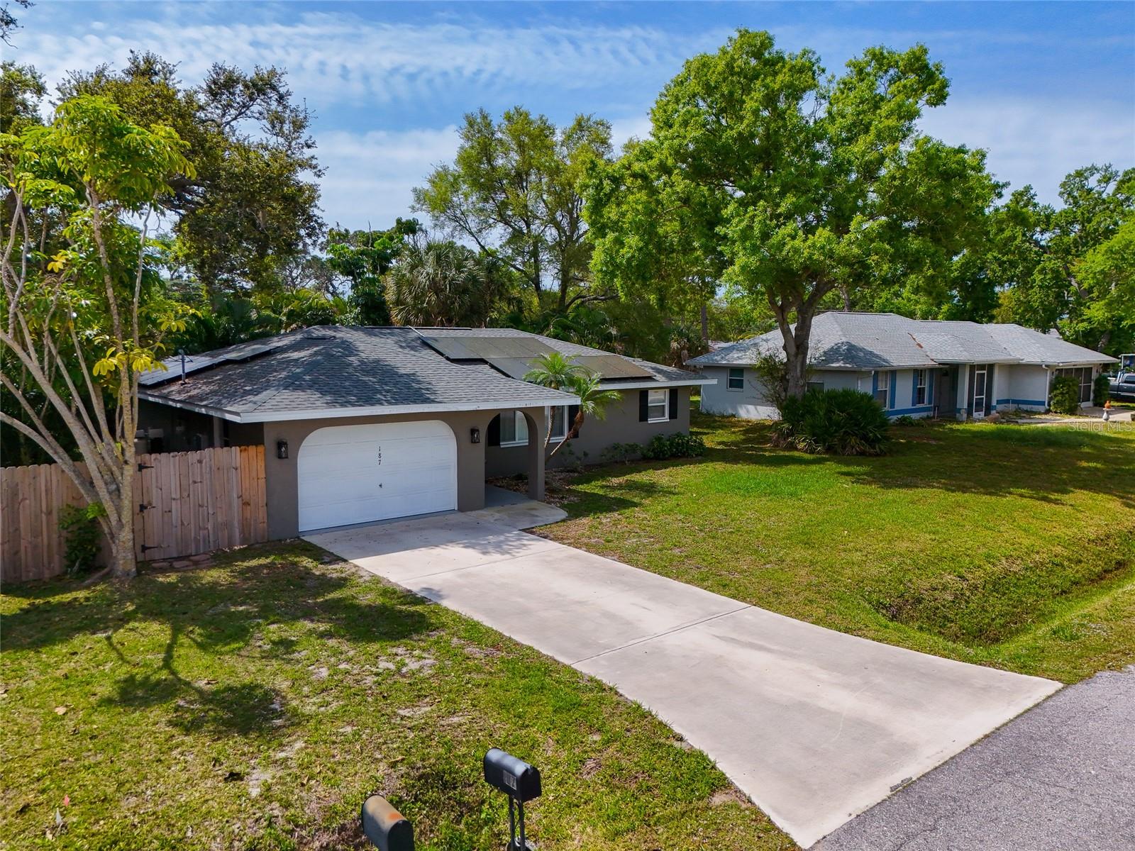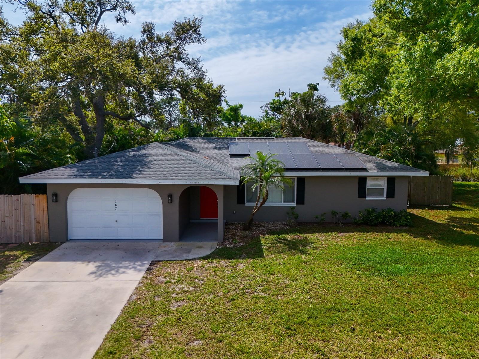 Seller is willing to review all reasonable offers. Welcome to your value-added Coastal Paradise! Nestled just minutes away from the pristine shores of Manasota Beach, Lemon Bay, and Casperson Beach, this charming 2-bedroom, 2-bathroom home with 1,208 sq ft. offers a new roof featuring SOLAR that was installed in 2023, ensuring energy efficiency and HUGE COST SAVINGS for years to come on your FPL bill. That's right, your electric bill will be reduced to a very, very low amount. Step inside and be greeted by an abundance of natural light that illuminates the spacious living areas, creating a warm and inviting atmosphere. The floor plan seamlessly connects the living room, dining area, and kitchen, making it perfect for entertaining guests or enjoying cozy nights in with loved ones. The kitchen boasts modern appliances, custom lighting and ample cabinet space that makes meal preparation a breeze. Whether you're whipping up a gourmet feast or enjoying your morning cup of coffee, this kitchen is sure to inspire your inner chef. Retreat to the tranquil master suite, complete with a well-appointed en suite bathroom and plenty of closet space for all your storage needs. The second bedroom offers versatility and can be used as a guest room, home office, or hobby space, ensuring there's room for everyone to feel right at home. Step outside to your screened lanai and discover your own private oasis, where lush landscaping, Areca Palms and trees provide the perfect backdrop for outdoor relaxation. Enjoy dining on the spacious patio, soak up the Florida sunshine or simply unwind with a good book in your own slice of paradise. The fenced backyard is a secure retreat, offering privacy and peace for the homeowner, guests, and pets alike. This home has been meticulously maintained and updated. The septic system was pumped in February 2023, and a new sulfur filter was installed in November 2023, providing peace of mind and worry-free living. There is NO HOA, CDD, water or sewer bill as well. Conveniently located near shopping, dining, and entertainment options, this home offers the best of both worlds - the tranquility of coastal living with the convenience of city amenities. Don't miss your chance to make this retreat your own - schedule your private showing today and start living the Florida lifestyle you've always dreamed of!