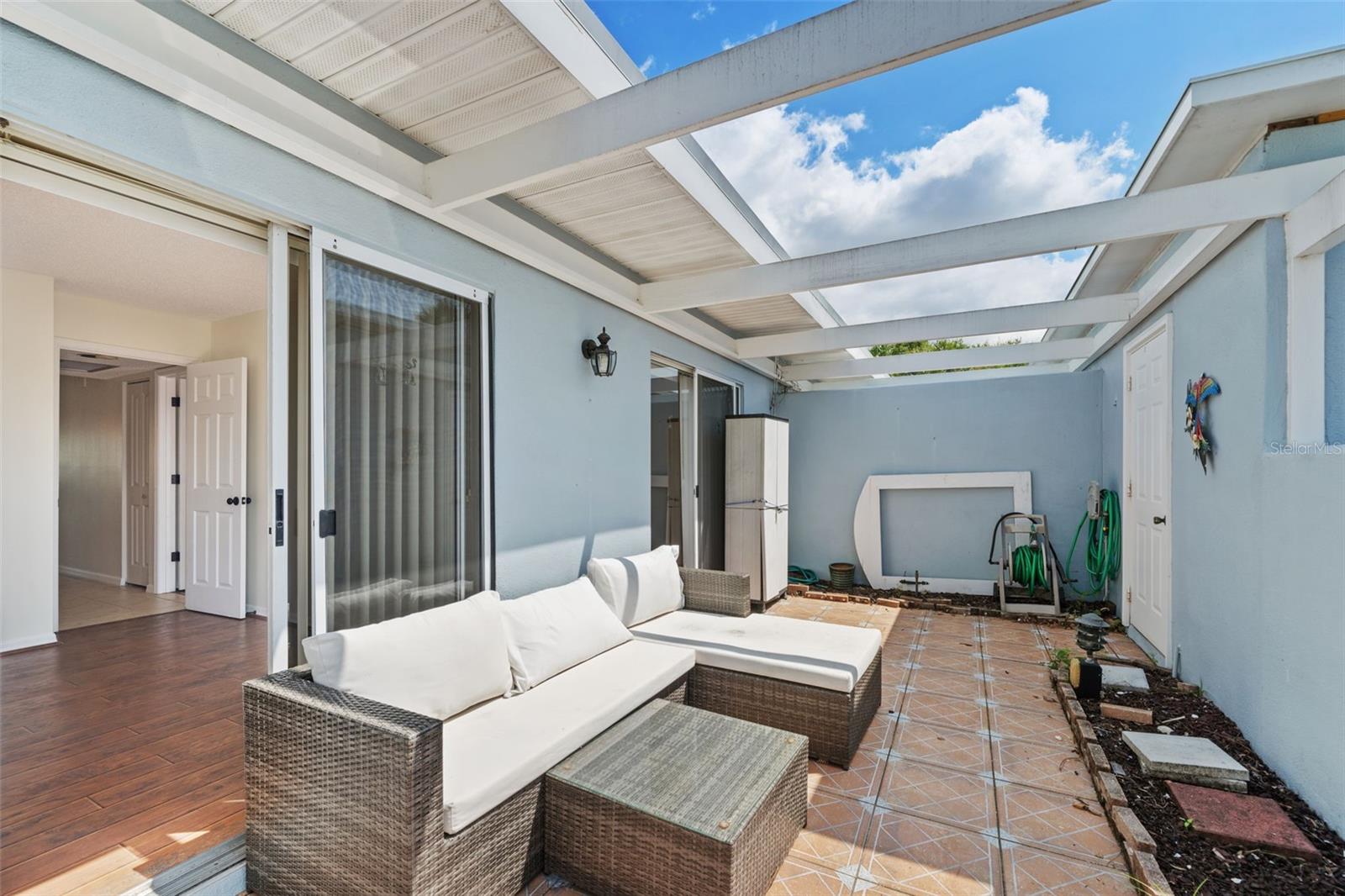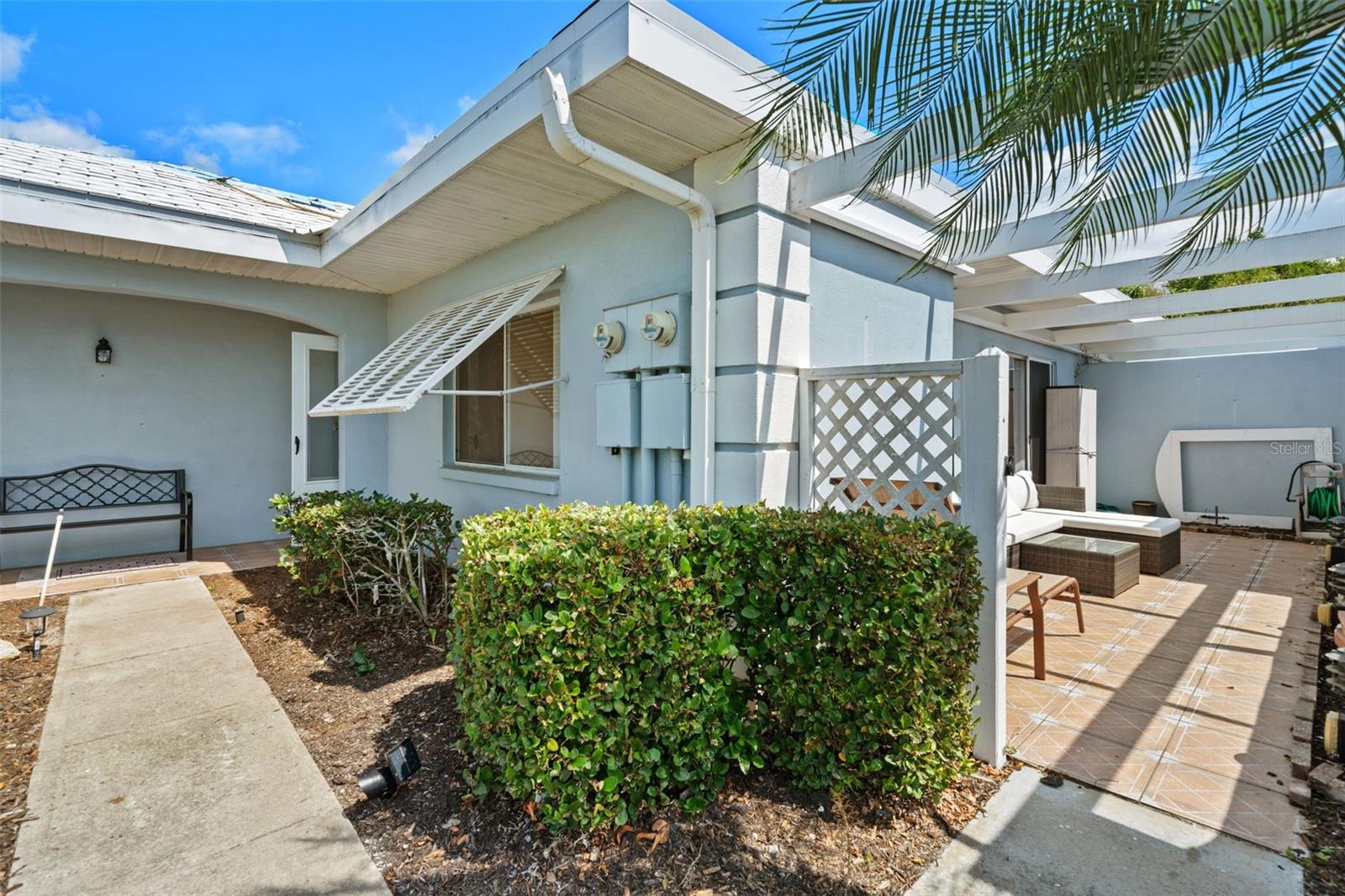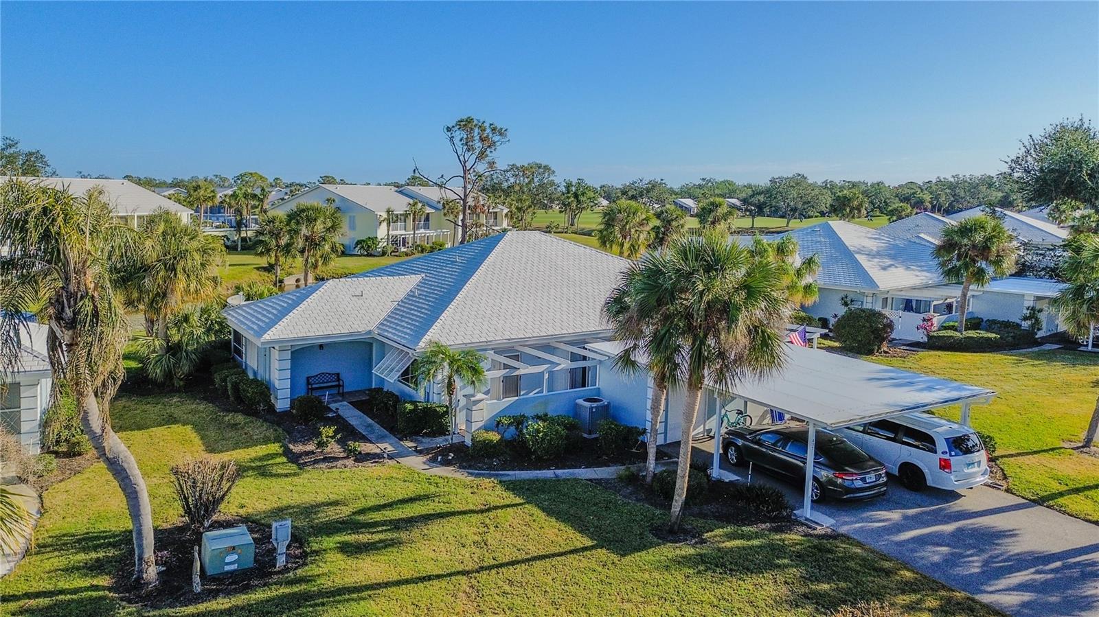 Welcome to this beautiful villa within the development of Plantation Golf and Country Club with many different types of memberships that are available but not mandatory ! The kitchen has been recently updated with brand-new appliances, so you can cook your favorite meals with ease. A new roof is currently being installed (2024), so you can rest assured that your home is protected from the elements. The tile and grout have been recently professionally cleaned and sealed, giving the home a fresh and new look. You'll love the convenience of the front patio access from the primary bedroom. The washer and dryer are conveniently located in the front shed attached to the carport. This home is move-in ready and waiting for you to make it your own! Five minutes to Wellen Park and The Atlanta Braves Spring Training facility, Fifteen minutes to nearby beaches and downtown historic Venice. Whether you're a full time resident or a snowbird, come check out this great opportunity!
