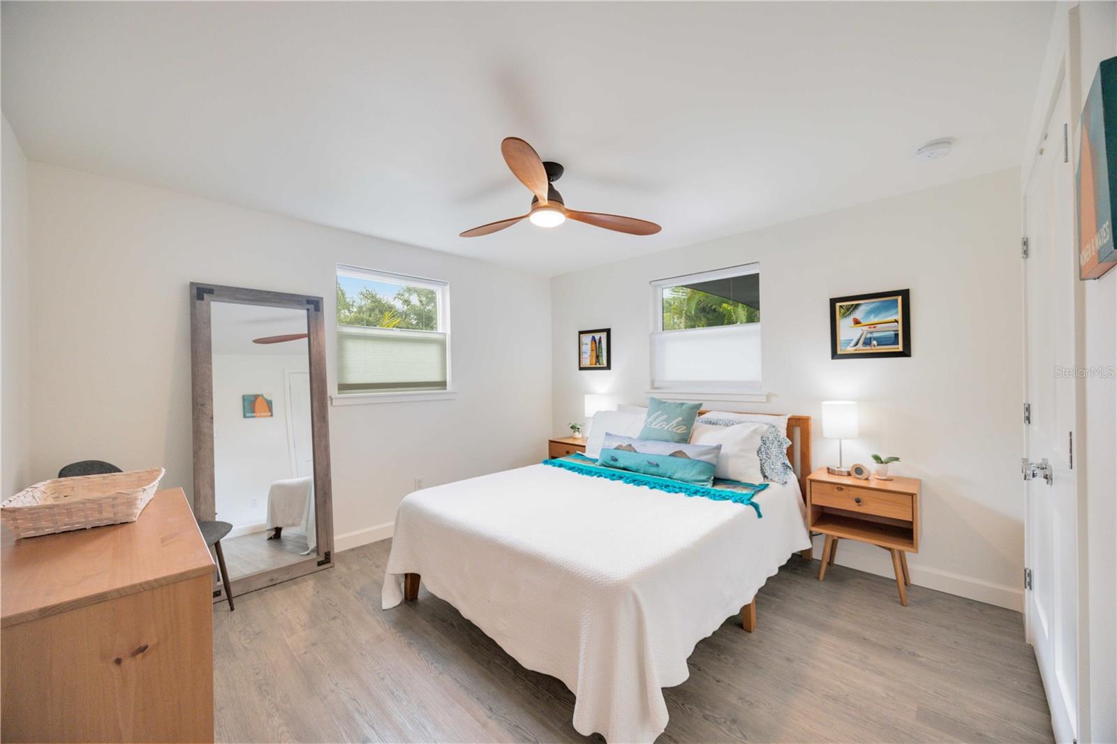 Welcome to your own piece of paradise in the esteemed Beach Manor subdivision, where island living seamlessly blends with coastal luxury. Situated in an X flood zone, offers tranquility, convenience, and limitless potential. Located less than a mile from the pristine shores of Venice Beach, this exceptional property is perfect for beach enthusiasts and aviation aficionados alike, with proximity to a private airport. Significant upgrades have been meticulously completed. Installed all-new luxury vinyl plank flooring and a new exterior hurricane impact slider in the sunroom. Freshly painted interior walls create a clean and inviting atmosphere, while modern door hardware, chic cordless top-down, bottom-up light-filtering shades, and solid core interior doors add both style and functionality. This home features white ventilated wood closet systems with full-extension drawers, ensuring clutter-free living and easy access to your belongings. Energy-efficient Koho Indoor Contemporary Oil Rubbed Bronze Ceiling Fans are installed in every room, providing optimal comfort and cost-effectiveness. Utilities have been strategically relocated to accommodate a future pool, while lush Areca Palms line the property, creating a serene outdoor sanctuary. Jeld-Wen Impact windows and Therma-Tru Impact Doors with Low-E Glass offer hurricane protection and energy efficiency, ensuring safety and style. Being in an X flood zone means no flood insurance is required, adding to your peace of mind. Venice Beach beckons just moments away, offering sun, surf, and sand within biking distance. World-class dining, shopping, and entertainment options are also within reach. Whether you're a beach enthusiast, a pilot, or seeking the perfect island retreat, this home offers it all. Don't miss the chance to embrace the vibrant Venice Beach lifestyle. Contact us today to schedule your showing and start living the coastal dream you've always desired!