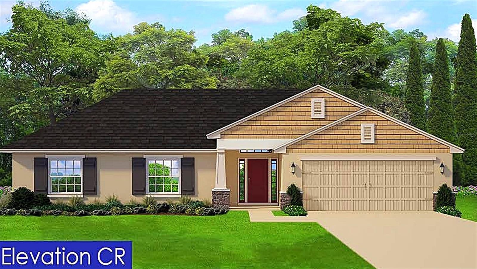 Under Construction. Embrace the excitement of homeownership with this remarkable 3-bedroom, 2-bath, PLUS a den/office/craft room, currently nearing completion. Step through the doors into a space where elegance meets functionality. Revel in the cohesive design featuring tiled flooring throughout, excluding the bedrooms, ensuring a seamless blend of style and practicality. The heart of the home, the open kitchen, beckons with an abundance of counter space, 36" upper custom wood cabinets adorned with crown molding, stainless steel appliances, a pantry, and designer recessed lighting. The master suite beckons as a retreat, boasting a 5 ' tiled shower, and double sinks with granite counters. Noteworthy details include crown molding over the 36" kitchen cabinets, and a covered lanai—perfect for outdoor relaxation. This 1755 sq ft residence invites you to be part of a flourishing community. Seize the opportunity to shape your future—come and explore the promise of this new home, where comfort and style converge seamlessly. Schedule your visit today and witness the unfolding of your dream lifestyle!