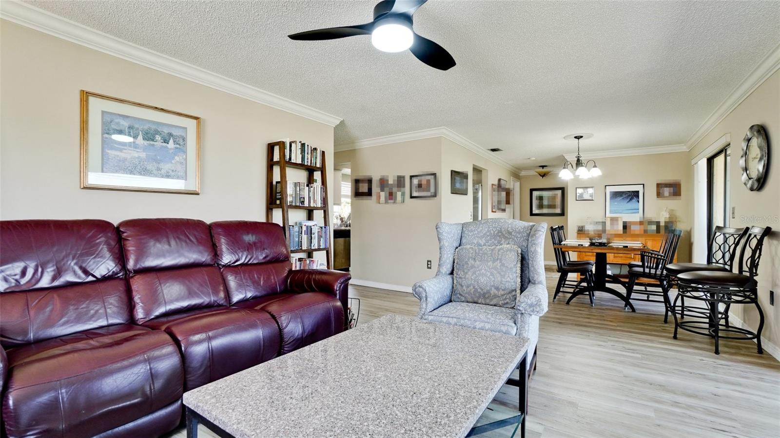 Enjoy resort-style living all year-round in this bright and cheery condo in Villa Nova, an active 55+ community of only 50 maintenance-free units. Summertime has never been easier - there is nothing left for you to do in this updated 2 bedroom, 2 bath condo - except pack up your flip-flops and sunscreen and get ready to relax. Both full baths and kitchen were completely renovated in 2017, as well as a new AC and hot water heater. Easy-care laminate hardwood flooring installed throughout in 2023, and brand-new vinyl sliders installed on the oversized screened-in Florida Rom this spring. This quiet 2nd-floor condo offers a convenient laundry room with utility sink, and there is extra storage for your beach gear in the large walk-in closet in the hallway. Lots of improvements have been made throughout the complex as well including exterior painting, new roofs, resurfaced pool, and landscaping. The heated pool and clubhouse are just a short walk from your new home, where you will enjoy mingling with friends, working out on the fitness equipment, and enjoying books from the lending library. This vibrant community is close to the beach, shopping, dining and downtown Venice with it's many cultural events and festivals. So what are you waiting for? Let's get this party started!
