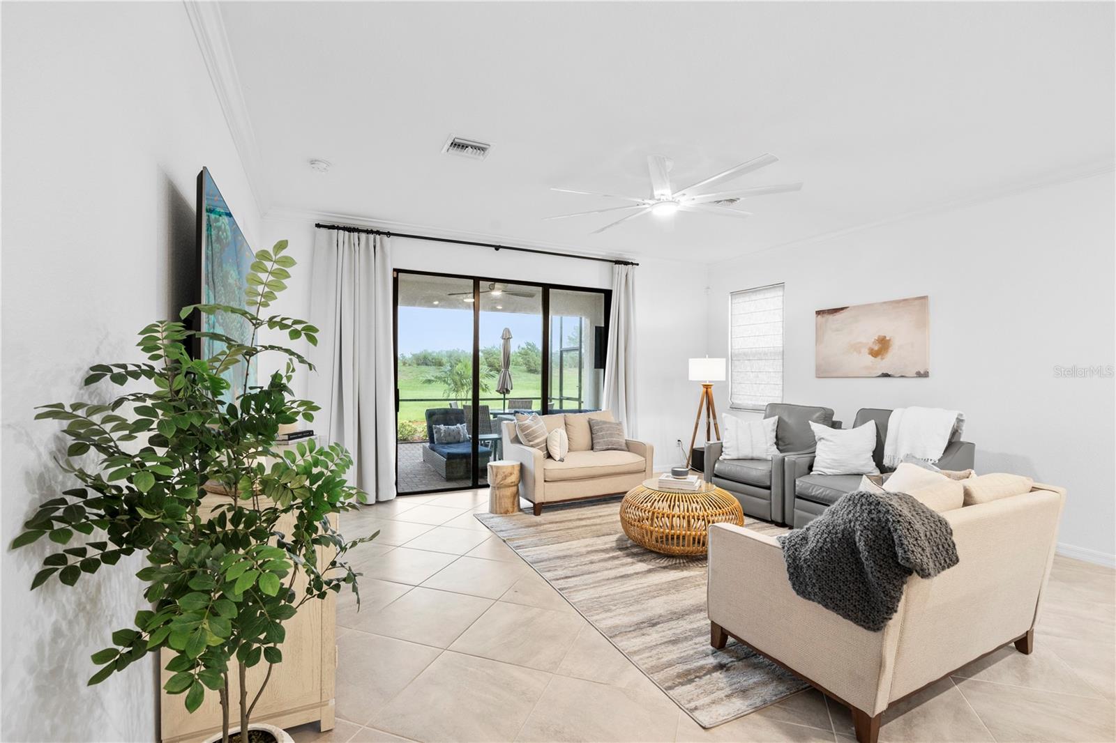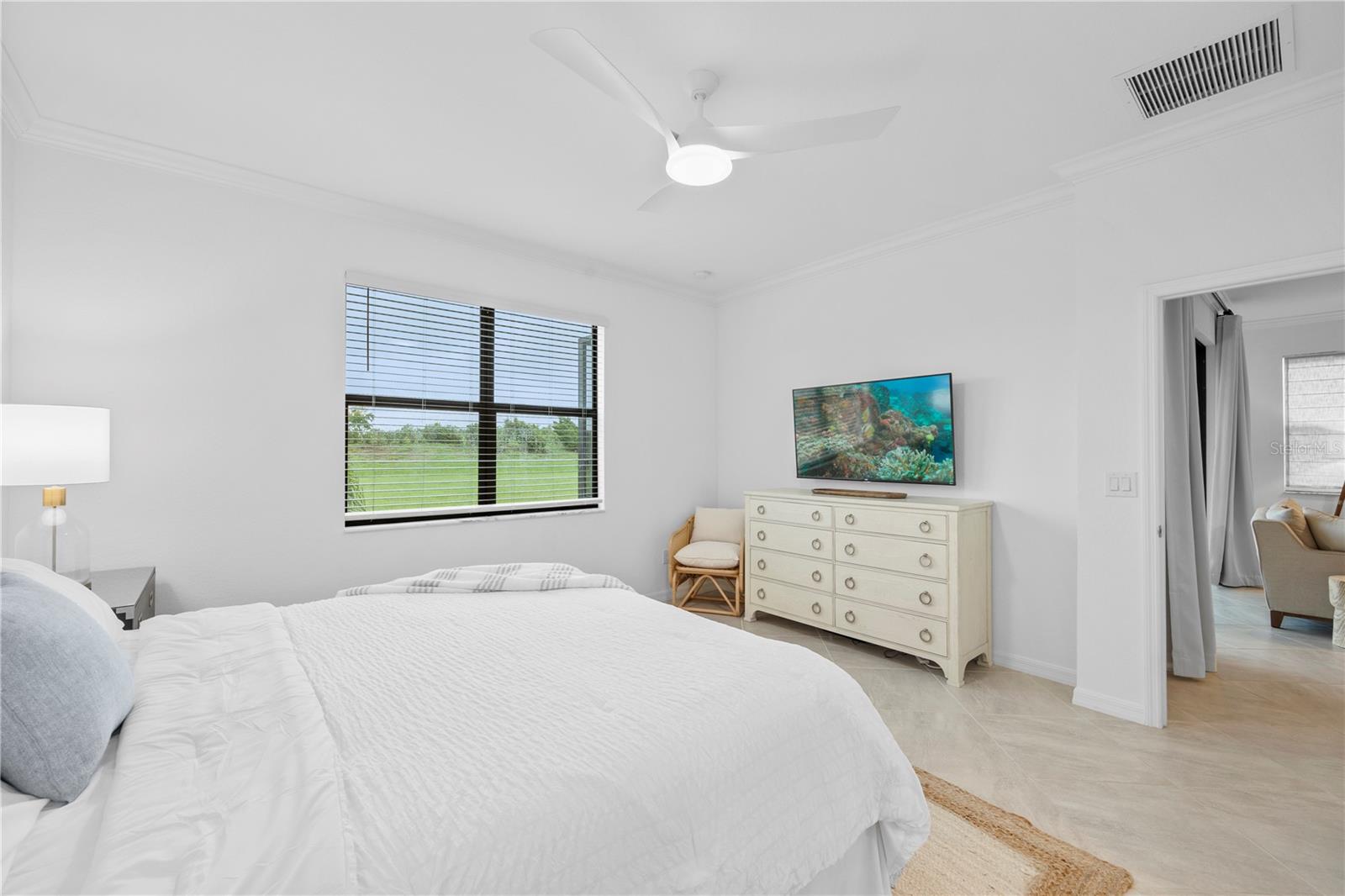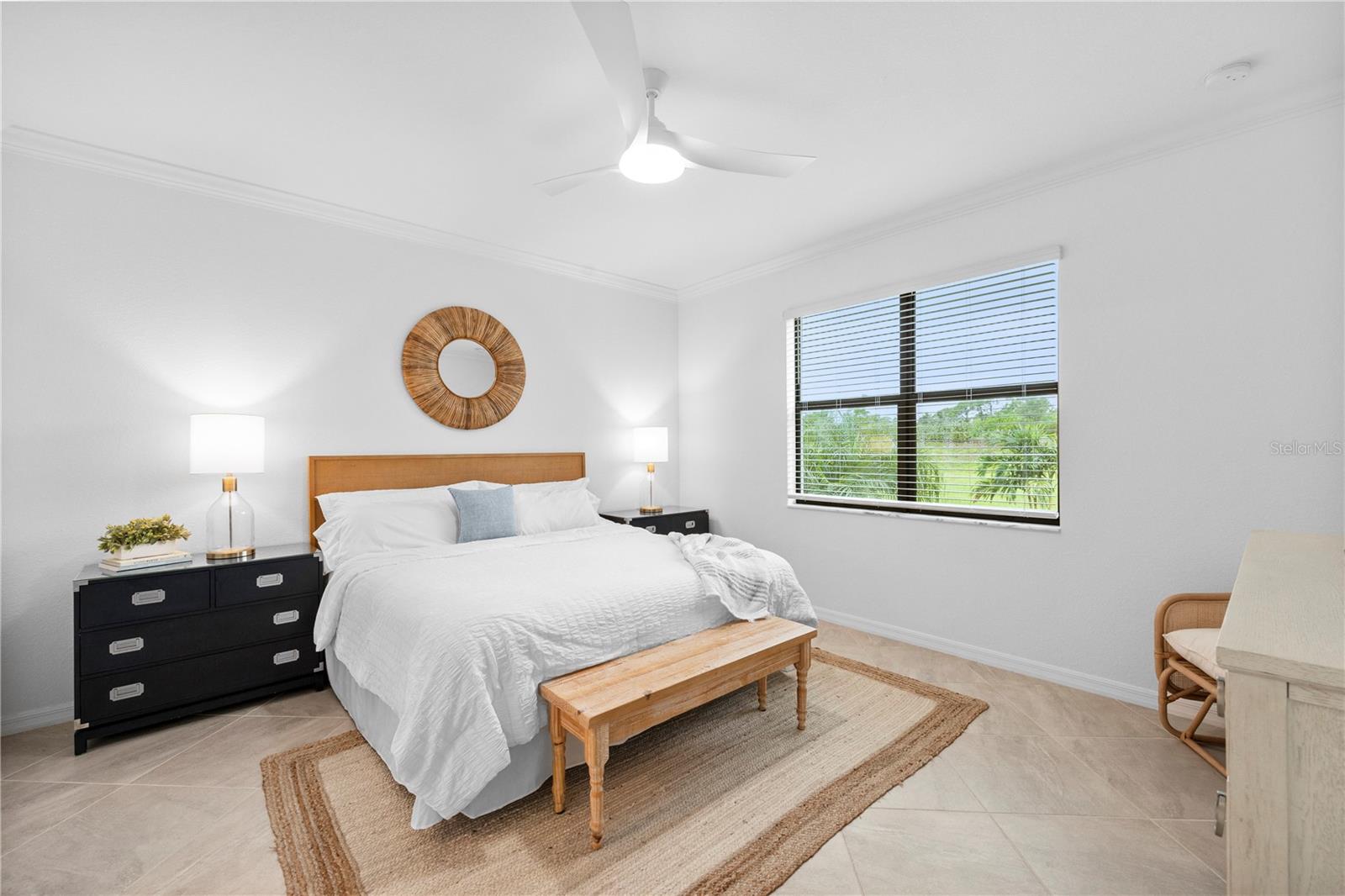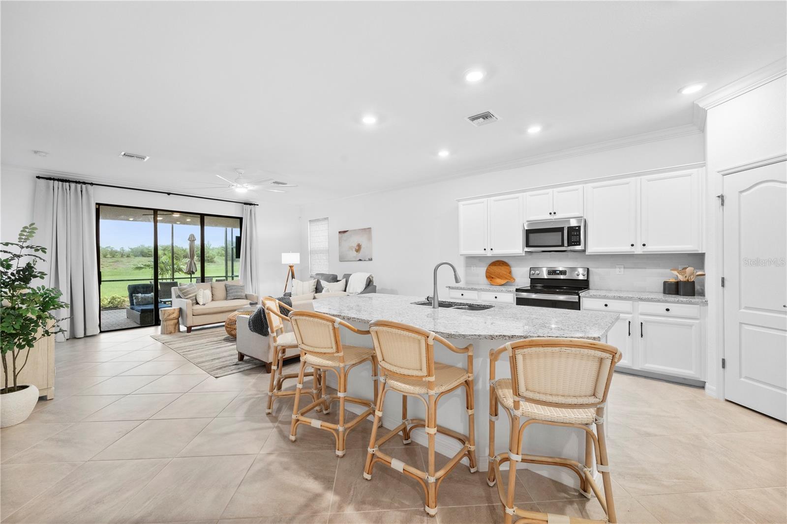 What a relief to know that this home had no damage during the seasonal hurricanes in our area and has beautiful new sod. The home has been meticulously maintained and is beautifully furnished; 2 bed, 2 bath plus enclosed flex room in the resort community of Sarasota National. This golf home with 2 memberships has been professionally decorated with beautiful touches and many upgrades. Offered TURNKEY FURNISHED and truly move in ready with high end furnishings (all purchased new 2021), custom drapes, roman shades, extended furnished lanai, TILE THROUGHOUT (no carpet), after market backsplash, modern lighting, mirror finishes and so much more- you have to see it to appreciate all the original owners have done. Please note this home is rented for the upcoming season- details can be discussed with a serious buyer. Additionally, the owners enclose the flex room making it a perfect den, office or additional guest space. When asked what the owners will miss most they said the comfort of the home as well as the incredible amenities center and the spectacular golf course. They enjoyed spending time at the pool and joining the activities at the clubhouse. Don’t miss the chance to own this beautiful home in Sarasota National. Sarasota National is a marvelous community with over 1300 acres designated for preservation, conservation, lakes, and open space with amazing views, Proclaimed as an Audubon International Certified Sanctuary, making it the most gorgeous and enjoyable golf course to play at in the area. Offering resort style amenities with huge resort style pool and spa, tiki Bar to serve refreshing drinks and a bite of lunch, tennis courts, pickle ball, Bocce courts, coffee lounge/library/card room/meeting place, 7000 sq ft fitness facilities offering classes and day spa, and a 30,000 sq ft Clubhouse with dining and spectacular views. 18 Hole championship golf course surrounded by native wetlands and preserves provides an exhilarating and dramatic back drop for your golfing adventure.