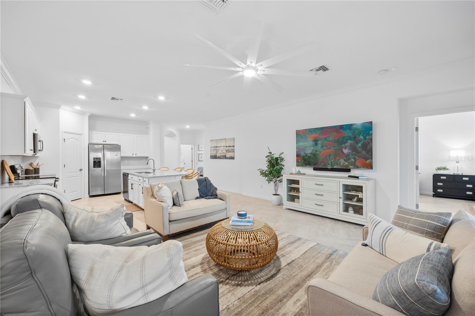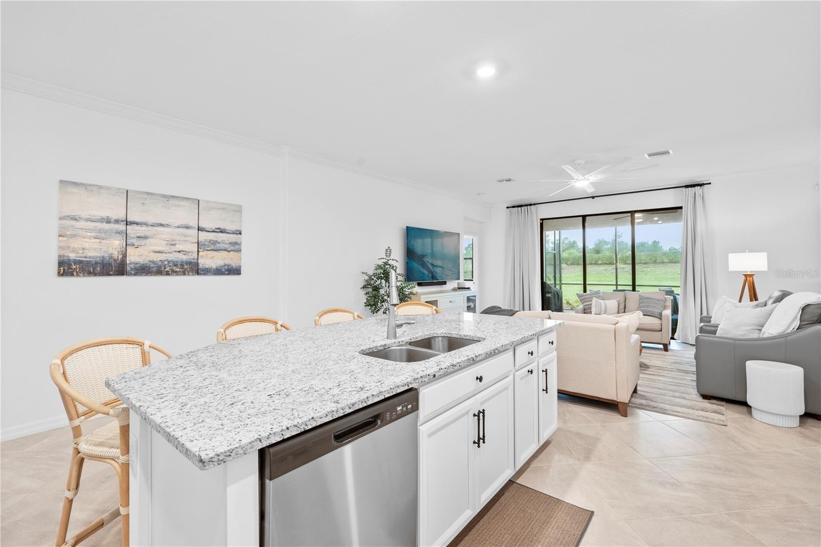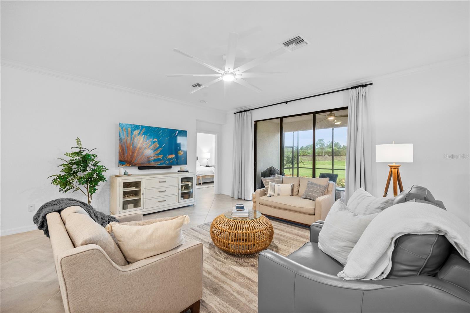 What a relief to know that this home had no damage during the seasonal hurricanes in our area and has beautiful new sod. The home has been meticulously maintained and is beautifully furnished; 2 bed, 2 bath plus enclosed flex room in the resort community of Sarasota National. This golf home with 2 memberships has been professionally decorated with beautiful touches and many upgrades. Offered TURNKEY FURNISHED and truly move in ready with high end furnishings (all purchased new 2021), custom drapes, roman shades, extended furnished lanai, TILE THROUGHOUT (no carpet), after market backsplash, modern lighting, mirror finishes and so much more- you have to see it to appreciate all the original owners have done. Please note this home is rented for the upcoming season- details can be discussed with a serious buyer. Additionally, the owners enclose the flex room making it a perfect den, office or additional guest space. When asked what the owners will miss most they said the comfort of the home as well as the incredible amenities center and the spectacular golf course. They enjoyed spending time at the pool and joining the activities at the clubhouse. Don’t miss the chance to own this beautiful home in Sarasota National. Sarasota National is a marvelous community with over 1300 acres designated for preservation, conservation, lakes, and open space with amazing views, Proclaimed as an Audubon International Certified Sanctuary, making it the most gorgeous and enjoyable golf course to play at in the area. Offering resort style amenities with huge resort style pool and spa, tiki Bar to serve refreshing drinks and a bite of lunch, tennis courts, pickle ball, Bocce courts, coffee lounge/library/card room/meeting place, 7000 sq ft fitness facilities offering classes and day spa, and a 30,000 sq ft Clubhouse with dining and spectacular views. 18 Hole championship golf course surrounded by native wetlands and preserves provides an exhilarating and dramatic back drop for your golfing adventure.