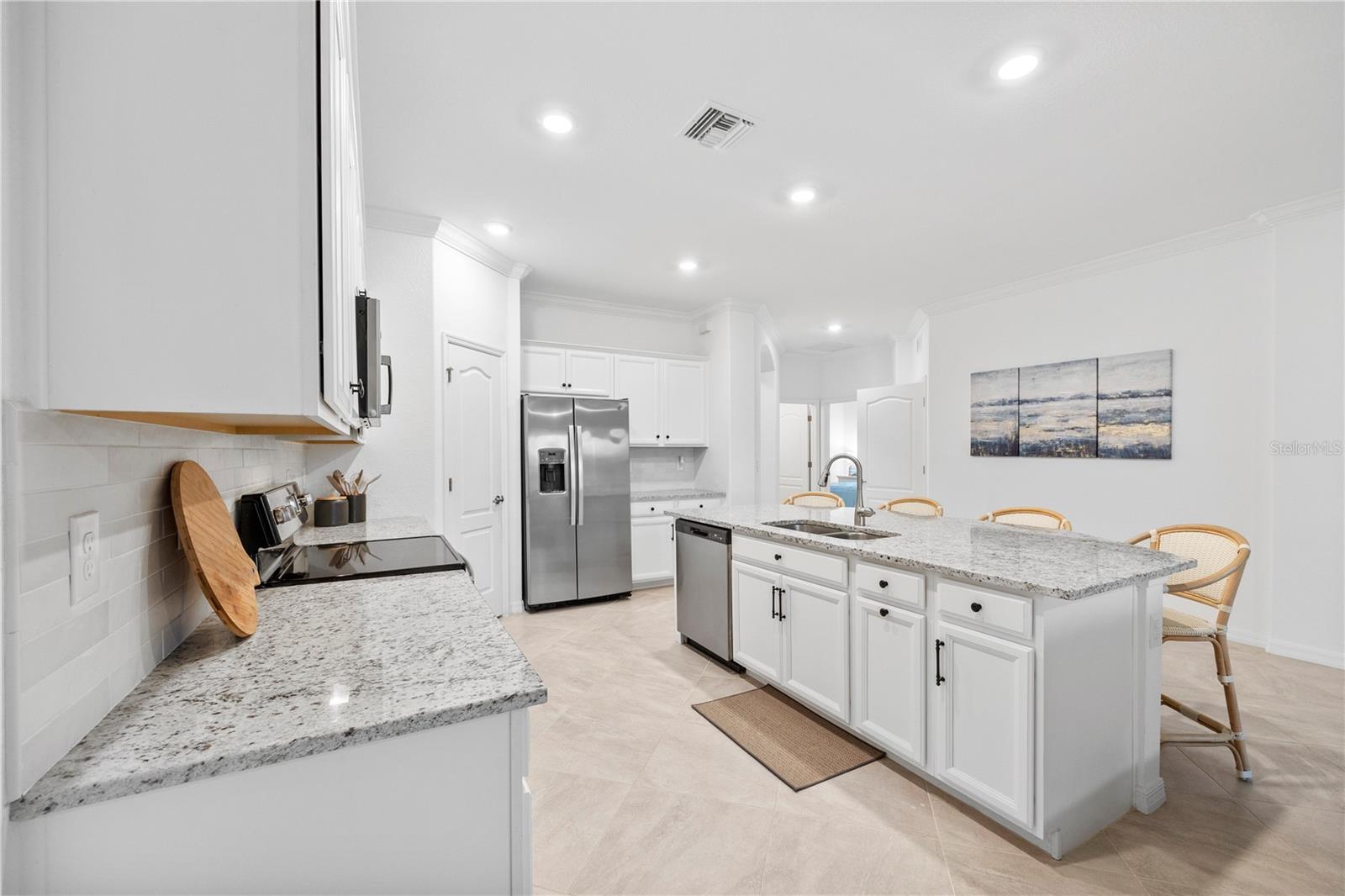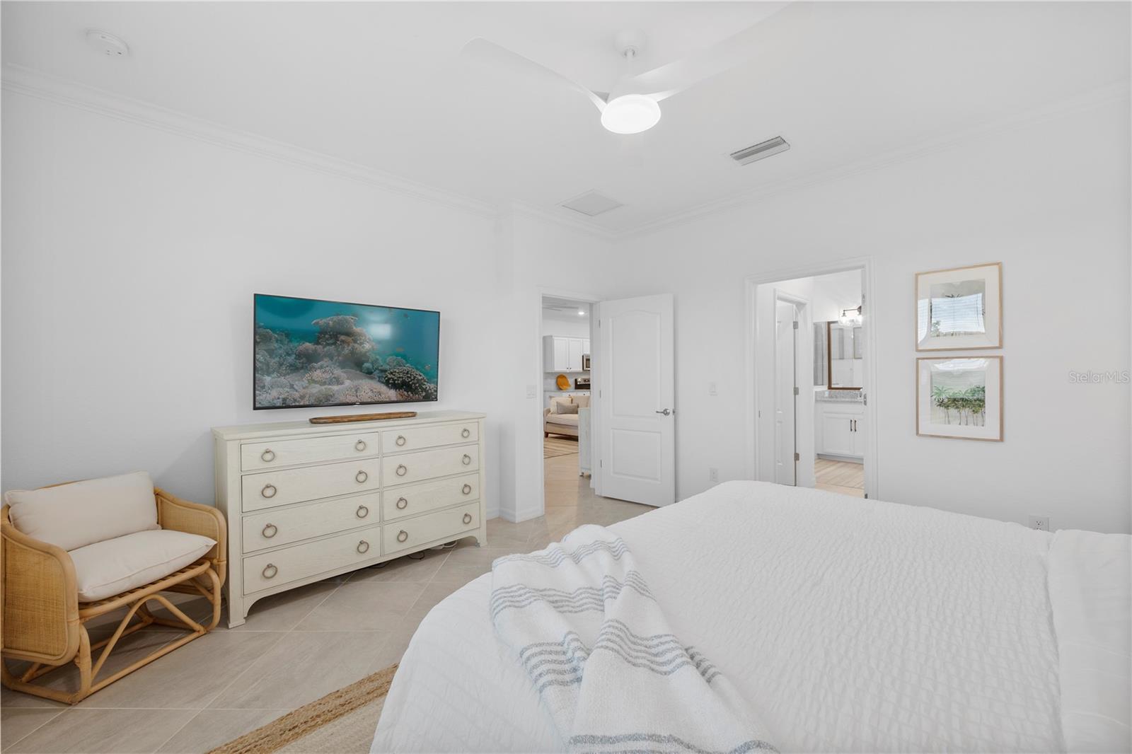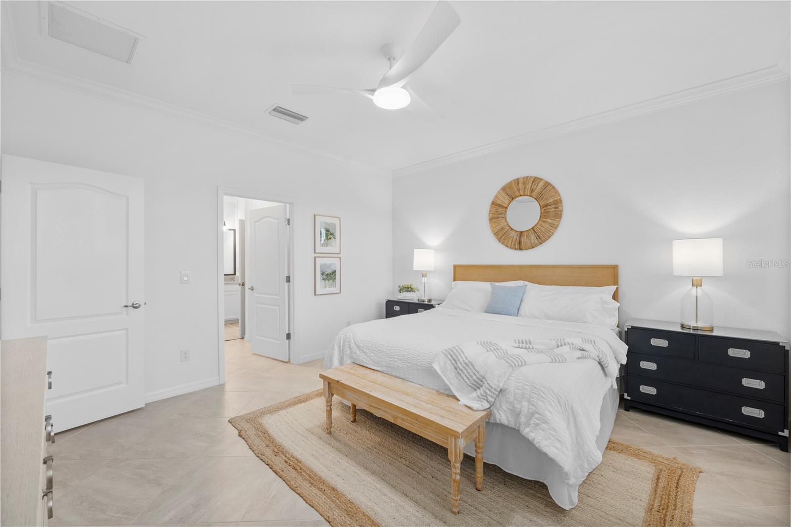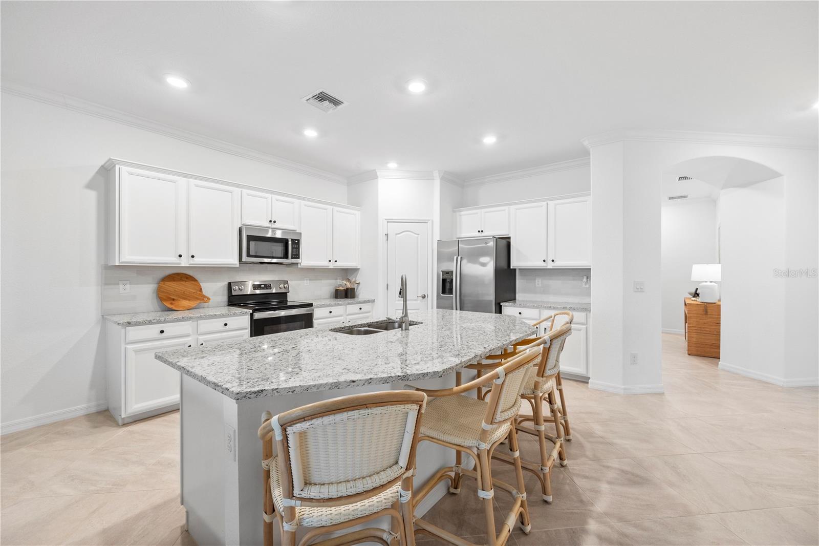 What a relief to know that this home had no damage during the seasonal hurricanes in our area and has beautiful new sod. The home has been meticulously maintained and is beautifully furnished; 2 bed, 2 bath plus enclosed flex room in the resort community of Sarasota National. This golf home with 2 memberships has been professionally decorated with beautiful touches and many upgrades. Offered TURNKEY FURNISHED and truly move in ready with high end furnishings (all purchased new 2021), custom drapes, roman shades, extended furnished lanai, TILE THROUGHOUT (no carpet), after market backsplash, modern lighting, mirror finishes and so much more- you have to see it to appreciate all the original owners have done. Please note this home is rented for the upcoming season- details can be discussed with a serious buyer. Additionally, the owners enclose the flex room making it a perfect den, office or additional guest space. When asked what the owners will miss most they said the comfort of the home as well as the incredible amenities center and the spectacular golf course. They enjoyed spending time at the pool and joining the activities at the clubhouse. Don’t miss the chance to own this beautiful home in Sarasota National. Sarasota National is a marvelous community with over 1300 acres designated for preservation, conservation, lakes, and open space with amazing views, Proclaimed as an Audubon International Certified Sanctuary, making it the most gorgeous and enjoyable golf course to play at in the area. Offering resort style amenities with huge resort style pool and spa, tiki Bar to serve refreshing drinks and a bite of lunch, tennis courts, pickle ball, Bocce courts, coffee lounge/library/card room/meeting place, 7000 sq ft fitness facilities offering classes and day spa, and a 30,000 sq ft Clubhouse with dining and spectacular views. 18 Hole championship golf course surrounded by native wetlands and preserves provides an exhilarating and dramatic back drop for your golfing adventure.