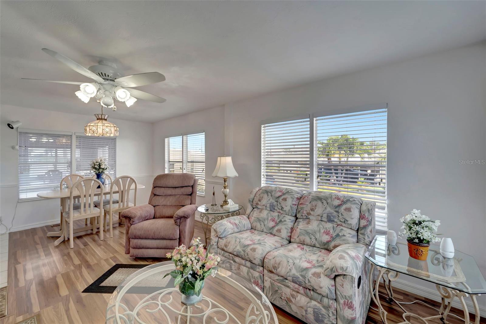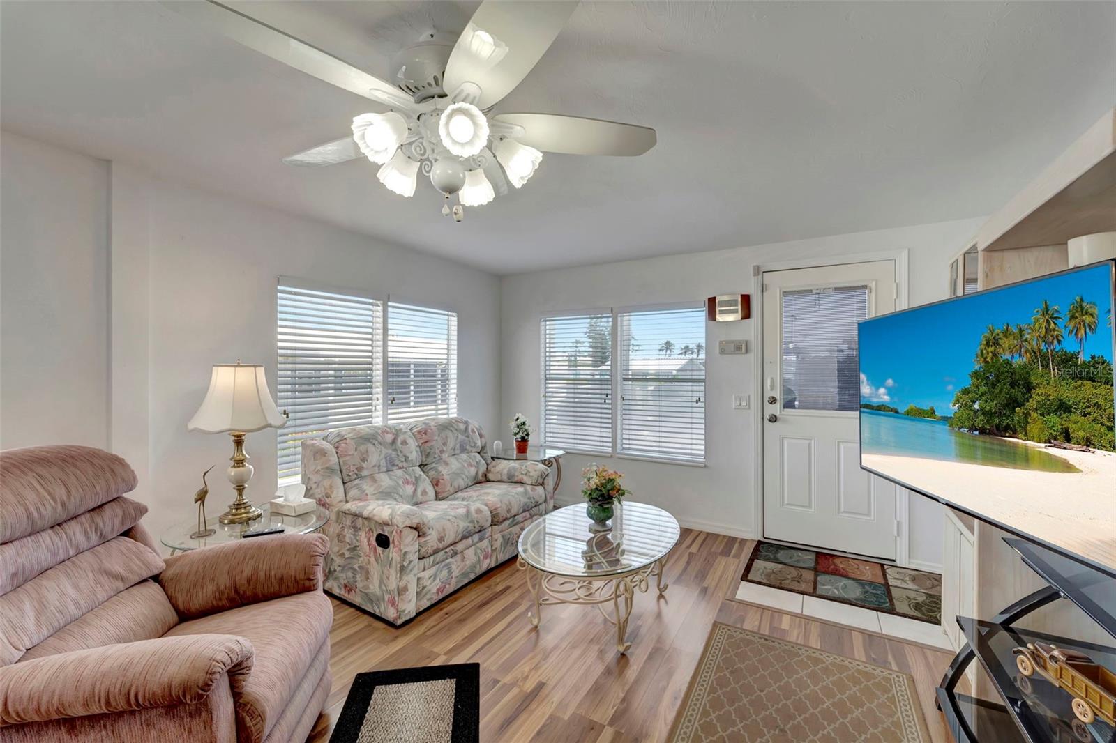 Beautiful manufactured home, located in the 55 plus community of Harbor Lights. The home is located close to all the amenities. The double wide manufactured home is turnkey furnished, just bring your clothes and toothbrush and start your paradise living. Many updates, including new carport, new flooring, granite counter tops, newer York 3 ton A/C, carpeted crawlspace, LED lighting. The home has been updated with new plywood, 1/2 inch sheetrock and ceilings brought up to code. Primary bedroom has a walk-in shower. Whirlpool washer and matching dryer. The home comes with 2 TVs, with an external antenna connected, 2 microwaves, NEST wi-fi programmable thermostat. Their are 2 storage sheds (4x7 and 4x10), with power, lights & dehumidifier. The community is pet friendly and close to downtown Venice, with shopping, beaches, restaurants and The Legacy Trail.