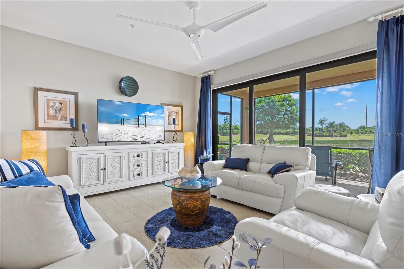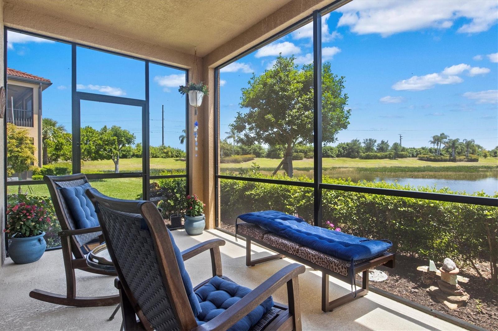 GOLFER'S PARADISE! Experience luxury living in this stunning 2-bedroom PLUS FLEX Room residence, easily convertible into a 3rd bedroom or den. Nestled in the beautiful guard-gated golf course community of Sarasota National, this home INCLUDES 2 GOLF MEMBERSHIPS, making it a golfer's dream come true! This exceptional Carriage Home offers convenient GROUND FLOOR living, IMPACT WINDOWS THROUGHOUT, complete with breathtaking lake views and a private double driveway. Meticulously built by WCI in 2015, this immaculate home exudes quality and craftsmanship. Step inside to discover spacious living areas with an open concept floor plan designed to maximize the stunning lake views. The home features tile floors throughout, enhancing its elegant appeal. The gourmet kitchen is a chef’s delight, boasting a freestanding island, stone countertops, beautiful cabinetry, and ample storage space, perfect for entertaining and culinary creativity. The FLEX Room adds versatility, ideal for an additional bedroom, home office, or library to suit your lifestyle needs. The tranquil owner's suite offers serene water views, a large walk-in closet, and an en-suite bathroom with dual vanity sinks and a walk-in shower. Outside, the screened lanai provides a serene outdoor space overlooking the lake, perfect for entertaining or simply relaxing. With its private double driveway and 2-car garage, this GROUND FLOOR unit offers unparalleled convenience and privacy. Ideal for full-time residency, a seasonal retreat, or an investment opportunity, this carriage home epitomizes luxury living in one of Venice's most sought-after communities. The exquisite 30,000 sq ft clubhouse, inspired by resort-style architecture, and the 7,000 sq ft state-of-the-art fitness center exude both sophistication and relaxed charm. Indulge in fine dining, a cozy patio bistro, a poolside Tiki Bar, or the inviting Barrister Lounge, all offering breathtaking views of the golf course and water. Additional amenities INCLUDE 2 golf memberships, tennis and pickleball courts, nature trails through preserves, a golf pro shop, and more. From the resort-style amenities to the natural beauty of the Audubon bird sanctuary, Sarasota National offers a lifestyle of leisure, socializing, and relaxation. The community is safeguarded by a 24-hour guardhouse, ensuring peace of mind. With easy access to charming beaches, top-notch dining, shopping destinations, cultural and recreational attractions, and medical facilities in Venice Island, Wellen Park, and Greater Sarasota County, this location provides a lifestyle of unparalleled convenience and luxury. Don't miss your chance to experience the best of Sarasota National. Schedule your private tour today and make this exquisite ground-floor unit your own!
