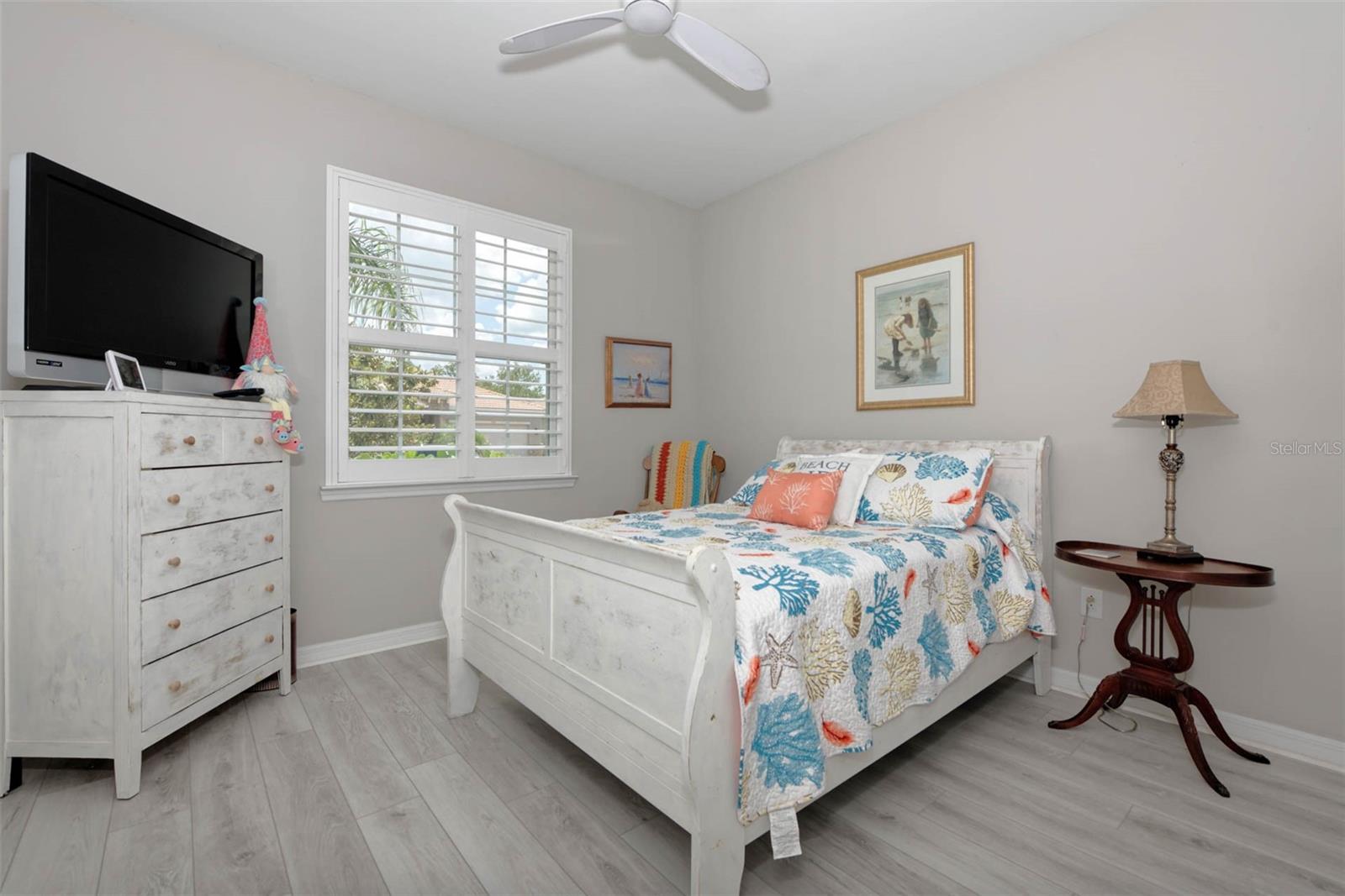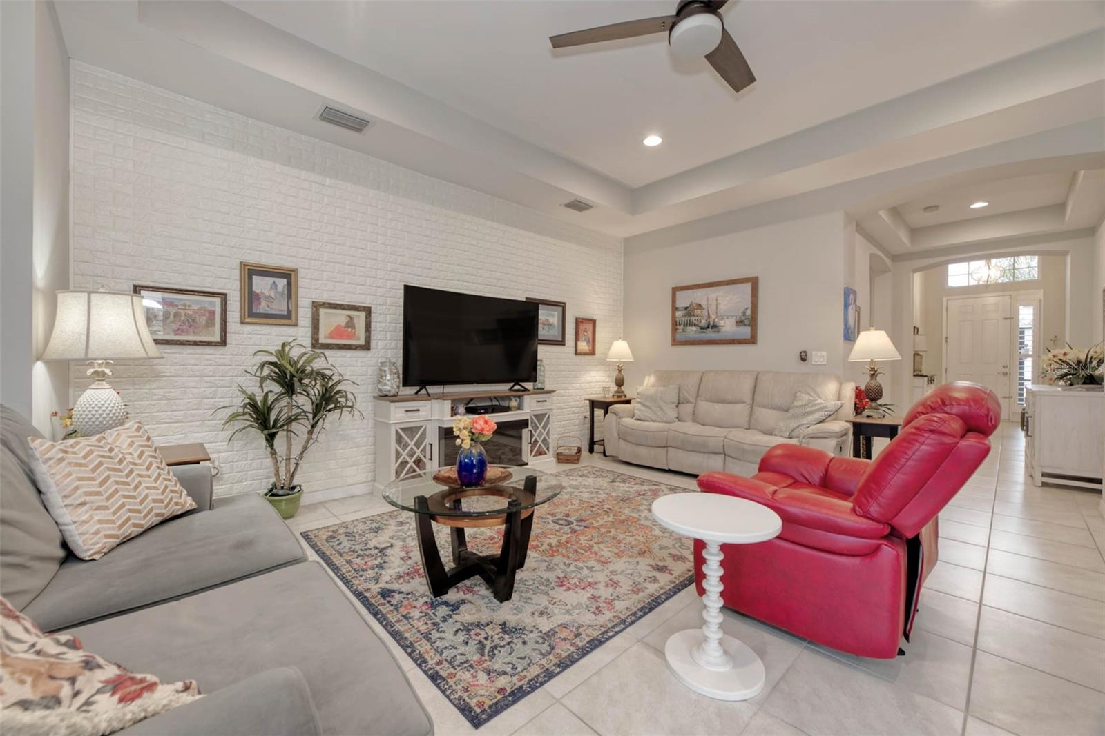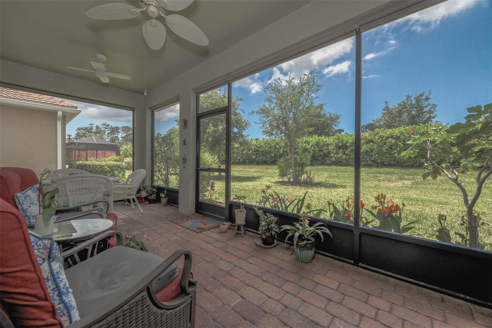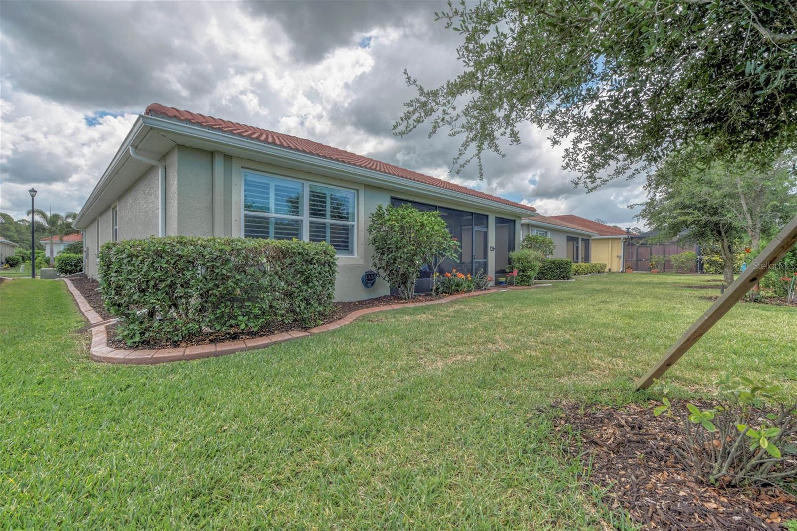 What's Not to Love? A 3 bed, 2 bath, plus den - white glove immaculate, designer touches, spacious backyard, wonderful small, gated community, perfect for family living and entertaining, great schools, convenient, in a growing, Venice location, and it is Soooo affordable with low fees and taxes. The elegant entry leads to a split plan designed for livability and perfect touches. With the guest suite of two large bedrooms and a bath on one side and the master and adjoining bath on the other, you can share the high ceilings and sunlight in the great room and kitchen with family and guests. The kitchen boasts beautiful tile, granite countertops, soft close cabinets, designer backsplash and a walk-in pantry. The right place to demonstrate your culinary skills or just have breakfast. The great room is open, but inviting, with a creative white brick accent wall and 8 ft sliders to an expansive lanai and a totally private, bermed backyard. The owners enjoy this more that 275 days of the year as they use it as an art studio and for the appreciation of nature. Decorative pavers surround their landscaping. A UV light in the AC unit extends the health of the system, the electrical panel is wired for whole house surge protector, and steel hurricane shutters to protect all windows and three glass sliders. This community, with very low HOA fees, offers a heated pool and fitness center and is convenient to all that Venice has to offer! This home is located in Flood Zone X.