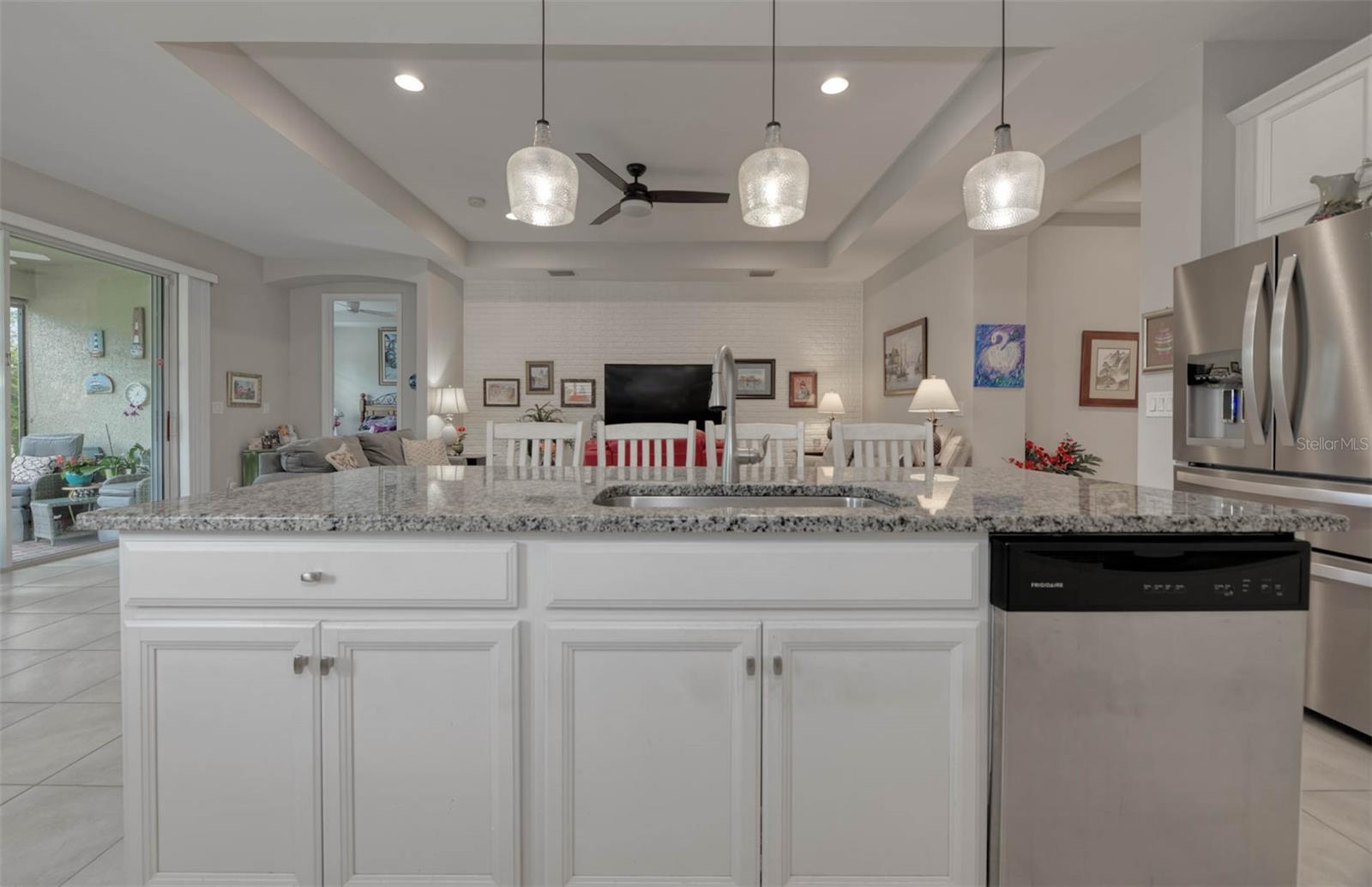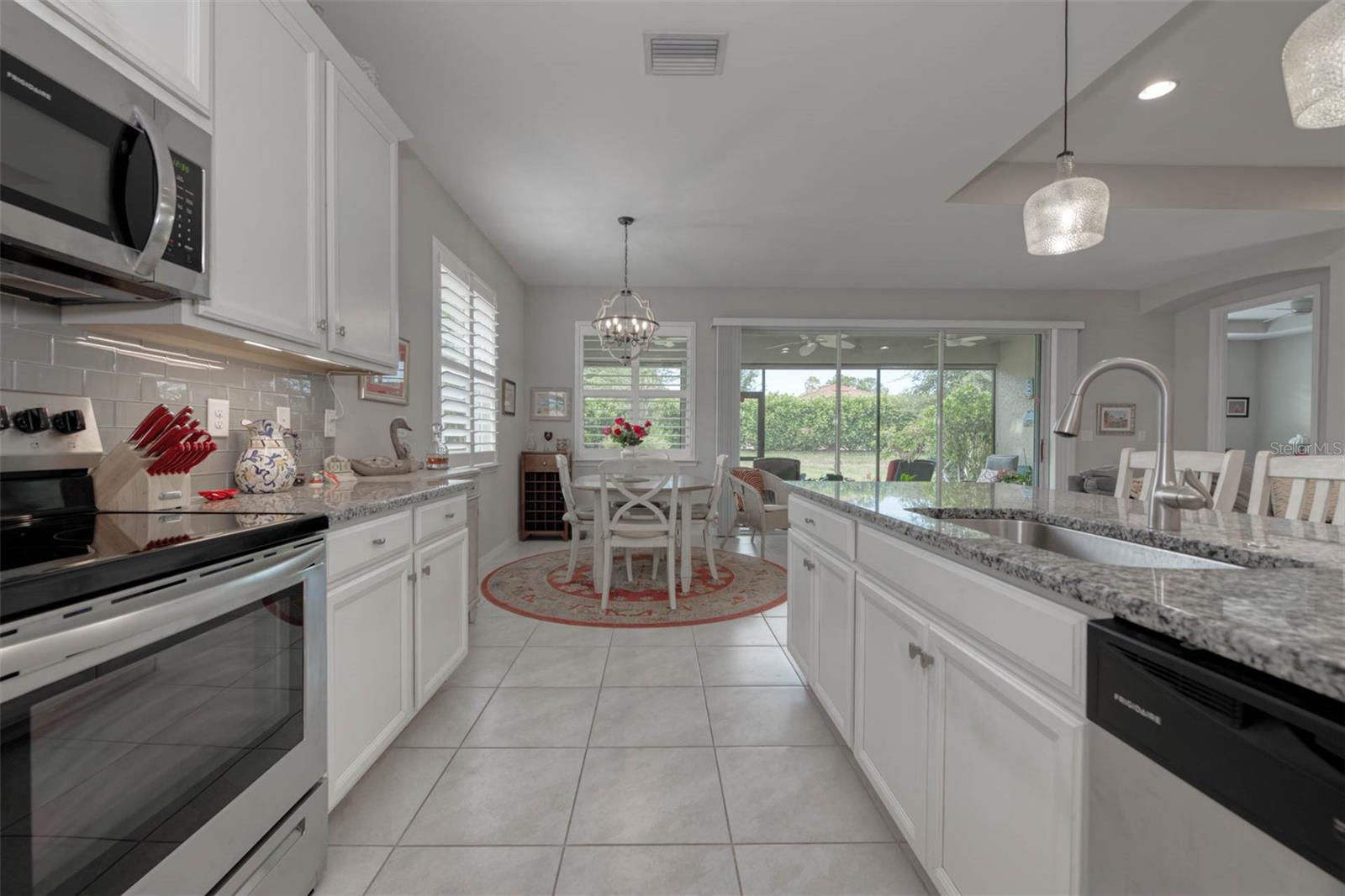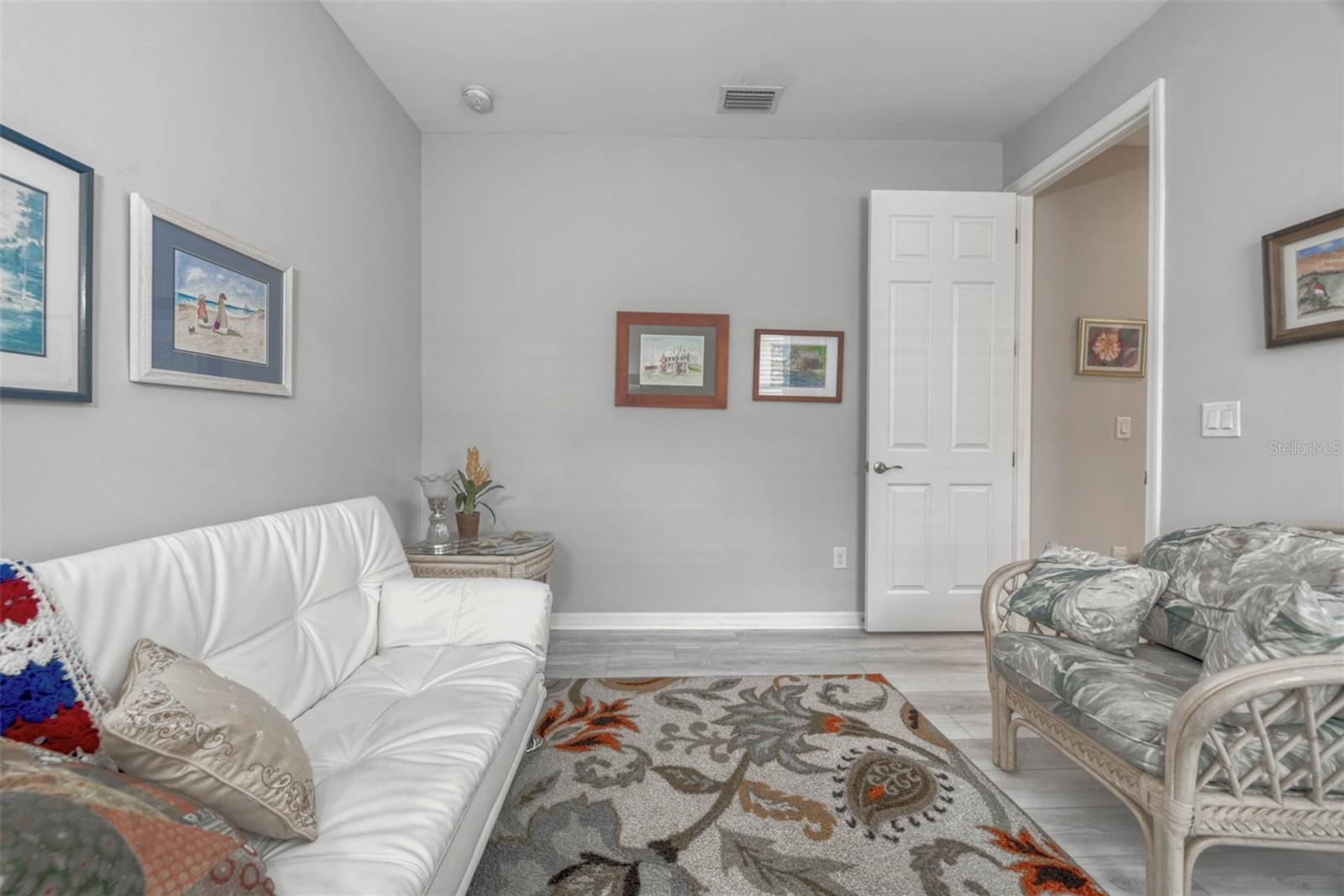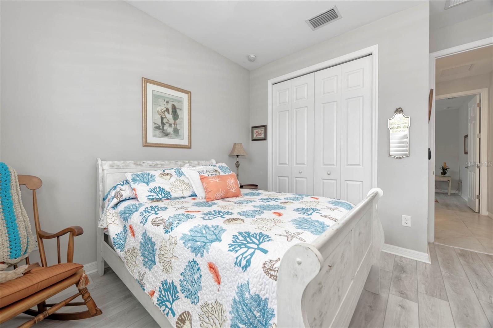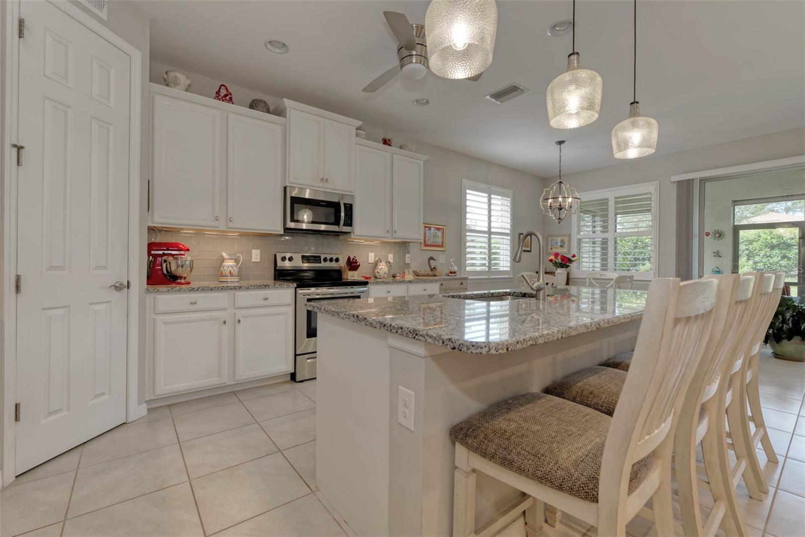 What's Not to Love? A 3 bed, 2 bath, plus den - white glove immaculate, designer touches, spacious backyard, wonderful small, gated community, perfect for family living and entertaining, great schools, convenient, in a growing, Venice location, and it is Soooo affordable with low fees and taxes. The elegant entry leads to a split plan designed for livability and perfect touches. With the guest suite of two large bedrooms and a bath on one side and the master and adjoining bath on the other, you can share the high ceilings and sunlight in the great room and kitchen with family and guests. The kitchen boasts beautiful tile, granite countertops, soft close cabinets, designer backsplash and a walk-in pantry. The right place to demonstrate your culinary skills or just have breakfast. The great room is open, but inviting, with a creative white brick accent wall and 8 ft sliders to an expansive lanai and a totally private, bermed backyard. The owners enjoy this more that 275 days of the year as they use it as an art studio and for the appreciation of nature. Decorative pavers surround their landscaping. A UV light in the AC unit extends the health of the system, the electrical panel is wired for whole house surge protector, and steel hurricane shutters to protect all windows and three glass sliders. This community, with very low HOA fees, offers a heated pool and fitness center and is convenient to all that Venice has to offer! This home is located in Flood Zone X.