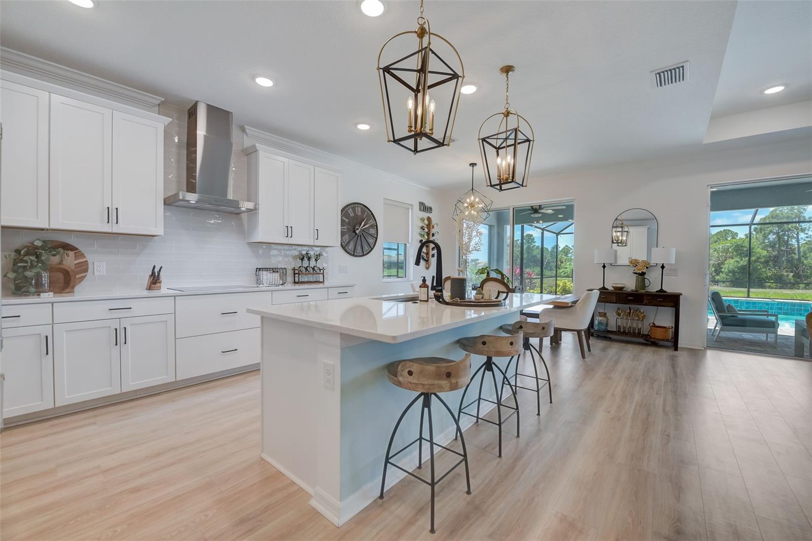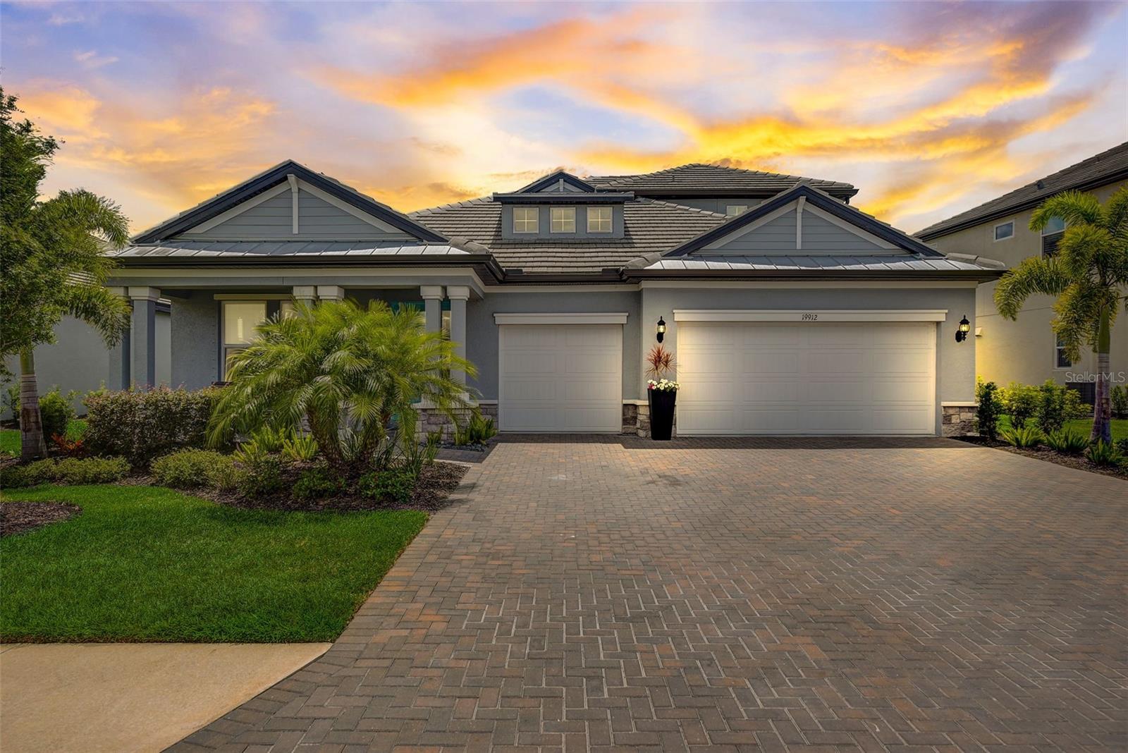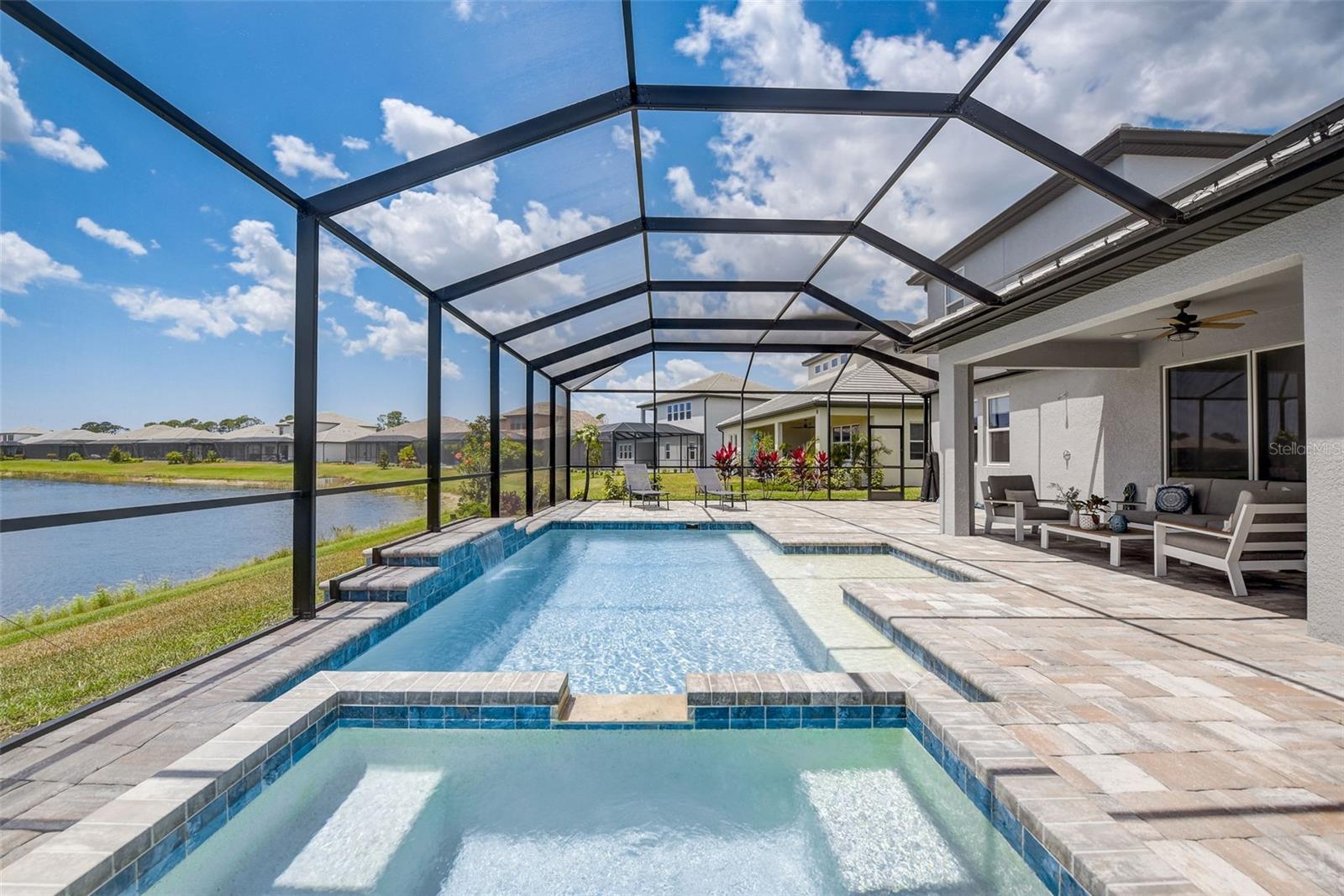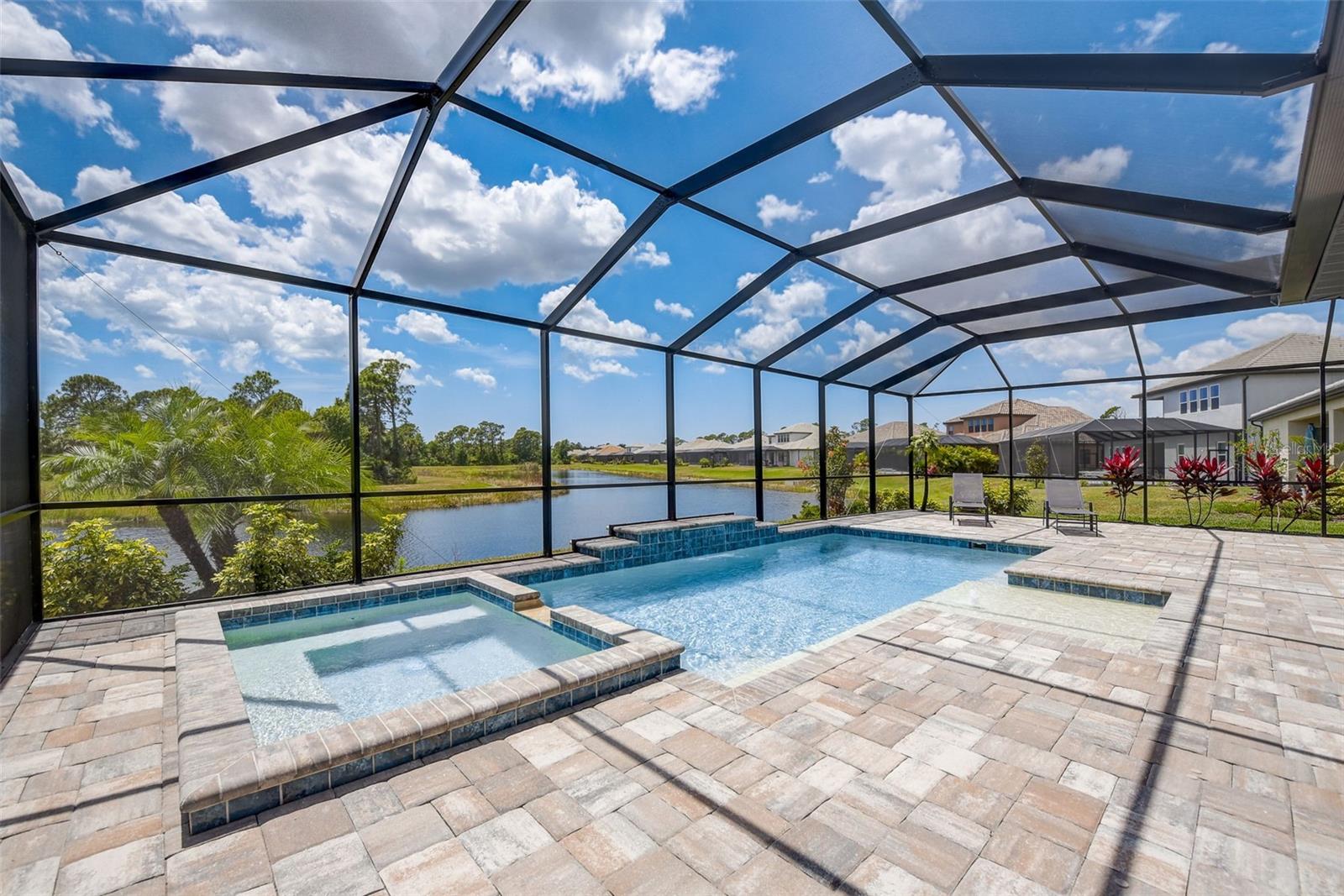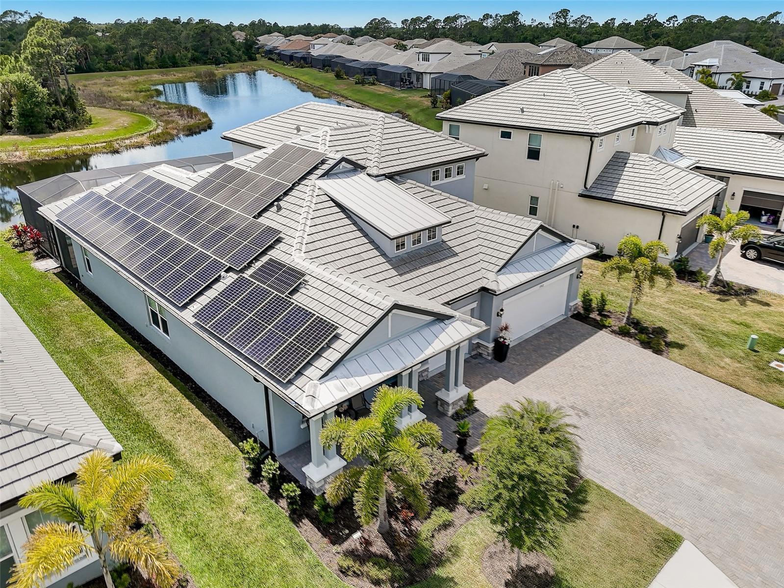 Step into the embrace of luxury living with this meticulously designed estate home nestled in the heart of Oasis, an exclusive gated community within the flourishing Wellen Park district. This 4-bedroom, 4-bathroom haven offers a luxurious yet comfortable lifestyle that easily accommodates multi-generational living. With mesmerizing views of the lake and island preserve across the way, just imagine relaxing by your very own resort-like salt pool and spa, lounging on the sun shelf, toasting to stunning sunsets, or simply reading a book in the shaded privacy of your expansive screened lanai. Soothing sounds from the waterfall and bubblers provide the perfect backdrop for relaxation and enjoyment! At the heart of this home is the great room featuring a wide-open floorplan with lofty ceilings and a wall of double glass sliding doors that fill the kitchen, dining room, and living room with tons of natural light. This is where everyone gathers to share meals and conversations and to catch up on the day’s events. Chef will enjoy preparing fabulous meals in the kitchen that has it all with Cambria quartz countertops, custom cabinetry with pullouts, a large center island with counter stool seating, stainless-steel GE Cafe Smart appliances including a refrigerator with a built-in Keurig Brewing System, and double wall ovens - all smartly laid out for efficiency and connectedness. The generous master suite enjoys a lovely water view setting the stage for a serene, peaceful, and private retreat complete with a built-in valet/coffee bar, a spacious walk-in closet, and a gorgeous en-suite bath with a walk-in shower, dual sinks, and custom cabinetry. The office and 2 guest bedrooms are located on the opposite side of the home, ensuring comfort and privacy for all. The custom staircase leads you to the upstairs loft area where you'll find the 4th bedroom and 4th bathroom and plenty of additional storage. This home is equipped with the latest smart home technology that makes life so much easier! Set your climate preferences, manage pool operations, and control your security system and appliances, all remotely through the touch of your phone app. After a long day on the town, turn on your spa and preheat your oven so that everything is ready for you upon your arrival. You're ready to entertain! Can you imagine not having an electric bill? This home is equipped with a sophisticated solar energy system that powers the entire home and protects against increases in utility costs for 25 years, resulting in significant savings over time. Now this is a smart home! Residents of the Oasis community enjoy a clubhouse and heated community pool, a pickleball court, a gated entrance, maintenance-free grounds, and direct access from within the community to the Blue Heron community park with hiking trails, a lake, and 2 dog parks. This is an exciting time for Wellen Park which is a growing master-planned community with shopping, restaurants, medical facilities, State College of Floria, the Atlanta Braves Spring training ballpark, a new Costco, and much more in planning. Downtown Wellen Park offers lake activities, concerts on the Great Lawn, a Farmers market, and so much more. Enjoy historic downtown Venice and several Gulf Coast beaches which are just minutes away. Nearby boating and golfing opportunities are plentiful. This is the Florida lifestyle that you have been dreaming of!! Call to schedule a tour of this beautiful home today!