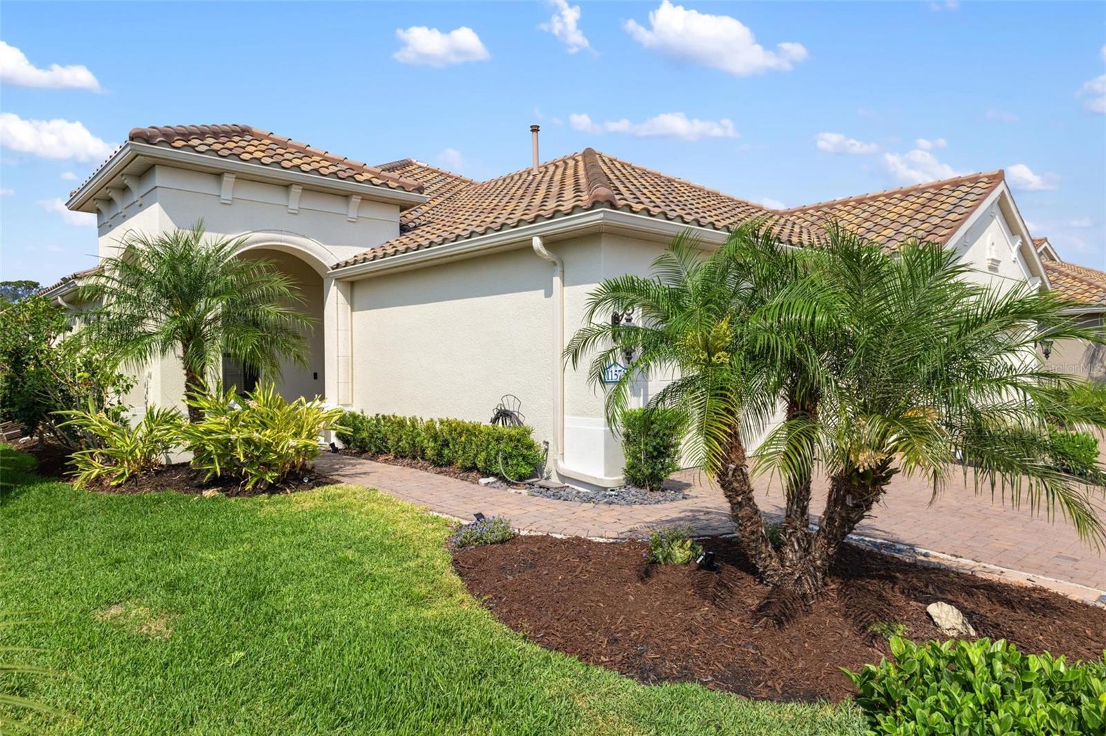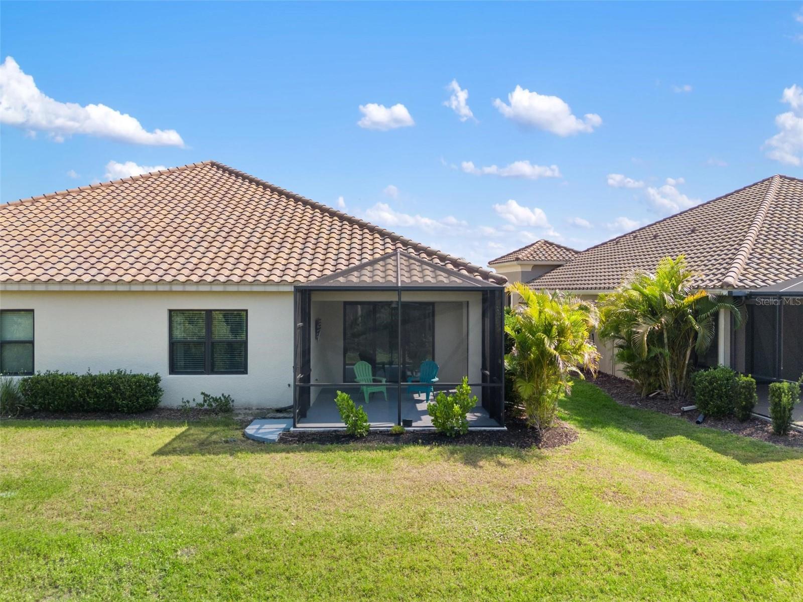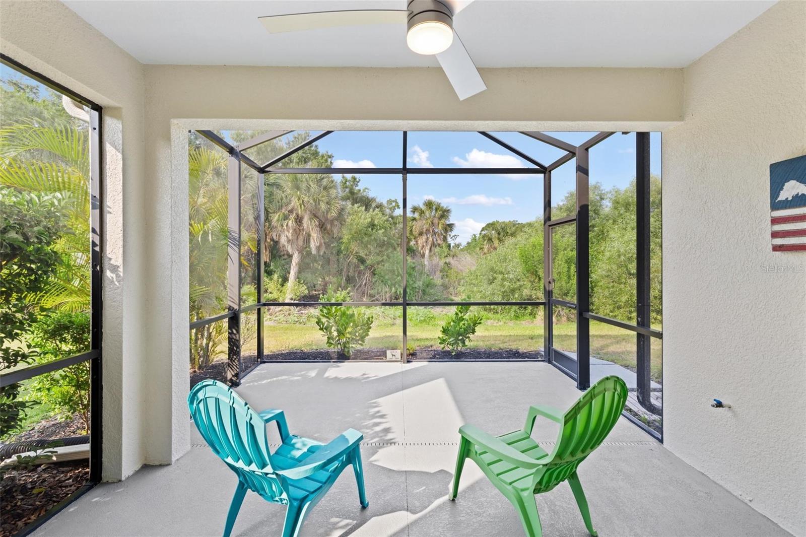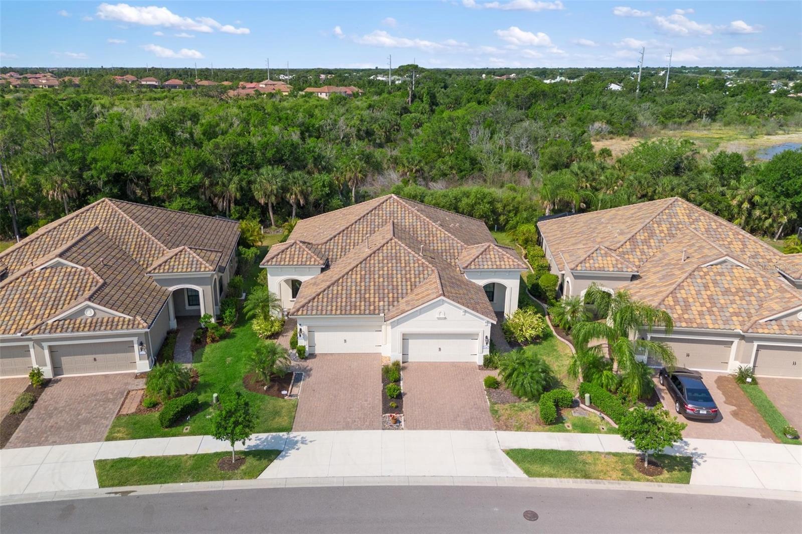 Live every day like you're on vacation at Grand Palm! Welcome to this exceptional 2-bedroom, 2-bathroom villa with a 2-car garage PLUS a den, perfectly situated in this resort-style, gated community offering a maintenance-free lifestyle. This home offers an incredible opportunity with an assumable VA loan at a low 2.3%, providing significant savings for qualified buyers. Enjoy ultimate privacy with no rear neighbors on this tranquil preserve lot. The attractive curb appeal of this like-new home built in 2019 is sure to impress, from the freshly painted in March 2024 exterior, Mediterranean tile roof, to the pavered driveway and pathway surrounded by lush landscaping. Stepping inside the foyer, French doors lead you to the bonus room that offers versatility, whether you're looking for a home office, gym, playroom, or even a third bedroom. Make your way to the open-concept great room, where the stunning kitchen is seamlessly connected to the living and dining space. The spacious modern kitchen showcases an upgraded stainless steel appliance package with gas range, white cabinetry accented by black pulls, quartz countertops with a large island for extra seating, and a generously sized pantry offering ample storage space. Under cabinet lighting illuminates the stunning backsplash. The living room features a tray ceiling and an accent shiplap wall that is sure to be a conversation piece while enjoying the serene backyard views. The owner's suite offers a private retreat at the rear of the home, overlooking the preserve, and features a beautifully appointed bathroom with separate vanities, a walk-in shower, and two closets for ample storage. The split-bedroom floor plan allows for much-desired privacy, so the second bedroom provides flexibility for guests or additional family members, while the second bathroom is conveniently located nearby. Enjoy the convenience of having an indoor laundry room, as well as the peace of mind of having impact glass windows throughout the home. Outside, the extended screened-in lanai overlooks peaceful preserve views, perfect for taking in all that nature has to offer. The lanai is also pre-lined with a natural gas hookup to build the outdoor kitchen of your dreams, ideal for entertaining family and friends. Grand Palm offers its residents a resort-style living experience, including three pools, pickleball, and a variety of monthly activities. Fitness enthusiasts will enjoy the on-site weight and cardio rooms, while families can enjoy the pool with a waterslide, playground, and splash pad for the little ones. There are not one, but two dog parks for your furry family members. Enjoy Exploration Park, miles of walking trails meandering through the natural preserves, and dozens of lakes and ponds for kayaking and fishing. This is truly a one-of-a-kind community, close to Downtown Wellen Park, Venice Island, Sarasota, pristine beaches, professional sports, dining, shopping, and cultural venues!