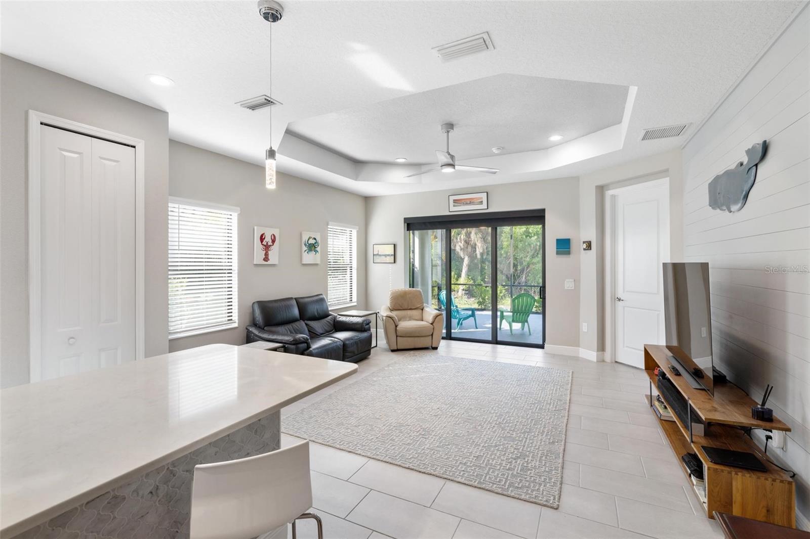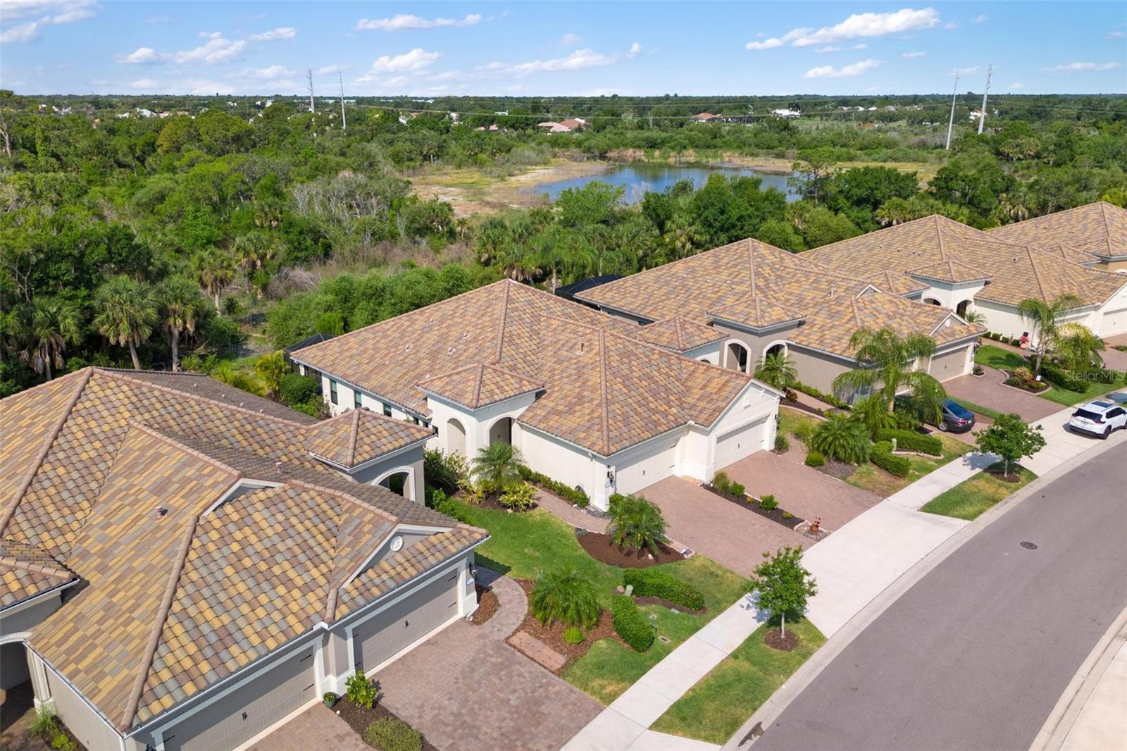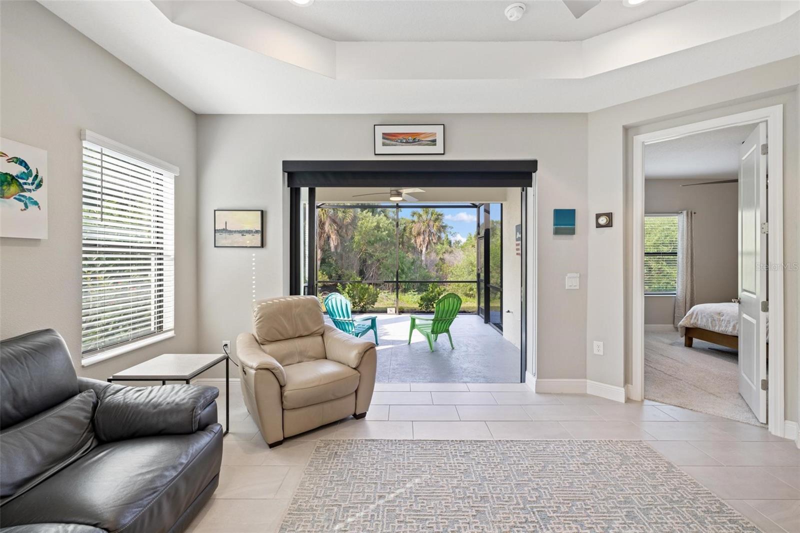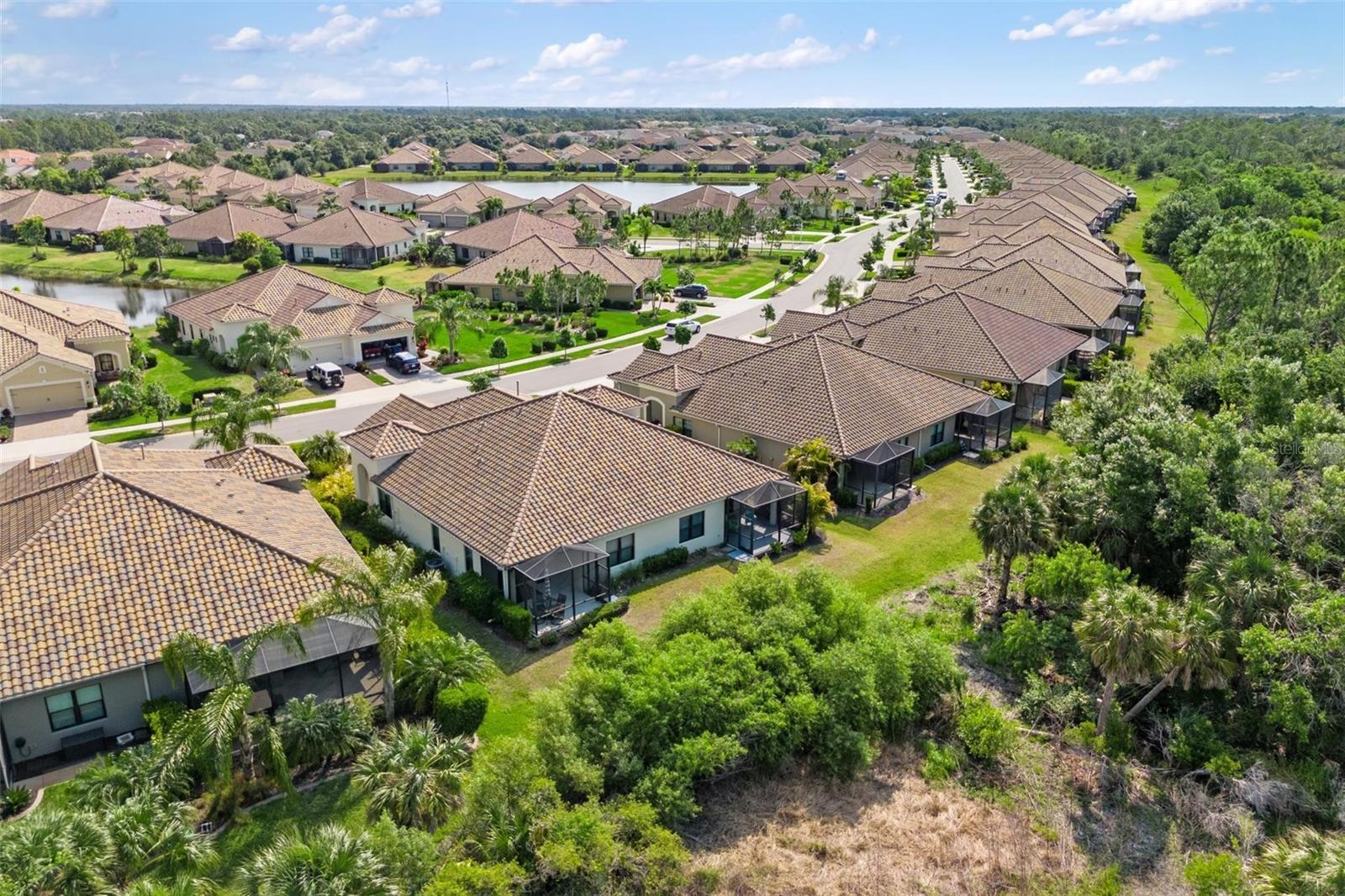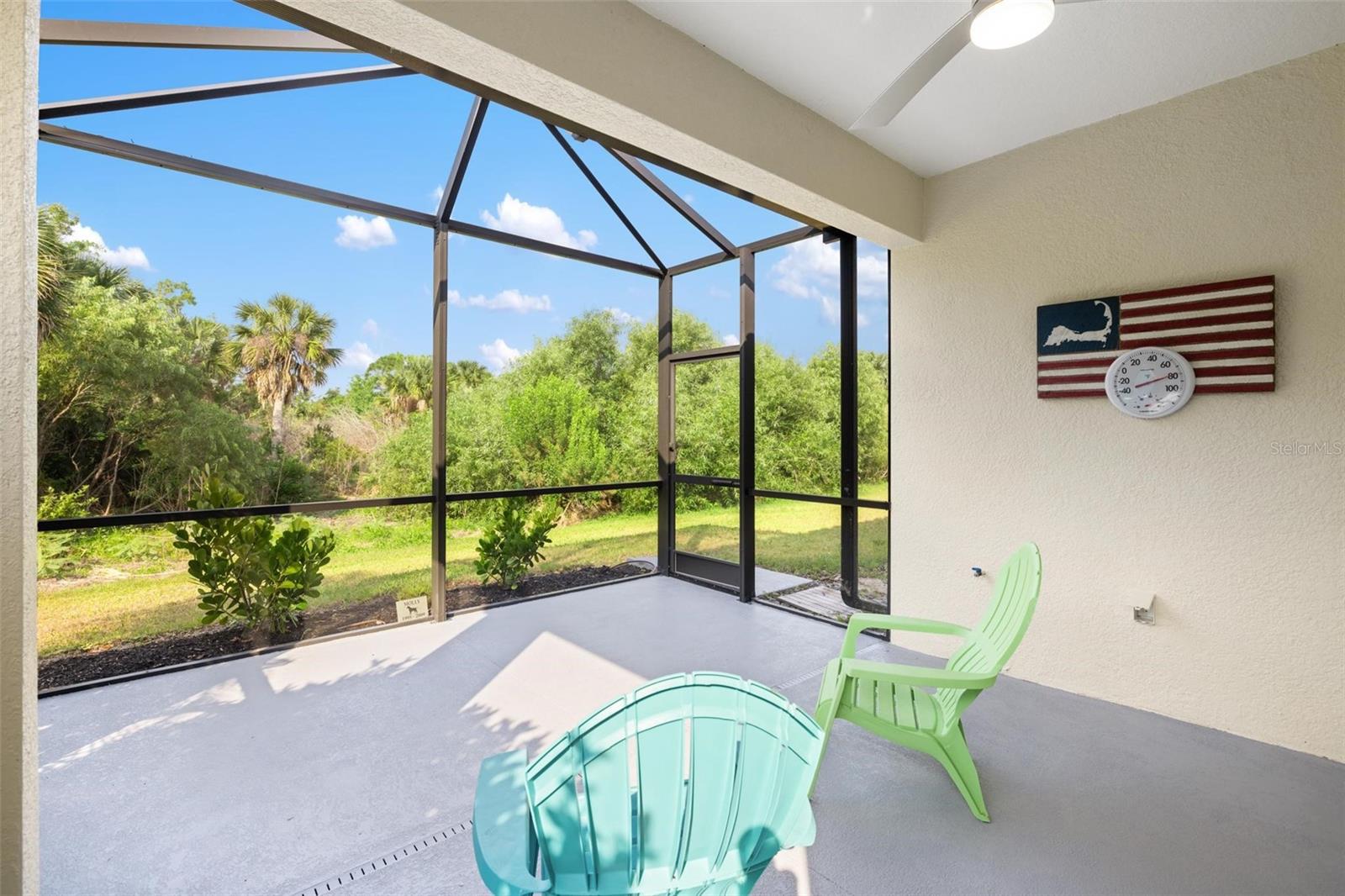 Live every day like you're on vacation at Grand Palm! Welcome to this exceptional 2-bedroom, 2-bathroom villa with a 2-car garage PLUS a den, perfectly situated in this resort-style, gated community offering a maintenance-free lifestyle. This home offers an incredible opportunity with an assumable VA loan at a low 2.3%, providing significant savings for qualified buyers. Enjoy ultimate privacy with no rear neighbors on this tranquil preserve lot. The attractive curb appeal of this like-new home built in 2019 is sure to impress, from the freshly painted in March 2024 exterior, Mediterranean tile roof, to the pavered driveway and pathway surrounded by lush landscaping. Stepping inside the foyer, French doors lead you to the bonus room that offers versatility, whether you're looking for a home office, gym, playroom, or even a third bedroom. Make your way to the open-concept great room, where the stunning kitchen is seamlessly connected to the living and dining space. The spacious modern kitchen showcases an upgraded stainless steel appliance package with gas range, white cabinetry accented by black pulls, quartz countertops with a large island for extra seating, and a generously sized pantry offering ample storage space. Under cabinet lighting illuminates the stunning backsplash. The living room features a tray ceiling and an accent shiplap wall that is sure to be a conversation piece while enjoying the serene backyard views. The owner's suite offers a private retreat at the rear of the home, overlooking the preserve, and features a beautifully appointed bathroom with separate vanities, a walk-in shower, and two closets for ample storage. The split-bedroom floor plan allows for much-desired privacy, so the second bedroom provides flexibility for guests or additional family members, while the second bathroom is conveniently located nearby. Enjoy the convenience of having an indoor laundry room, as well as the peace of mind of having impact glass windows throughout the home. Outside, the extended screened-in lanai overlooks peaceful preserve views, perfect for taking in all that nature has to offer. The lanai is also pre-lined with a natural gas hookup to build the outdoor kitchen of your dreams, ideal for entertaining family and friends. Grand Palm offers its residents a resort-style living experience, including three pools, pickleball, and a variety of monthly activities. Fitness enthusiasts will enjoy the on-site weight and cardio rooms, while families can enjoy the pool with a waterslide, playground, and splash pad for the little ones. There are not one, but two dog parks for your furry family members. Enjoy Exploration Park, miles of walking trails meandering through the natural preserves, and dozens of lakes and ponds for kayaking and fishing. This is truly a one-of-a-kind community, close to Downtown Wellen Park, Venice Island, Sarasota, pristine beaches, professional sports, dining, shopping, and cultural venues!