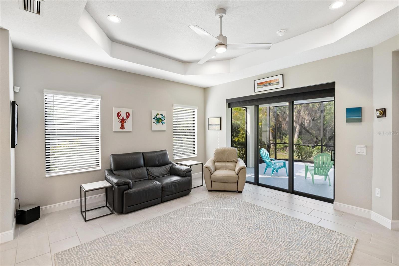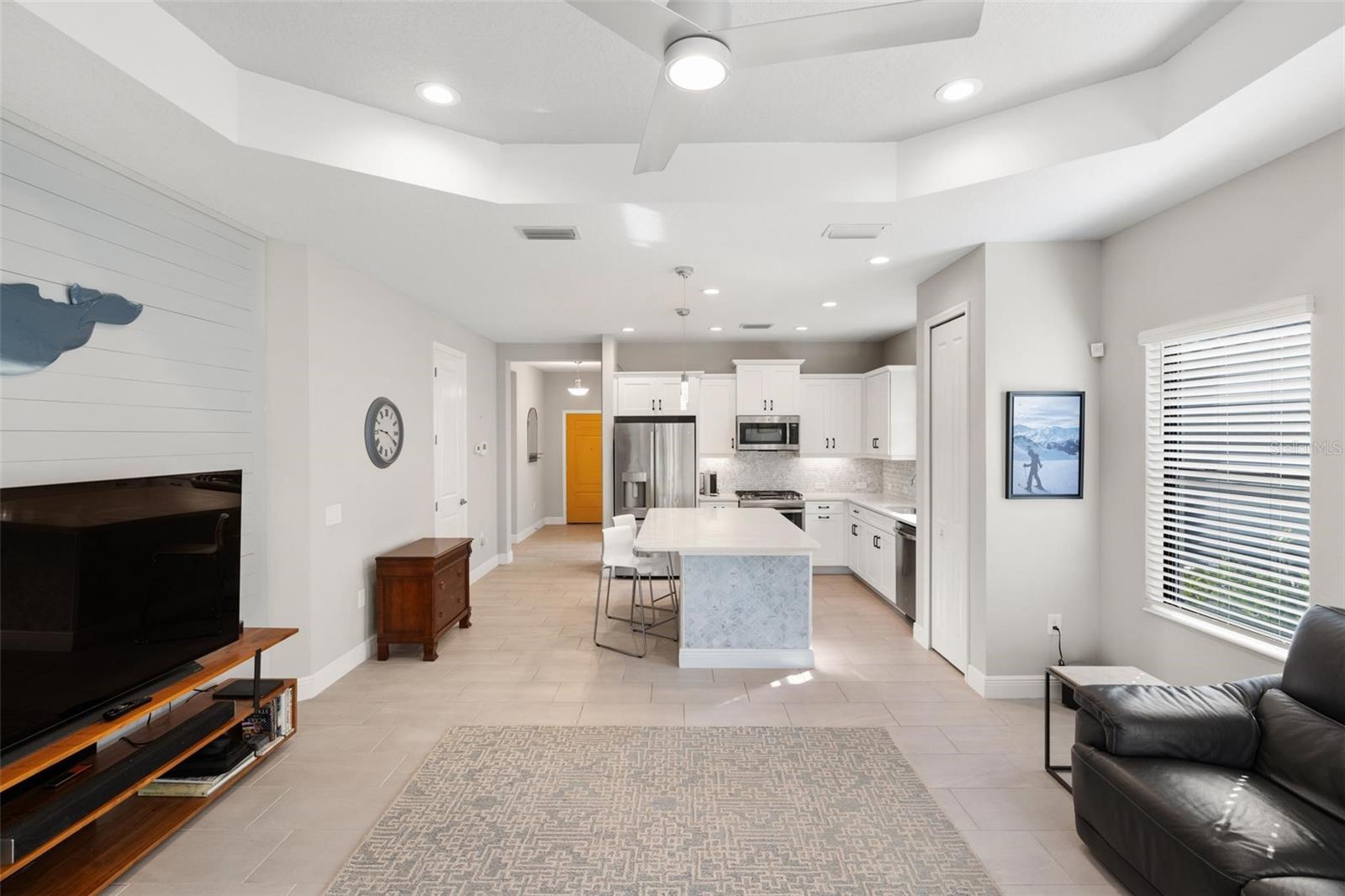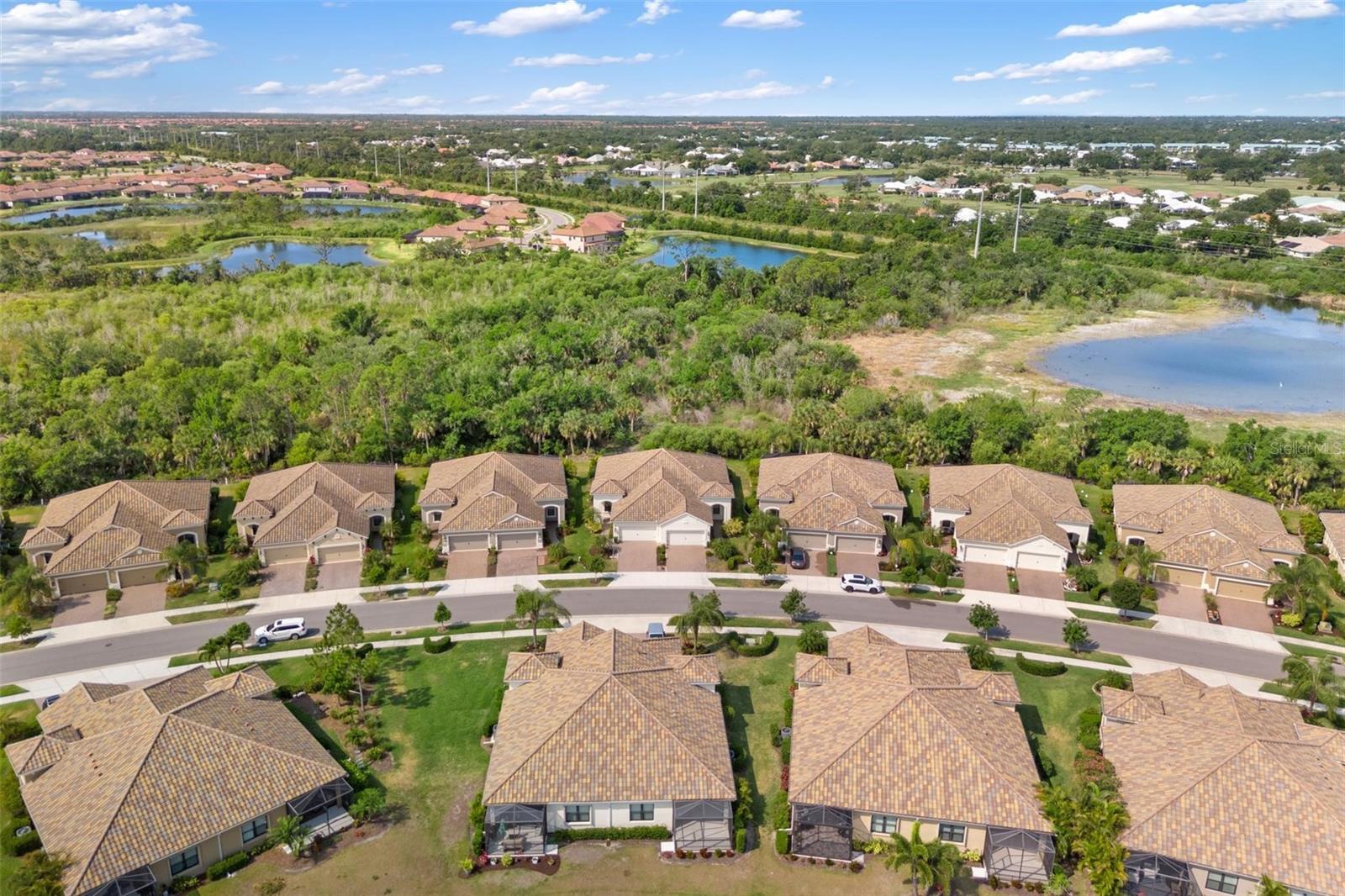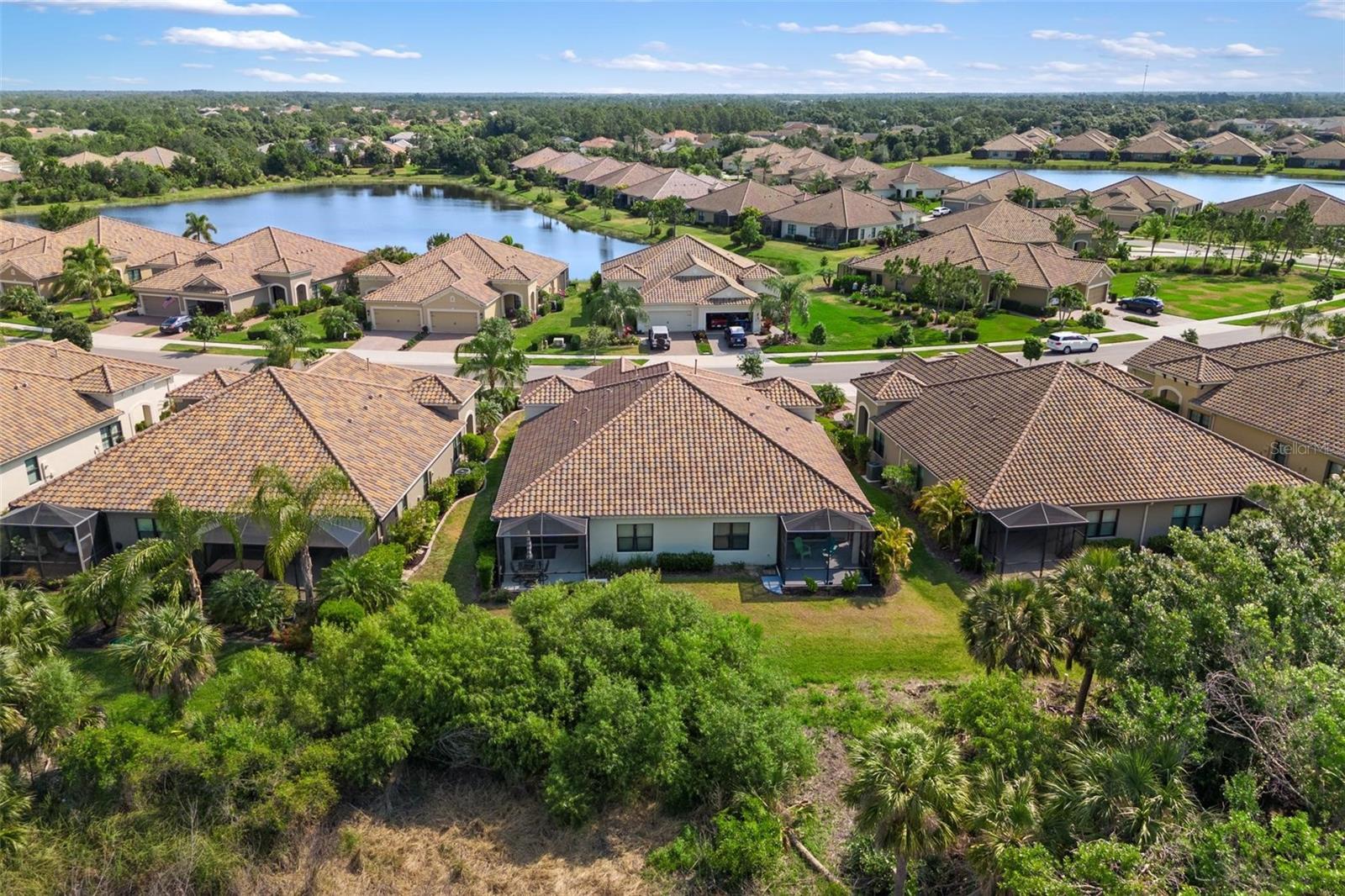 Live every day like you're on vacation at Grand Palm! Welcome to this exceptional 2-bedroom, 2-bathroom villa with a 2-car garage PLUS a den, perfectly situated in this resort-style, gated community offering a maintenance-free lifestyle. This home offers an incredible opportunity with an assumable VA loan at a low 2.3%, providing significant savings for qualified buyers. Enjoy ultimate privacy with no rear neighbors on this tranquil preserve lot. The attractive curb appeal of this like-new home built in 2019 is sure to impress, from the freshly painted in March 2024 exterior, Mediterranean tile roof, to the pavered driveway and pathway surrounded by lush landscaping. Stepping inside the foyer, French doors lead you to the bonus room that offers versatility, whether you're looking for a home office, gym, playroom, or even a third bedroom. Make your way to the open-concept great room, where the stunning kitchen is seamlessly connected to the living and dining space. The spacious modern kitchen showcases an upgraded stainless steel appliance package with gas range, white cabinetry accented by black pulls, quartz countertops with a large island for extra seating, and a generously sized pantry offering ample storage space. Under cabinet lighting illuminates the stunning backsplash. The living room features a tray ceiling and an accent shiplap wall that is sure to be a conversation piece while enjoying the serene backyard views. The owner's suite offers a private retreat at the rear of the home, overlooking the preserve, and features a beautifully appointed bathroom with separate vanities, a walk-in shower, and two closets for ample storage. The split-bedroom floor plan allows for much-desired privacy, so the second bedroom provides flexibility for guests or additional family members, while the second bathroom is conveniently located nearby. Enjoy the convenience of having an indoor laundry room, as well as the peace of mind of having impact glass windows throughout the home. Outside, the extended screened-in lanai overlooks peaceful preserve views, perfect for taking in all that nature has to offer. The lanai is also pre-lined with a natural gas hookup to build the outdoor kitchen of your dreams, ideal for entertaining family and friends. Grand Palm offers its residents a resort-style living experience, including three pools, pickleball, and a variety of monthly activities. Fitness enthusiasts will enjoy the on-site weight and cardio rooms, while families can enjoy the pool with a waterslide, playground, and splash pad for the little ones. There are not one, but two dog parks for your furry family members. Enjoy Exploration Park, miles of walking trails meandering through the natural preserves, and dozens of lakes and ponds for kayaking and fishing. This is truly a one-of-a-kind community, close to Downtown Wellen Park, Venice Island, Sarasota, pristine beaches, professional sports, dining, shopping, and cultural venues!