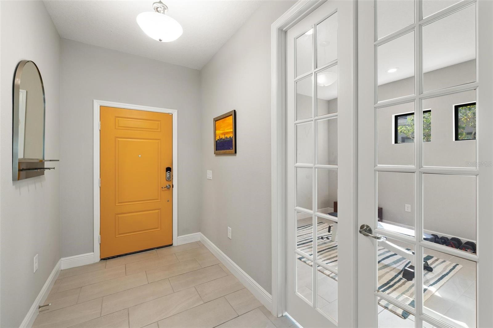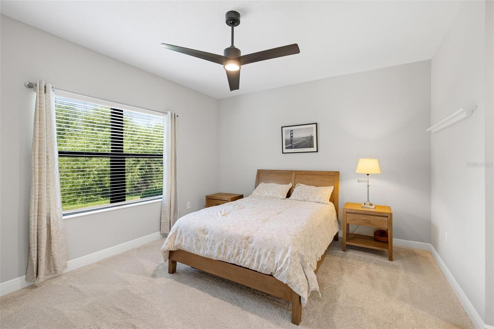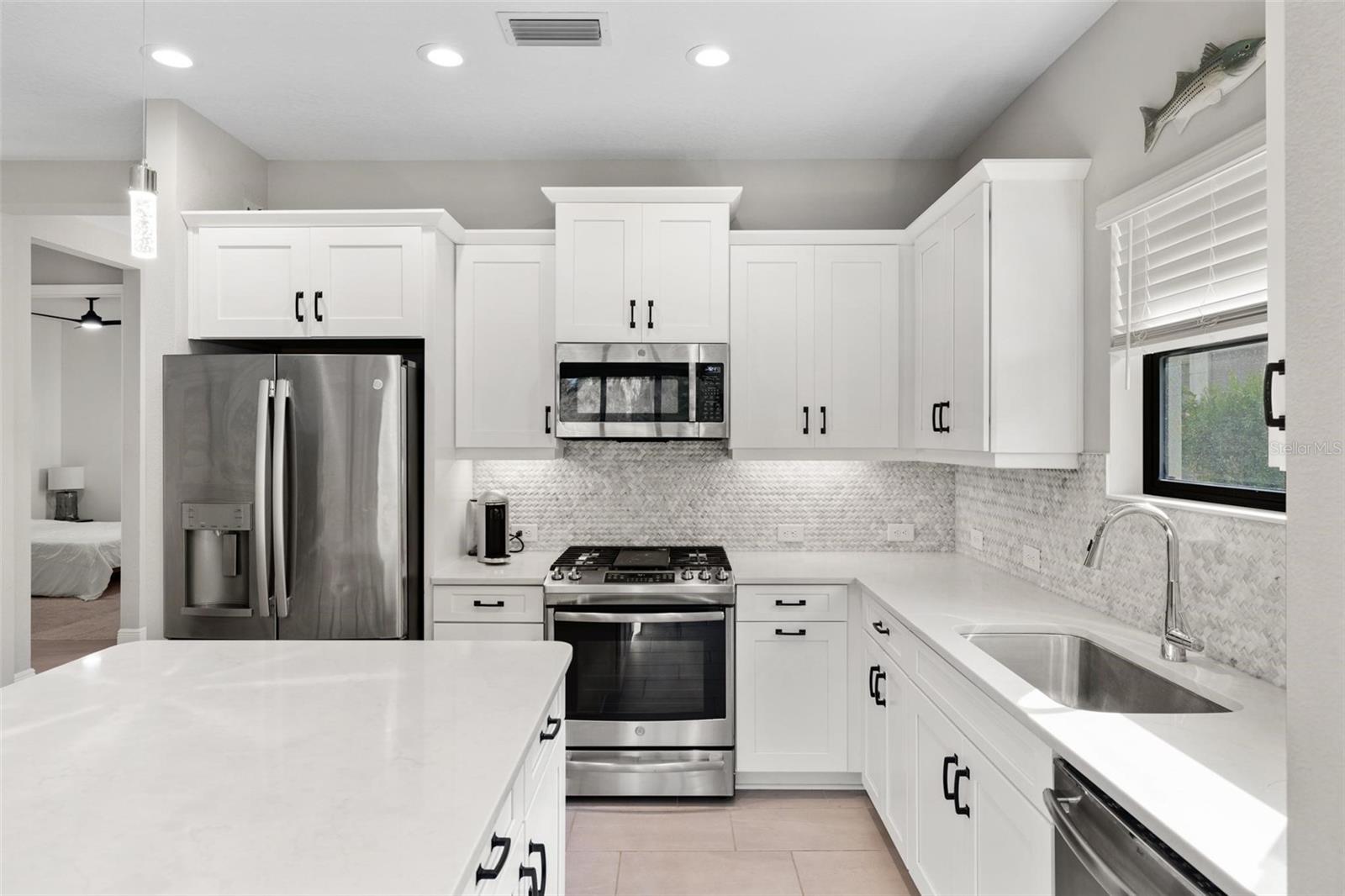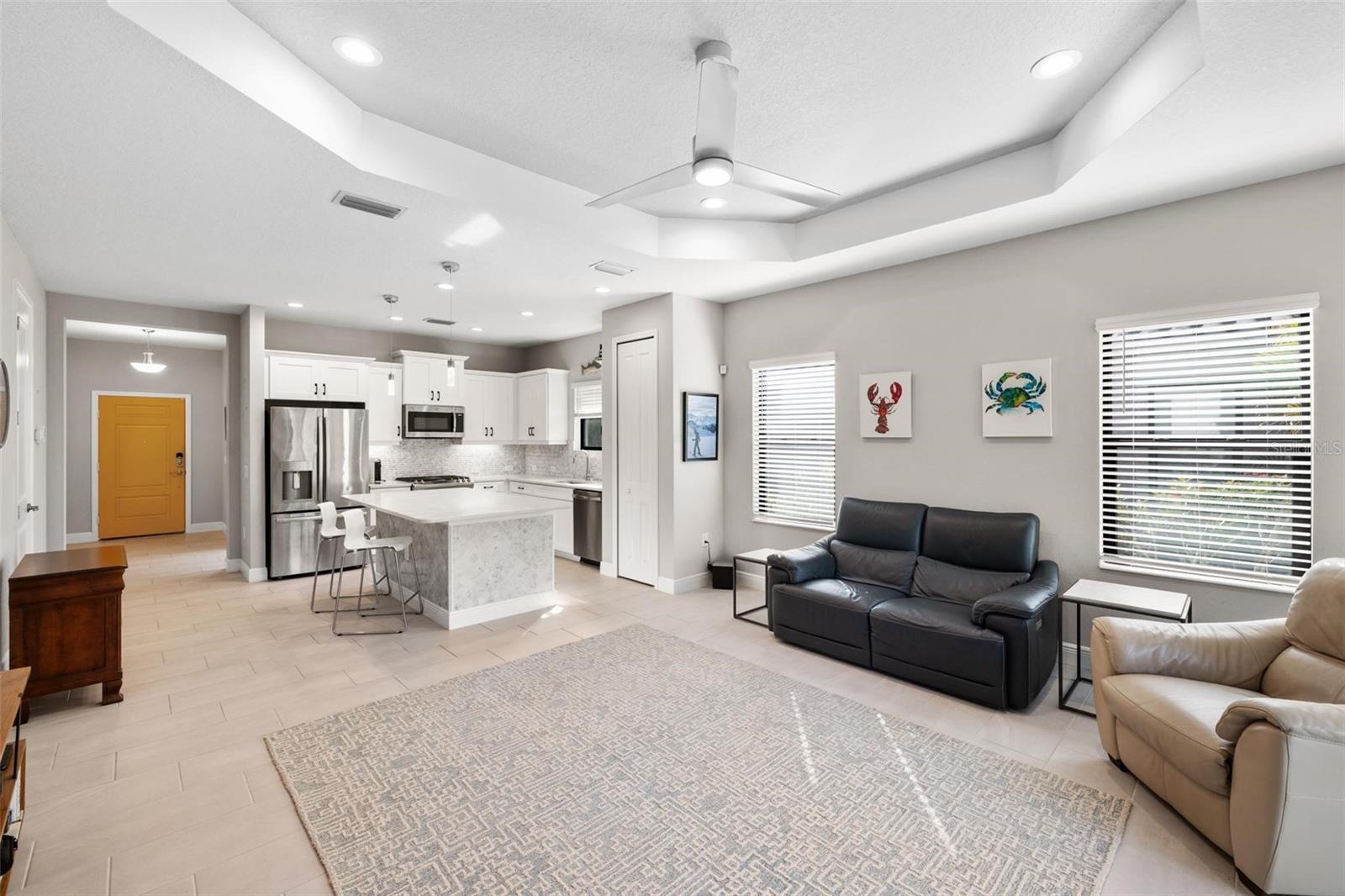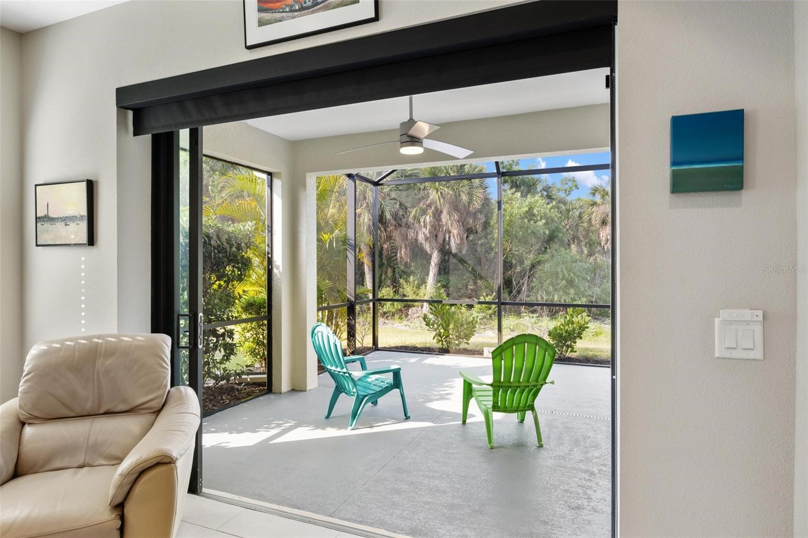 Live every day like you're on vacation at Grand Palm! Welcome to this exceptional 2-bedroom, 2-bathroom villa with a 2-car garage PLUS a den, perfectly situated in this resort-style, gated community offering a maintenance-free lifestyle. This home offers an incredible opportunity with an assumable VA loan at a low 2.3%, providing significant savings for qualified buyers. Enjoy ultimate privacy with no rear neighbors on this tranquil preserve lot. The attractive curb appeal of this like-new home built in 2019 is sure to impress, from the freshly painted in March 2024 exterior, Mediterranean tile roof, to the pavered driveway and pathway surrounded by lush landscaping. Stepping inside the foyer, French doors lead you to the bonus room that offers versatility, whether you're looking for a home office, gym, playroom, or even a third bedroom. Make your way to the open-concept great room, where the stunning kitchen is seamlessly connected to the living and dining space. The spacious modern kitchen showcases an upgraded stainless steel appliance package with gas range, white cabinetry accented by black pulls, quartz countertops with a large island for extra seating, and a generously sized pantry offering ample storage space. Under cabinet lighting illuminates the stunning backsplash. The living room features a tray ceiling and an accent shiplap wall that is sure to be a conversation piece while enjoying the serene backyard views. The owner's suite offers a private retreat at the rear of the home, overlooking the preserve, and features a beautifully appointed bathroom with separate vanities, a walk-in shower, and two closets for ample storage. The split-bedroom floor plan allows for much-desired privacy, so the second bedroom provides flexibility for guests or additional family members, while the second bathroom is conveniently located nearby. Enjoy the convenience of having an indoor laundry room, as well as the peace of mind of having impact glass windows throughout the home. Outside, the extended screened-in lanai overlooks peaceful preserve views, perfect for taking in all that nature has to offer. The lanai is also pre-lined with a natural gas hookup to build the outdoor kitchen of your dreams, ideal for entertaining family and friends. Grand Palm offers its residents a resort-style living experience, including three pools, pickleball, and a variety of monthly activities. Fitness enthusiasts will enjoy the on-site weight and cardio rooms, while families can enjoy the pool with a waterslide, playground, and splash pad for the little ones. There are not one, but two dog parks for your furry family members. Enjoy Exploration Park, miles of walking trails meandering through the natural preserves, and dozens of lakes and ponds for kayaking and fishing. This is truly a one-of-a-kind community, close to Downtown Wellen Park, Venice Island, Sarasota, pristine beaches, professional sports, dining, shopping, and cultural venues!