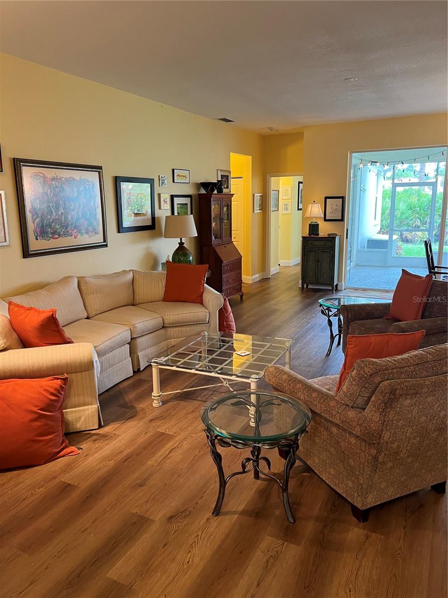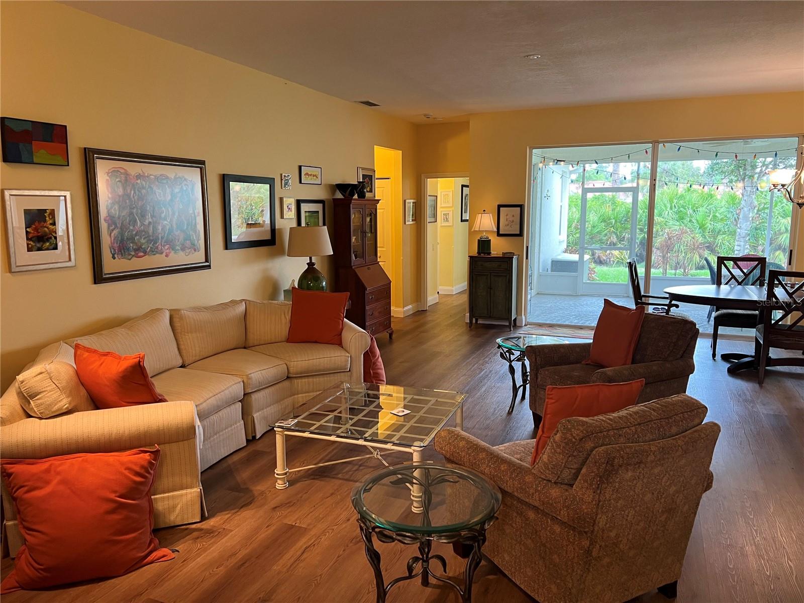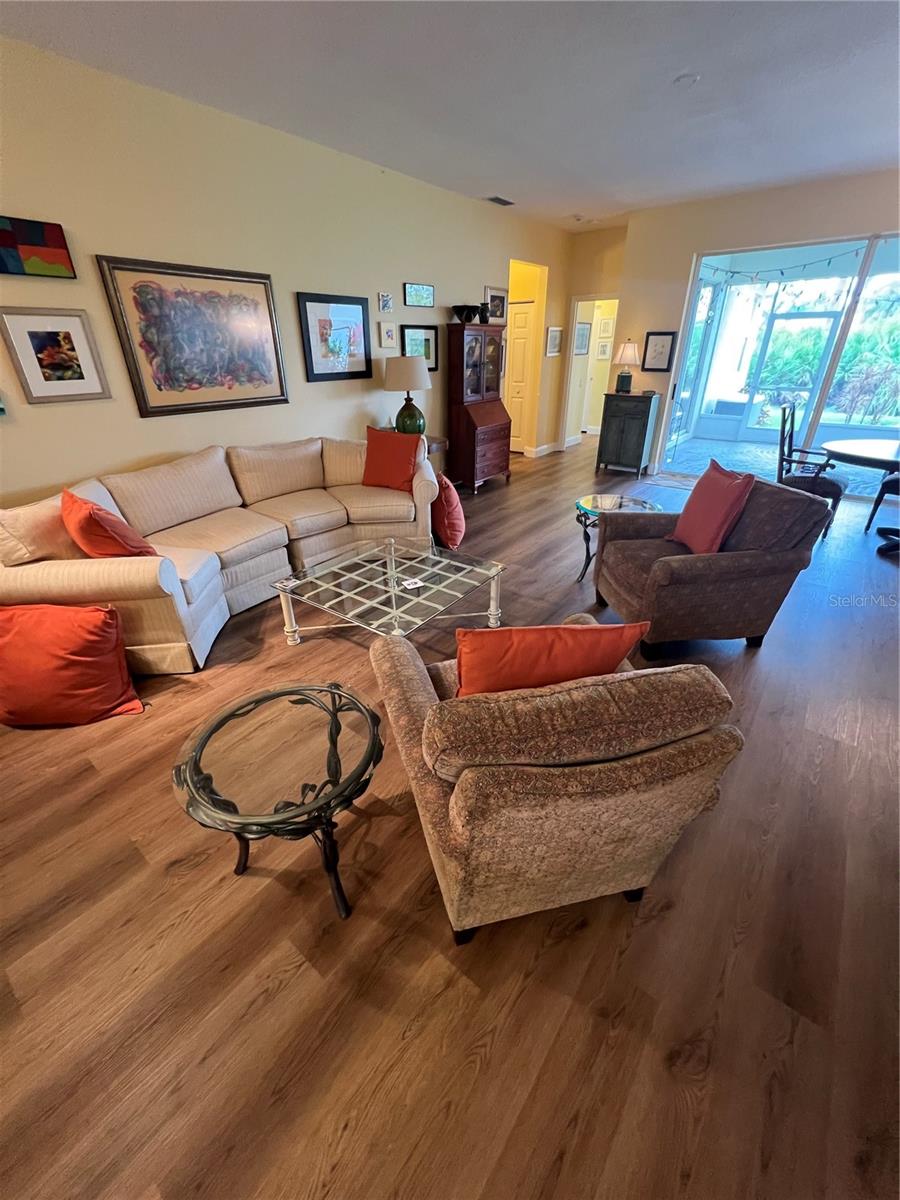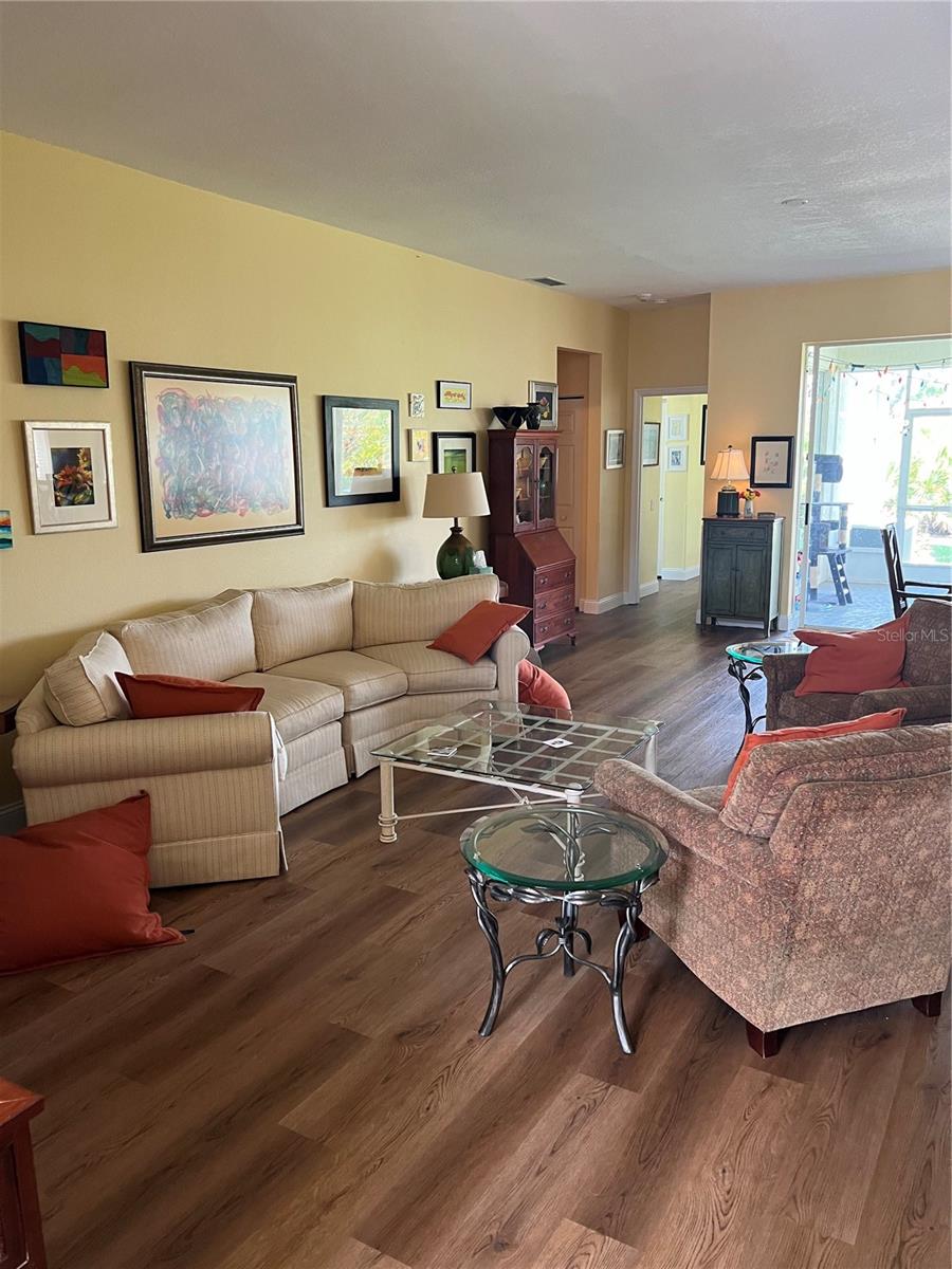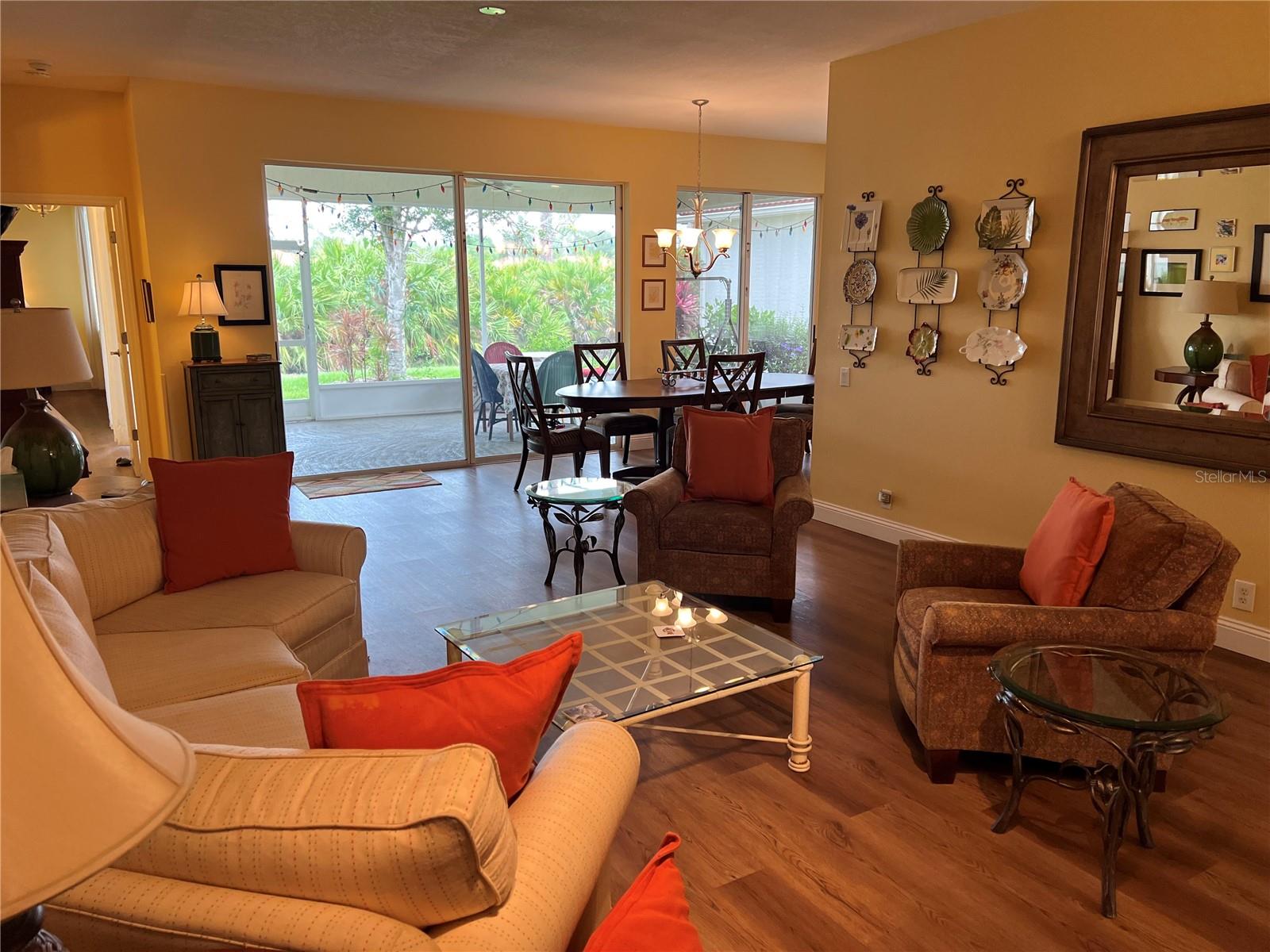****Price Improvement*****Discover serenity in the heart of Venice's coveted Southwoods neighborhood with this charming 2-bedroom, 2-bathroom home, boasting an additional den for versatile living. Embrace the essence of hassle-free living with its maintenance-free design, allowing you more time to enjoy in the delights of this great location! Nestled amidst mature tree-lined streets, this residence invites leisurely strolls and peaceful moments. Step inside to find a thoughtfully designed layout, highlighted by a spacious lanai seamlessly connecting the indoor and outdoor living spaces, perfect for entertaining or simply unwinding after a busy day. Indulge in the luxury of ample storage with plenty of closet space, complemented by newer flooring that adds a touch of modern elegance throughout the entire house. Delight in culinary adventures in the well-appointed kitchen featuring granite countertops and a spacious pantry, perfect for the home chef and avid entertainer alike. Park with ease in the large 2-car garage and relish the convenience of community living with access to a sparkling pool, ideal for soaking up the Florida sunshine and mingling with neighbors. Retreat to the tranquility of your backyard oasis, which backs up to a small preserve, offering a serene backdrop for outdoor gatherings. Experience the epitome of comfort and style in this Southwoods sanctuary. Make this your forever home and discover the beauty of Venice living at its finest."