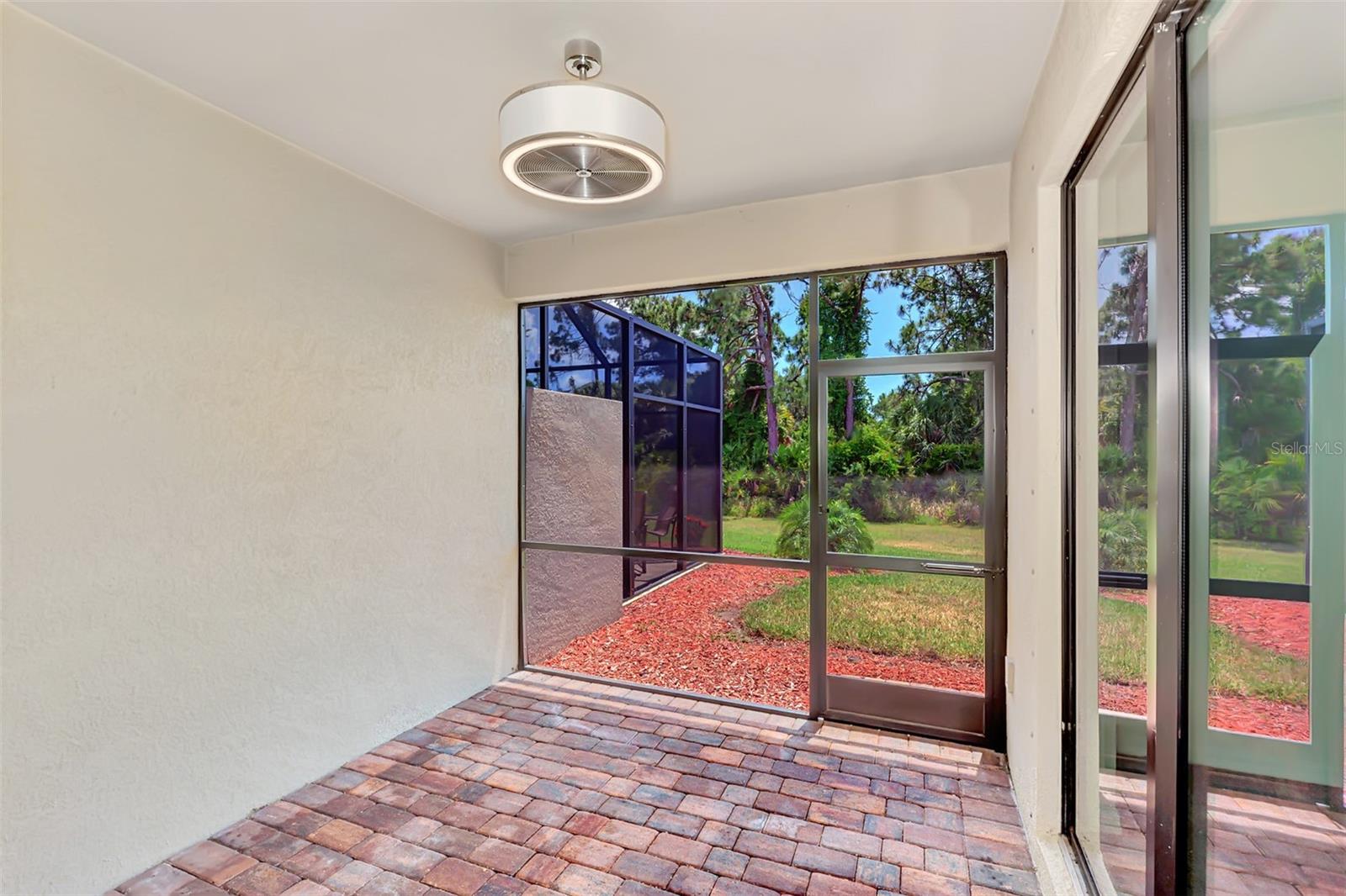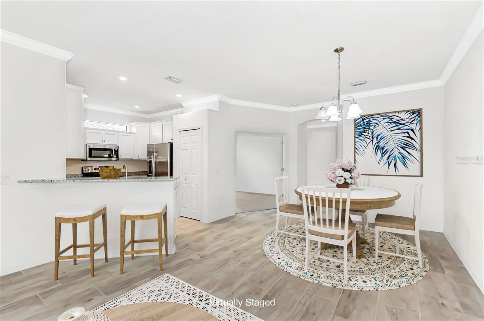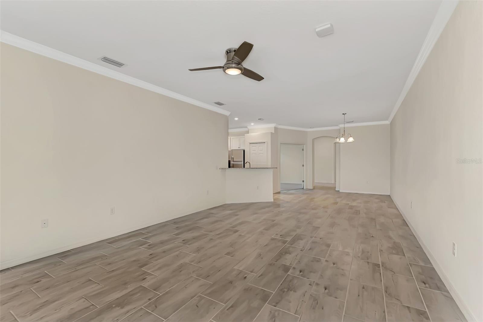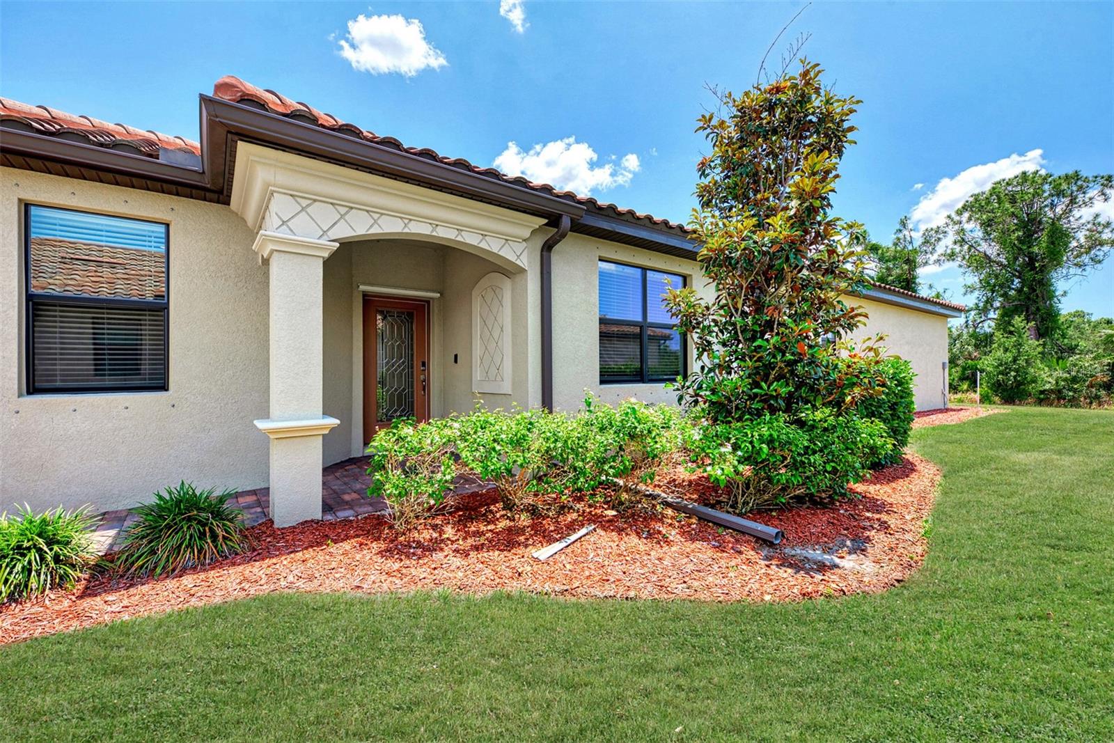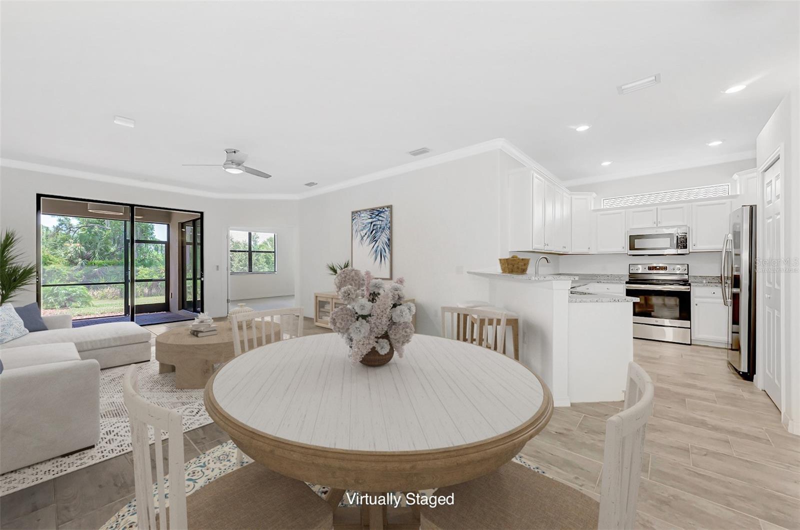 One or more photo(s) has been virtually staged. MOTIVATED SELLER! AND, it includes a golf cart! Located in the super-active Gran Paradiso neighborhood within the master-planned community of Wellen Park in area of Venice, Florida. This villa offers exceptional value, complete with a complimentary golf cart. The Orchid model is the more spacious and popular of the two available floor plans in the twin villas, boasting 1650 square feet of living space. This layout features two bedrooms and a den, with the guest bedroom ideally positioned for privacy on the opposite side of the foyer, adjacent to the hall bath. This arrangement allows guests to enjoy early morning strolls on the beach or through the neighborhood without disturbing anyone. French doors connect the master bedroom to the main living area, enhancing the open and inviting feel of the home. The villa's interior is designed with modern aesthetics in mind, featuring white cabinetry, grey plank tile flooring, stainless steel appliances, and elegant crown molding, making it a ready-to-move-in gem. The west and northwest facing orientation of the villa invites natural light, maintaining a bright and airy atmosphere throughout the day, while the rear of the property offers serene views of a private wooded area...there's even room for a pool! Situated conveniently close to downtown Wellen Park, Gulf beaches, and the new Costco, the villa is only 1.5 miles from the iconic Gran Paradiso clubhouse, accessible by a short ride in the included golf cart. Enjoy nearby attractions such as Braves Spring training games or evening concerts and events in Downtown Wellen. This villa not only provides a perfect modern canvas for your new home but also promises a lifestyle of convenience and luxury.