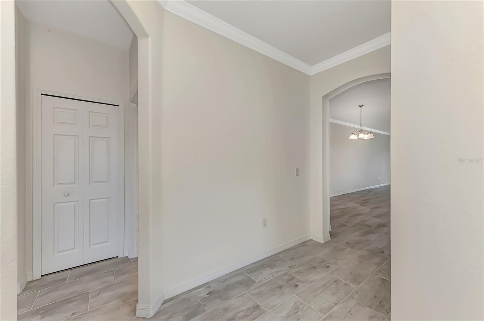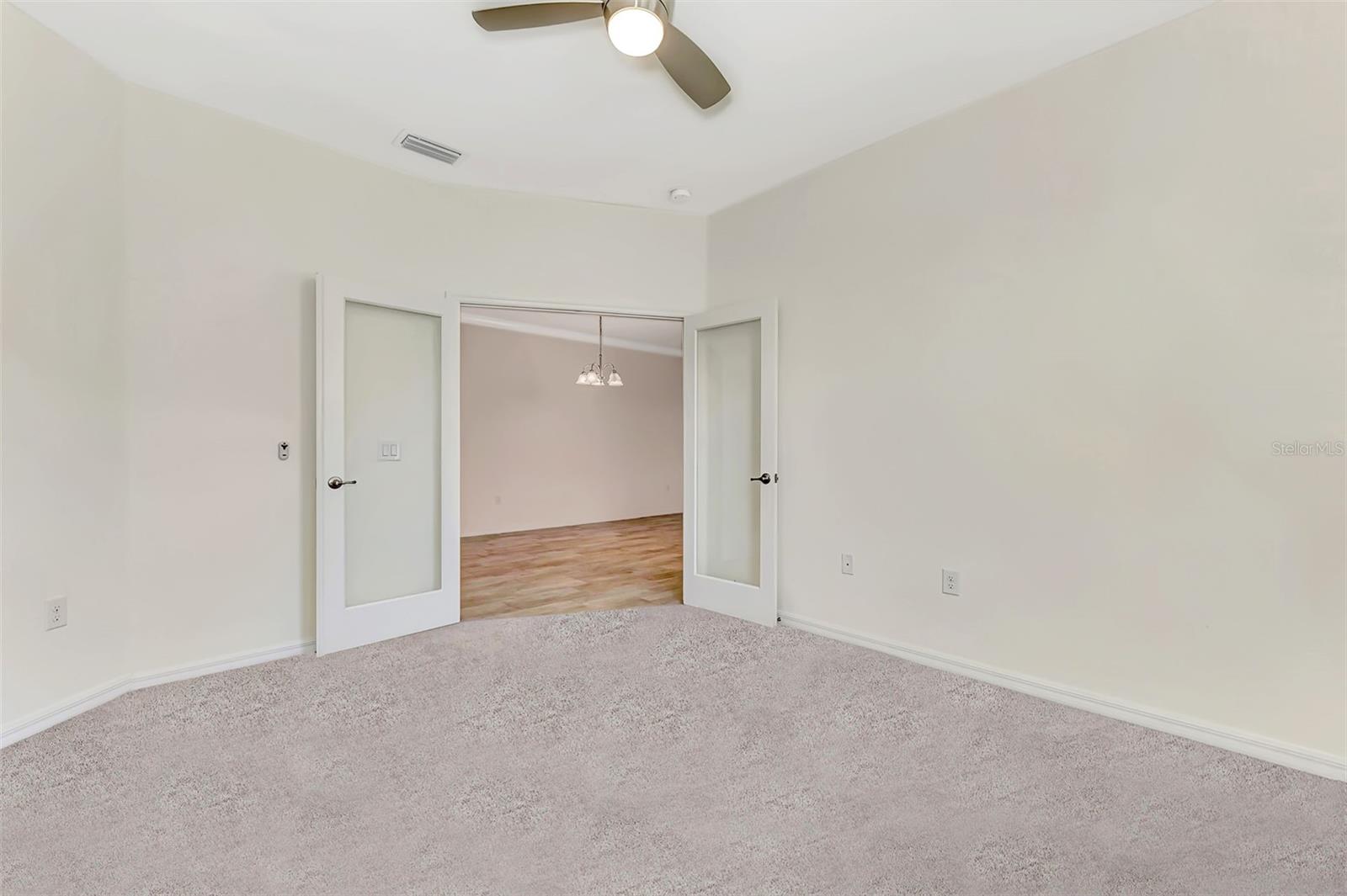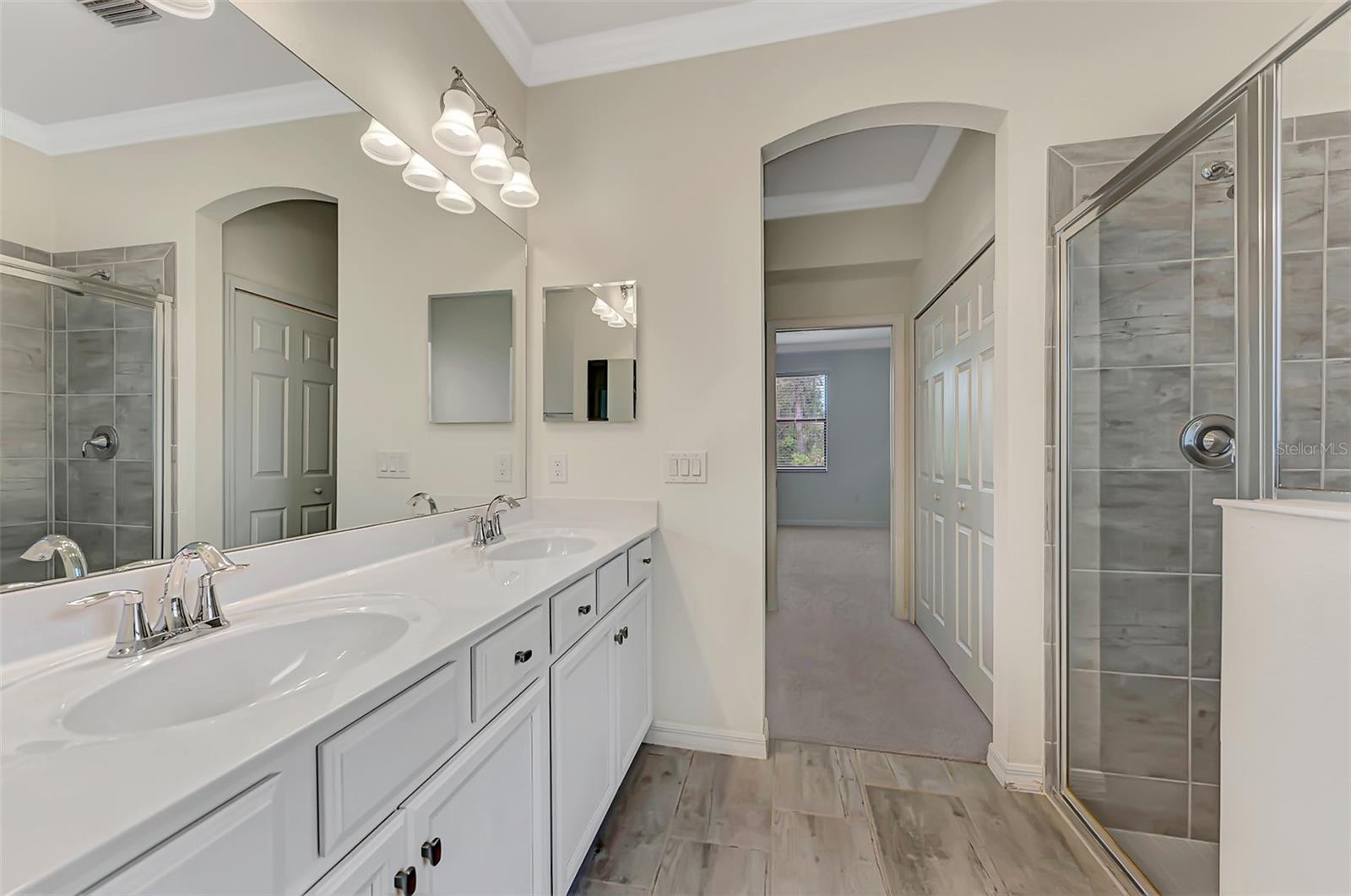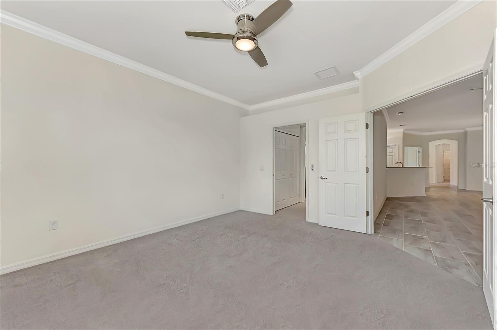 One or more photo(s) has been virtually staged. MOTIVATED SELLER! AND, it includes a golf cart! Located in the super-active Gran Paradiso neighborhood within the master-planned community of Wellen Park in area of Venice, Florida. This villa offers exceptional value, complete with a complimentary golf cart. The Orchid model is the more spacious and popular of the two available floor plans in the twin villas, boasting 1650 square feet of living space. This layout features two bedrooms and a den, with the guest bedroom ideally positioned for privacy on the opposite side of the foyer, adjacent to the hall bath. This arrangement allows guests to enjoy early morning strolls on the beach or through the neighborhood without disturbing anyone. French doors connect the master bedroom to the main living area, enhancing the open and inviting feel of the home. The villa's interior is designed with modern aesthetics in mind, featuring white cabinetry, grey plank tile flooring, stainless steel appliances, and elegant crown molding, making it a ready-to-move-in gem. The west and northwest facing orientation of the villa invites natural light, maintaining a bright and airy atmosphere throughout the day, while the rear of the property offers serene views of a private wooded area...there's even room for a pool! Situated conveniently close to downtown Wellen Park, Gulf beaches, and the new Costco, the villa is only 1.5 miles from the iconic Gran Paradiso clubhouse, accessible by a short ride in the included golf cart. Enjoy nearby attractions such as Braves Spring training games or evening concerts and events in Downtown Wellen. This villa not only provides a perfect modern canvas for your new home but also promises a lifestyle of convenience and luxury.