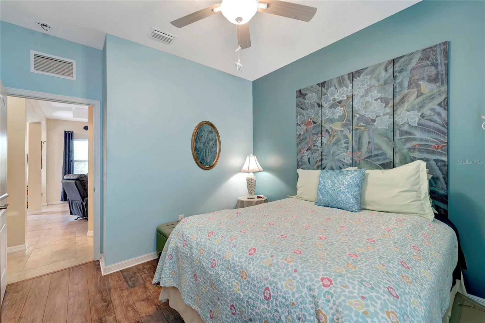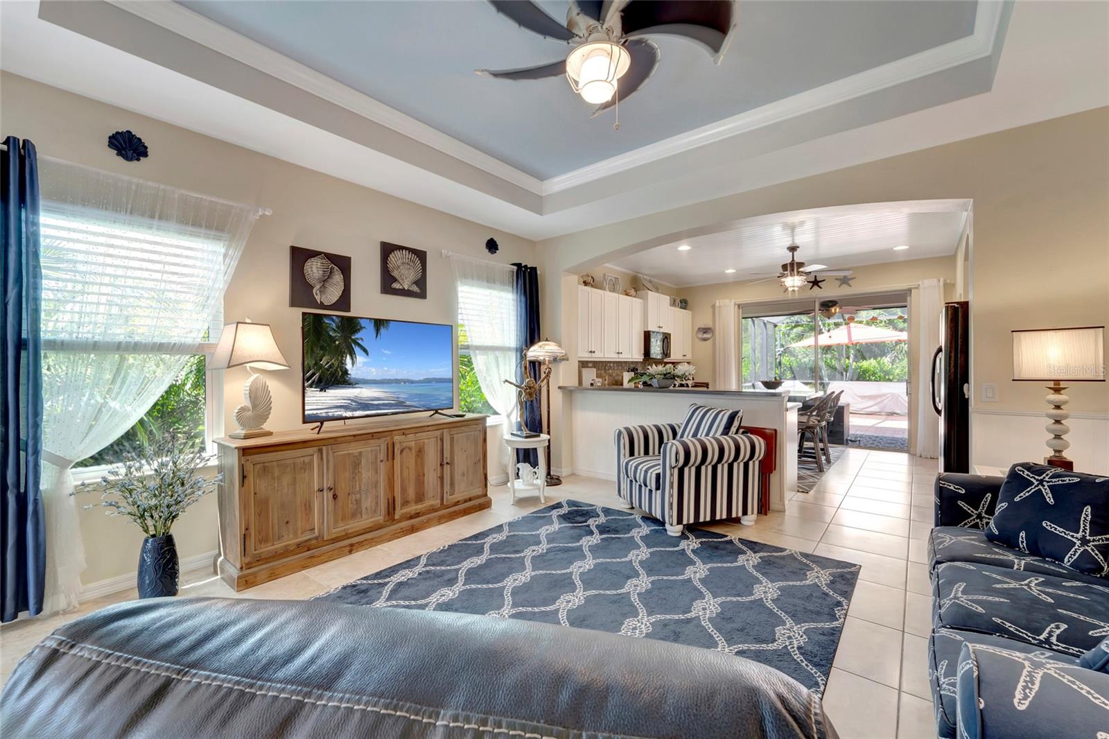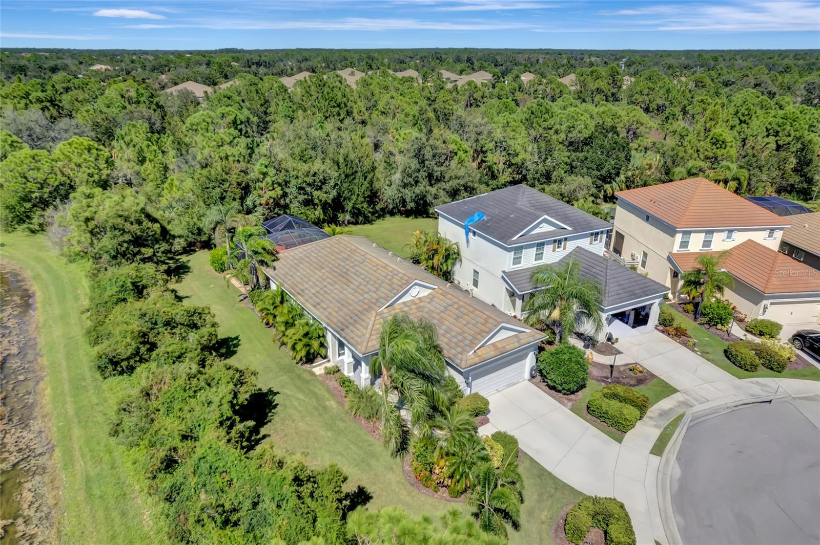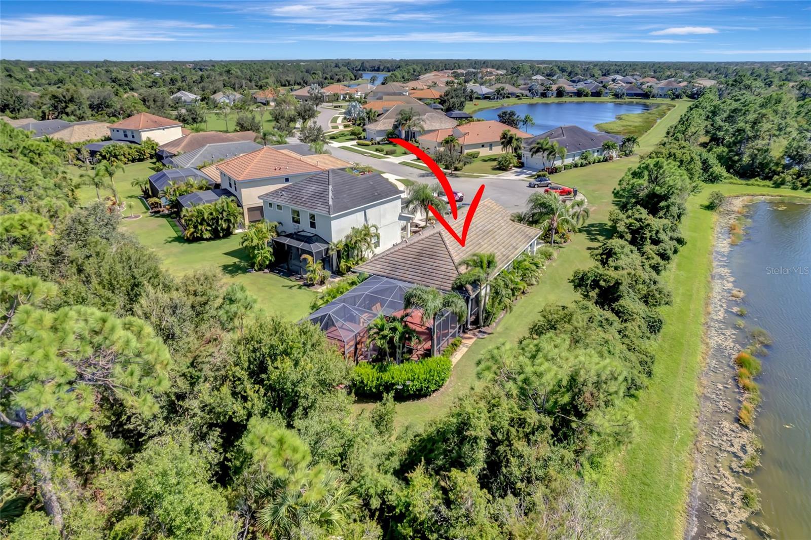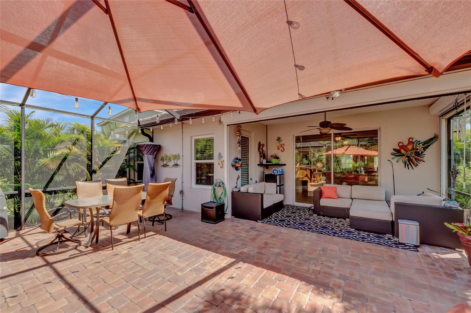 Best buy in Wellen Park! Escape to your private sanctuary in this charming 3-bedroom, 2-bath cottage-style home, ideally situated at the end of a peaceful cul-de-sac. Enjoy ultimate privacy with lush greenery and no neighbors beside or behind the home. Inside, you'll find thoughtful upgrades throughout, including a stunning leaded glass front door, sleek laminate flooring, and hurricane-resistant windows in most areas. The dining room exudes elegance with its decorative wainscoting, while the living room showcases a recessed ceiling with crown molding for added charm. The kitchen is perfect for Florida low-maintenance living with quick access to your outdoor living space, featuring cottage-style cabinets, Corian countertops, a granite composite sink, wainscoting on the ceiling, a gas stove, and a beautifully updated backsplash. The spacious two-car garage, once an art studio, now includes its own air conditioning while maintaining its functionality. The crowning jewel of this property is the expansive screened-in backyard oasis, perfect for relaxing or entertaining. Enjoy the large heated swim spa, surrounded by ample space for guests and pets to unwind. Don’t miss out on this unique opportunity—schedule your showing today! Located in the exceptional Grand Palm community in Venice, Florida, residents enjoy resort-style living with countless amenities. Just 20 minutes from downtown Venice and the beaches, Grand Palm features a state-of-the-art fitness center, a resort-style pool with a water slide, and fitness pools for laps or water aerobics. Outdoor enthusiasts will love the miles of walking and biking trails, Lookout Point Island, and dedicated dog parks. Sports lovers can take advantage of basketball, tennis, bocce ball, pickleball, volleyball, and more. Live your dream lifestyle at Grand Palm! (*Note: The crystal chandelier in the dining room is not included with the house.)