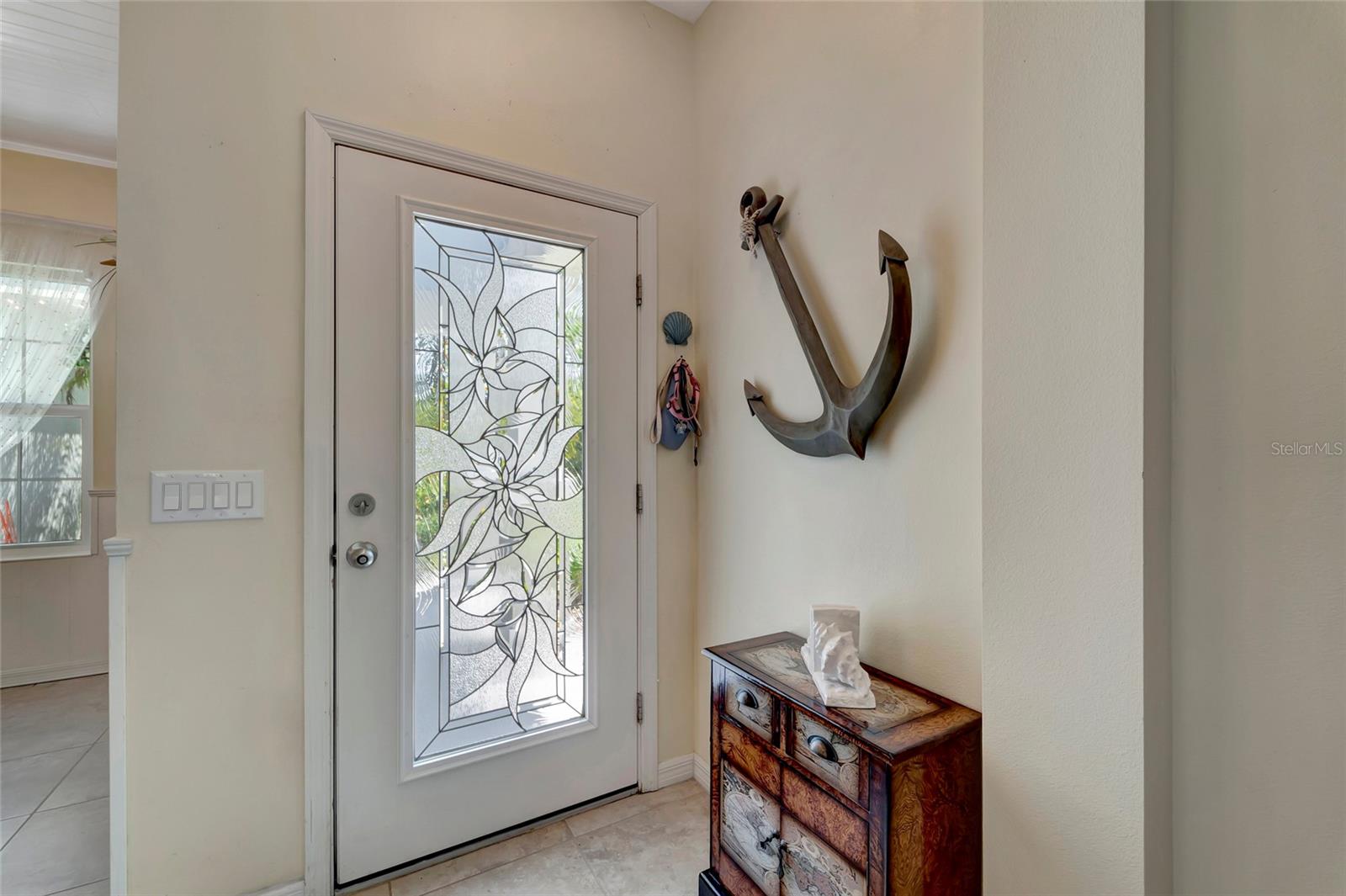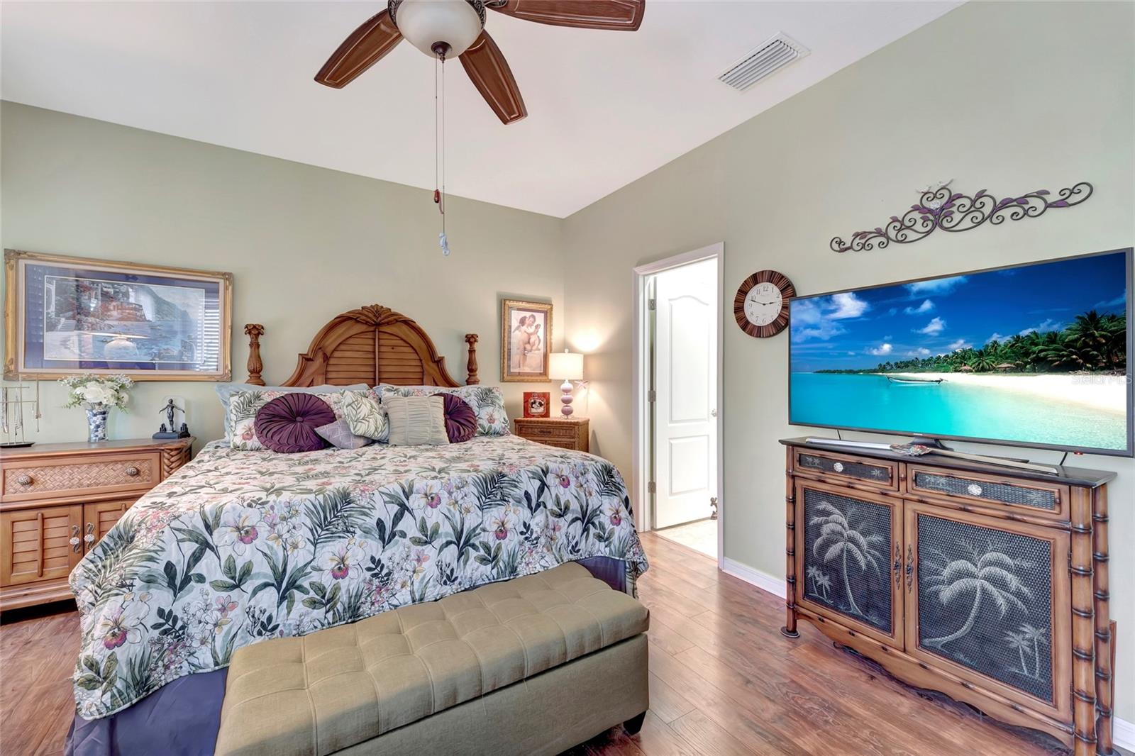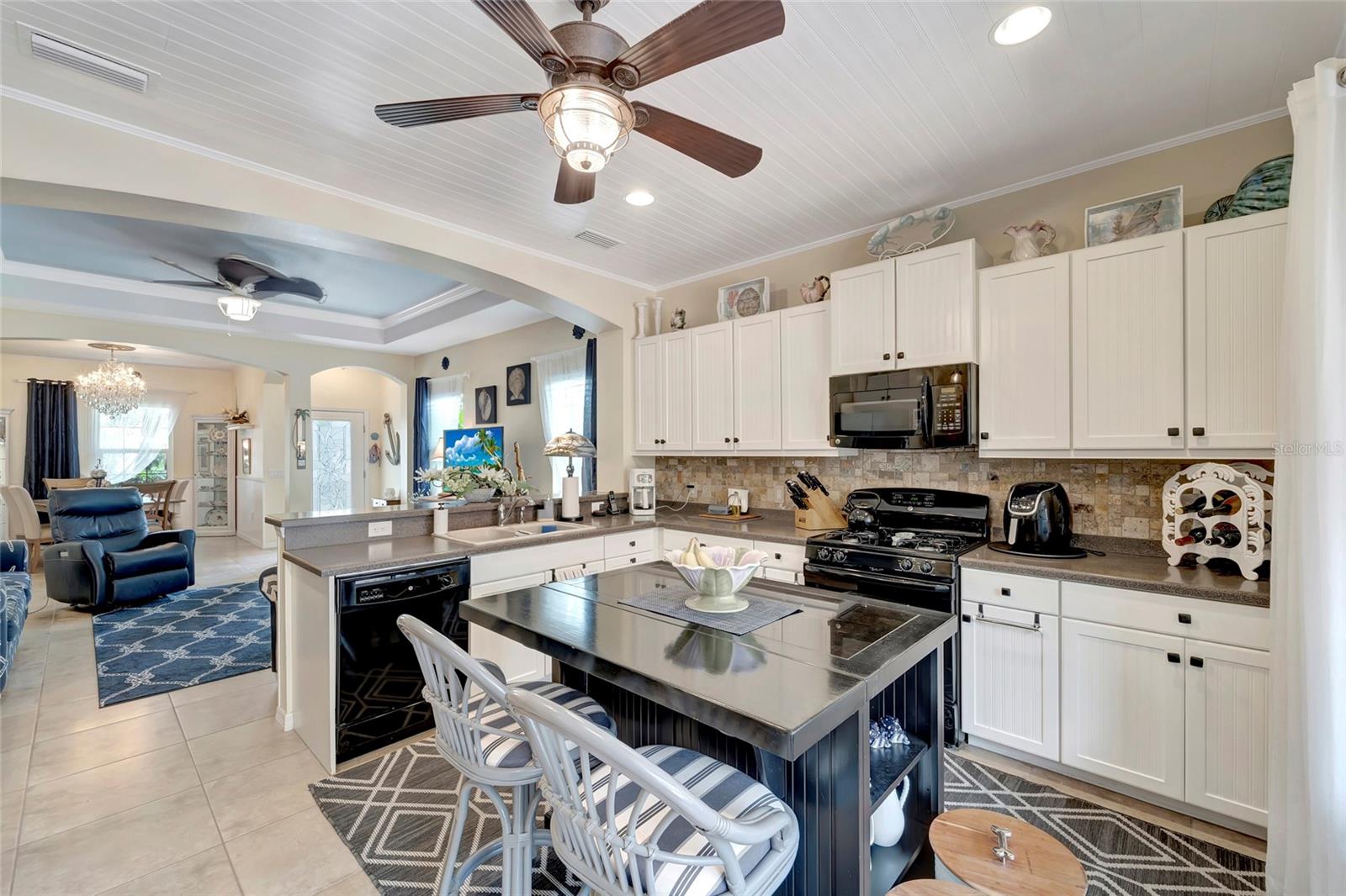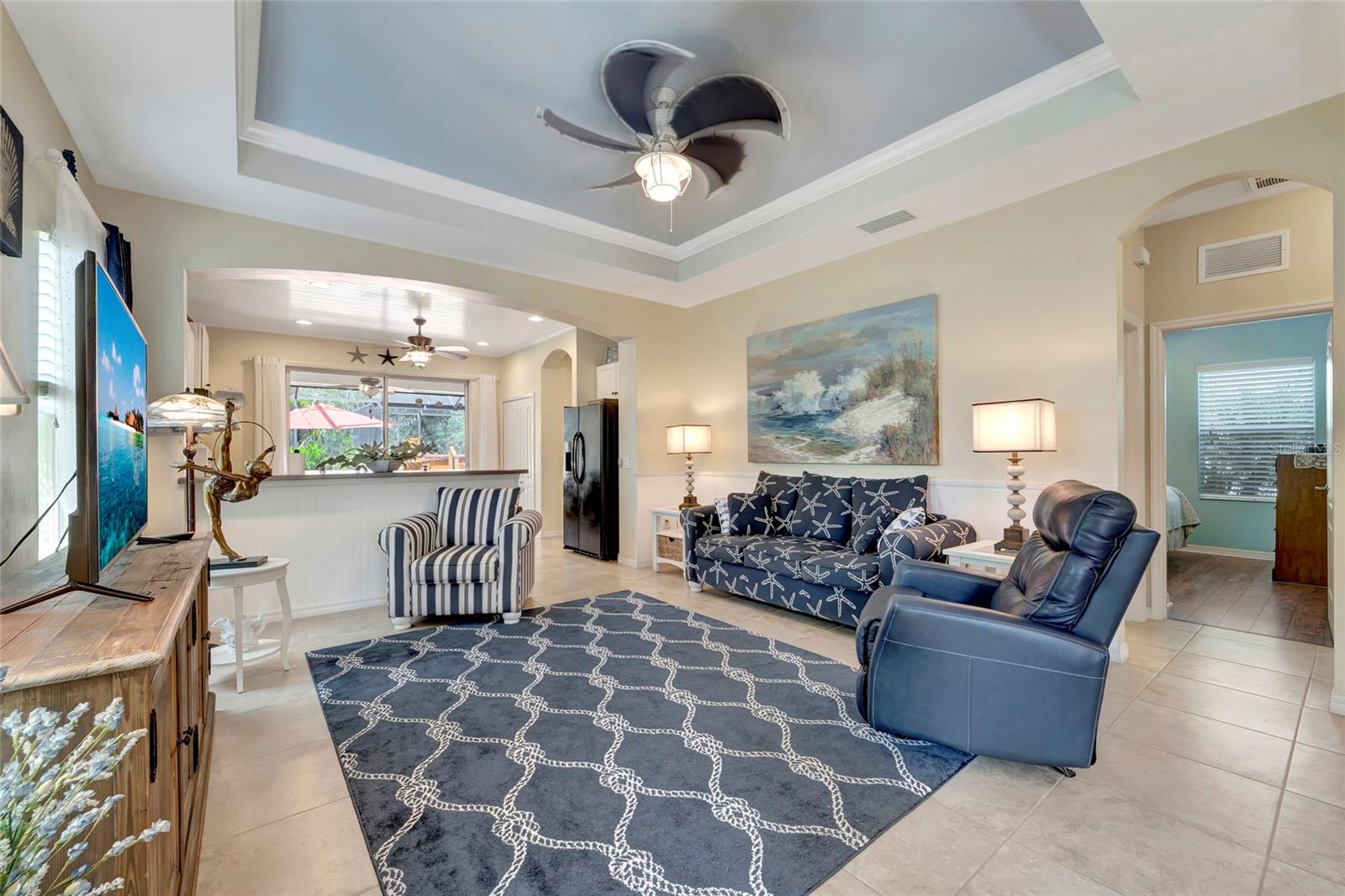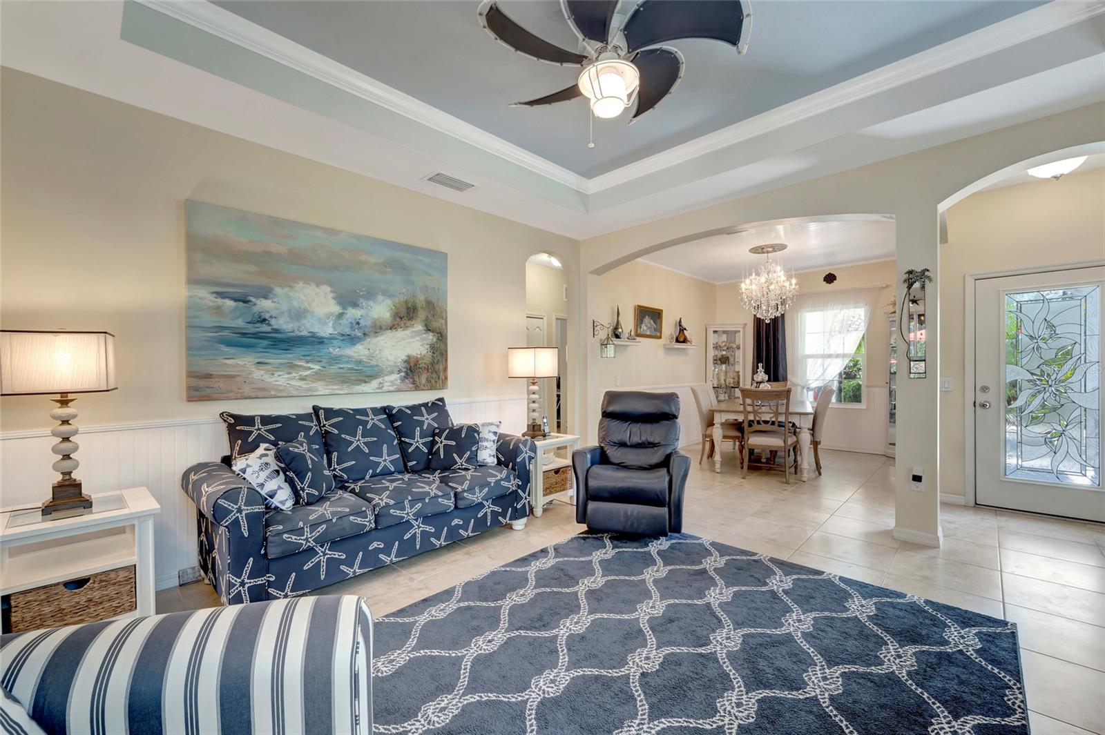 Best buy in Wellen Park! Escape to your private sanctuary in this charming 3-bedroom, 2-bath cottage-style home, ideally situated at the end of a peaceful cul-de-sac. Enjoy ultimate privacy with lush greenery and no neighbors beside or behind the home. Inside, you'll find thoughtful upgrades throughout, including a stunning leaded glass front door, sleek laminate flooring, and hurricane-resistant windows in most areas. The dining room exudes elegance with its decorative wainscoting, while the living room showcases a recessed ceiling with crown molding for added charm. The kitchen is perfect for Florida low-maintenance living with quick access to your outdoor living space, featuring cottage-style cabinets, Corian countertops, a granite composite sink, wainscoting on the ceiling, a gas stove, and a beautifully updated backsplash. The spacious two-car garage, once an art studio, now includes its own air conditioning while maintaining its functionality. The crowning jewel of this property is the expansive screened-in backyard oasis, perfect for relaxing or entertaining. Enjoy the large heated swim spa, surrounded by ample space for guests and pets to unwind. Don’t miss out on this unique opportunity—schedule your showing today! Located in the exceptional Grand Palm community in Venice, Florida, residents enjoy resort-style living with countless amenities. Just 20 minutes from downtown Venice and the beaches, Grand Palm features a state-of-the-art fitness center, a resort-style pool with a water slide, and fitness pools for laps or water aerobics. Outdoor enthusiasts will love the miles of walking and biking trails, Lookout Point Island, and dedicated dog parks. Sports lovers can take advantage of basketball, tennis, bocce ball, pickleball, volleyball, and more. Live your dream lifestyle at Grand Palm! (*Note: The crystal chandelier in the dining room is not included with the house.)
