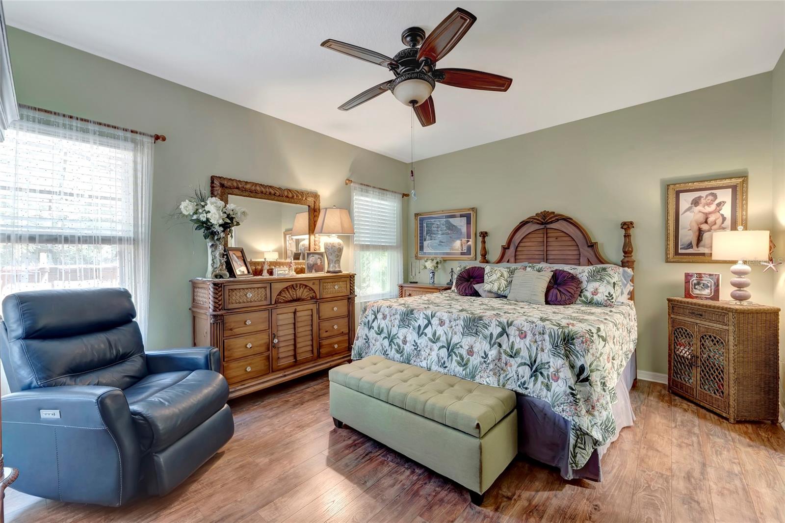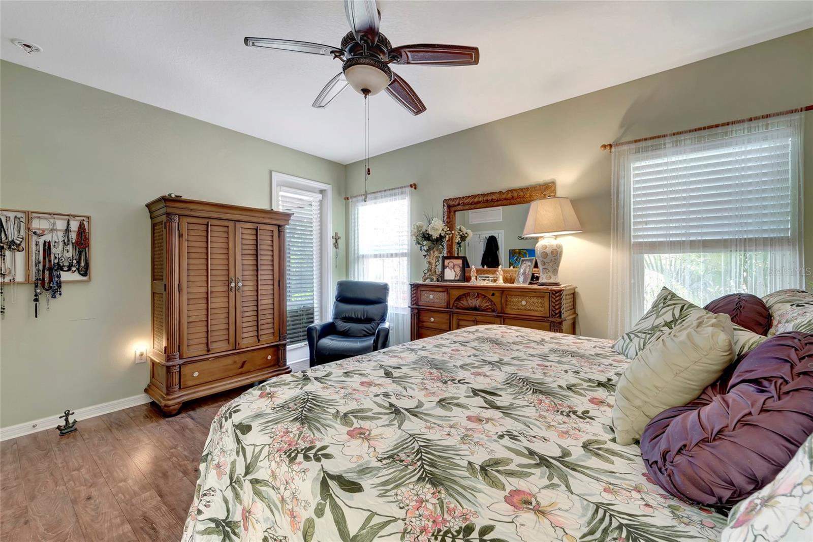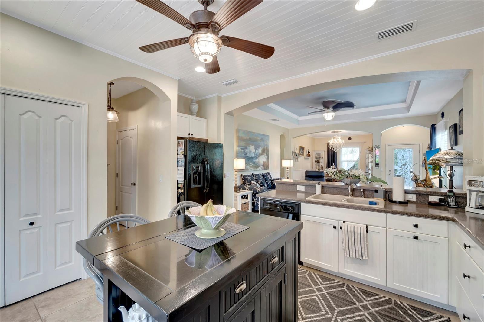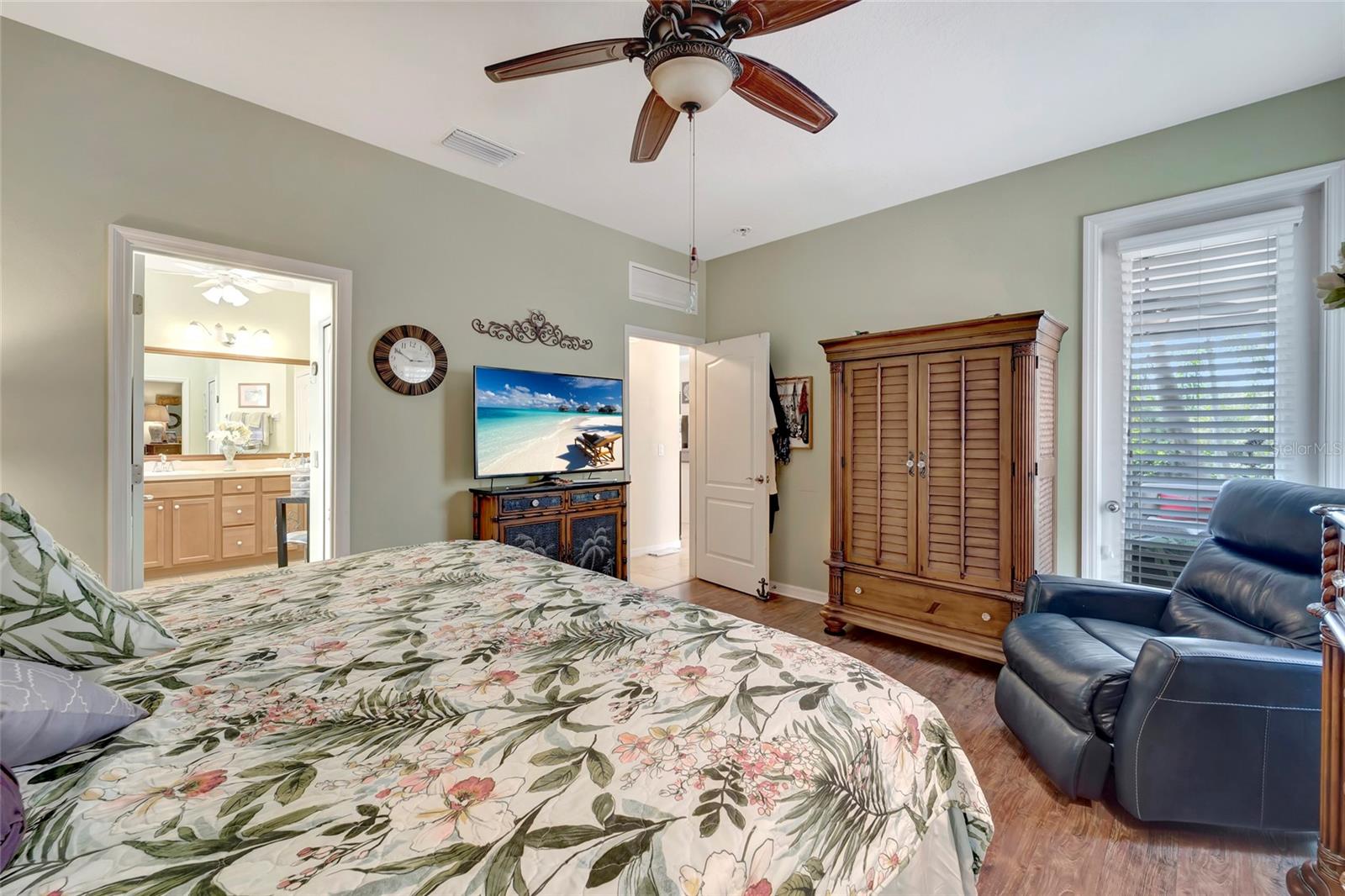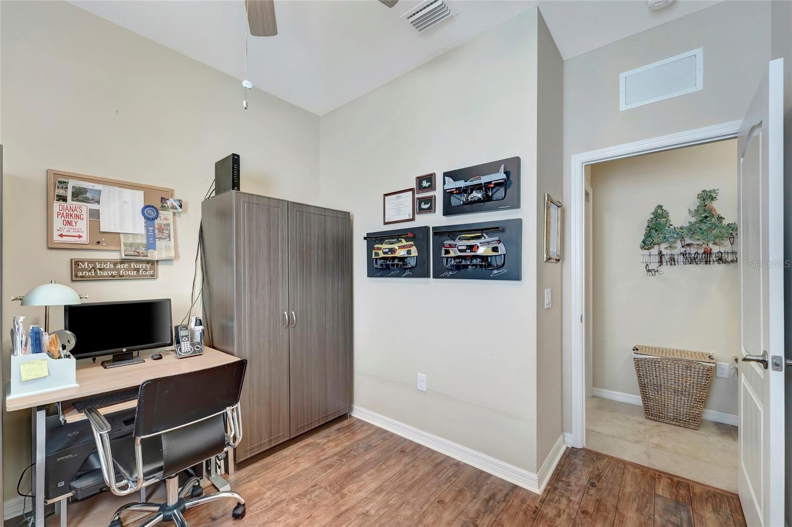Best buy in Wellen Park! Escape to your private sanctuary in this charming 3-bedroom, 2-bath cottage-style home, ideally situated at the end of a peaceful cul-de-sac. Enjoy ultimate privacy with lush greenery and no neighbors beside or behind the home. Inside, you'll find thoughtful upgrades throughout, including a stunning leaded glass front door, sleek laminate flooring, and hurricane-resistant windows in most areas. The dining room exudes elegance with its decorative wainscoting, while the living room showcases a recessed ceiling with crown molding for added charm. The kitchen is perfect for Florida low-maintenance living with quick access to your outdoor living space, featuring cottage-style cabinets, Corian countertops, a granite composite sink, wainscoting on the ceiling, a gas stove, and a beautifully updated backsplash. The spacious two-car garage, once an art studio, now includes its own air conditioning while maintaining its functionality. The crowning jewel of this property is the expansive screened-in backyard oasis, perfect for relaxing or entertaining. Enjoy the large heated swim spa, surrounded by ample space for guests and pets to unwind. Don’t miss out on this unique opportunity—schedule your showing today! Located in the exceptional Grand Palm community in Venice, Florida, residents enjoy resort-style living with countless amenities. Just 20 minutes from downtown Venice and the beaches, Grand Palm features a state-of-the-art fitness center, a resort-style pool with a water slide, and fitness pools for laps or water aerobics. Outdoor enthusiasts will love the miles of walking and biking trails, Lookout Point Island, and dedicated dog parks. Sports lovers can take advantage of basketball, tennis, bocce ball, pickleball, volleyball, and more. Live your dream lifestyle at Grand Palm! (*Note: The crystal chandelier in the dining room is not included with the house.)