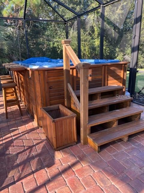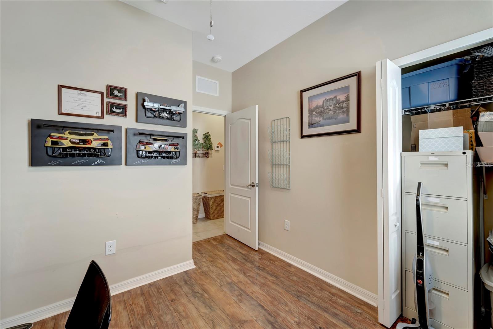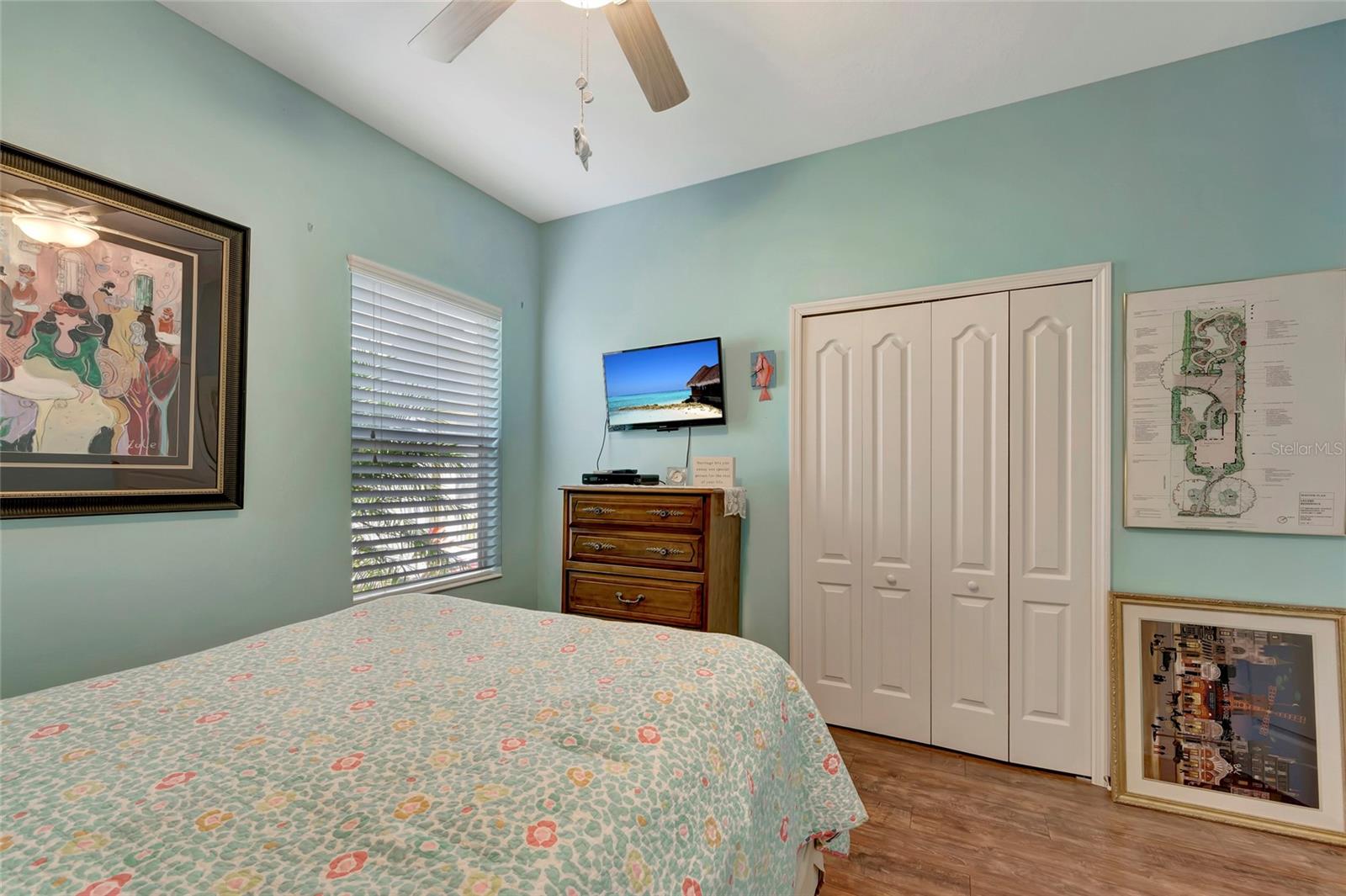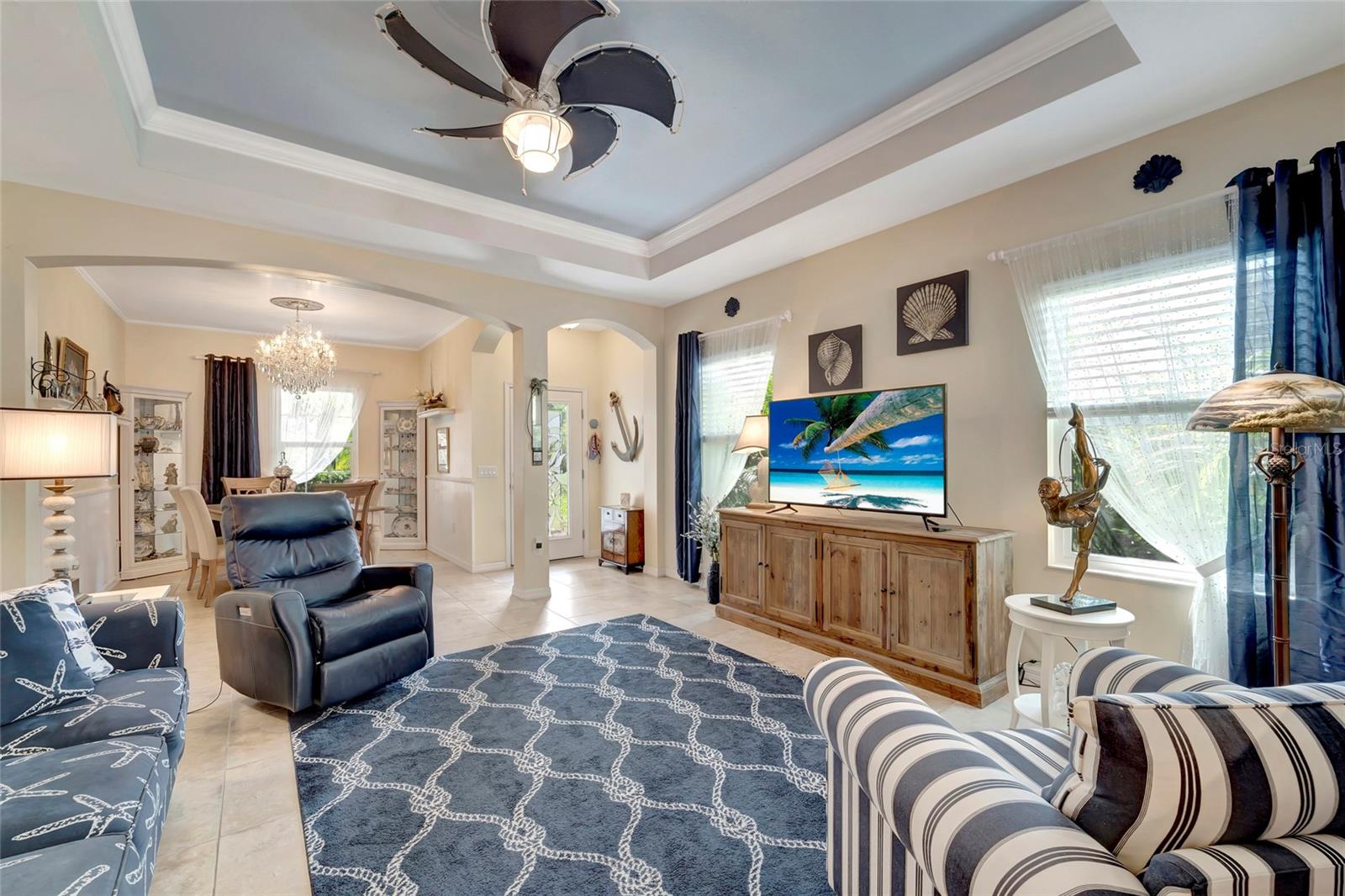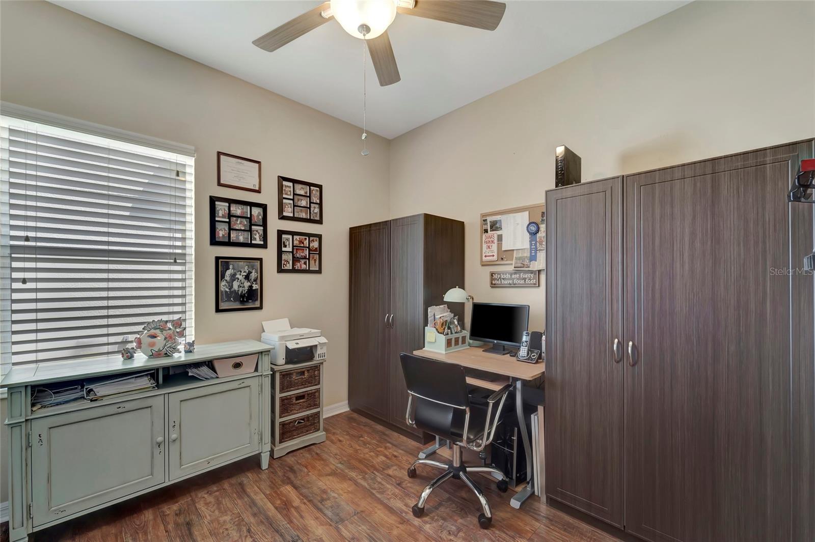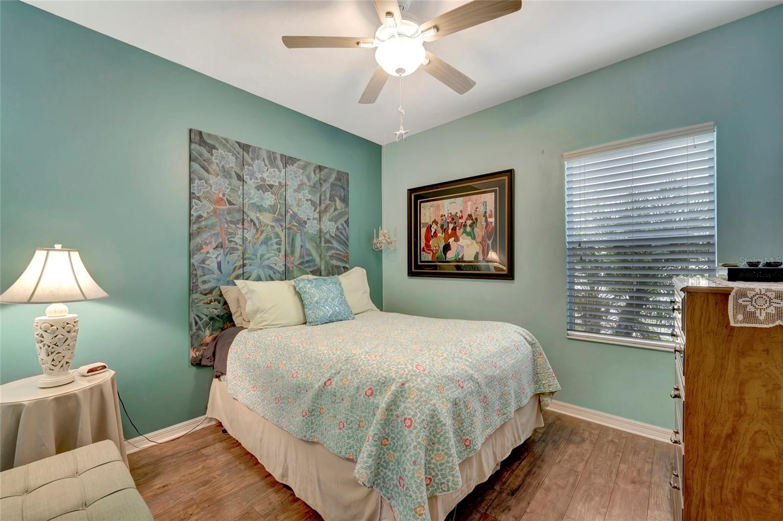 Best buy in Wellen Park! Escape to your private sanctuary in this charming 3-bedroom, 2-bath cottage-style home, ideally situated at the end of a peaceful cul-de-sac. Enjoy ultimate privacy with lush greenery and no neighbors beside or behind the home. Inside, you'll find thoughtful upgrades throughout, including a stunning leaded glass front door, sleek laminate flooring, and hurricane-resistant windows in most areas. The dining room exudes elegance with its decorative wainscoting, while the living room showcases a recessed ceiling with crown molding for added charm. The kitchen is perfect for Florida low-maintenance living with quick access to your outdoor living space, featuring cottage-style cabinets, Corian countertops, a granite composite sink, wainscoting on the ceiling, a gas stove, and a beautifully updated backsplash. The spacious two-car garage, once an art studio, now includes its own air conditioning while maintaining its functionality. The crowning jewel of this property is the expansive screened-in backyard oasis, perfect for relaxing or entertaining. Enjoy the large heated swim spa, surrounded by ample space for guests and pets to unwind. Don’t miss out on this unique opportunity—schedule your showing today! Located in the exceptional Grand Palm community in Venice, Florida, residents enjoy resort-style living with countless amenities. Just 20 minutes from downtown Venice and the beaches, Grand Palm features a state-of-the-art fitness center, a resort-style pool with a water slide, and fitness pools for laps or water aerobics. Outdoor enthusiasts will love the miles of walking and biking trails, Lookout Point Island, and dedicated dog parks. Sports lovers can take advantage of basketball, tennis, bocce ball, pickleball, volleyball, and more. Live your dream lifestyle at Grand Palm! (*Note: The crystal chandelier in the dining room is not included with the house.)