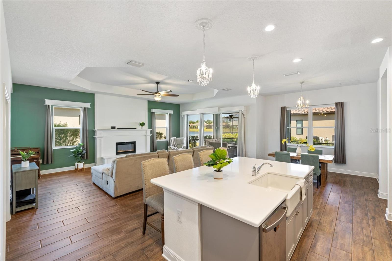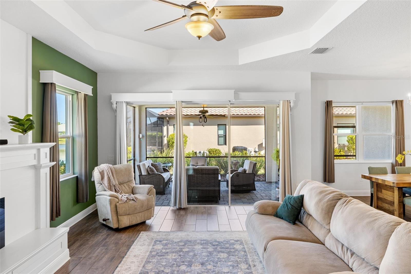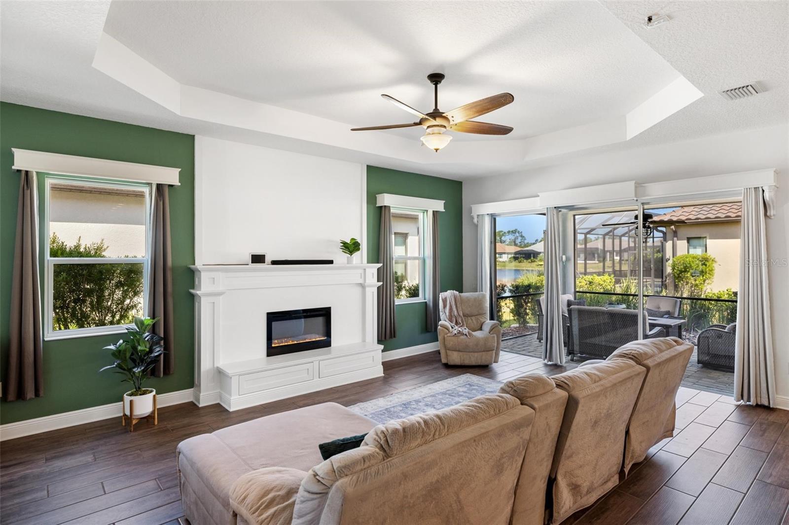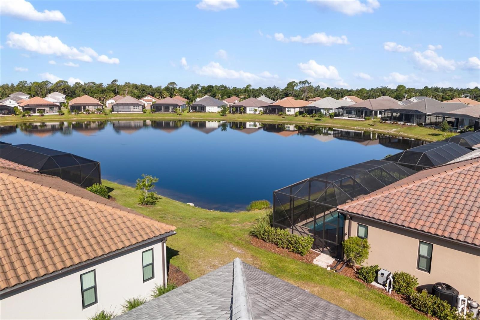 HIGHLY MOTIVATED SELLERS! BRING OFFERS! Experience modern luxury in this stunning 3-bed, 2-bath corner home with a den in Grand Palm! Spanning an impressive 2,289 sqft, this open-concept "Bright Meadow" floor plan offers water views, energy efficient features, and a seamless flow from the living area to the gourmet kitchen designed to please any home chef. The kitchen features a single-basin apron-front farmhouse sink, stainless steel appliances, gas range, wall oven, a hood vent, white subway tile backsplash, walk-in pantry, and an extended island with seating for four. Custom wooden window valances and a stylish custom floating shelf with lighting and built-in storage add to the sophisticated ambiance. Relax in the expansive living room with a custom-built fireplace, complete with push-open storage drawers, and enjoy the flexibility of a space pre-wired for a television projector system. Long plank wood-look ceramic tile flooring throughout the living areas provides durability and a chic aesthetic. Retreat to the luxurious owner's suite, featuring dual vanities, spacious dual walk-in closets with custom-built shelving, and a large en suite bathroom. Additional shelving in all closets offers practical storage solutions, and the extra-large covered lanai with water views provides a perfect space for outdoor entertaining or relaxing. Set on a private 1/4+ acre corner lot with ROOM FOR A POOL, you'll love the beautiful water views and the convenience of lawn care included in your homeowner's association fee. The Radiant Barrier Shield in the attic, and foam insulation in the exterior concrete block keep your energy bills low! This gated resort-style community boasts three resort-style pools with spas, a fully-equipped gym with cardio, yoga, and TRX rooms, and a variety of recreational options, including tennis, pickleball, bocce, playgrounds, a splashpad, and dog parks. Plus, there's Adventure Island with fishing docks, kayak storage, and miles of scenic walking and biking trails. Enjoy easy access to major highways, downtown Wellen Park, and downtown Venice, offering an array of shopping, dining, and entertainment options. The community's location also makes it a quick drive to some of Florida's most beautiful beaches. Don't miss this unique opportunity to join the Grand Palm community and make this extraordinary home yours. Schedule your private showing today!