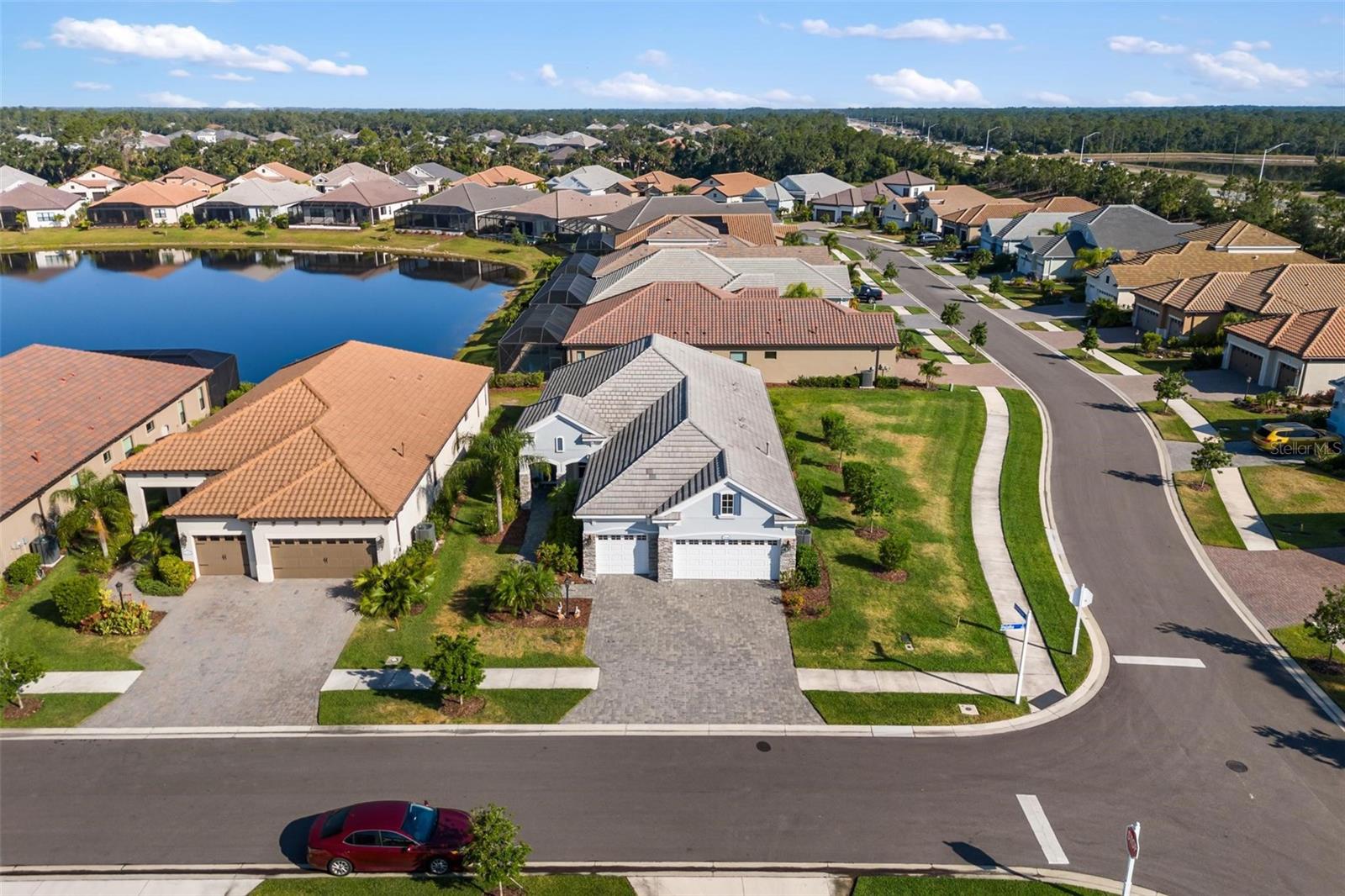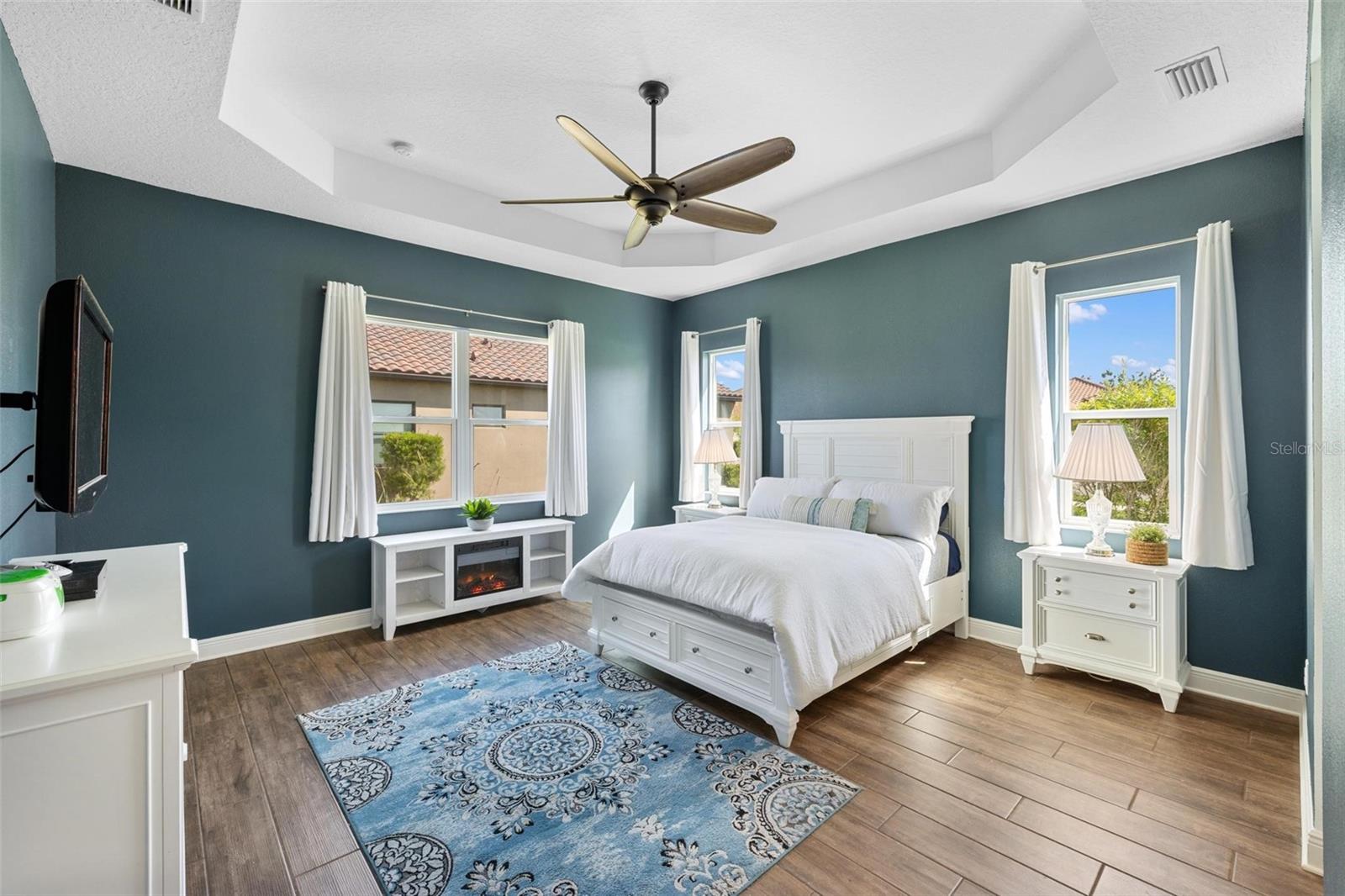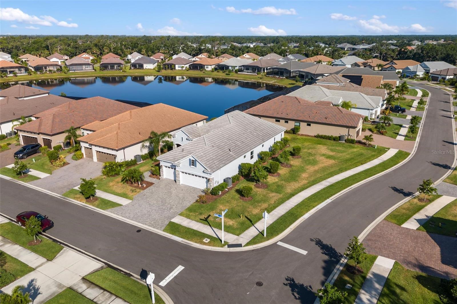 HIGHLY MOTIVATED SELLERS! BRING OFFERS! Experience modern luxury in this stunning 3-bed, 2-bath corner home with a den in Grand Palm! Spanning an impressive 2,289 sqft, this open-concept "Bright Meadow" floor plan offers water views, energy efficient features, and a seamless flow from the living area to the gourmet kitchen designed to please any home chef. The kitchen features a single-basin apron-front farmhouse sink, stainless steel appliances, gas range, wall oven, a hood vent, white subway tile backsplash, walk-in pantry, and an extended island with seating for four. Custom wooden window valances and a stylish custom floating shelf with lighting and built-in storage add to the sophisticated ambiance. Relax in the expansive living room with a custom-built fireplace, complete with push-open storage drawers, and enjoy the flexibility of a space pre-wired for a television projector system. Long plank wood-look ceramic tile flooring throughout the living areas provides durability and a chic aesthetic. Retreat to the luxurious owner's suite, featuring dual vanities, spacious dual walk-in closets with custom-built shelving, and a large en suite bathroom. Additional shelving in all closets offers practical storage solutions, and the extra-large covered lanai with water views provides a perfect space for outdoor entertaining or relaxing. Set on a private 1/4+ acre corner lot with ROOM FOR A POOL, you'll love the beautiful water views and the convenience of lawn care included in your homeowner's association fee. The Radiant Barrier Shield in the attic, and foam insulation in the exterior concrete block keep your energy bills low! This gated resort-style community boasts three resort-style pools with spas, a fully-equipped gym with cardio, yoga, and TRX rooms, and a variety of recreational options, including tennis, pickleball, bocce, playgrounds, a splashpad, and dog parks. Plus, there's Adventure Island with fishing docks, kayak storage, and miles of scenic walking and biking trails. Enjoy easy access to major highways, downtown Wellen Park, and downtown Venice, offering an array of shopping, dining, and entertainment options. The community's location also makes it a quick drive to some of Florida's most beautiful beaches. Don't miss this unique opportunity to join the Grand Palm community and make this extraordinary home yours. Schedule your private showing today!