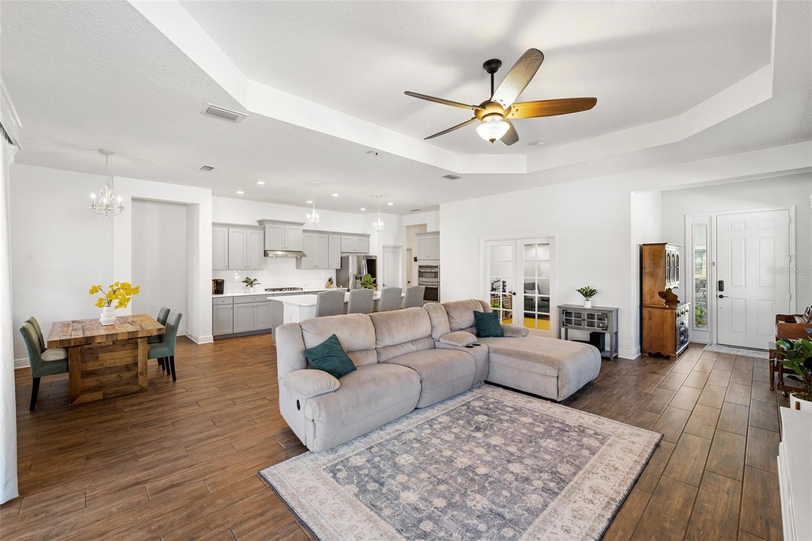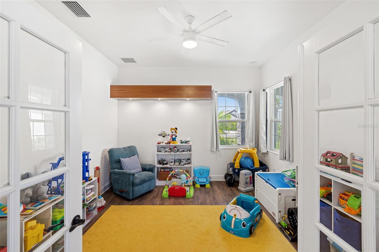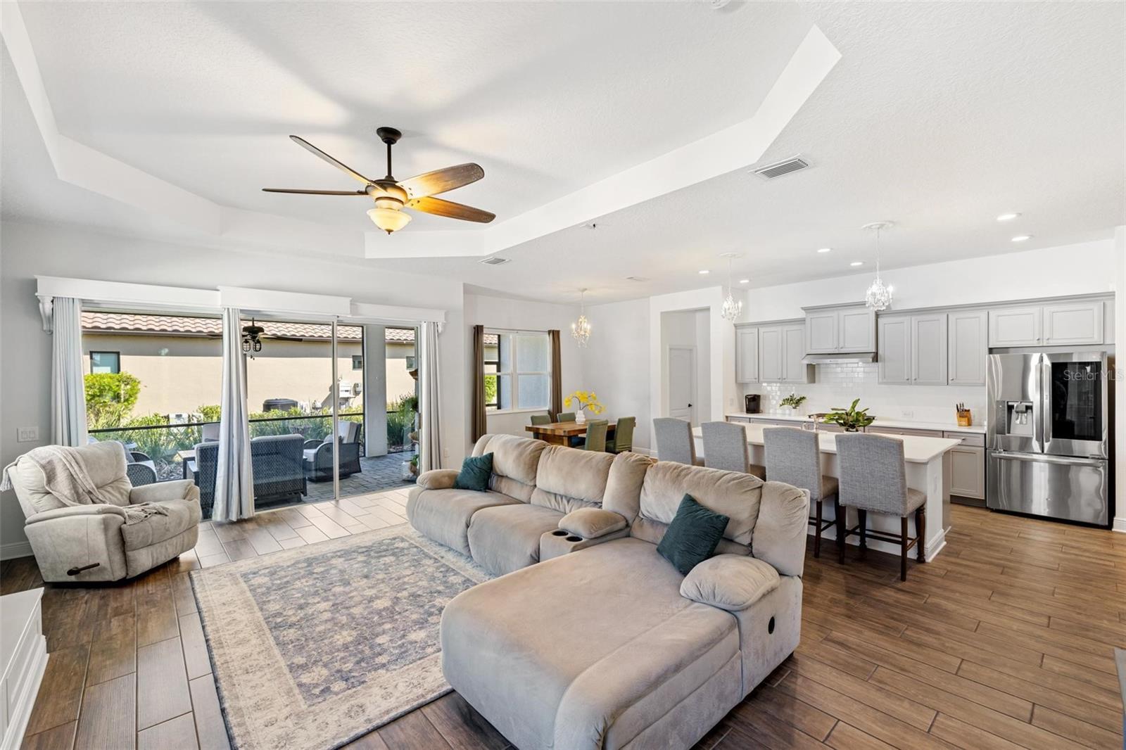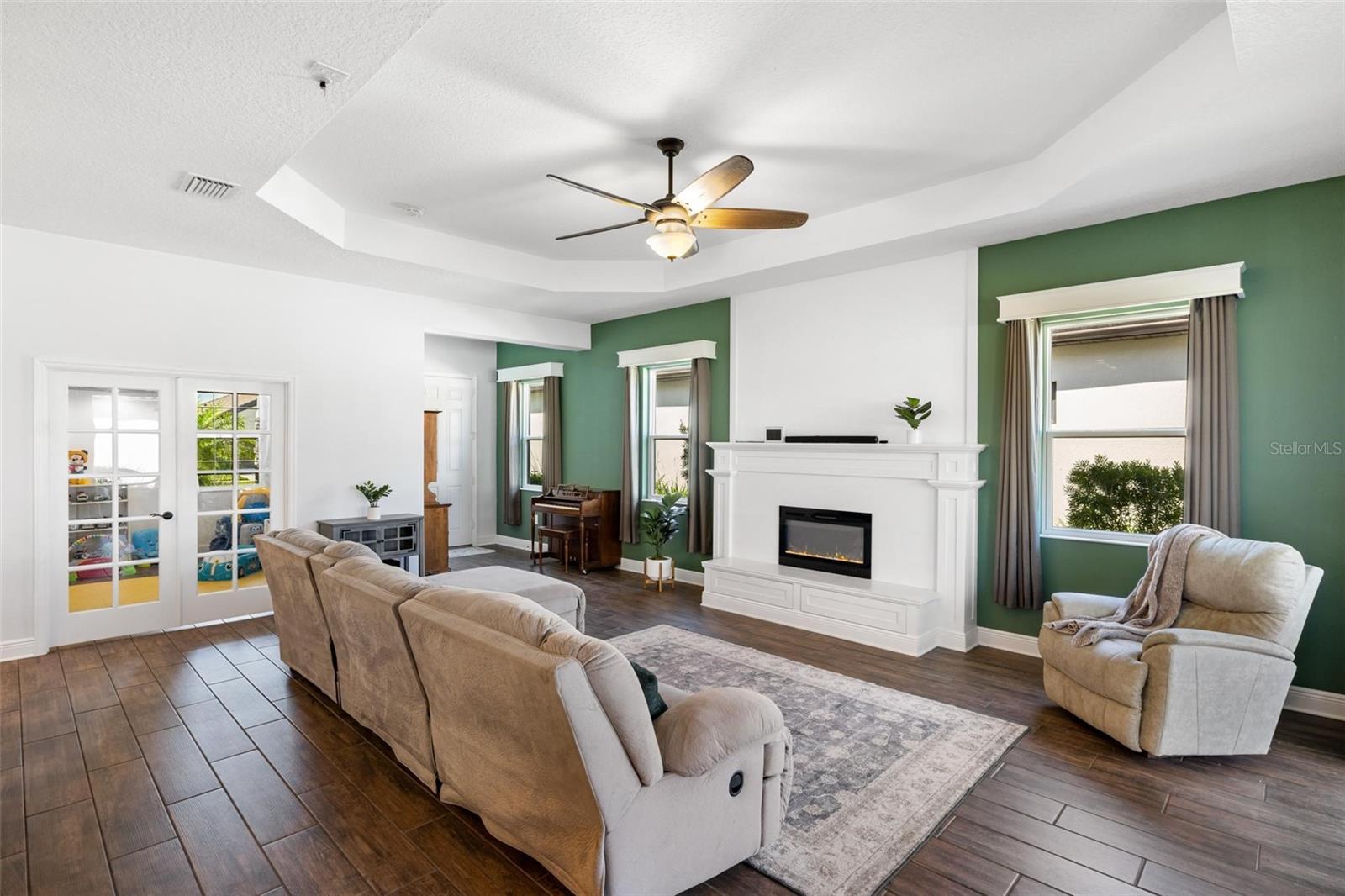 HIGHLY MOTIVATED SELLERS! BRING OFFERS! Experience modern luxury in this stunning 3-bed, 2-bath corner home with a den in Grand Palm! Spanning an impressive 2,289 sqft, this open-concept "Bright Meadow" floor plan offers water views, energy efficient features, and a seamless flow from the living area to the gourmet kitchen designed to please any home chef. The kitchen features a single-basin apron-front farmhouse sink, stainless steel appliances, gas range, wall oven, a hood vent, white subway tile backsplash, walk-in pantry, and an extended island with seating for four. Custom wooden window valances and a stylish custom floating shelf with lighting and built-in storage add to the sophisticated ambiance. Relax in the expansive living room with a custom-built fireplace, complete with push-open storage drawers, and enjoy the flexibility of a space pre-wired for a television projector system. Long plank wood-look ceramic tile flooring throughout the living areas provides durability and a chic aesthetic. Retreat to the luxurious owner's suite, featuring dual vanities, spacious dual walk-in closets with custom-built shelving, and a large en suite bathroom. Additional shelving in all closets offers practical storage solutions, and the extra-large covered lanai with water views provides a perfect space for outdoor entertaining or relaxing. Set on a private 1/4+ acre corner lot with ROOM FOR A POOL, you'll love the beautiful water views and the convenience of lawn care included in your homeowner's association fee. The Radiant Barrier Shield in the attic, and foam insulation in the exterior concrete block keep your energy bills low! This gated resort-style community boasts three resort-style pools with spas, a fully-equipped gym with cardio, yoga, and TRX rooms, and a variety of recreational options, including tennis, pickleball, bocce, playgrounds, a splashpad, and dog parks. Plus, there's Adventure Island with fishing docks, kayak storage, and miles of scenic walking and biking trails. Enjoy easy access to major highways, downtown Wellen Park, and downtown Venice, offering an array of shopping, dining, and entertainment options. The community's location also makes it a quick drive to some of Florida's most beautiful beaches. Don't miss this unique opportunity to join the Grand Palm community and make this extraordinary home yours. Schedule your private showing today!
