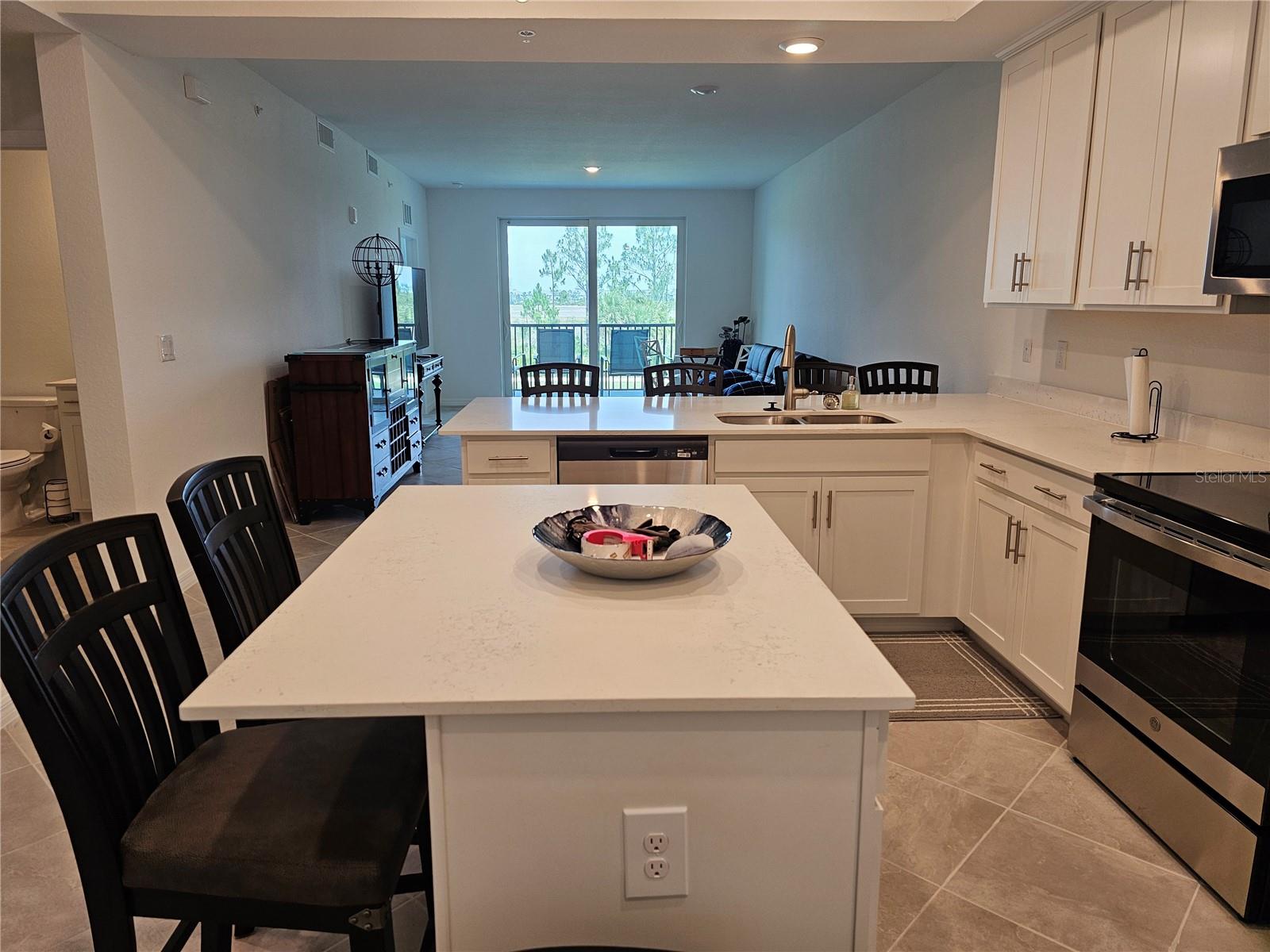 This cozy single-story condo features a split floorplan with an open layout among the kitchen, dining room and living room, with sliding doors that extend to the lanai for outdoor activities. Next to the lanai is the luxe owner’s suite, while a secondary bedroom is near the foyer—offering privacy for everyone. Located within the Wellen Park masterplan, residents enjoy resort-style amenities and modern conveniences. There is extensive new shopping centers, restaurants and entertainment close by. Plus, homeowners can enjoy an 18-hole golf course and clubhouse, providing luxury living and entertainment right in your own backyard. Includes Two Full Golf Memberships!