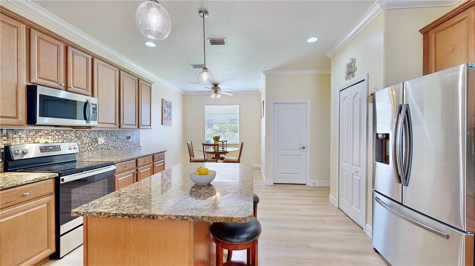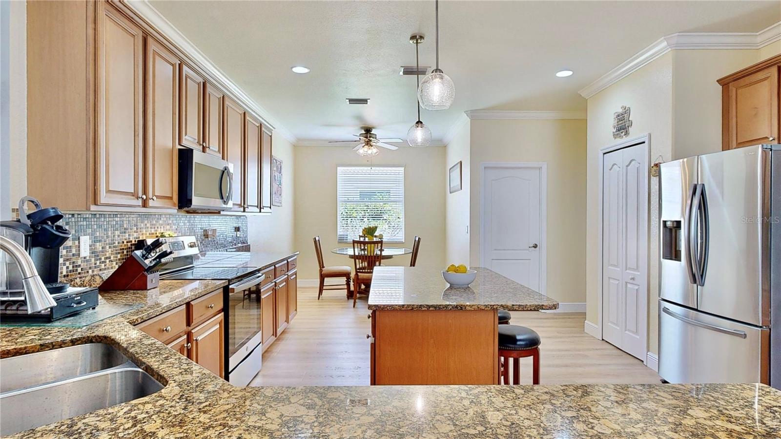 NEW PRICE! NEW ROOF 2025, upgraded hurricane-protected home with NEW IMPACT WINDOWS AND SLIDERS 2025....Welcome to your move-in-ready pool home with many upgrades and freshly redone! Furniture Negotiable!! No other home is available for purchase in STONEYBROOK AT VENICE with such great peace of mind!! This remarkable 4 bedroom, 3 bathroom residence, complete with heated pool and spa has over $120,000 in upgrades! NEW LVP flooring w/o transition strips throughout the entire house 2024, NEW PAINT 2024, NEW elevated toilets 2024 and a full house water softener system add to the homes comfort and convenience. With an expansive and airy layout, complemented by 9 ft ceilings with crown molding and 5.25 inch base trim, creating an elegant and modern aesthetic. Stylish new light fixtures and neutral colors, this residence offers 2,260 square feet of living space. The primary bedroom offers a spacious walk-in closet, en-suite bathroom, granite counters, tub, and a step-in shower. Bedrooms 2 and 3 are the perfect size with bathroom tastefully appointed with granite counters and designer accents. Bedroom 4 can be the perfect in law suite offering an en-suite bathroom, and of course any of the bedrooms can turn into a home office as well. You will appreciate the inviting kitchen with plenty of granite counter space to prep all meals and bake up a storm, center granite island, breakfast nook, stainless appliances, plenty of cabinets and pantry. Step outside through your impact sliding doors to the expansive covered lanai with heated pool and spa. A perfect setting for relaxation, entertaining and enjoyment. Spacious 3-car garage with ample storage room. STONEYBROOK AT VENICE is amenity rich offering a resort-style community pool, fitness center, clubhouse with event room and kitchen, tennis & pickleball courts, basketball, baseball field, playground, pavilion with grills, movie theater, food truck events, nature trails and so much more. All of this with very low association dues. Only 5 miles from Wellen Downtown which is the new waterfront upscale hotspot for dining, shopping, evening concerts, farmers market, kayaking, yoga and includes the new Atlanta Braves Stadium offering events, fireworks, tiki lounge in addition to baseball. Close to the newly built Sarasota Memorial Hospital and Sarasota County's A-rated schools. Just a few miles from the pristine beaches of the Gulf of Mexico and Venice Maine Street and a short drive to Siesta Key, Tampa, Orlando or Naples. Southwest Florida offers great weather, world class golf, fishing, boating, arts, beachfront dining and something for everyone. NO damage / flooding from recent storms! Schedule your showing today!! --