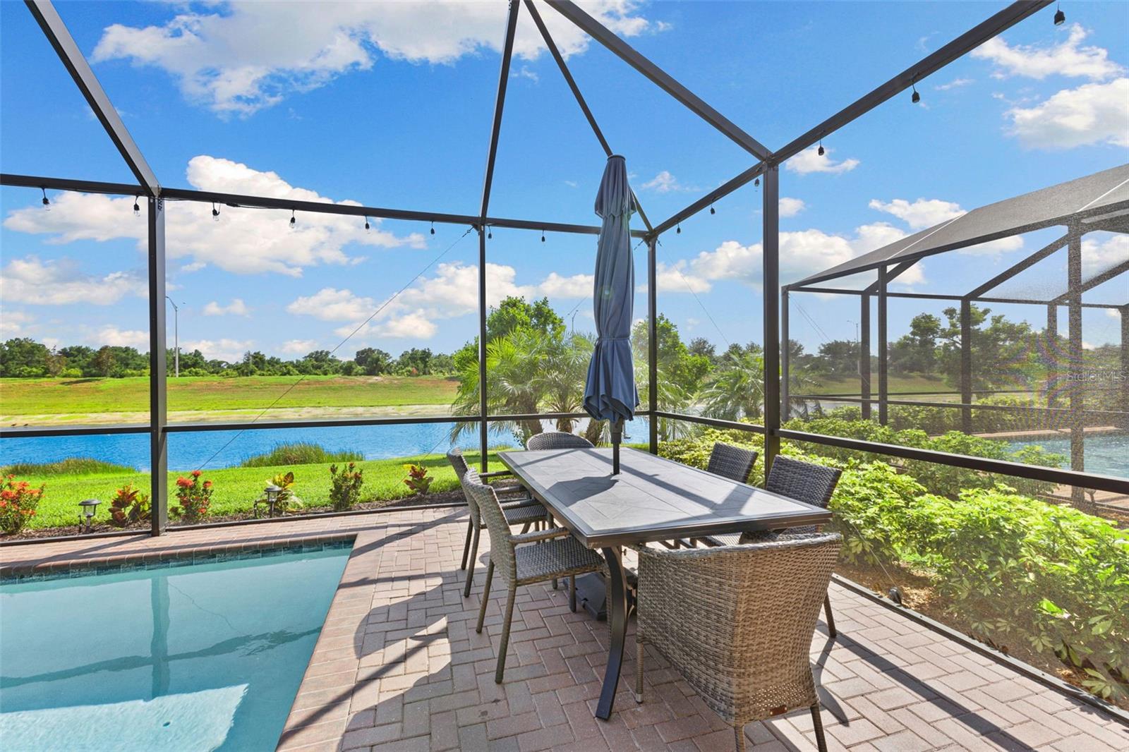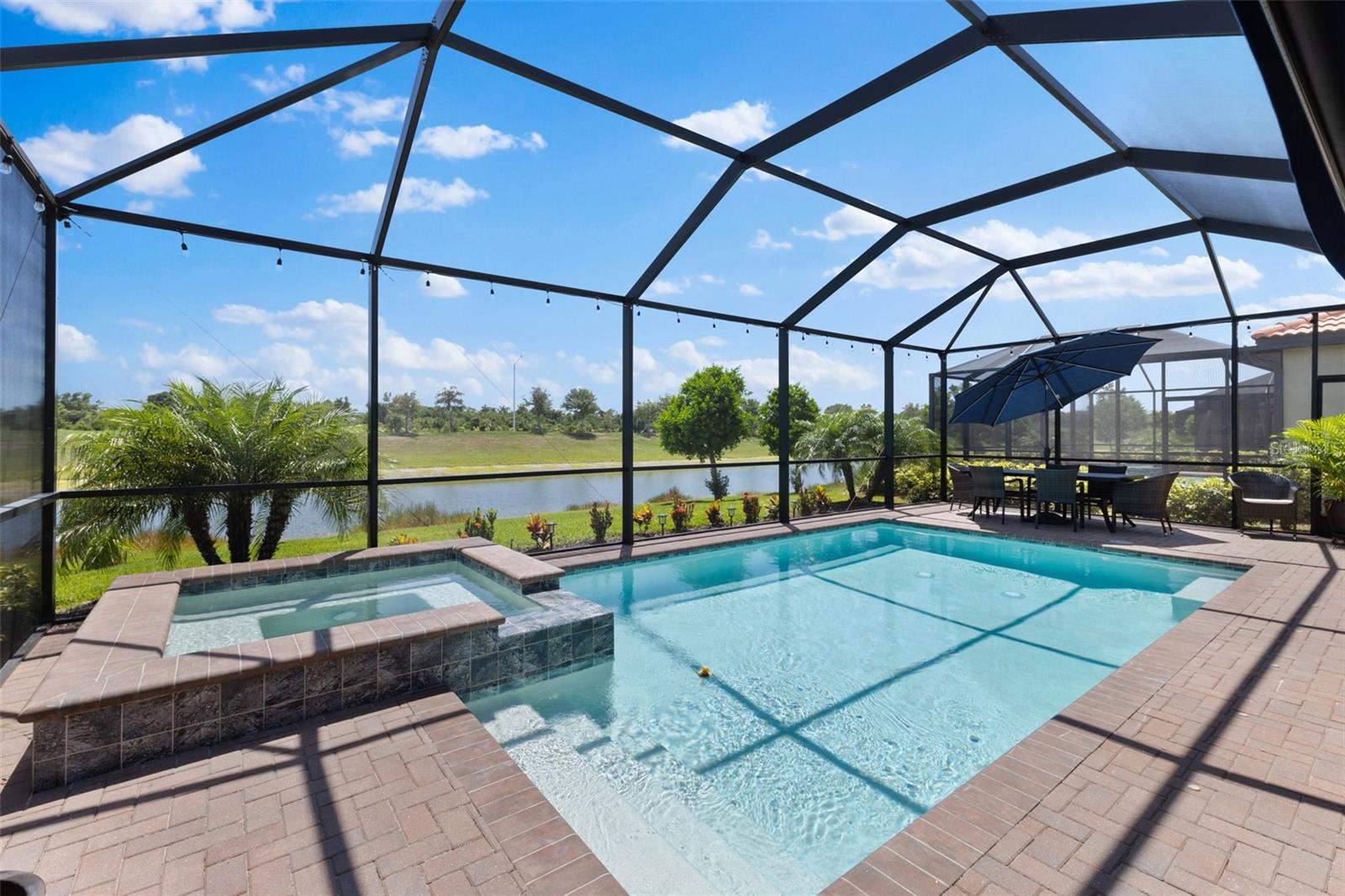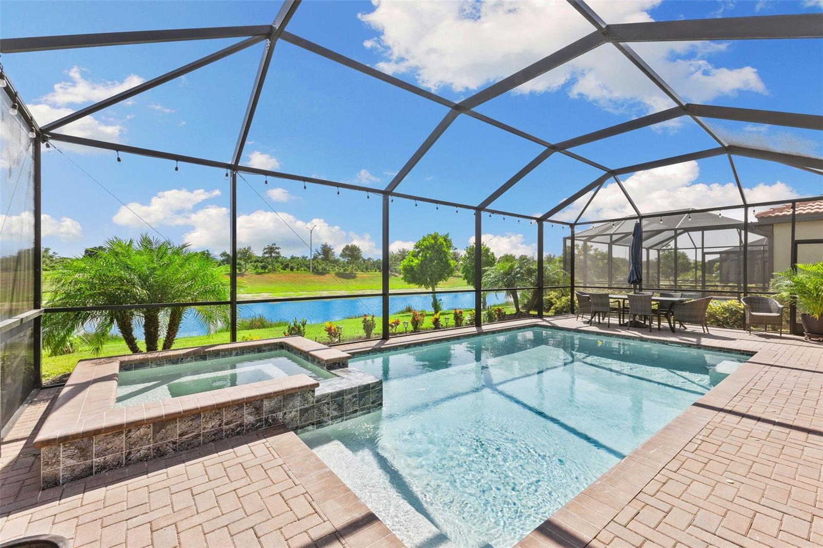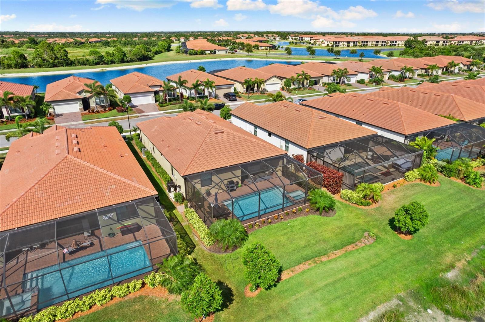 Gorgeous meticulously designed four-bedroom, three-bath pool home! This one-story model features the open floor plan everyone is looking for! Beautiful designer kitchen with 42-inch cabinets, two-toned cabinets and island, granite countertops, tile backsplash, stainless steel appliances, center island, and walk-in pantry. The large living room and formal dining area are ideal for entertaining and family gatherings! The luxurious owner’s suite has sweeping views of the lake and features two sizable walk-in closets, a “spa-like” master bath with dual vanities, and an oversized walk-in shower. There are three additional generously sized bedrooms providing comfort and privacy for family members and guests. Your outdoor living space truly sets this home apart! Step out to the screened lanai with the in-ground saltwater pool and spa overlooking the lake, beautifully appointed with native Florida landscaping that offers lots of privacy and the feel of a resort. Upgrades include custom tile, remote control sun awning on the lanai, custom window treatments, designer ceiling fans and lighting fixtures, crown moldings, and a screened front entry. Beyond the walls of this exquisite home, you’ll have access to a world of amenities. Take advantage of so many neighborhood activities! Serve up a match on the tennis or pickleball courts or simply relax in the coffee shop or by the pool at the tiki bar. When you don’t feel like cooking, the community’s Palm Club offers delicious dining options. Enjoy the State-of-the-art fitness center with exercise classes, yoga, water aerobics, coffee lounge & dog park. There is also a beautiful day Spa “Dragonflies” which offers massages, facials, skin treatments, and more. Sarasota National is more than a place to live. It’s a community where every day feels like a vacation! With this prime location, you are just a short drive away from world-class beaches, marinas, fine dining, shopping, Cool Today Park, Atlanta Braves Spring Training Center, historic downtown Venice with its charming shops, cafes, and more!