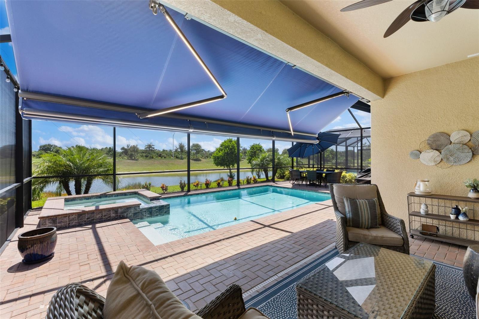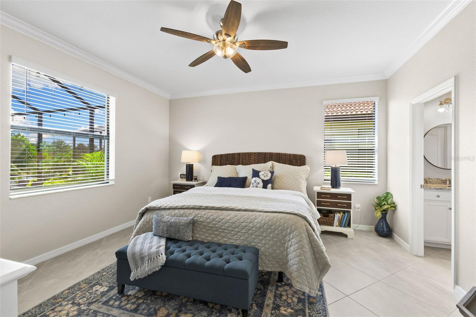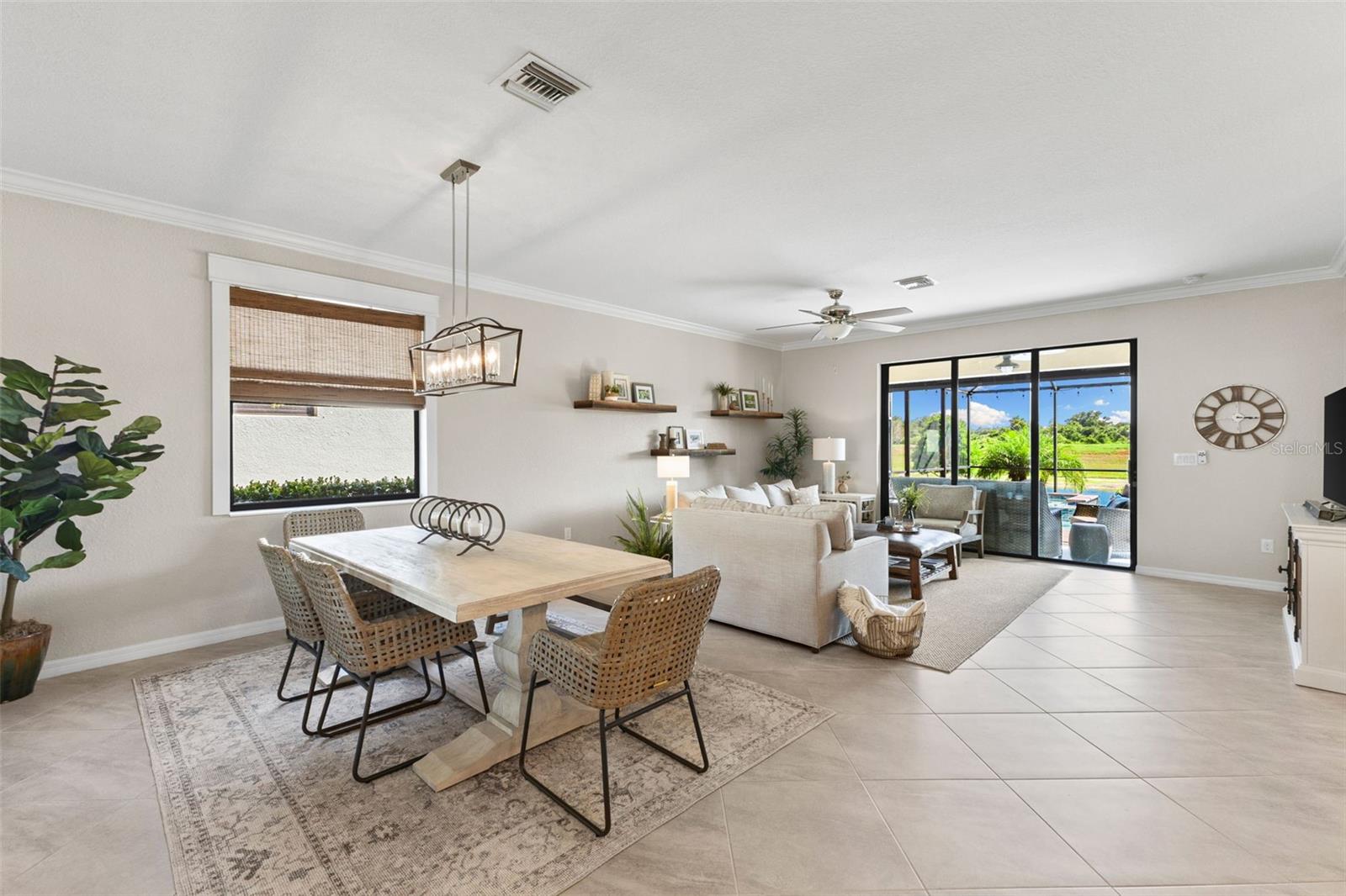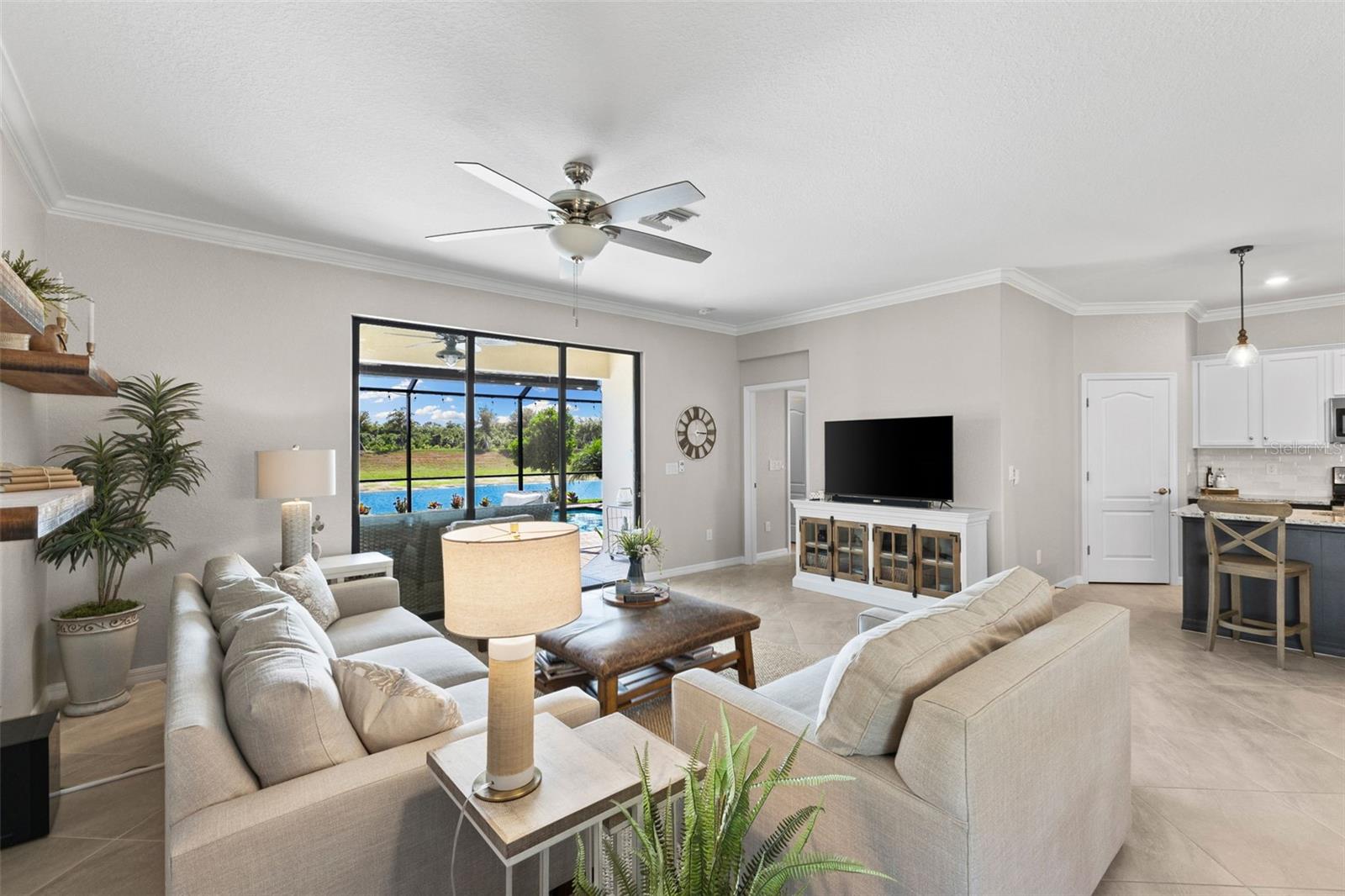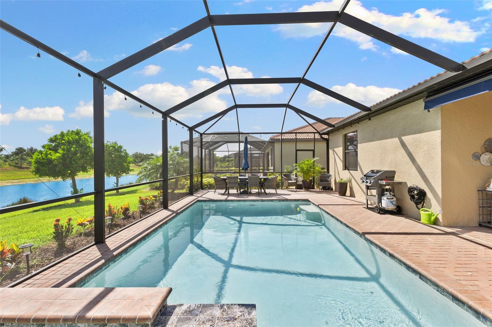 Gorgeous meticulously designed four-bedroom, three-bath pool home! This one-story model features the open floor plan everyone is looking for! Beautiful designer kitchen with 42-inch cabinets, two-toned cabinets and island, granite countertops, tile backsplash, stainless steel appliances, center island, and walk-in pantry. The large living room and formal dining area are ideal for entertaining and family gatherings! The luxurious owner’s suite has sweeping views of the lake and features two sizable walk-in closets, a “spa-like” master bath with dual vanities, and an oversized walk-in shower. There are three additional generously sized bedrooms providing comfort and privacy for family members and guests. Your outdoor living space truly sets this home apart! Step out to the screened lanai with the in-ground saltwater pool and spa overlooking the lake, beautifully appointed with native Florida landscaping that offers lots of privacy and the feel of a resort. Upgrades include custom tile, remote control sun awning on the lanai, custom window treatments, designer ceiling fans and lighting fixtures, crown moldings, and a screened front entry. Beyond the walls of this exquisite home, you’ll have access to a world of amenities. Take advantage of so many neighborhood activities! Serve up a match on the tennis or pickleball courts or simply relax in the coffee shop or by the pool at the tiki bar. When you don’t feel like cooking, the community’s Palm Club offers delicious dining options. Enjoy the State-of-the-art fitness center with exercise classes, yoga, water aerobics, coffee lounge & dog park. There is also a beautiful day Spa “Dragonflies” which offers massages, facials, skin treatments, and more. Sarasota National is more than a place to live. It’s a community where every day feels like a vacation! With this prime location, you are just a short drive away from world-class beaches, marinas, fine dining, shopping, Cool Today Park, Atlanta Braves Spring Training Center, historic downtown Venice with its charming shops, cafes, and more!