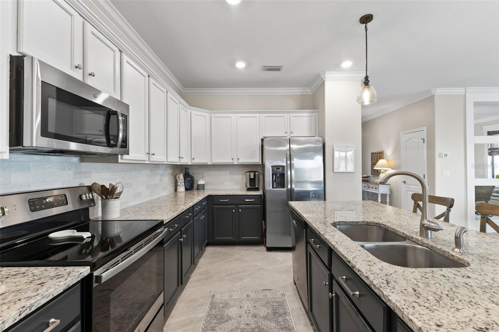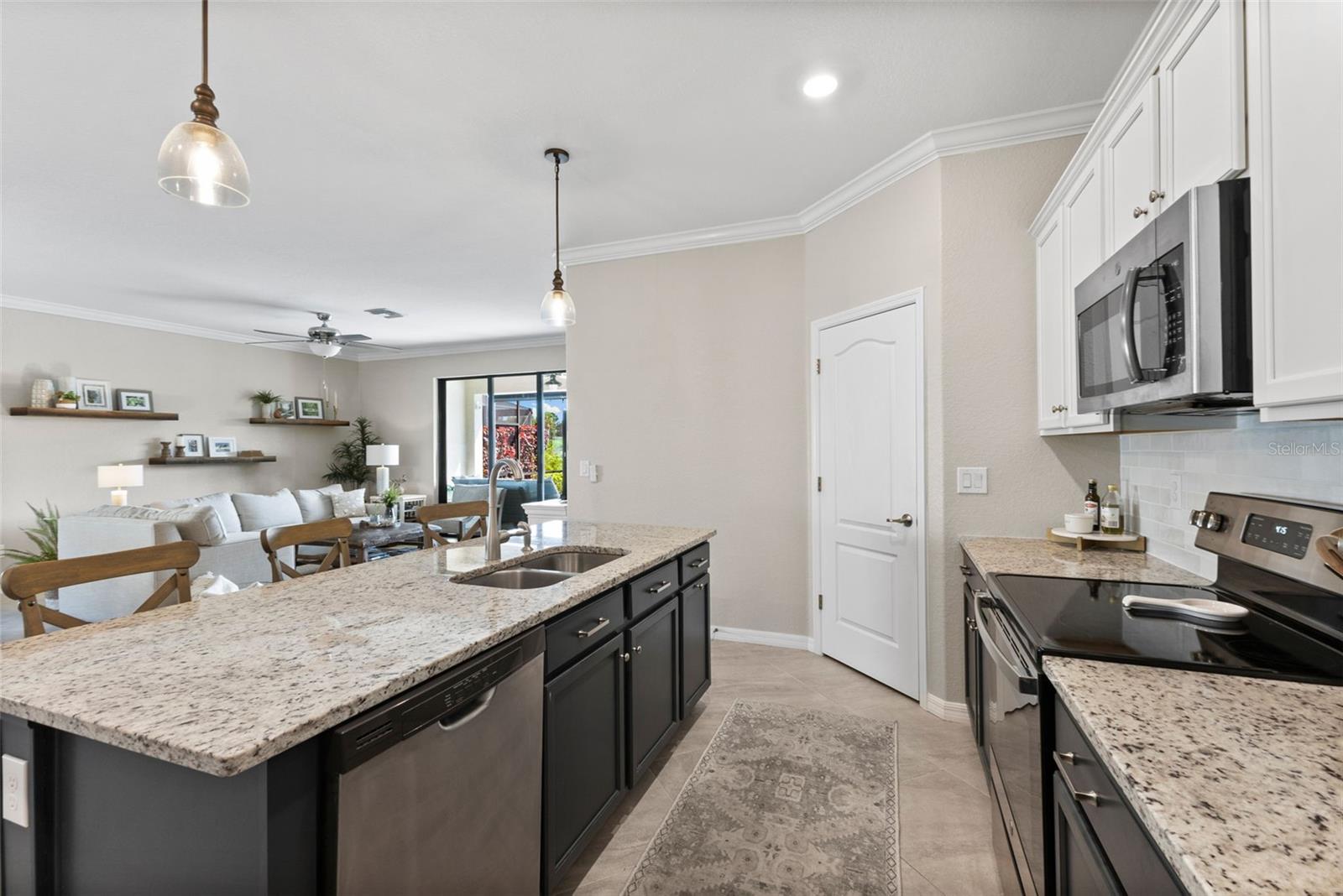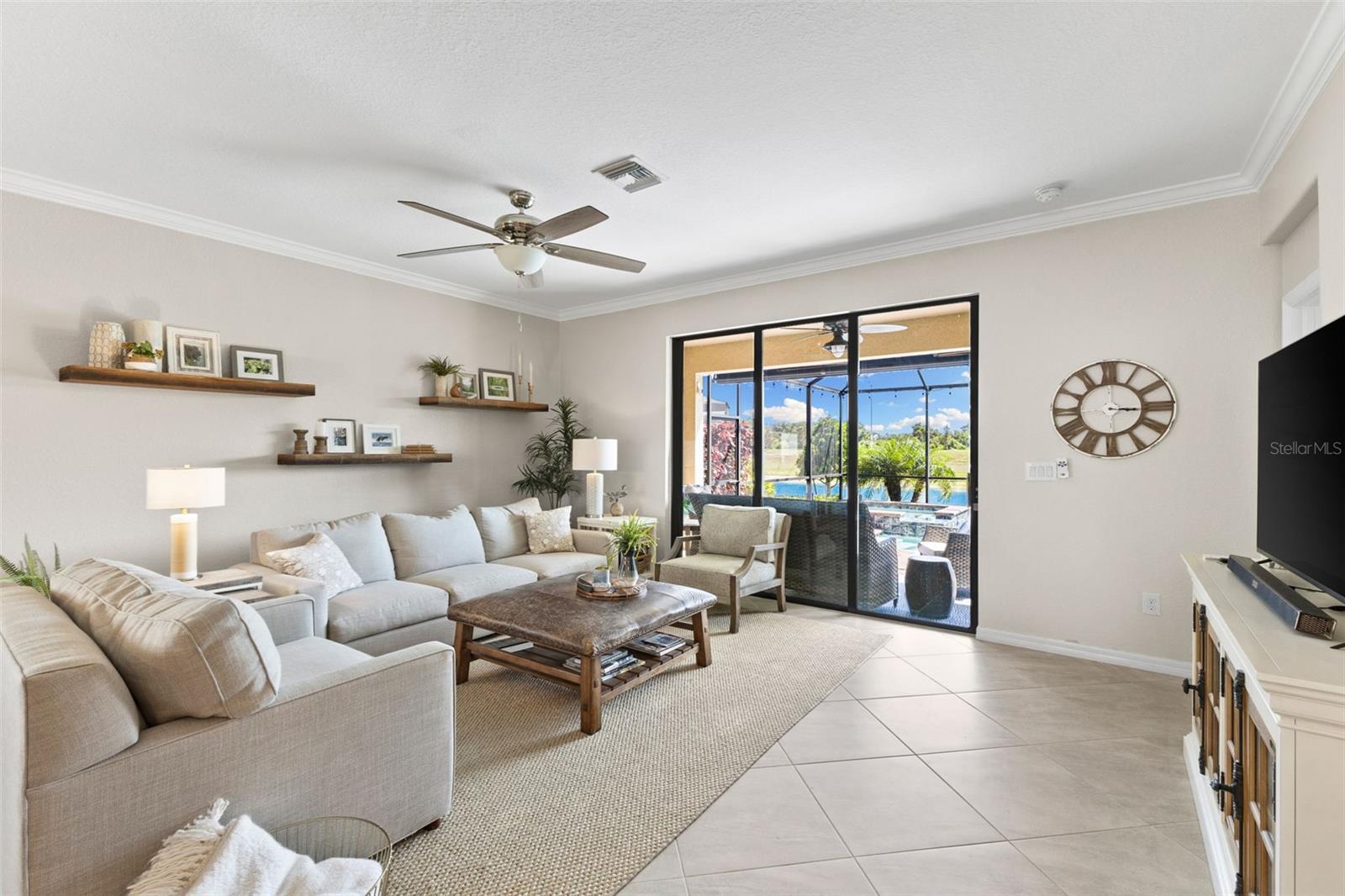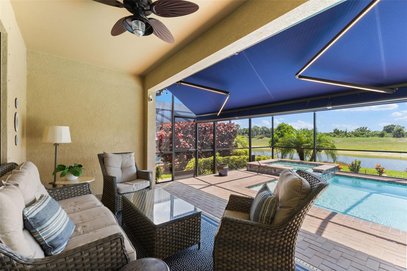 Gorgeous meticulously designed four-bedroom, three-bath pool home! This one-story model features the open floor plan everyone is looking for! Beautiful designer kitchen with 42-inch cabinets, two-toned cabinets and island, granite countertops, tile backsplash, stainless steel appliances, center island, and walk-in pantry. The large living room and formal dining area are ideal for entertaining and family gatherings! The luxurious owner’s suite has sweeping views of the lake and features two sizable walk-in closets, a “spa-like” master bath with dual vanities, and an oversized walk-in shower. There are three additional generously sized bedrooms providing comfort and privacy for family members and guests. Your outdoor living space truly sets this home apart! Step out to the screened lanai with the in-ground saltwater pool and spa overlooking the lake, beautifully appointed with native Florida landscaping that offers lots of privacy and the feel of a resort. Upgrades include custom tile, remote control sun awning on the lanai, custom window treatments, designer ceiling fans and lighting fixtures, crown moldings, and a screened front entry. Beyond the walls of this exquisite home, you’ll have access to a world of amenities. Take advantage of so many neighborhood activities! Serve up a match on the tennis or pickleball courts or simply relax in the coffee shop or by the pool at the tiki bar. When you don’t feel like cooking, the community’s Palm Club offers delicious dining options. Enjoy the State-of-the-art fitness center with exercise classes, yoga, water aerobics, coffee lounge & dog park. There is also a beautiful day Spa “Dragonflies” which offers massages, facials, skin treatments, and more. Sarasota National is more than a place to live. It’s a community where every day feels like a vacation! With this prime location, you are just a short drive away from world-class beaches, marinas, fine dining, shopping, Cool Today Park, Atlanta Braves Spring Training Center, historic downtown Venice with its charming shops, cafes, and more!