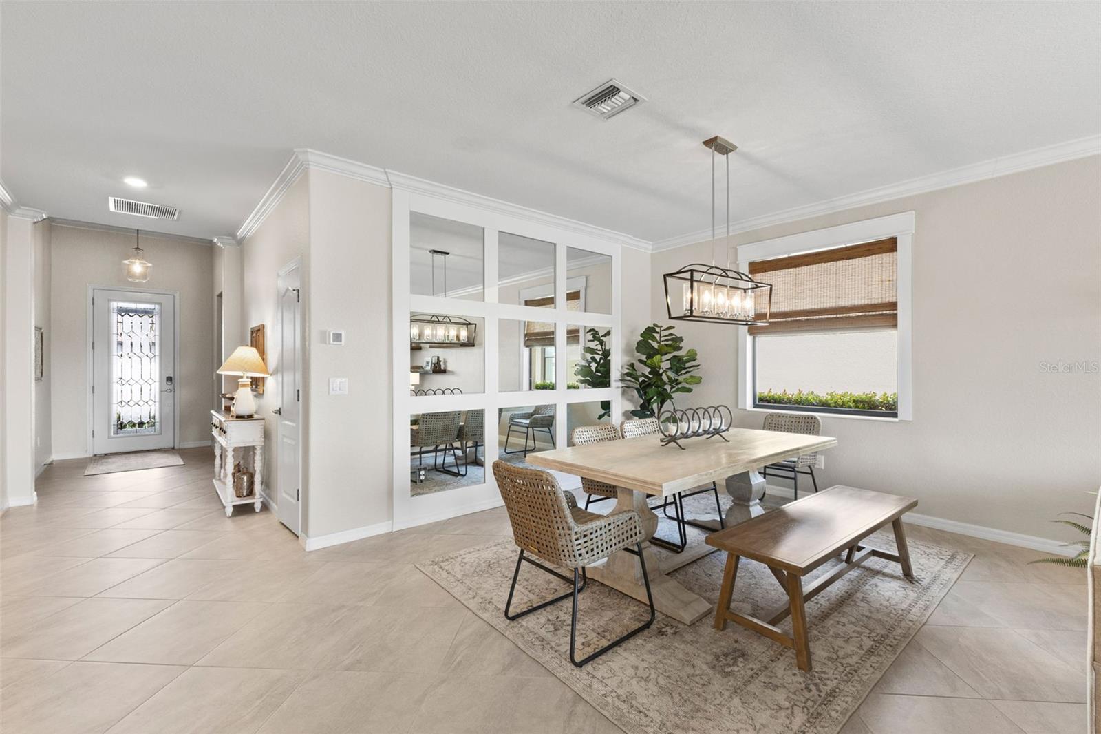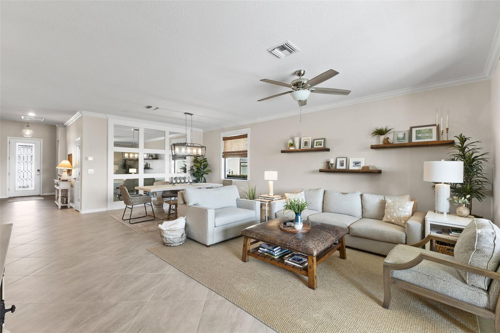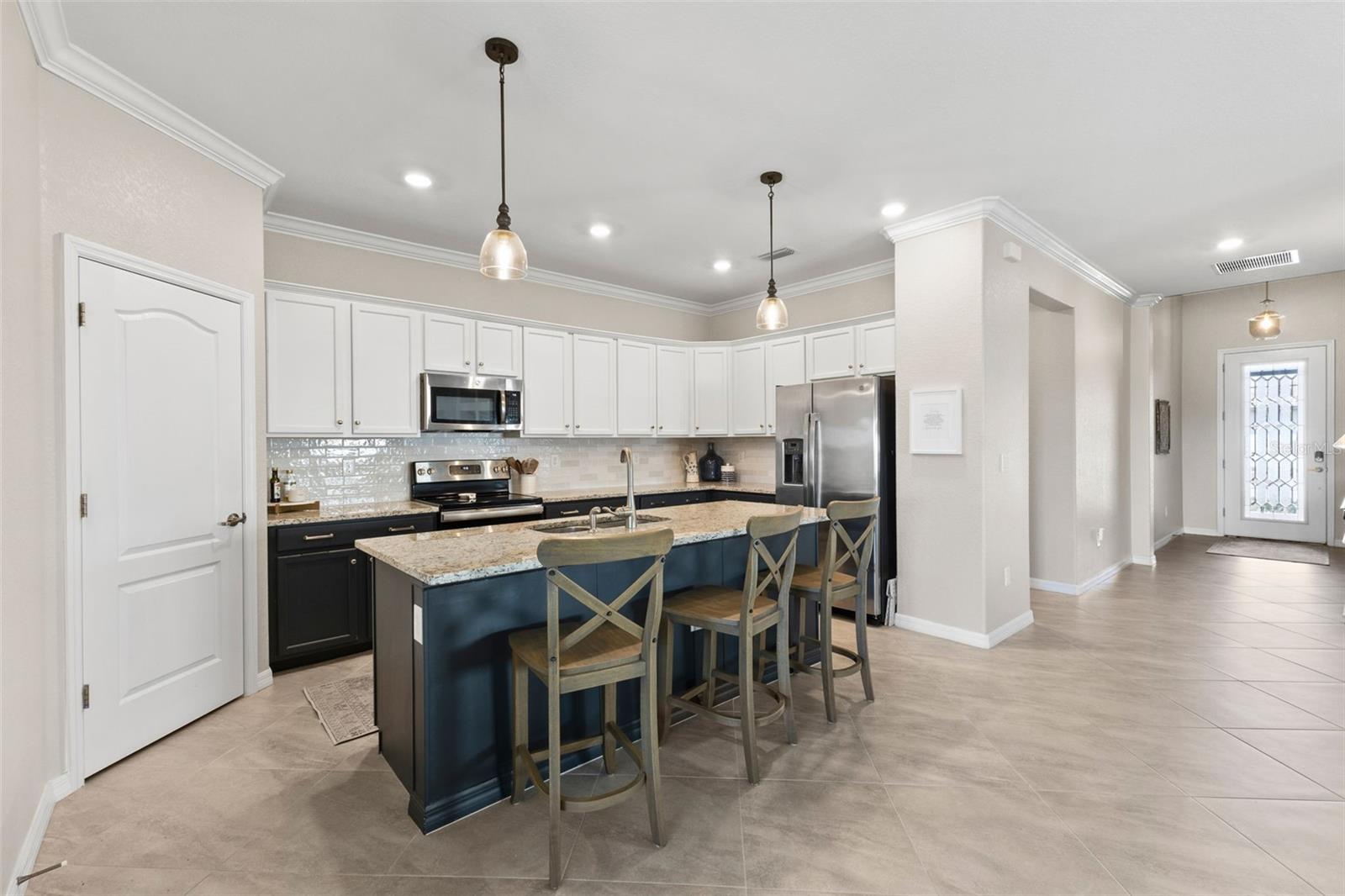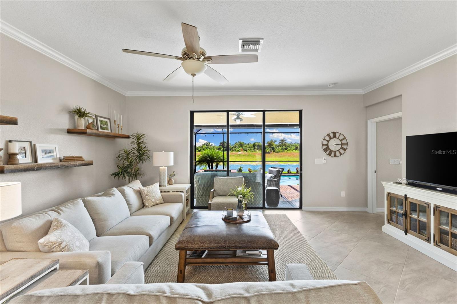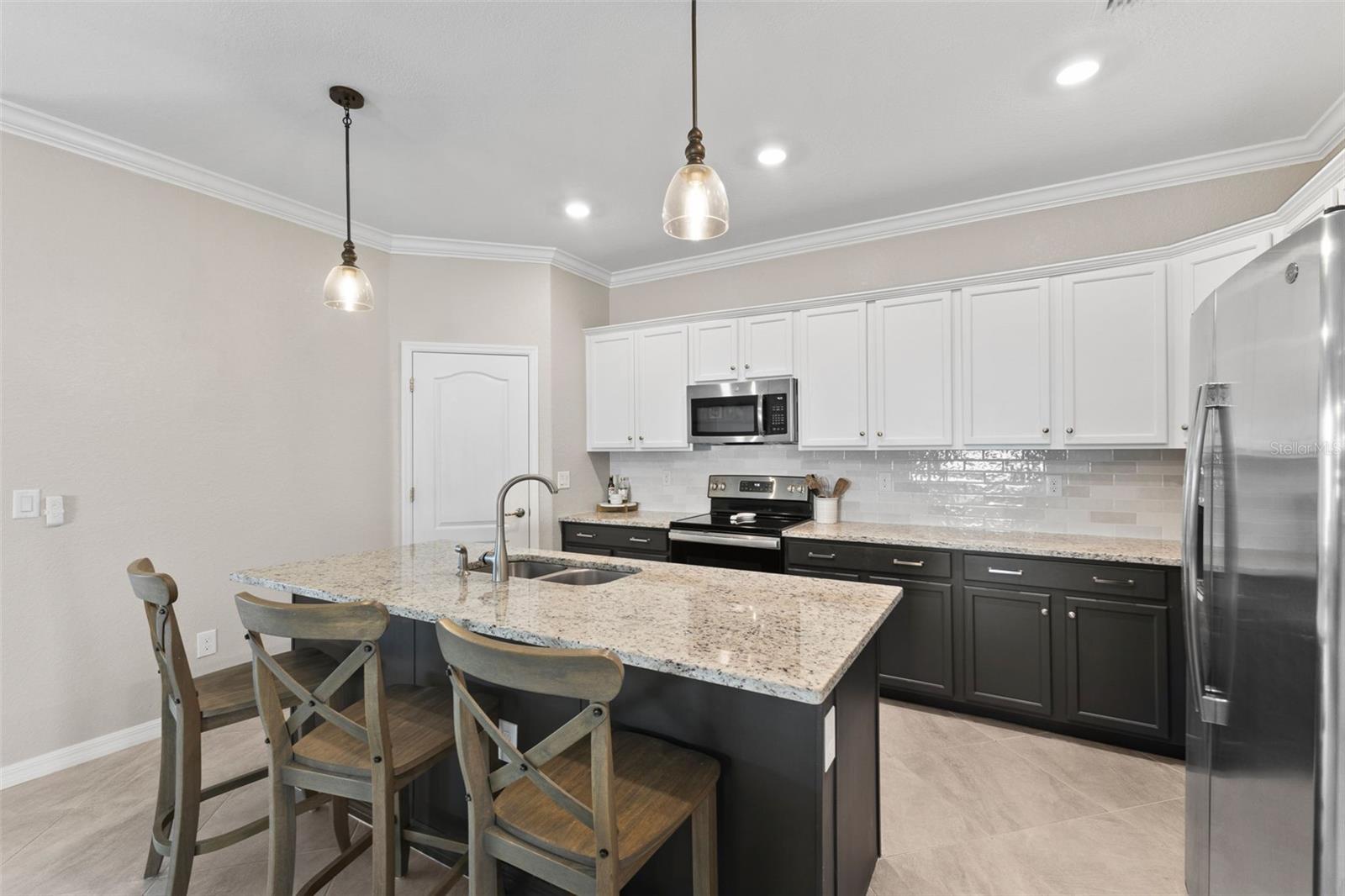 Gorgeous meticulously designed four-bedroom, three-bath pool home! This one-story model features the open floor plan everyone is looking for! Beautiful designer kitchen with 42-inch cabinets, two-toned cabinets and island, granite countertops, tile backsplash, stainless steel appliances, center island, and walk-in pantry. The large living room and formal dining area are ideal for entertaining and family gatherings! The luxurious owner’s suite has sweeping views of the lake and features two sizable walk-in closets, a “spa-like” master bath with dual vanities, and an oversized walk-in shower. There are three additional generously sized bedrooms providing comfort and privacy for family members and guests. Your outdoor living space truly sets this home apart! Step out to the screened lanai with the in-ground saltwater pool and spa overlooking the lake, beautifully appointed with native Florida landscaping that offers lots of privacy and the feel of a resort. Upgrades include custom tile, remote control sun awning on the lanai, custom window treatments, designer ceiling fans and lighting fixtures, crown moldings, and a screened front entry. Beyond the walls of this exquisite home, you’ll have access to a world of amenities. Take advantage of so many neighborhood activities! Serve up a match on the tennis or pickleball courts or simply relax in the coffee shop or by the pool at the tiki bar. When you don’t feel like cooking, the community’s Palm Club offers delicious dining options. Enjoy the State-of-the-art fitness center with exercise classes, yoga, water aerobics, coffee lounge & dog park. There is also a beautiful day Spa “Dragonflies” which offers massages, facials, skin treatments, and more. Sarasota National is more than a place to live. It’s a community where every day feels like a vacation! With this prime location, you are just a short drive away from world-class beaches, marinas, fine dining, shopping, Cool Today Park, Atlanta Braves Spring Training Center, historic downtown Venice with its charming shops, cafes, and more!