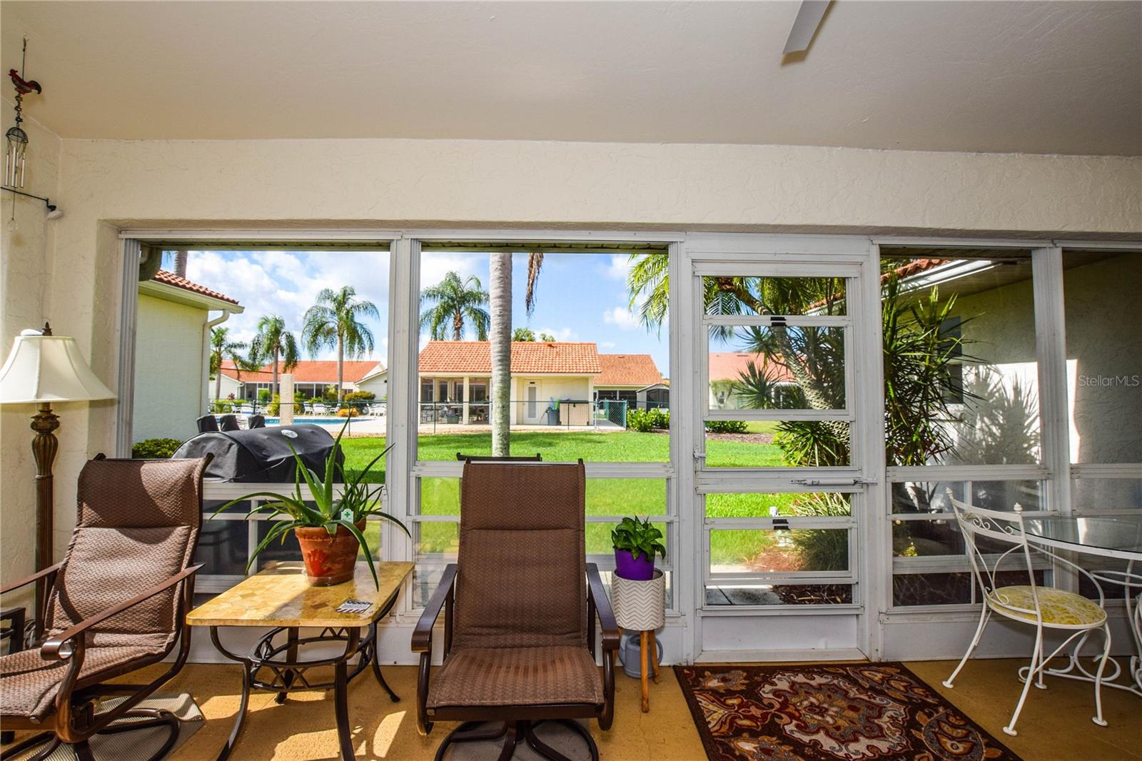 This charming 2 bedroom, 2 bath plus a den/office Patio home in the highly desirable Southwood Development is located on a private cul-de-sac. Recently updated (2023) with HIGH IMPACT HURRICANE GLASS SLIDING DOORS AND WINDOWS, NEW ROOF AND HVAC (2018). Replumbed, newer kitchen appliances and drop-in kitchen sink. As you enter through the front door you will notice an abundance of natural light in the vaulted ceiling living room. The open flow layout is perfect for all your entertaining needs. The eat-in kitchen has lots of cabinets for storage, hardwood flooring, vaulted ceiling and ceiling fan .You will love the spacious screened-in, breezy lanai with stamped concrete flooring and a recently added patio area which is only a few steps to the community pool. Enclosed Lanai area included in square footage. The main bedroom is large with vaulted ceilings, ceiling fan, two walk-in closets, double sinks and a walk-in shower. The guest bedroom features new engineered wood flooring and a walk-in closet. Plenty of storage with closets in the laundry, hallway & guest bath. A two car garage boasts storage cabinets and a workshop area. Low HOA and no CDD fees. Conveniently located, you’re just moments away from shopping, dining, the new Wellan Park, historic downtown Venice, the Legacy Bike Trail, and the beautiful Gulf of Mexico beaches. Enjoy world-class boating, fishing, and golfing, all within easy reach. Central to major cities and airports, Southwood offers easy access to I-75, Sarasota, Punta Gorda, Ft. Myers, St. Pete, and Tampa airports. Embrace the best of Florida's warm climate and year-round sunshine. Schedule your private showing today before this one is gone.