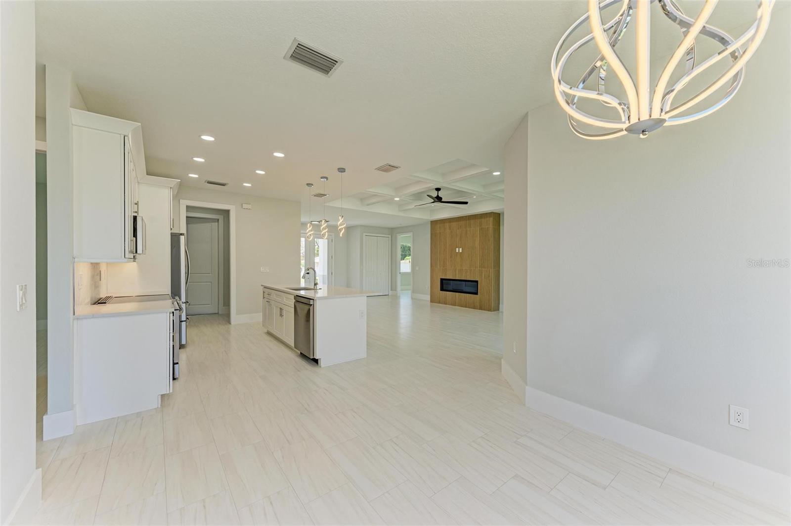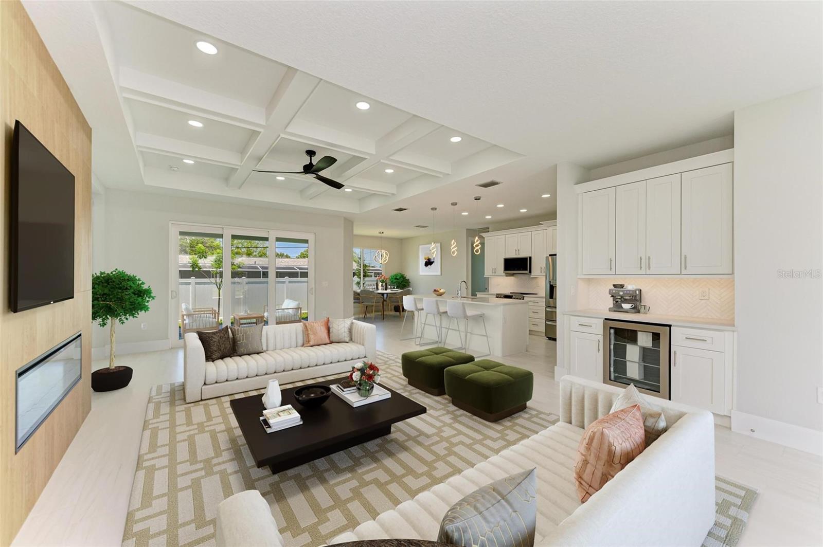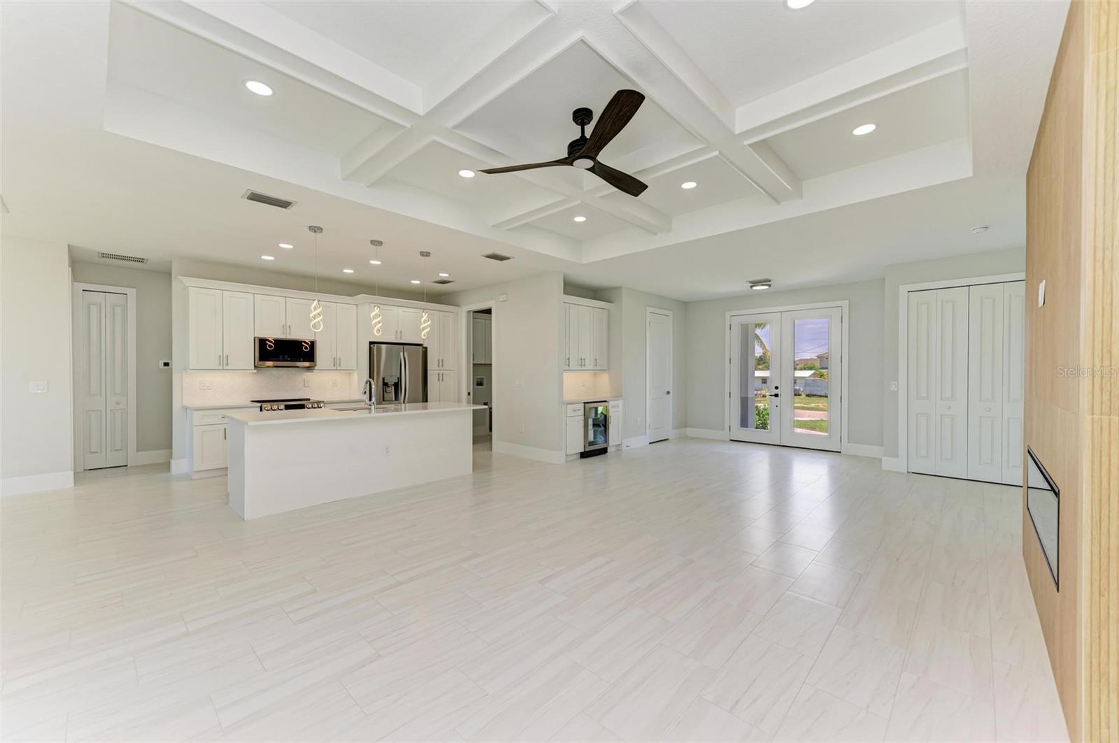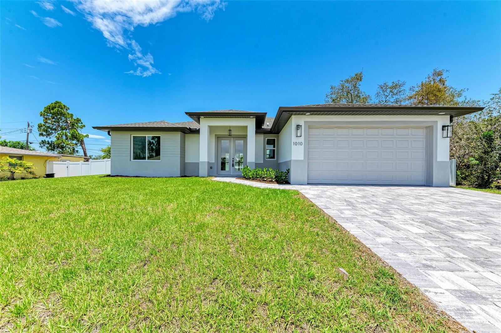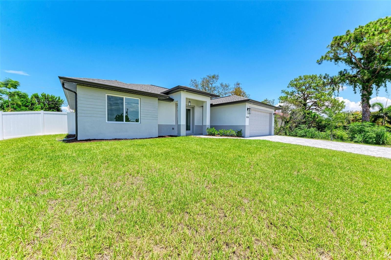 One or more photo(s) has been virtually staged. GREAT HOME FOR SHORTH TERM RENTAL. Discover modern luxury in this stunning new construction home, move-in ready and designed for your ultimate comfort. This elegant 3-bedroom, 3-bathroom residence features a versatile office space and a spacious 2-car garage. Step inside to an inviting open-concept floor plan, highlighted by pristine porcelain tiles throughout, tall coffered ceilings, and sleek 8-inch modern molding. The 8-ft interior doors and electric fireplace with an accent wall while the charming coffee bar enhances your daily routine. The heart of the home is the kitchen, equipped with stainless steel appliances, a spacious island perfect for entertaining, and upgraded light fixtures. The expansive master suite is a true retreat, boasting an upgraded bathroom with a large walk-in shower featuring statement tiles and a double vanity. Enjoy ample storage with large walk-in closets and a conveniently located laundry room. Built with durable block construction, this home offers peace of mind with hurricane impact windows and a 6ft PVC fence surrounding the property for added privacy. The full home water filtration system ensures clean and safe water throughout. Additionally, this home comes with a 10-year structural warranty, providing long-term security. Don’t miss the opportunity to own this exceptional home that combines luxury, functionality, and peace of mind, all in a prime location near the beaches and vibrant downtown Venice.