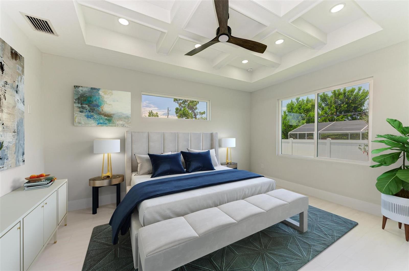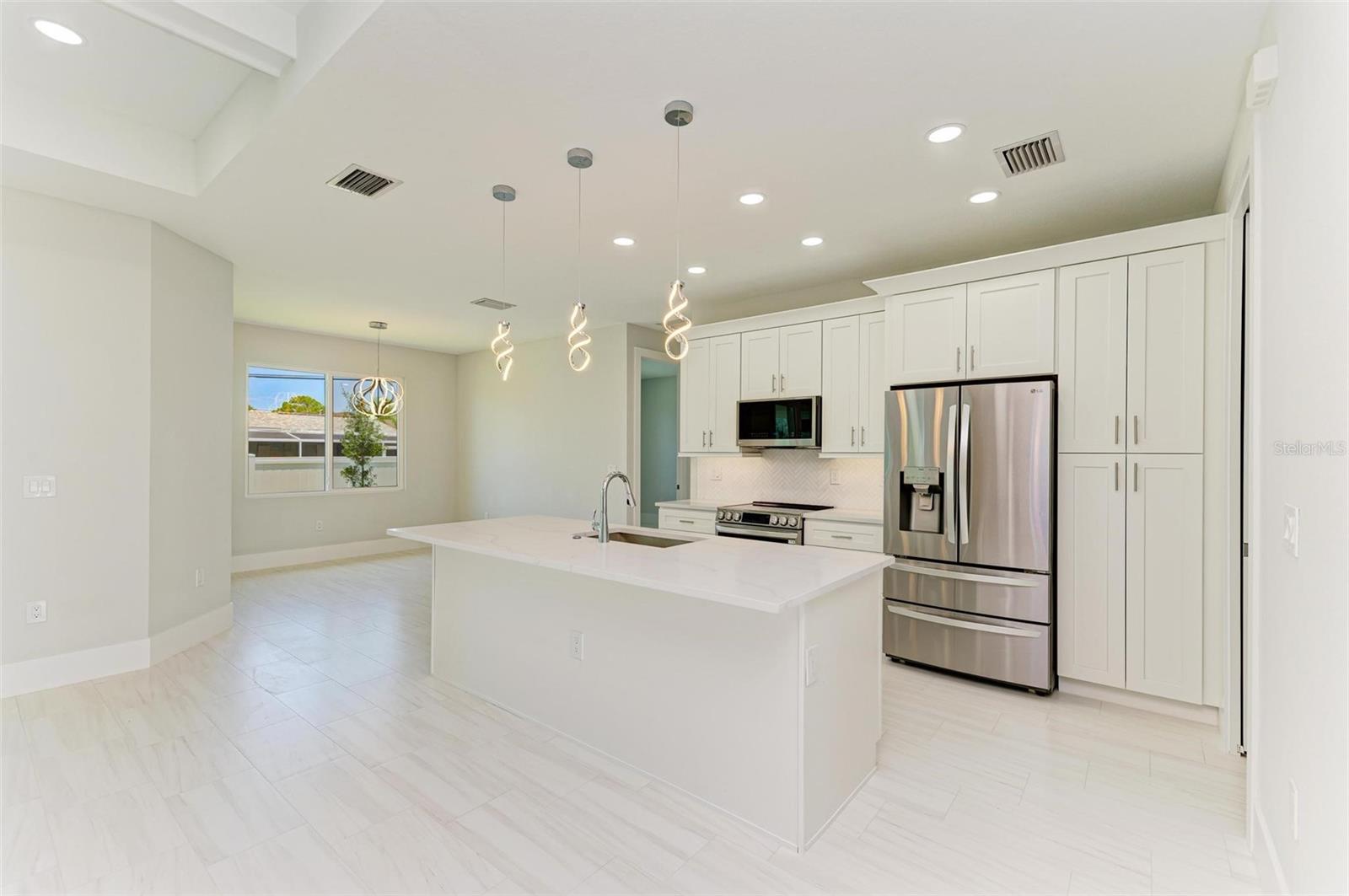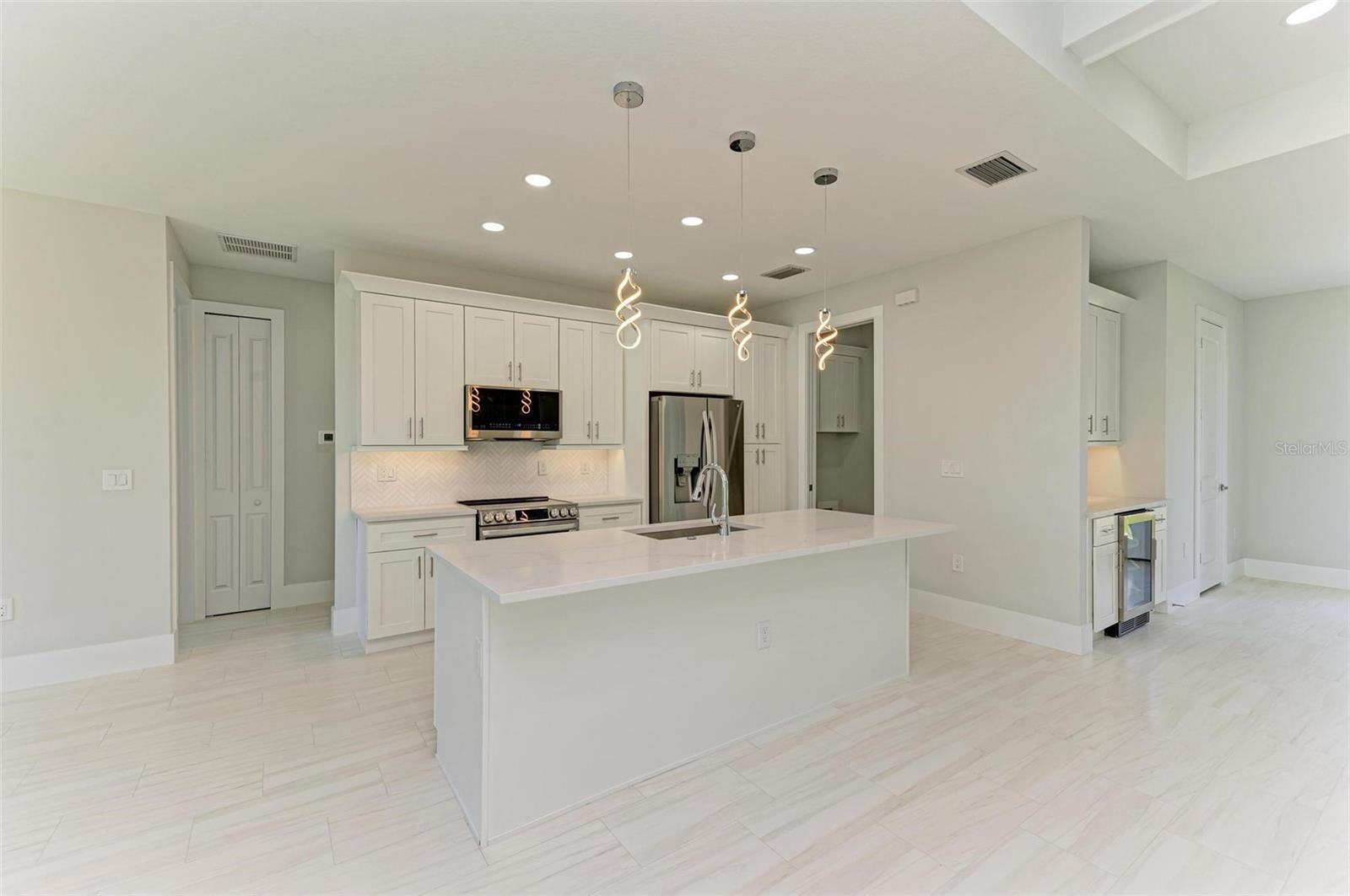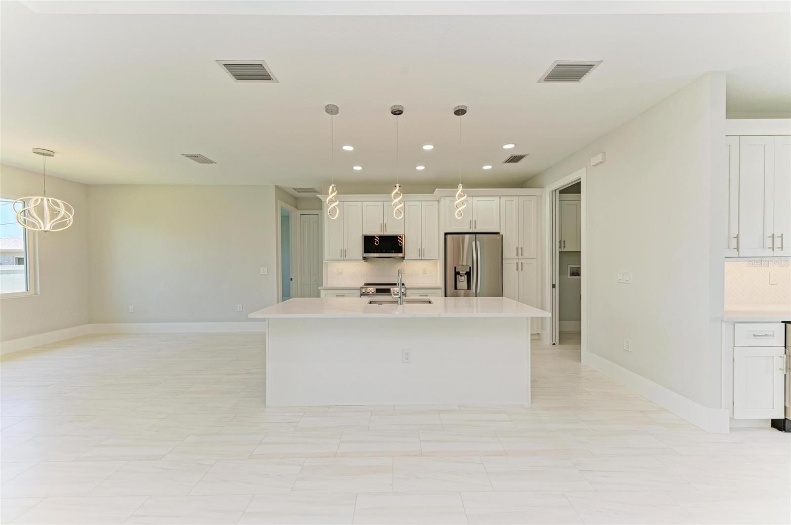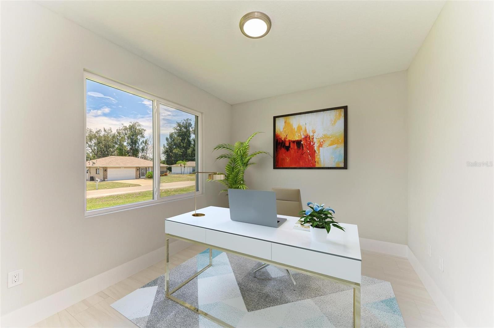 One or more photo(s) has been virtually staged. GREAT HOME FOR SHORTH TERM RENTAL. Discover modern luxury in this stunning new construction home, move-in ready and designed for your ultimate comfort. This elegant 3-bedroom, 3-bathroom residence features a versatile office space and a spacious 2-car garage. Step inside to an inviting open-concept floor plan, highlighted by pristine porcelain tiles throughout, tall coffered ceilings, and sleek 8-inch modern molding. The 8-ft interior doors and electric fireplace with an accent wall while the charming coffee bar enhances your daily routine. The heart of the home is the kitchen, equipped with stainless steel appliances, a spacious island perfect for entertaining, and upgraded light fixtures. The expansive master suite is a true retreat, boasting an upgraded bathroom with a large walk-in shower featuring statement tiles and a double vanity. Enjoy ample storage with large walk-in closets and a conveniently located laundry room. Built with durable block construction, this home offers peace of mind with hurricane impact windows and a 6ft PVC fence surrounding the property for added privacy. The full home water filtration system ensures clean and safe water throughout. Additionally, this home comes with a 10-year structural warranty, providing long-term security. Don’t miss the opportunity to own this exceptional home that combines luxury, functionality, and peace of mind, all in a prime location near the beaches and vibrant downtown Venice.